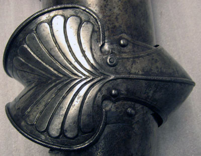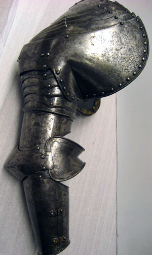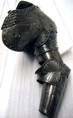 Axelstycke med armskena, höger. Till Vladislav IV:s rustning. Krigsbyte från Warszawa 1655.