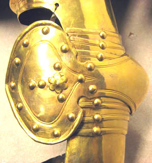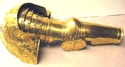 Riksrådet Johan Gyllenstjernas rustning af förgylld messing med knappformiga nithufvuden består af: