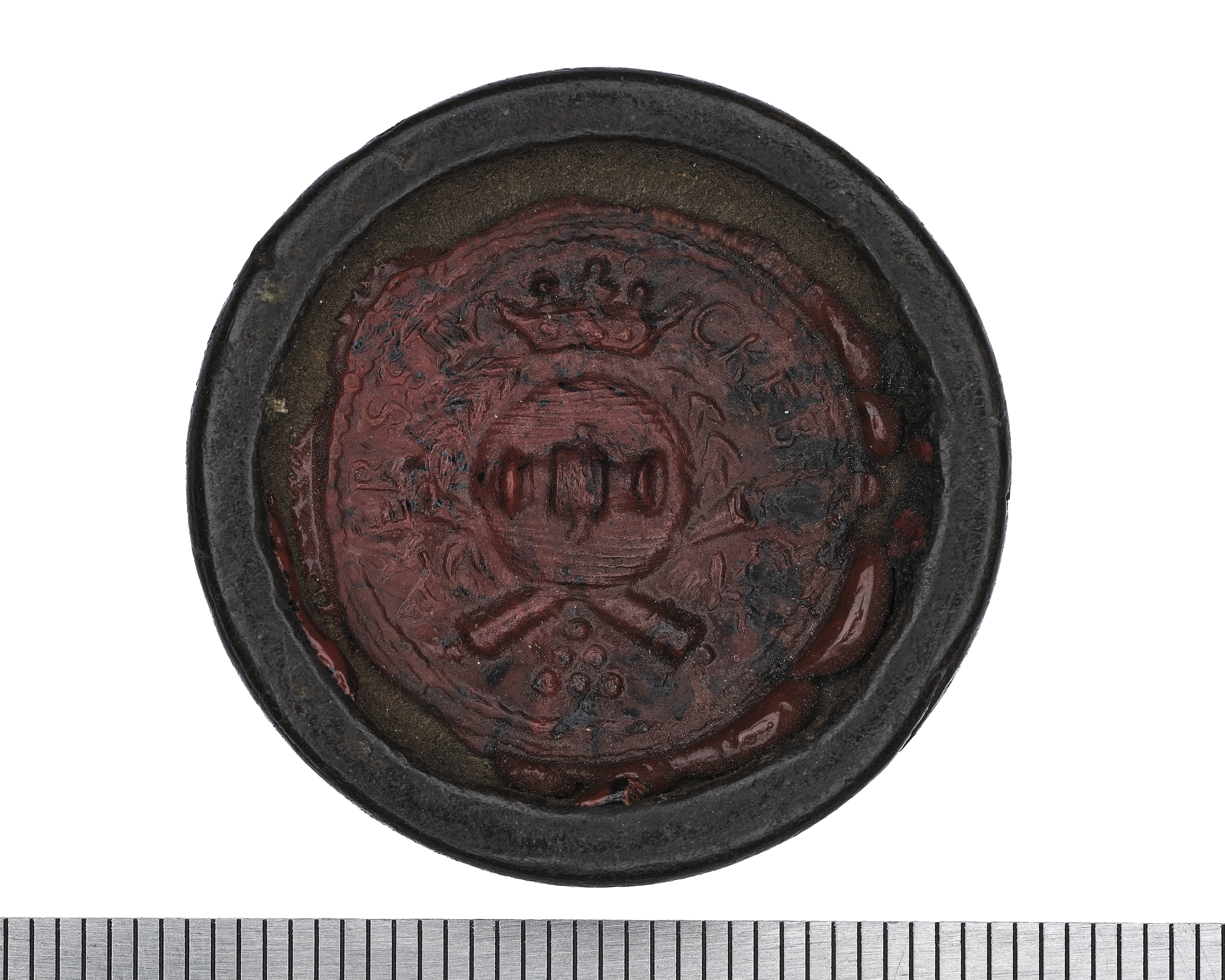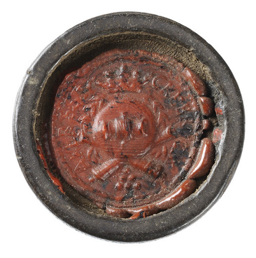 Ölpollett från Åkers styckebruk, av trä med sigill i rött lack.