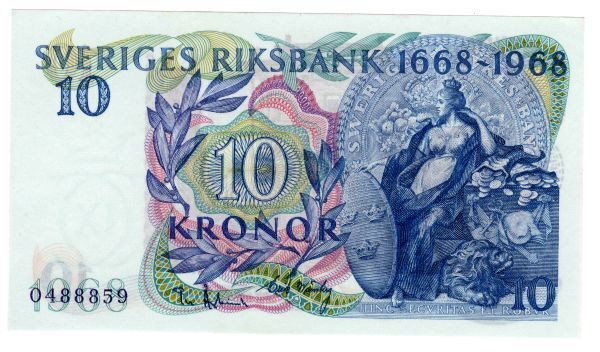 SVERIGES RIKSBANK 1668-1968 10 KRONOR