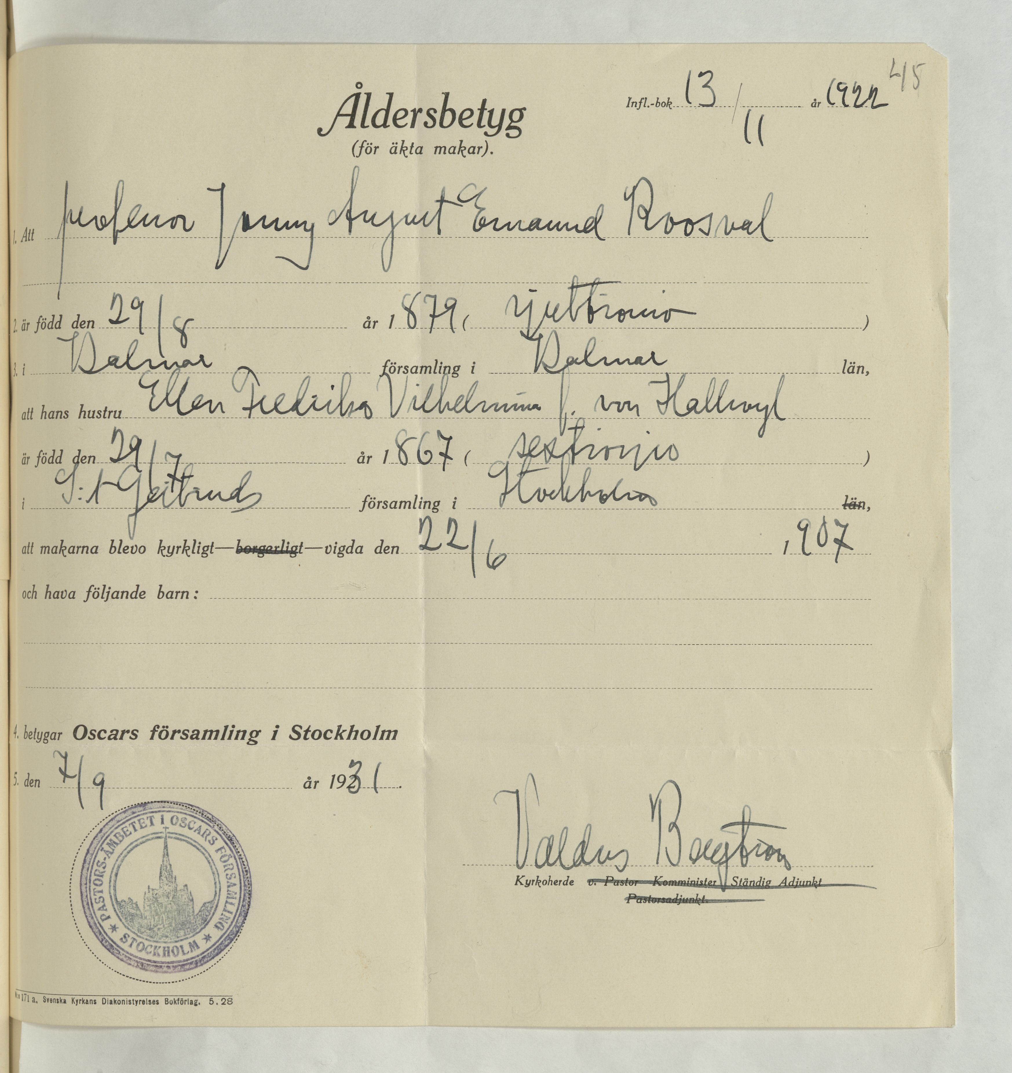 Åldersbetyg gällande paret Roosval