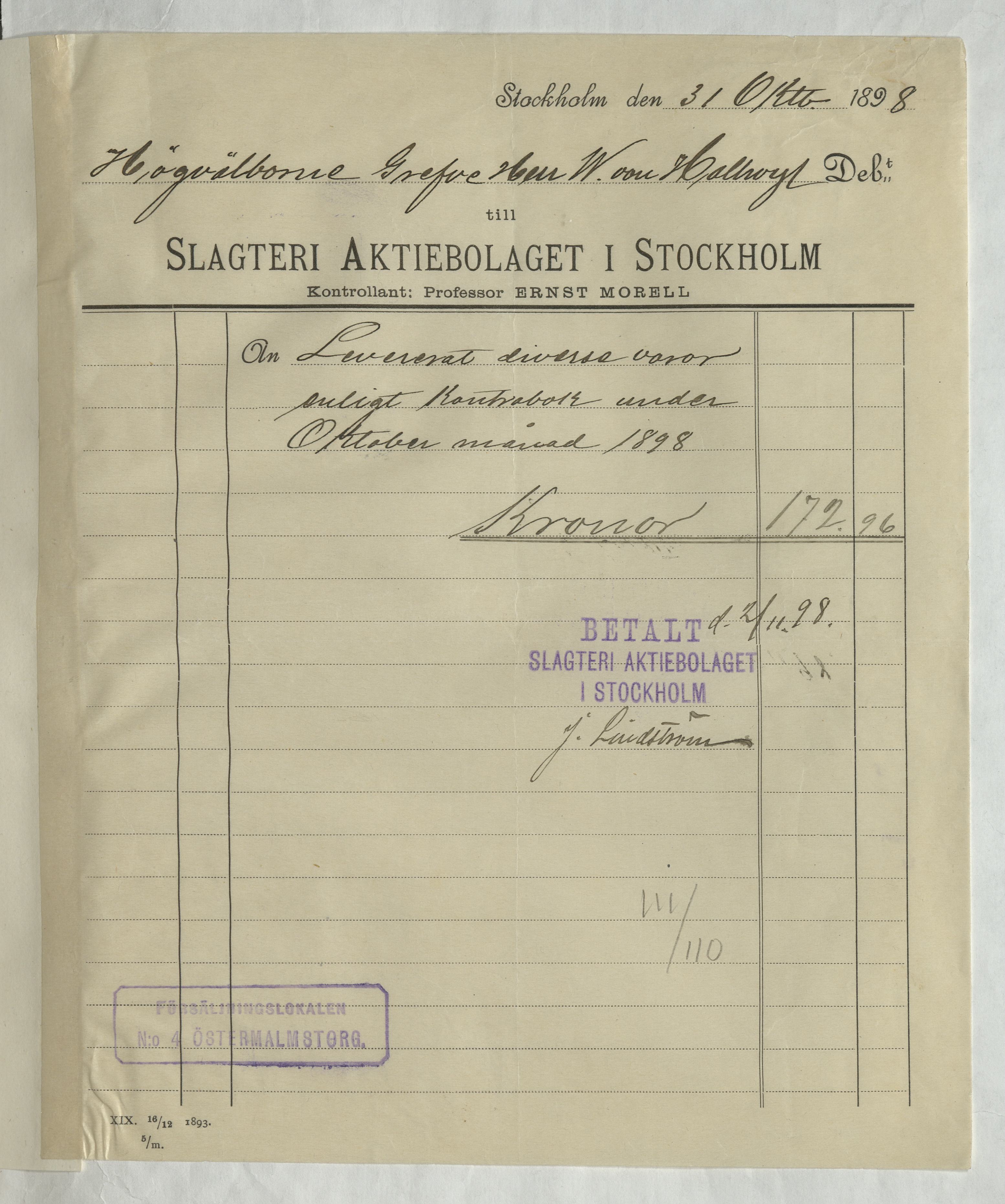 Kvitto från Slagteri Aktiebolaget i Stockholm