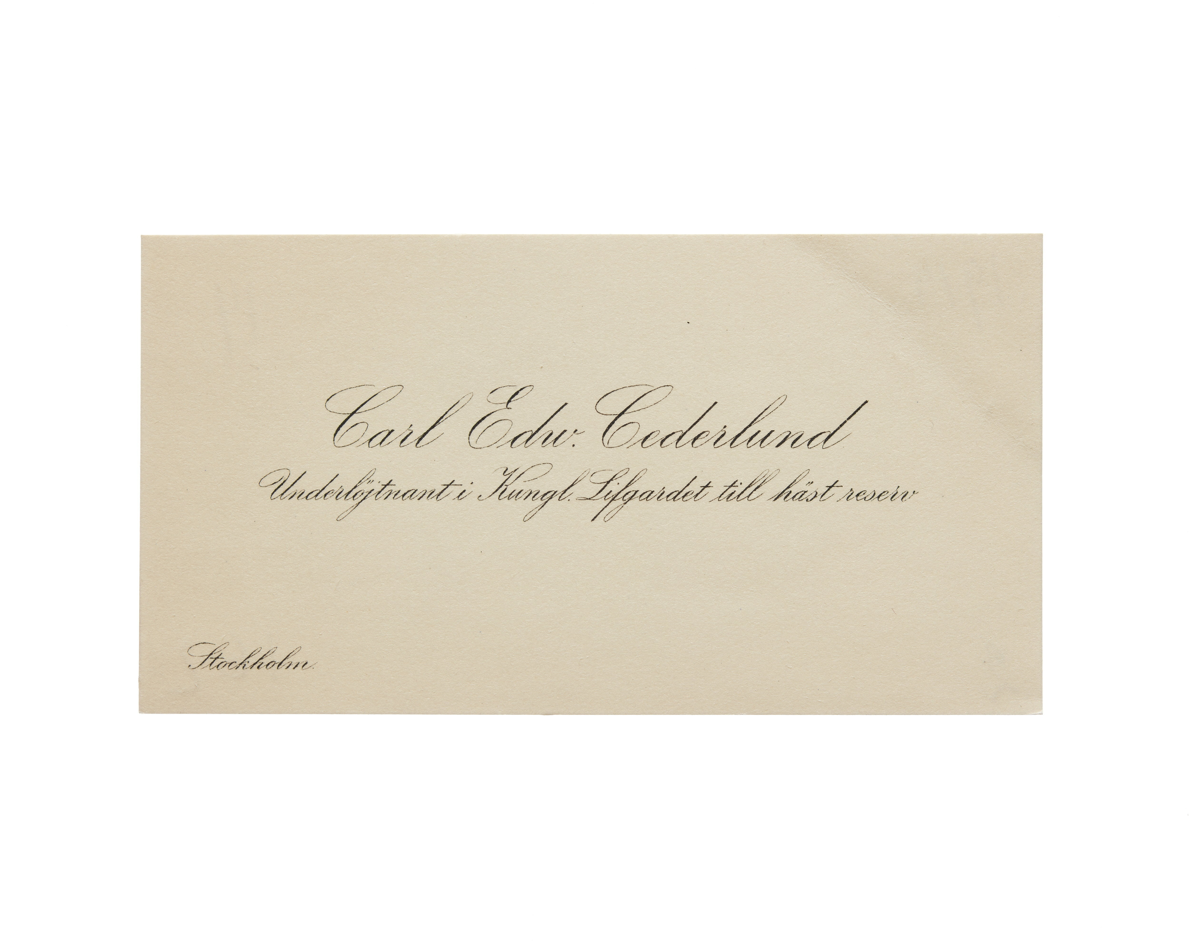 Visitkort från Carl Edw. Cederlund, underlöjtnant i Kungl. Lifgradet till häst reserv.