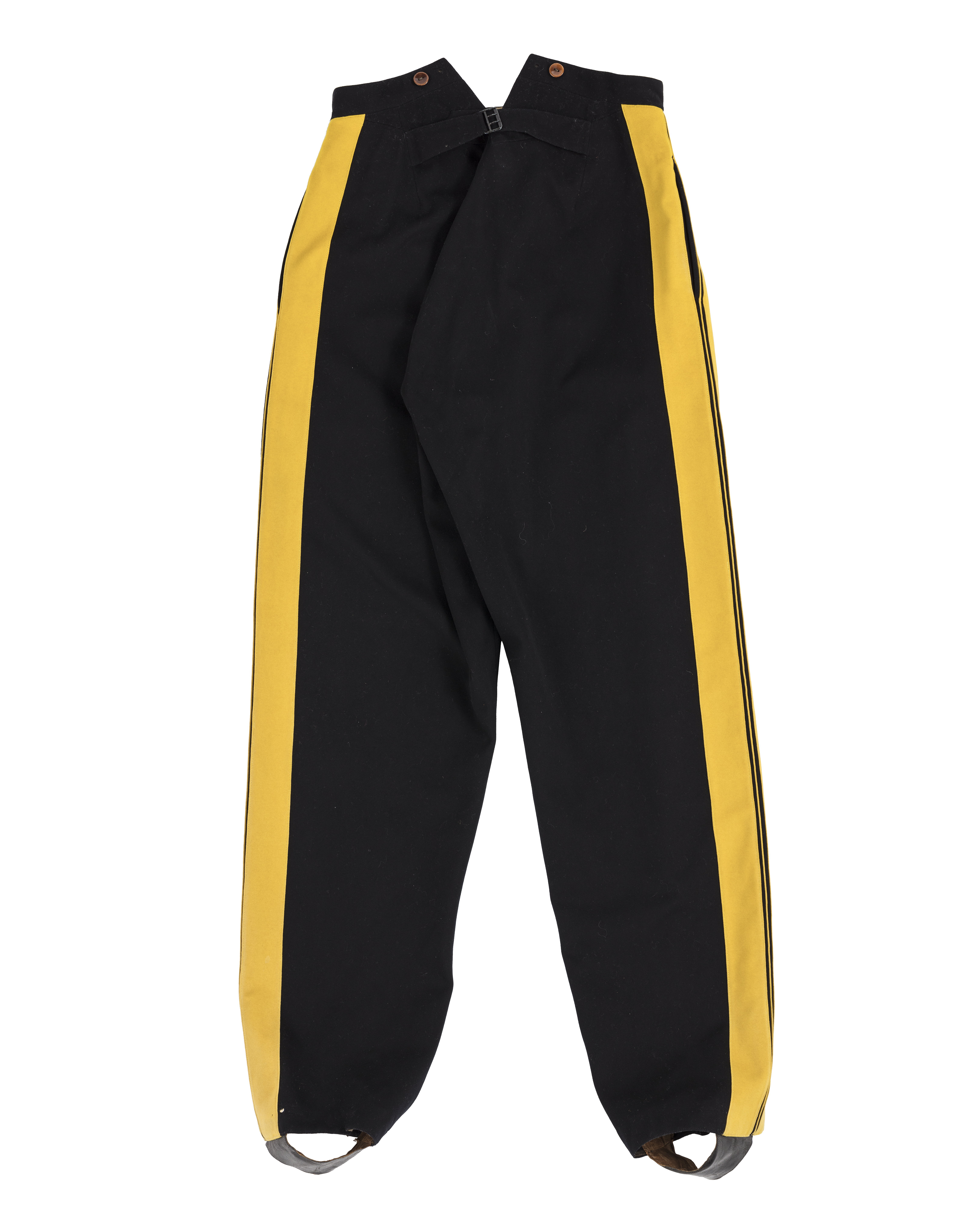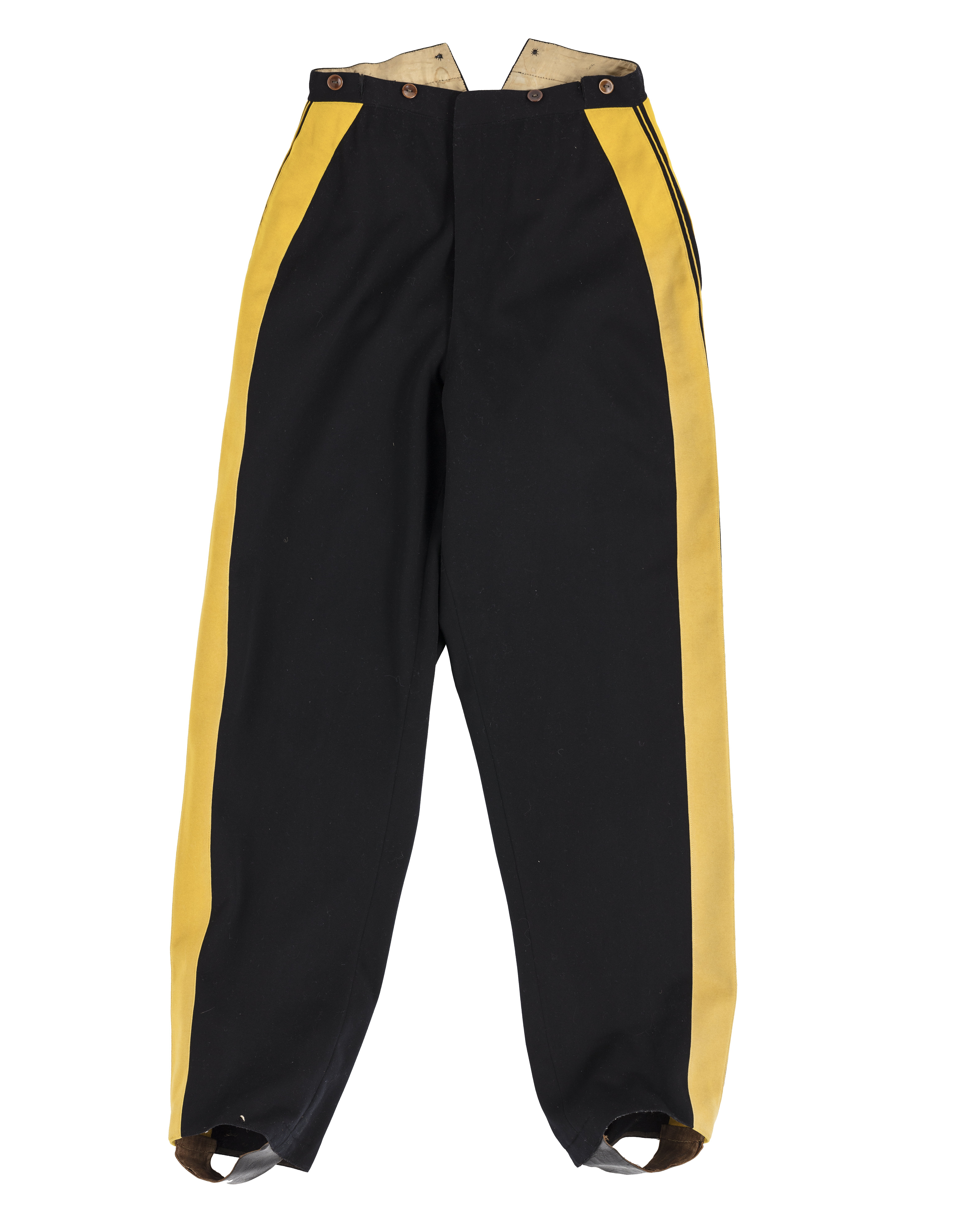 Långbyxor av svart kläde m: 1845. I övrigt modellenliga. Har tillhört Karl XV, använd vid kröningen 1860-05-03.