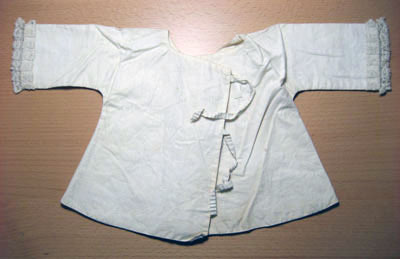 Plagget ingår i en babyutstyrsel som beställdes till det barn som Hedvig Elisabeth Charlotta felaktigt trodde sig vänta sommaren 1775. Plaggen har senare använts av de barn Hedvig Elisabeth Charlotta födde, samt av Gustav IV Adolfs och drottning Fredrikas barn. Naturvit nattröja i dubbelvävt (tuskaft) i linne, sydd i fyra delar. Halsringningen är rundad och värje ärm är garnerad med en spetskant som är 30 mm bred. På baksidan är två kryssade band fastsydda på var sin sida som är 137 mm långa och 7 mm breda.