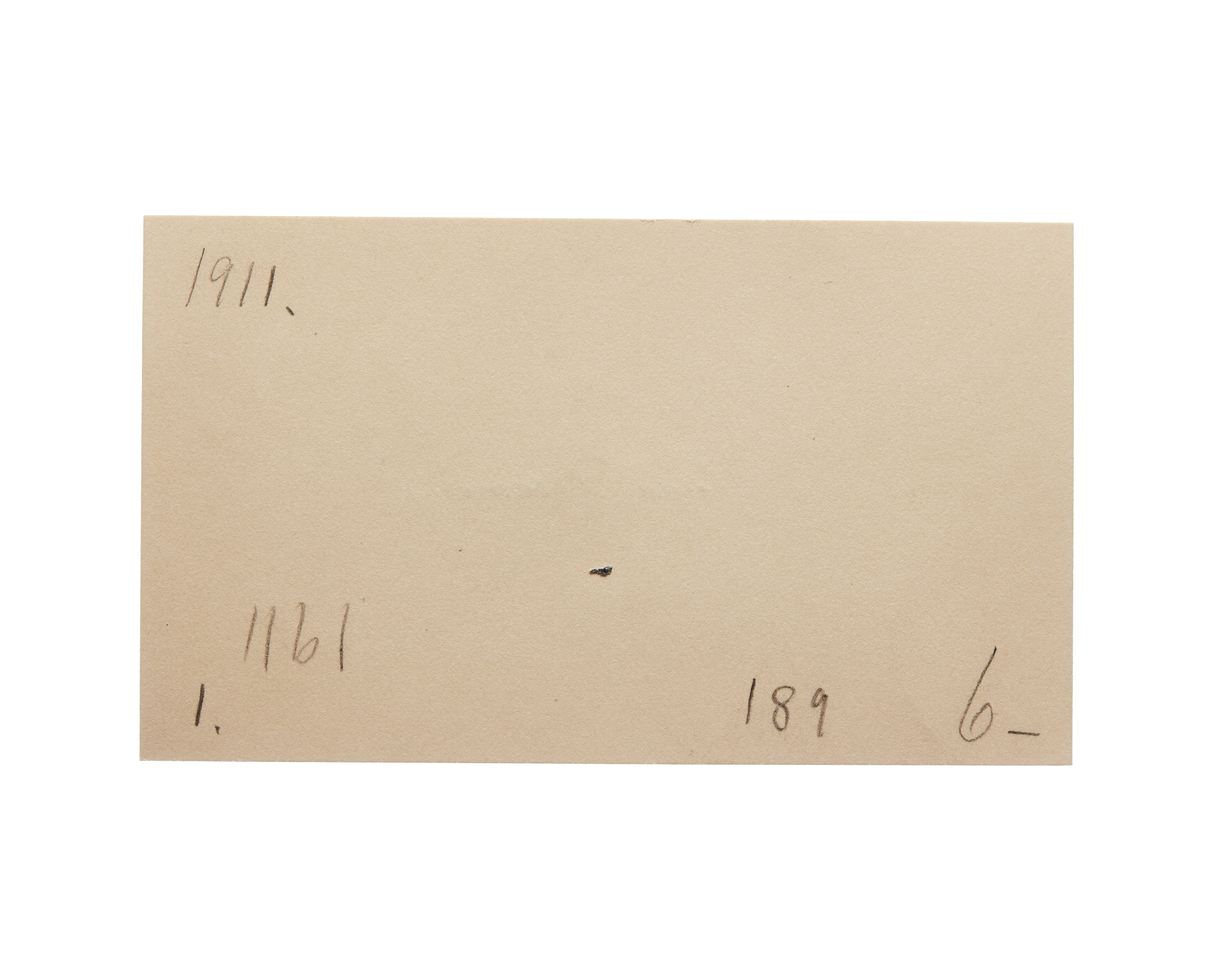 Ett visitkort från lärarinna Hilda Cramer, daterat 1911. Överlämnat i samband med Internationella kvinnoförbundets kongress i Stockholm 1911.