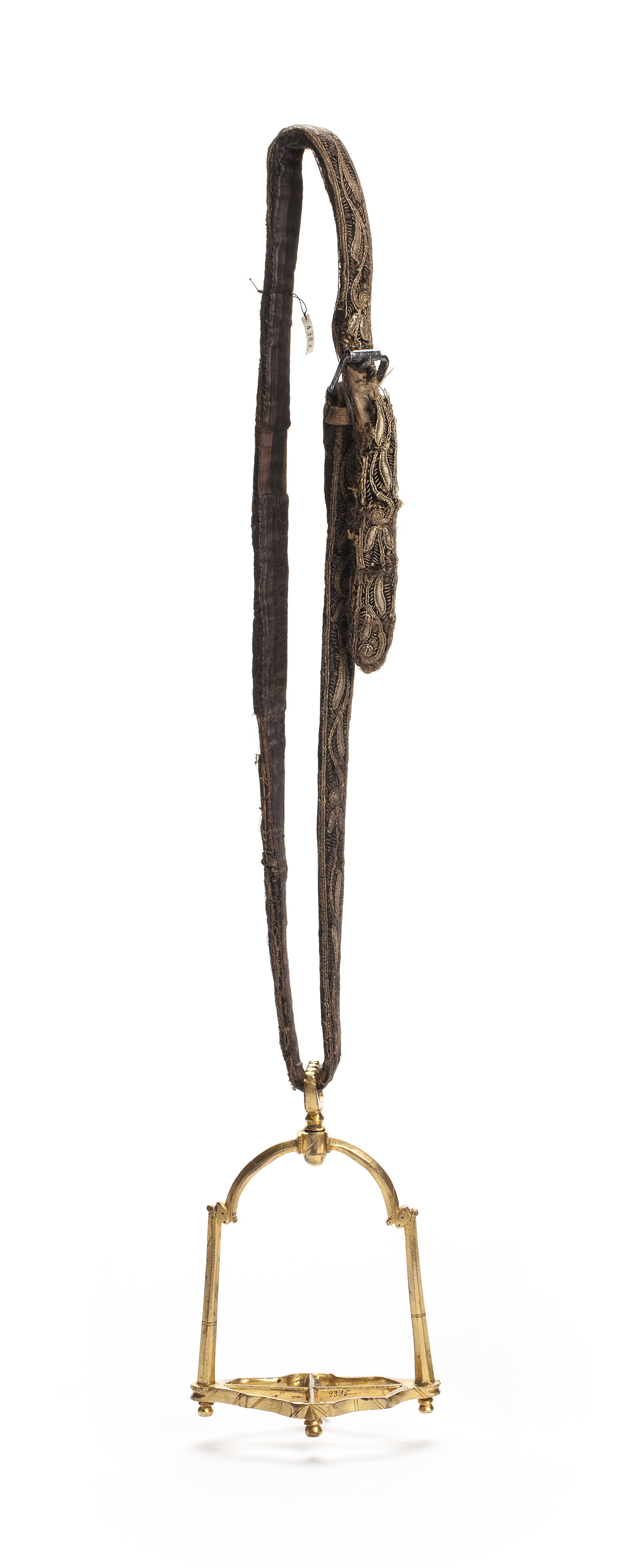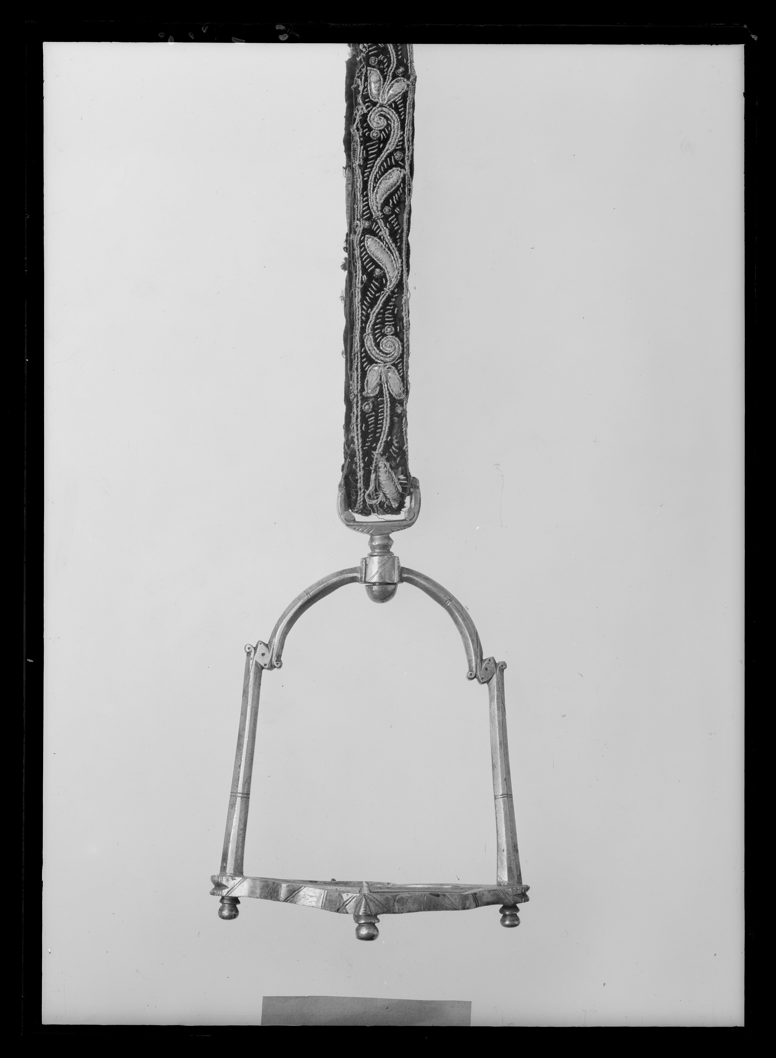 Stigläder, hör till Kyritzryttarens utrustning, vilken ingick i Karl X Gustavs begravningståg den 4 november 1660.