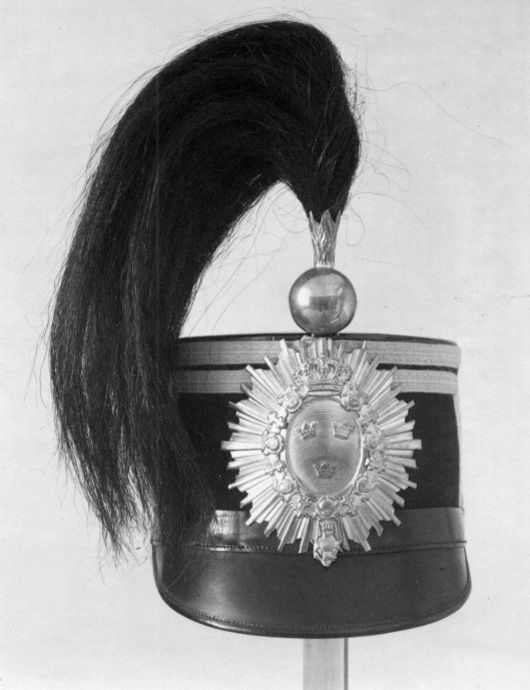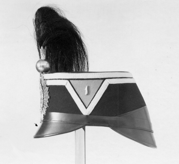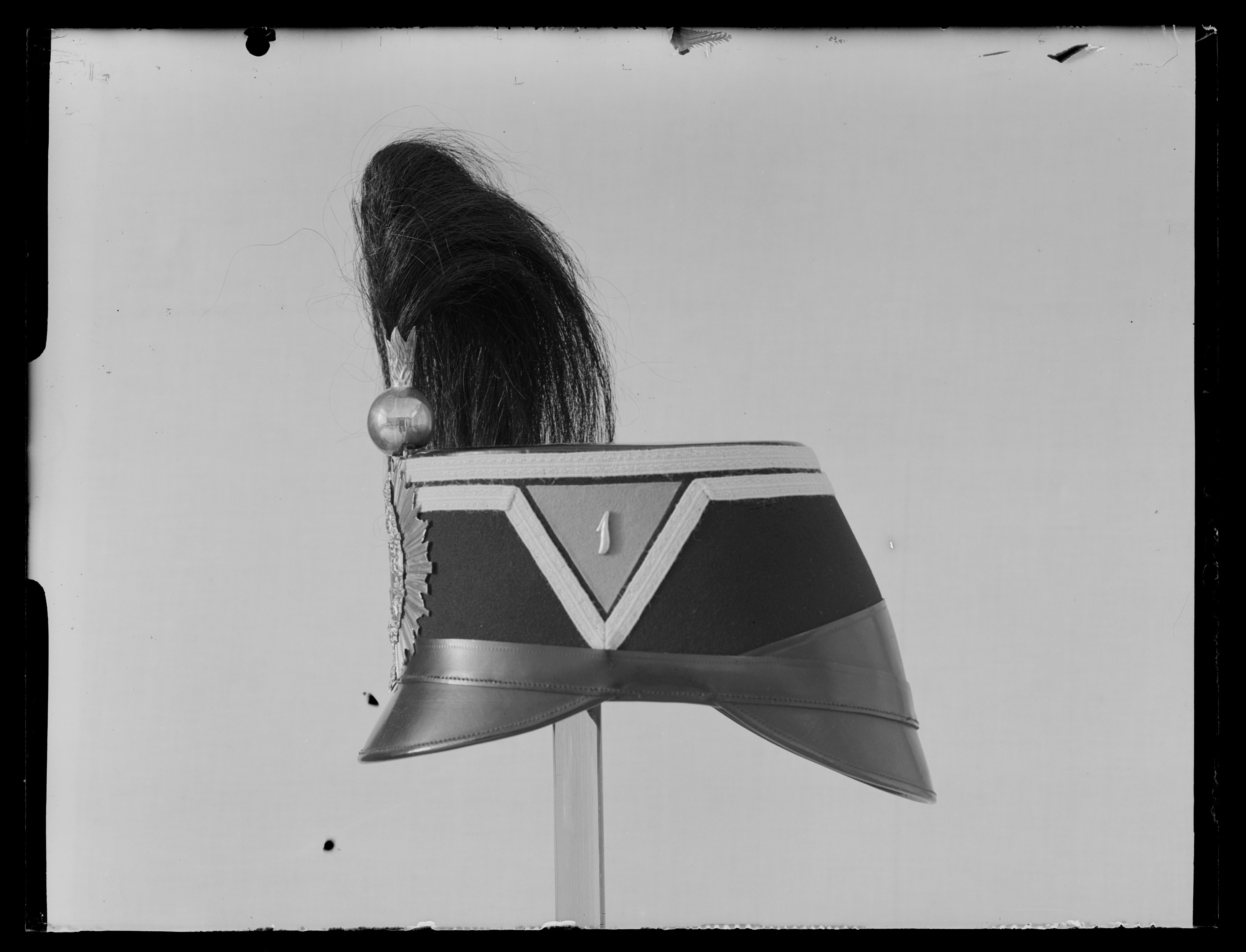 Kepy m: 1880. Invändigt klädd med mellanblått sidenfoder. I kullen stämplat firmanamn med guldtryck: "C. A. & AD EKS // Militärekiperingsaffär // STOCKHOLM". Svettrem 50 mm bred av ljusbrunt skinn med runduddad kant. L: 225 mm, b: 145 mm, vikt: 260 g.