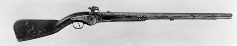 Hjullåskarbin, Sverige, 1680-tal, med drag överensstämmande med karbin m:1683 och 1696, enl. inv.1748 hörande till "Kongl.Drabante Konungs Wachtens Mondering". För drabant nr 14.