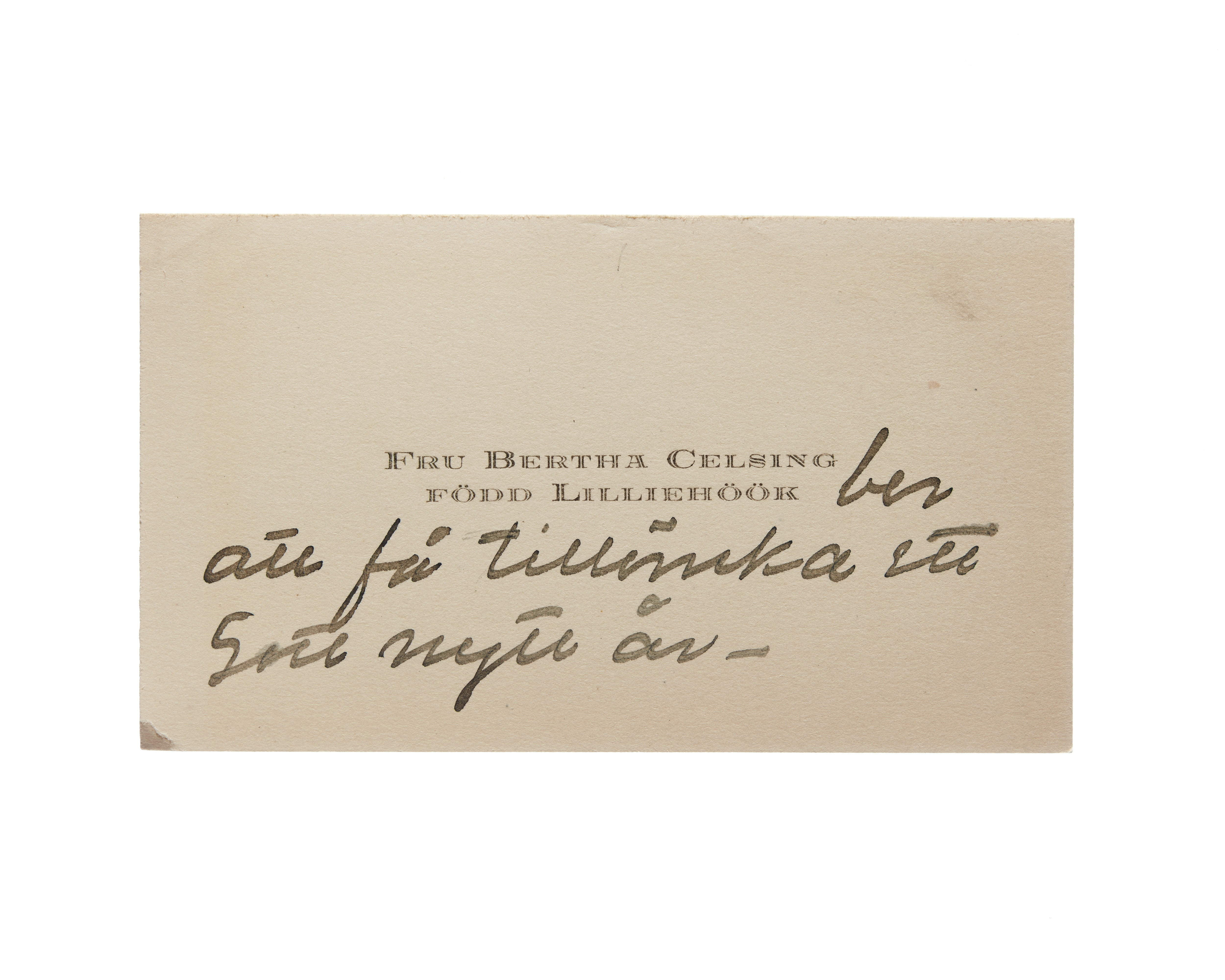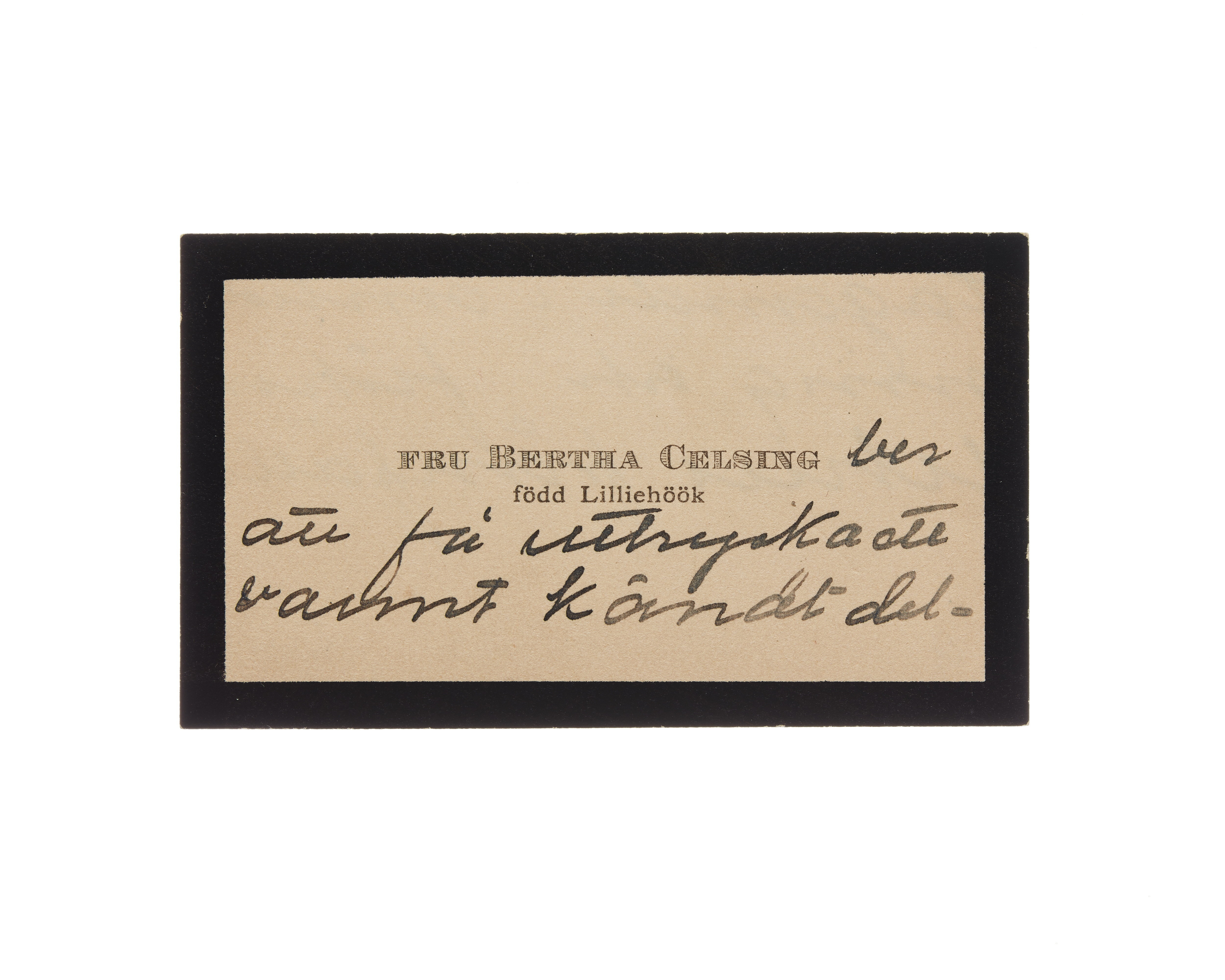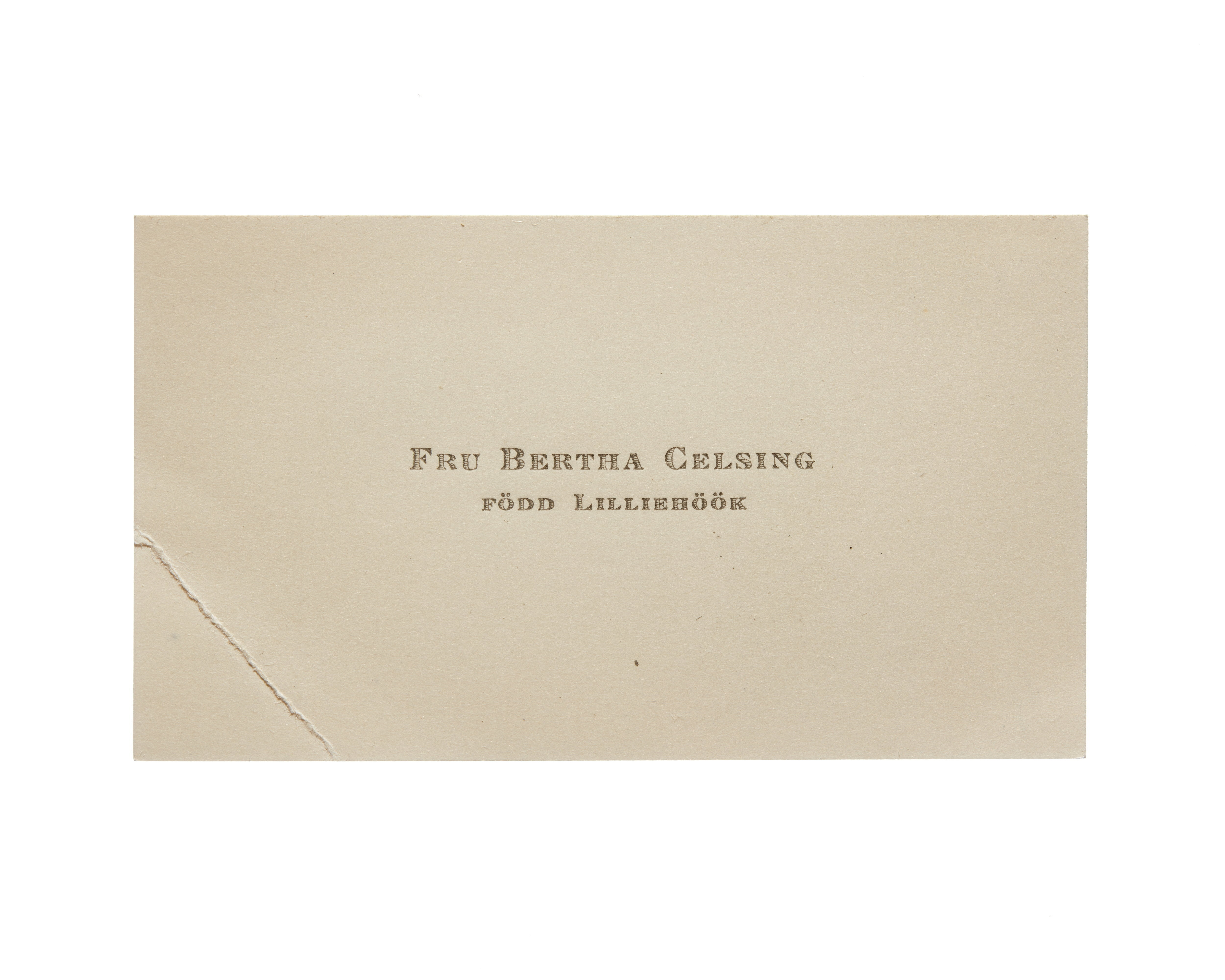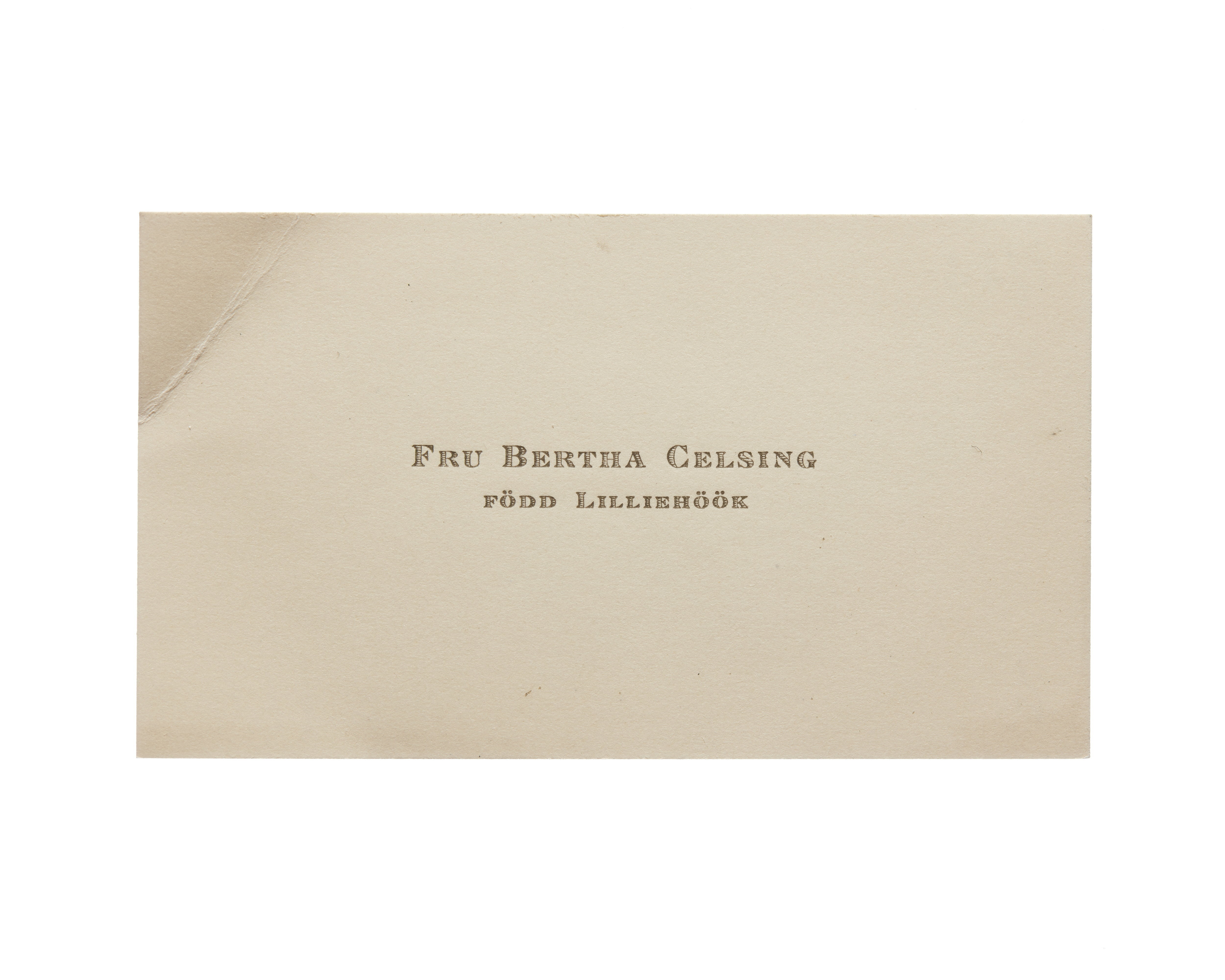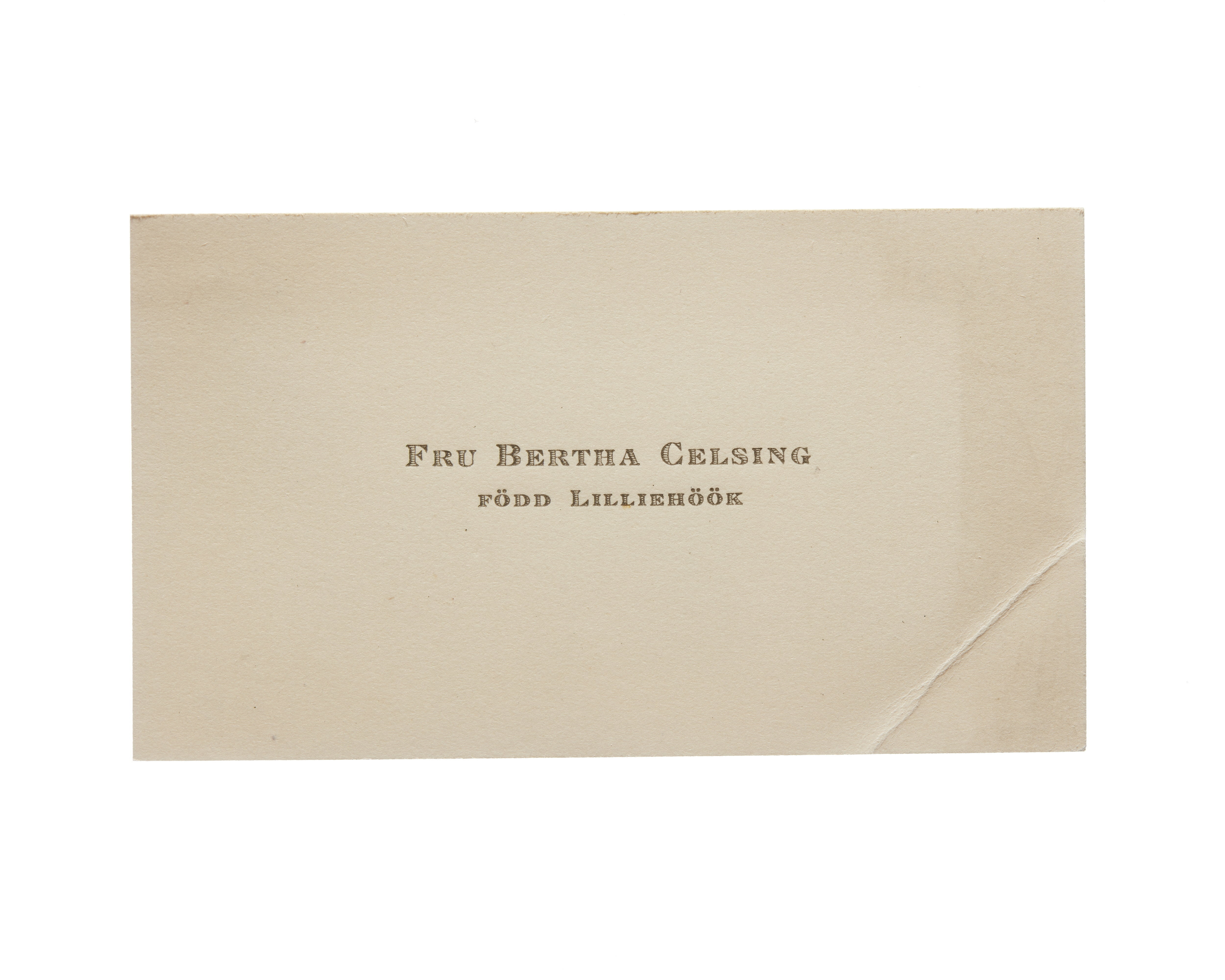 Visitkort från Fru Bertha Celsing f. Lilliehöök.