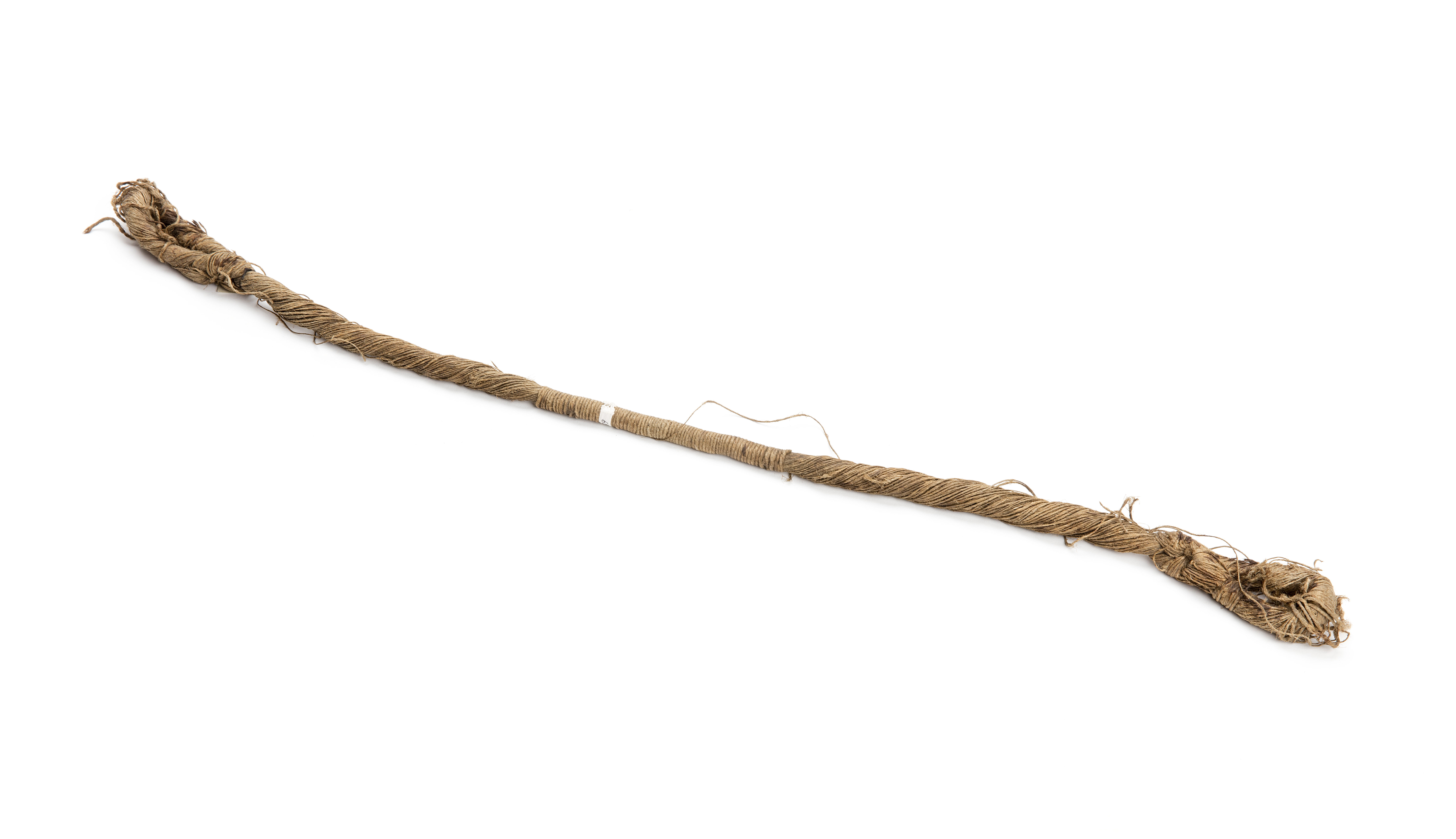 Sträng av hampa många tvinnade trådar omlindade på mitten.
