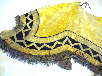 Schabrak som burits av Greve W. Bohlins banerförare på Drottningholm 1776 samt vid riddarspelen på Adolf Fredrikstorg 1777 i hertig Karls kadrilj.