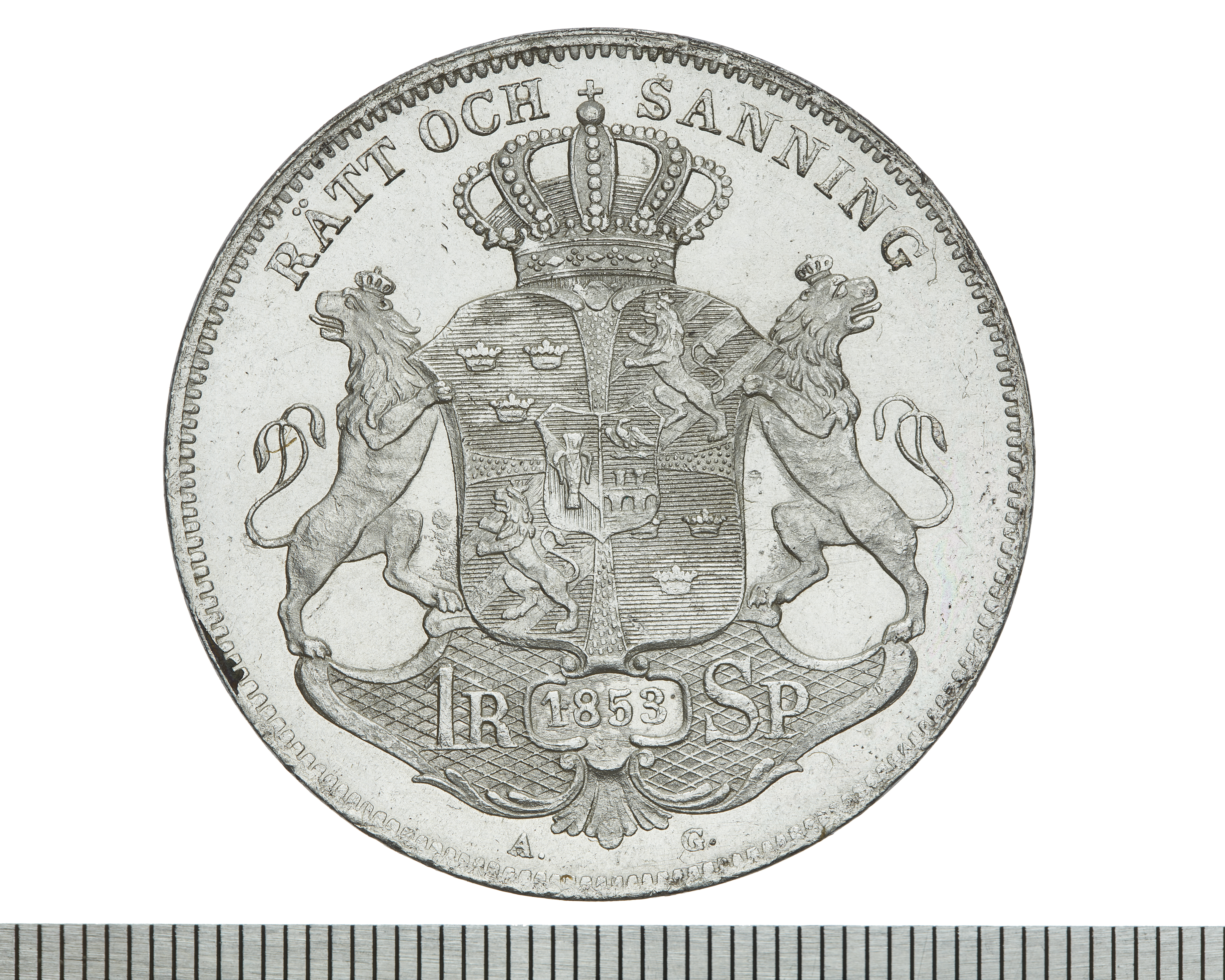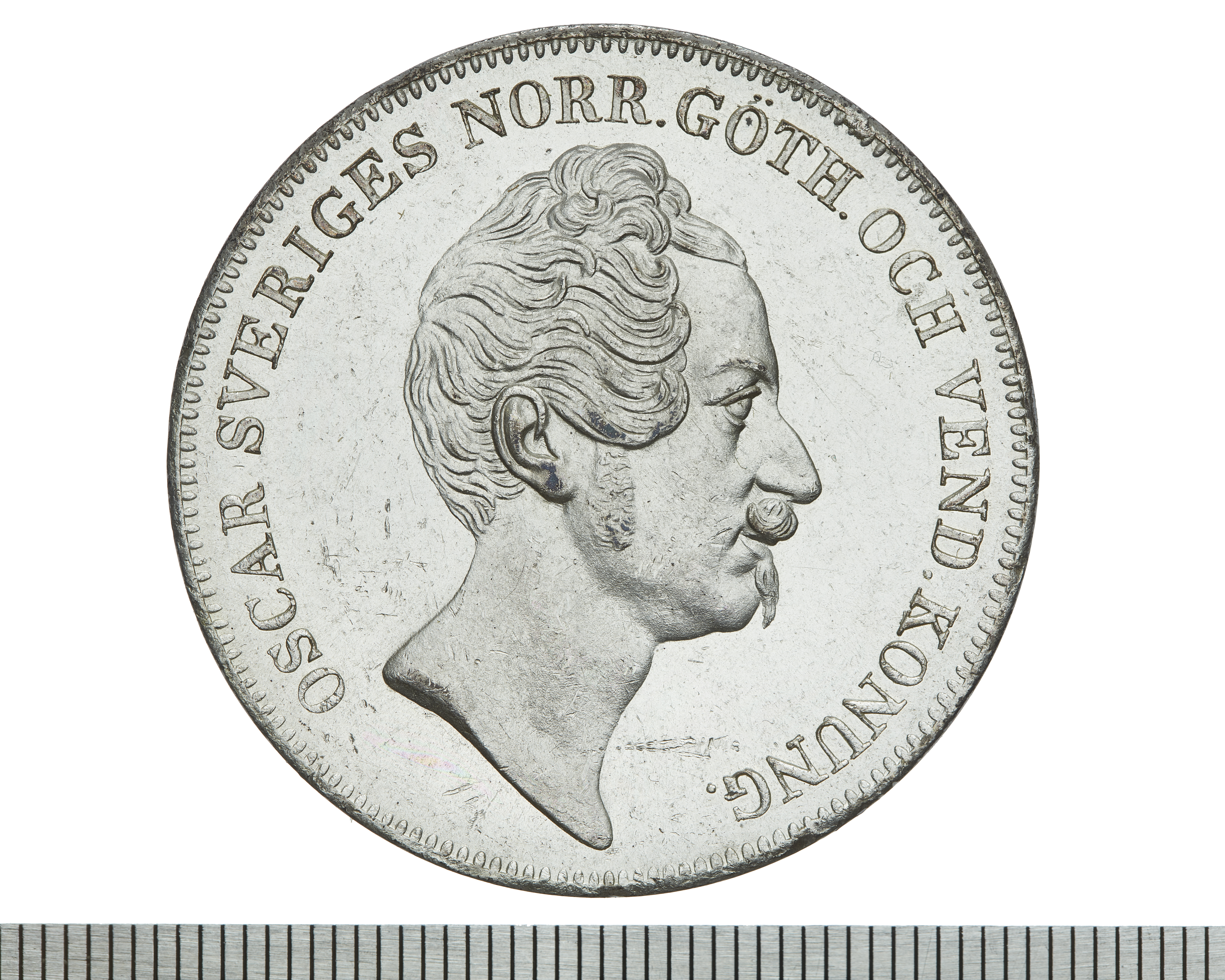 Upphov: Oscar I av Sverige och Norge. Media: Bonnevier, Helena. Ekonomiska museet - Kungliga myntkabinettet/SHM, (CC BY 4.0) Du får bearbeta och dela verket för alla ändamål, även kommersiella, så länge du anger upphovsperson och licensgivare.
