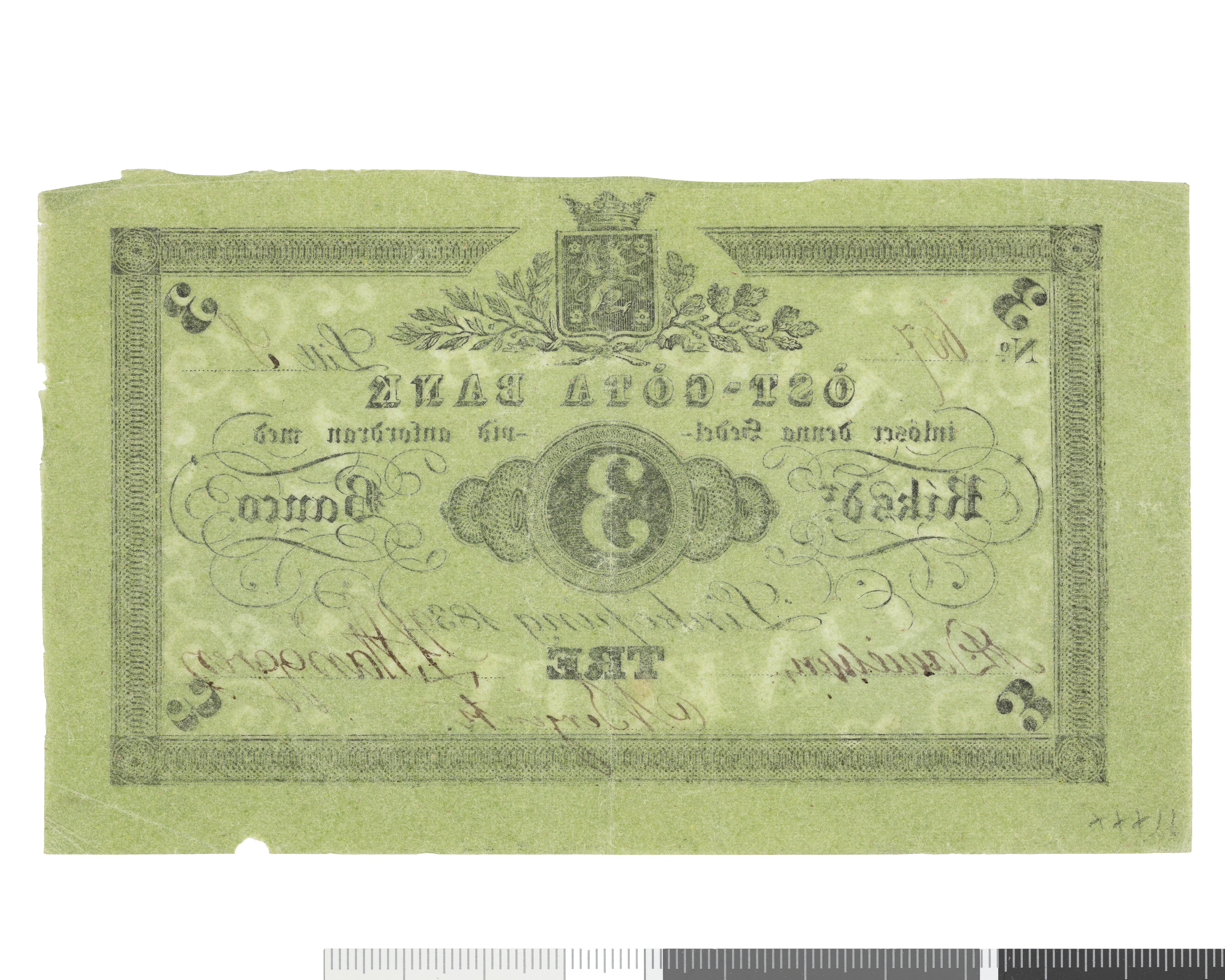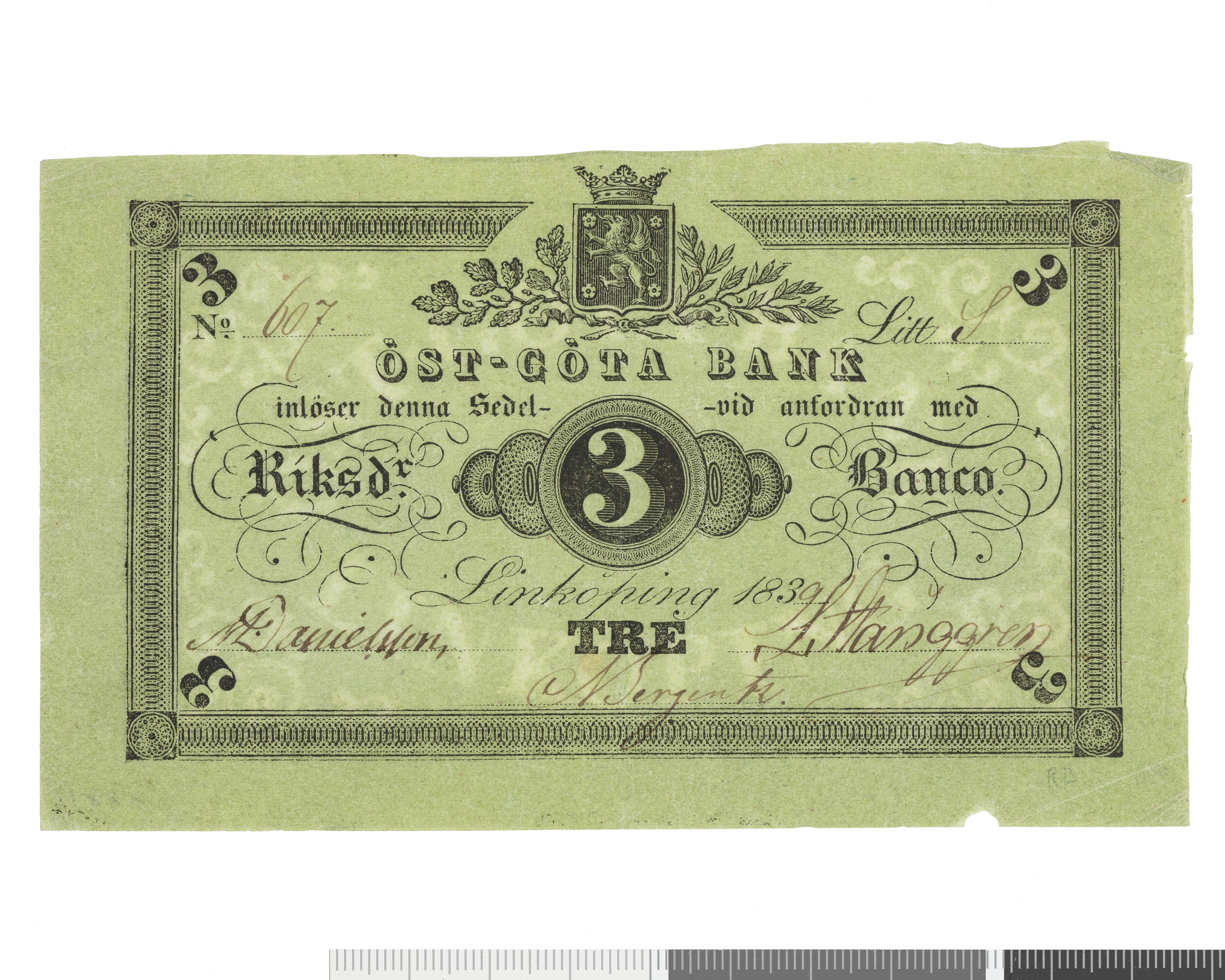 Öst-Göta Bank - 3 riksdaler banco