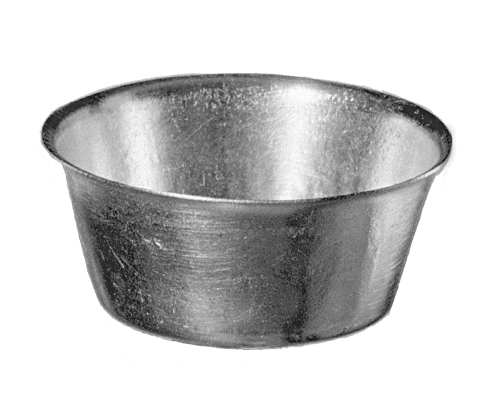 BAKELSEFORMAR (mazarin-), tolv stycken Av bleckplåt. Omvänt koniska, med plan botten och utviken, delvis vågig bräddkant. Höjd: 2,7 cm.; diameter: 6,2 cm.