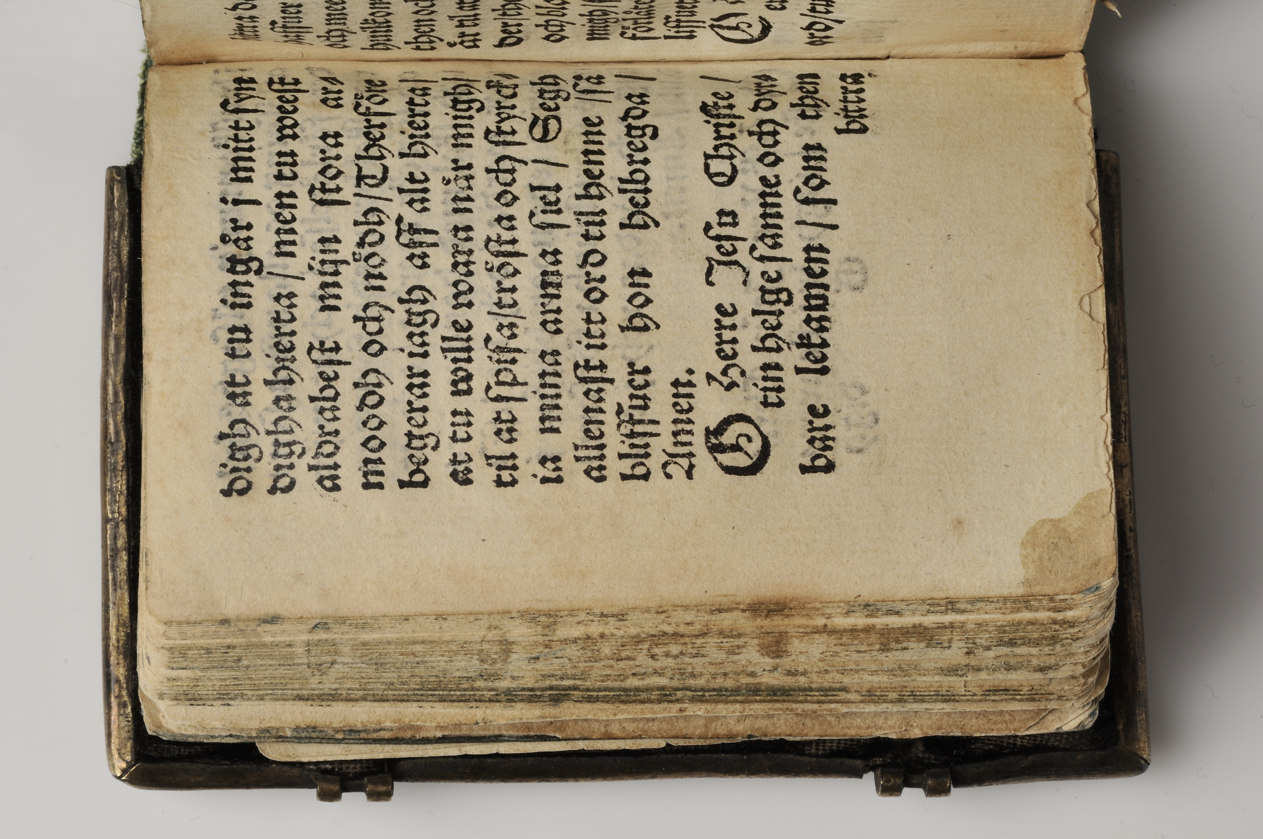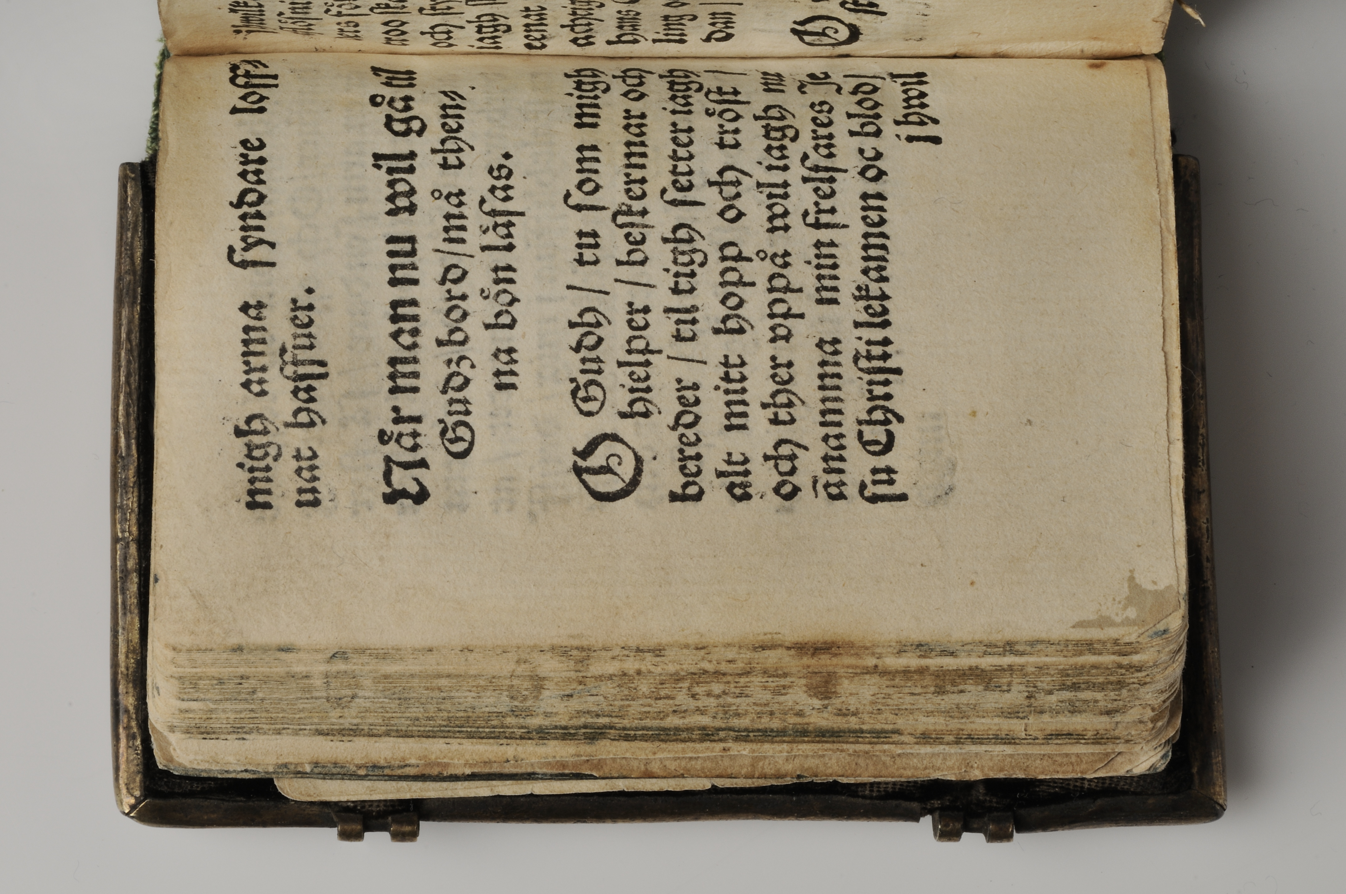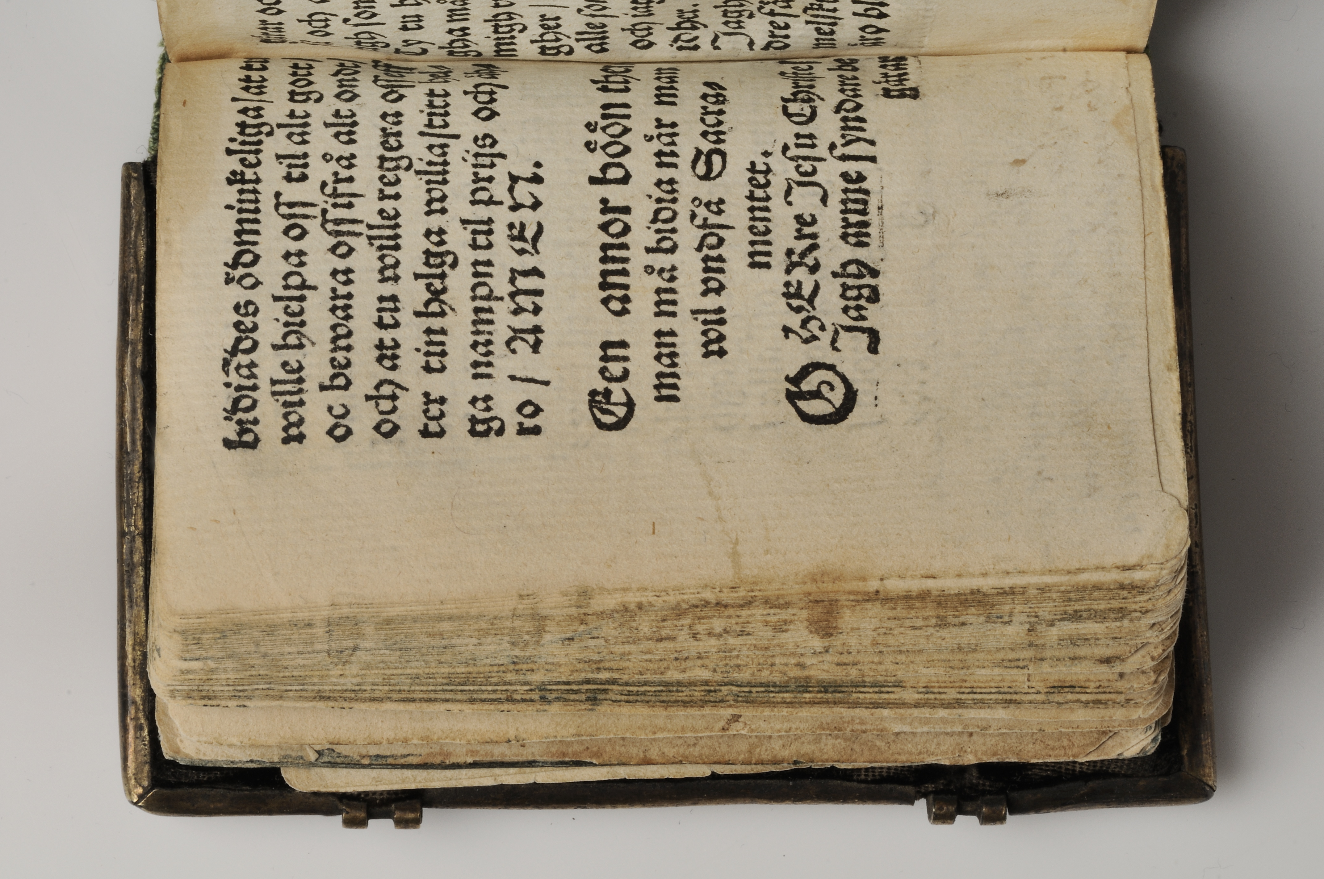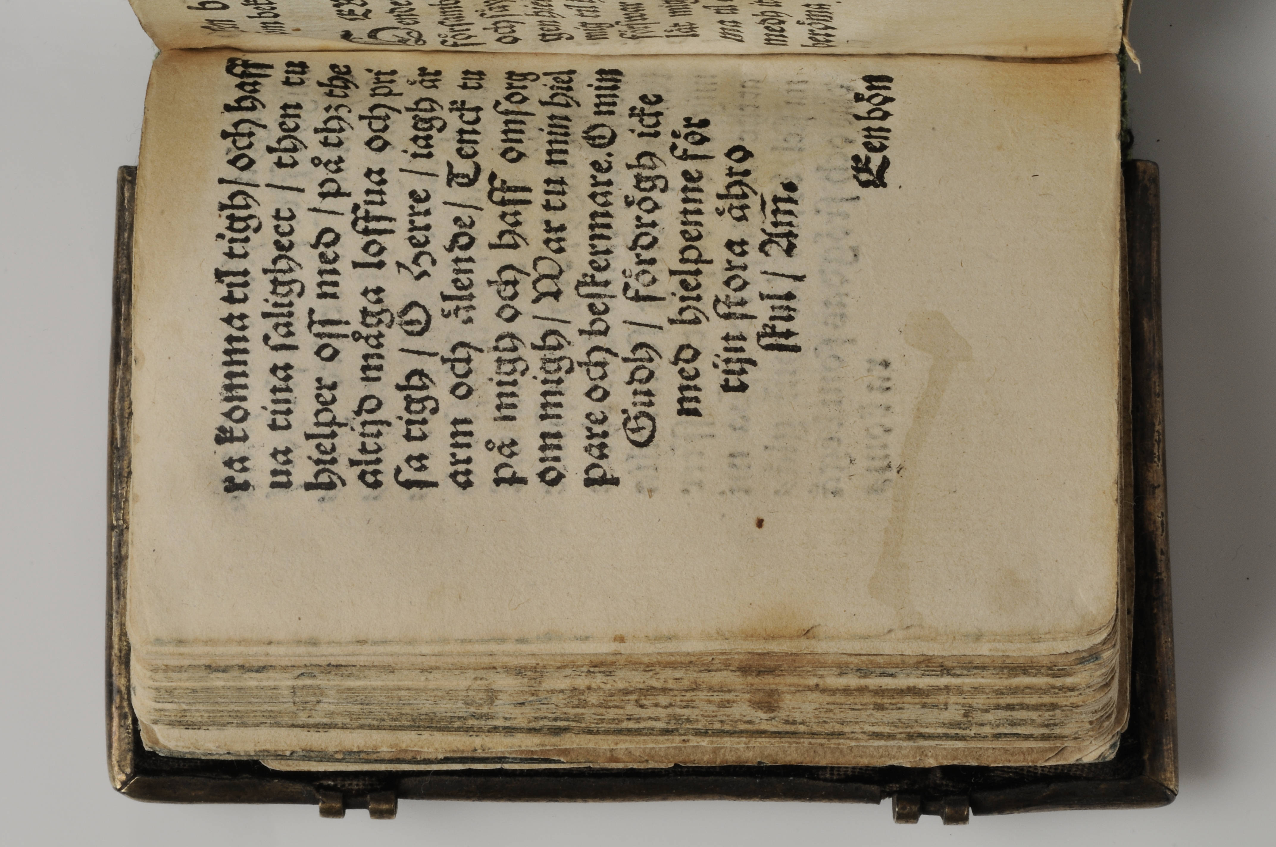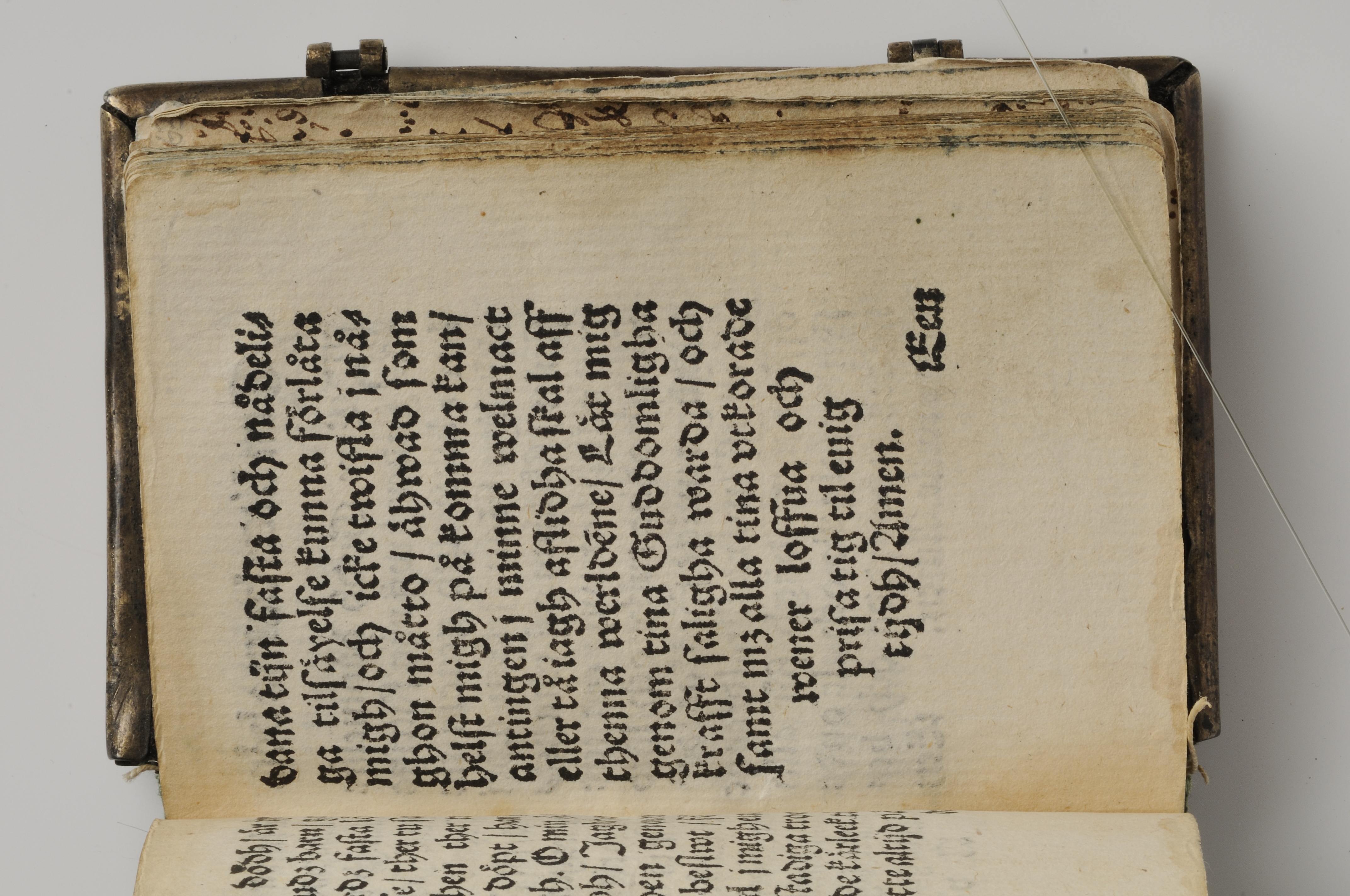 Bönbok som tillhört Malin Sture. Boken är tryckt i Stockholm av Amund Laurentzson 1559. Sigrid Leijonhufvud: Malin Stures bönbok, Fornvännen 1907.
