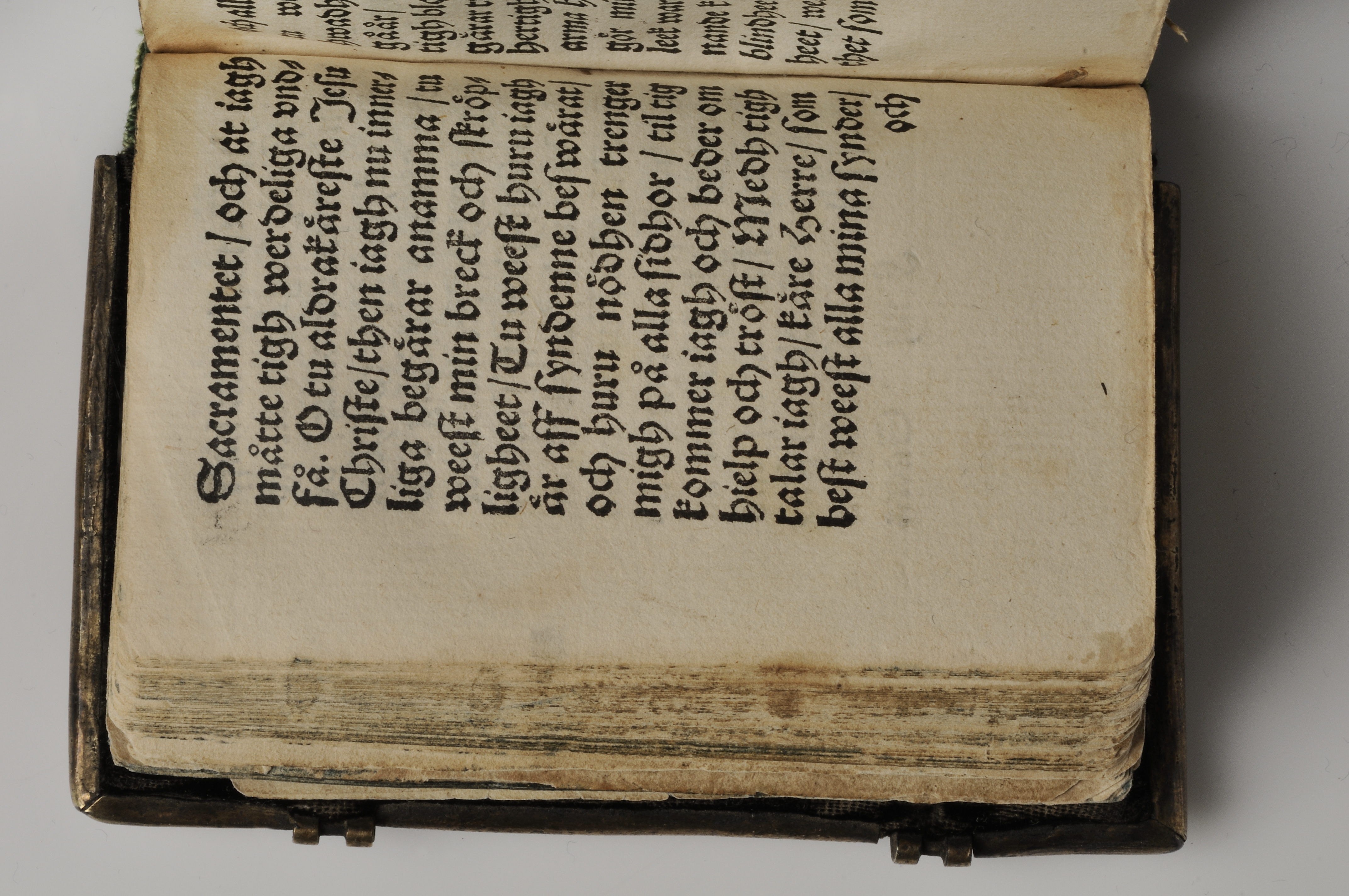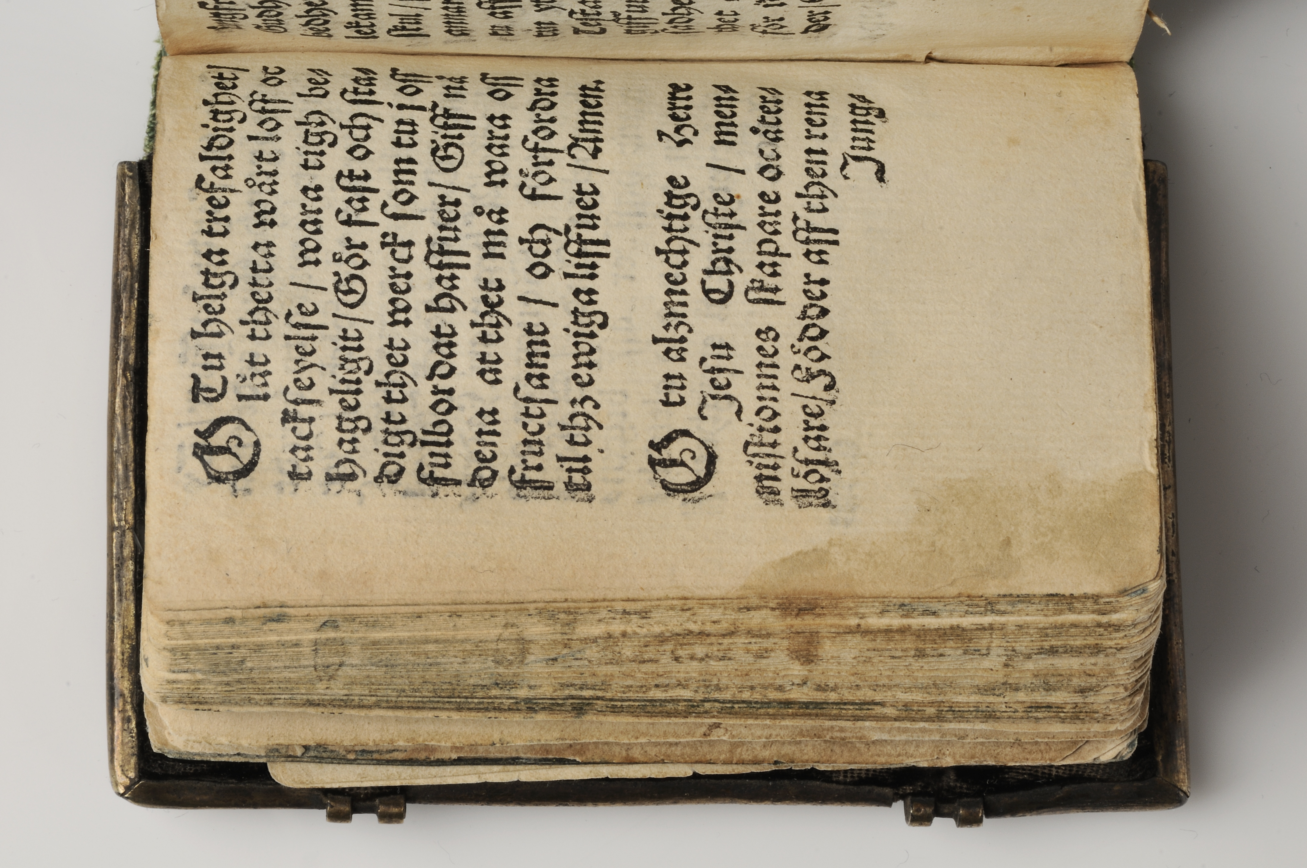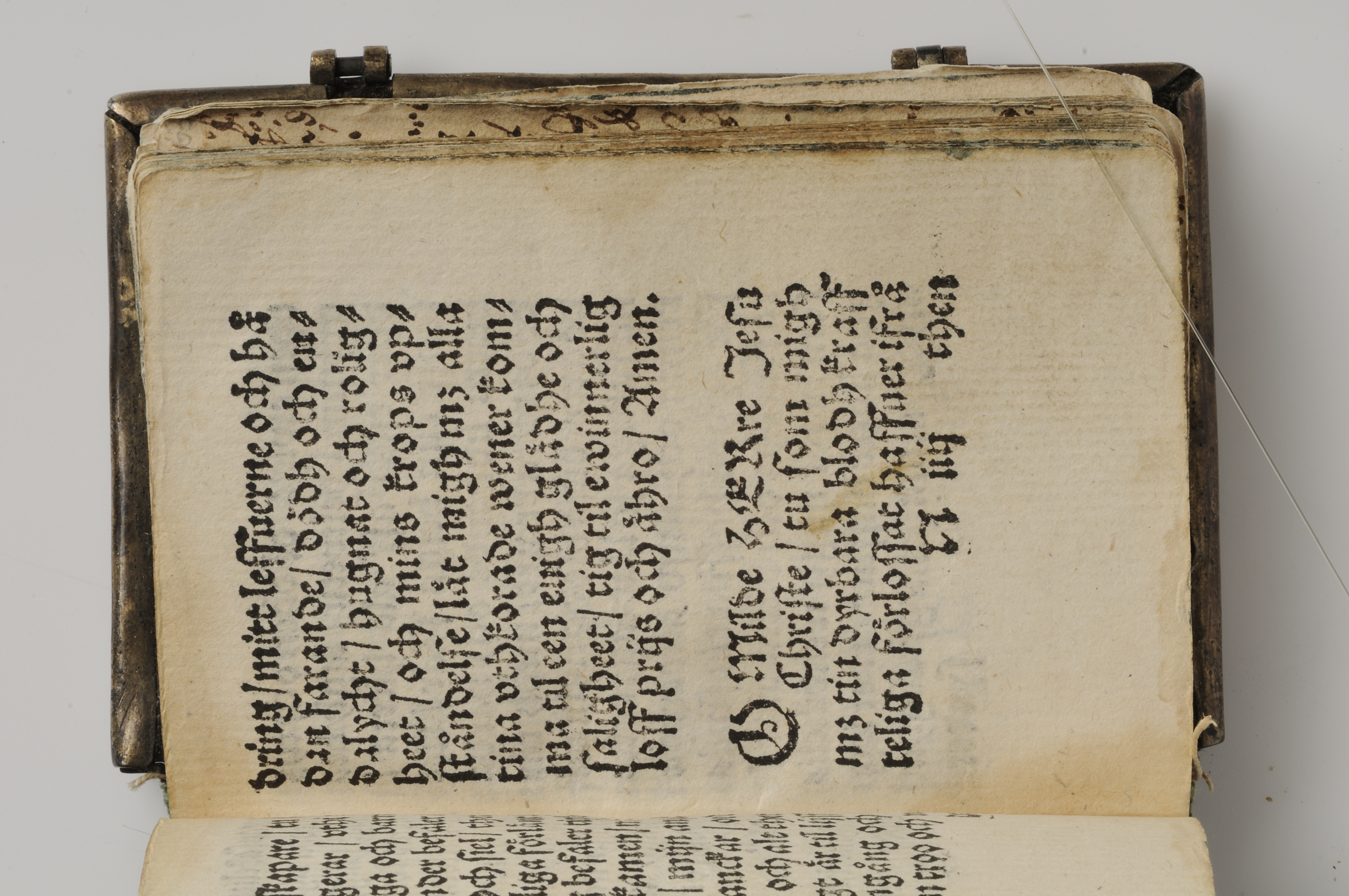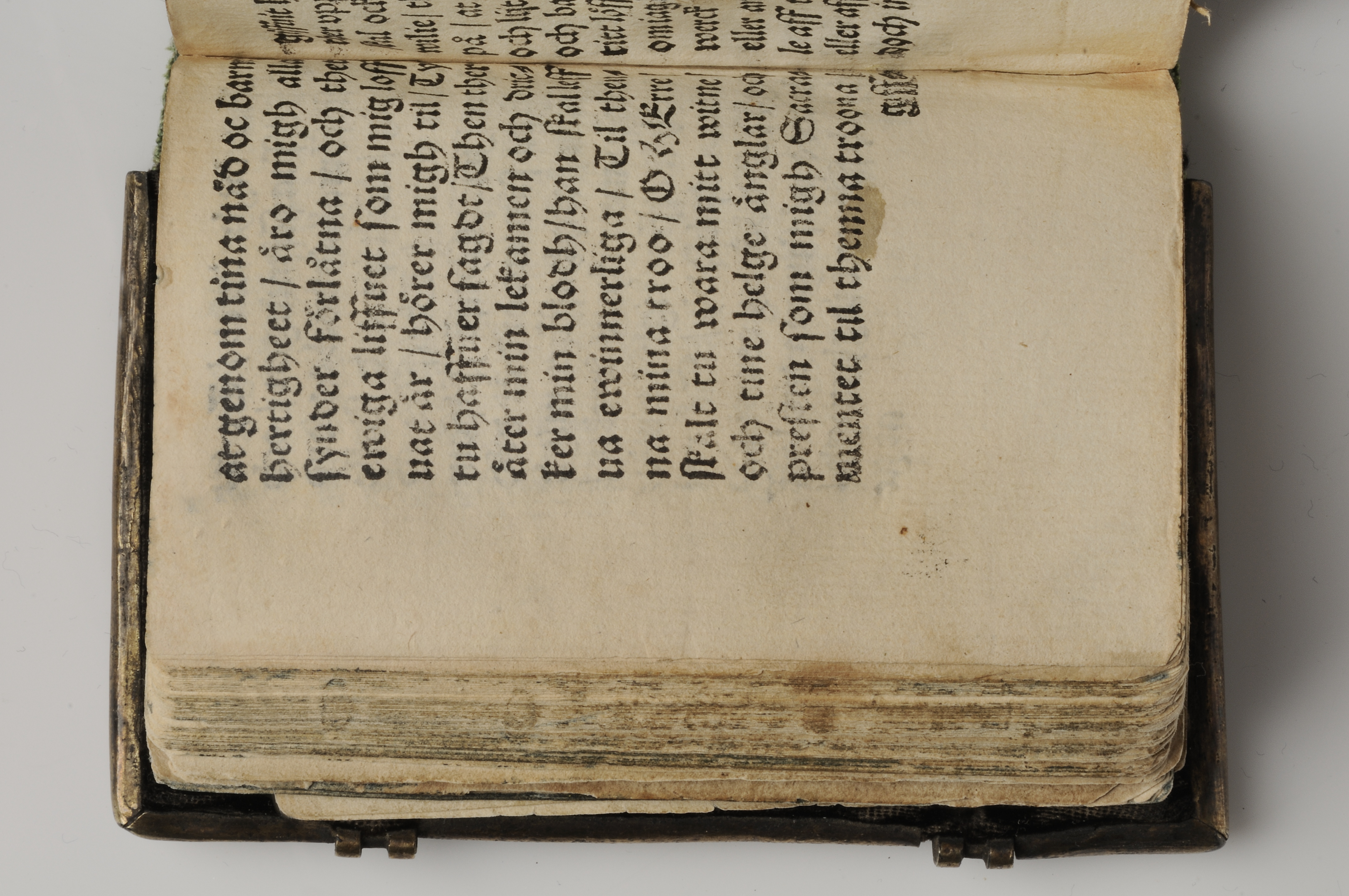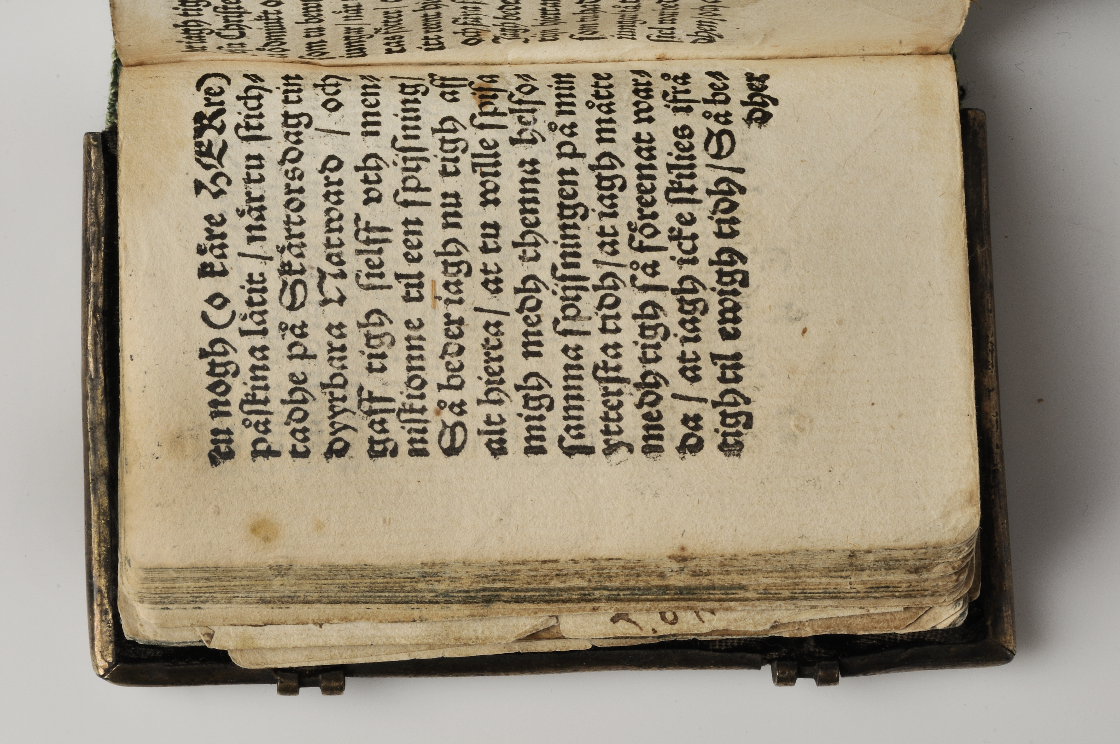 Bönbok som tillhört Malin Sture. Boken är tryckt i Stockholm av Amund Laurentzson 1559. Sigrid Leijonhufvud: Malin Stures bönbok, Fornvännen 1907.