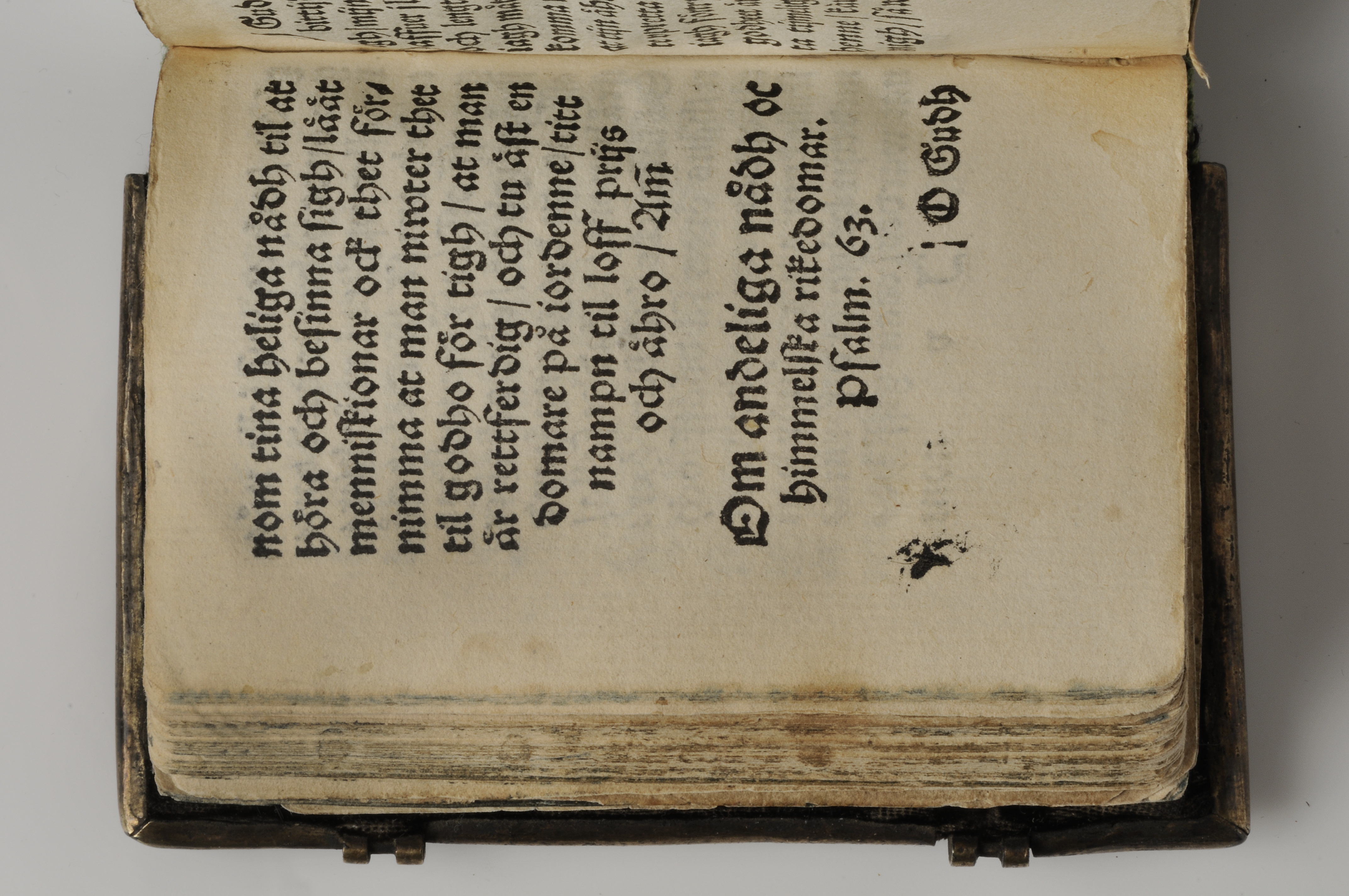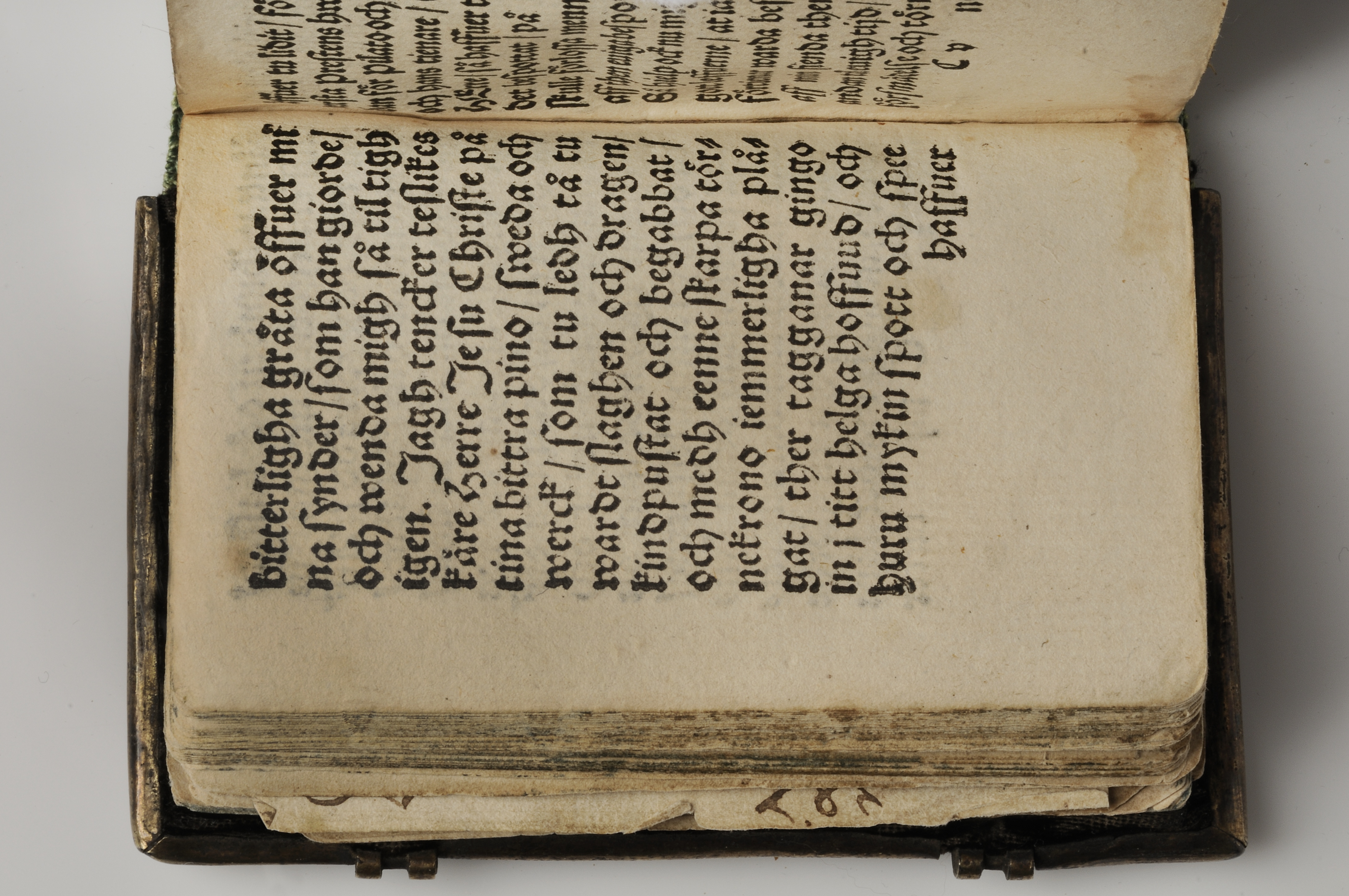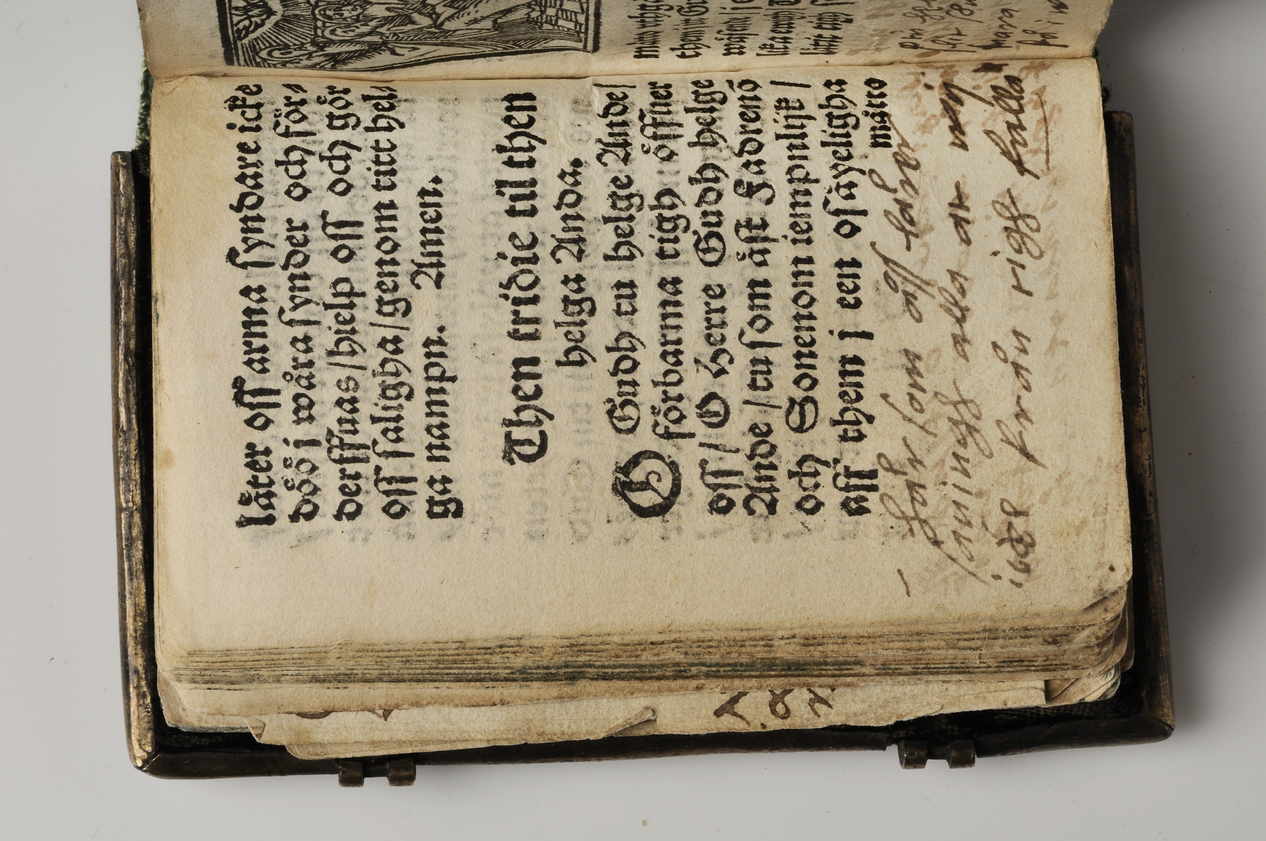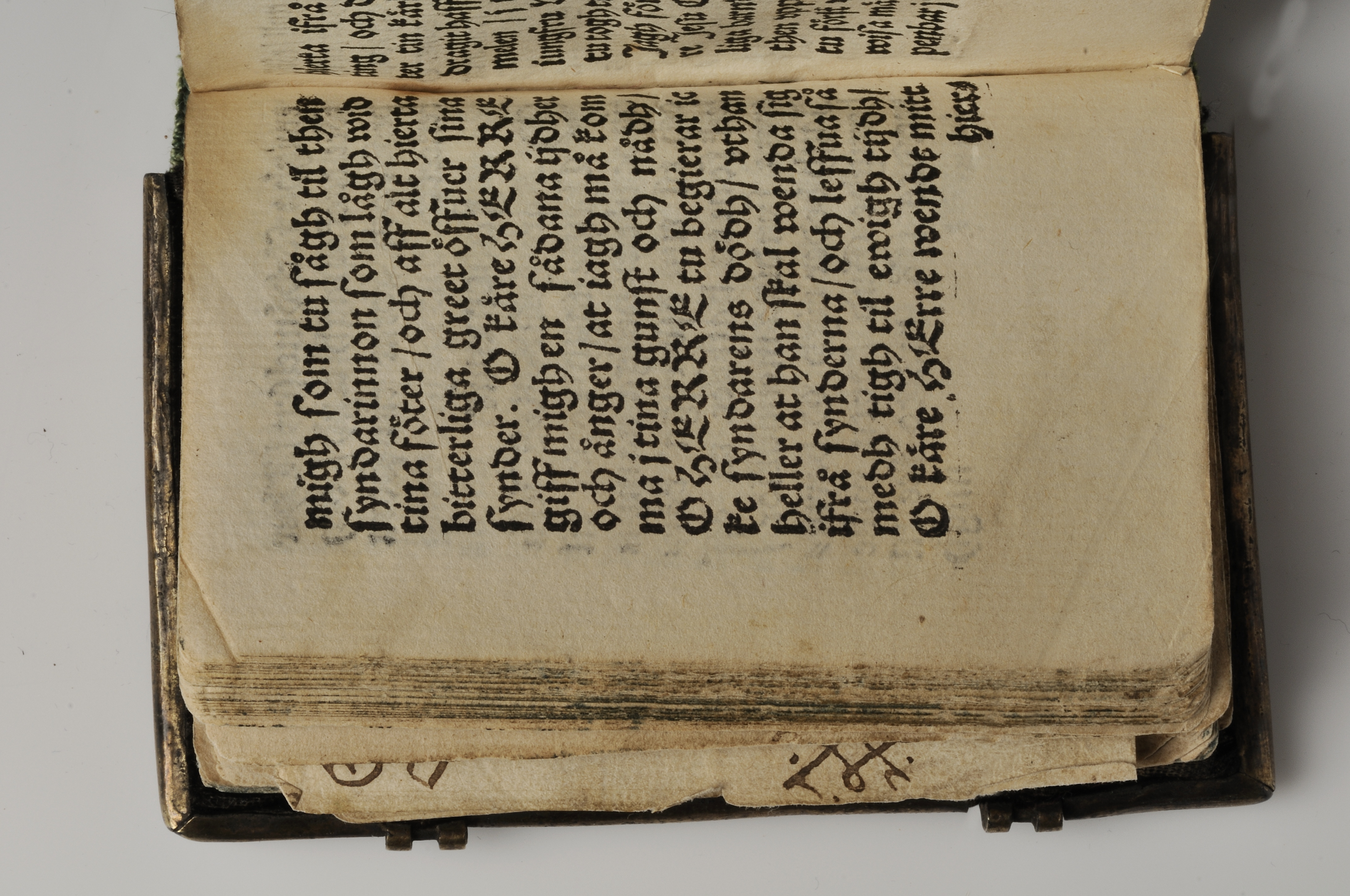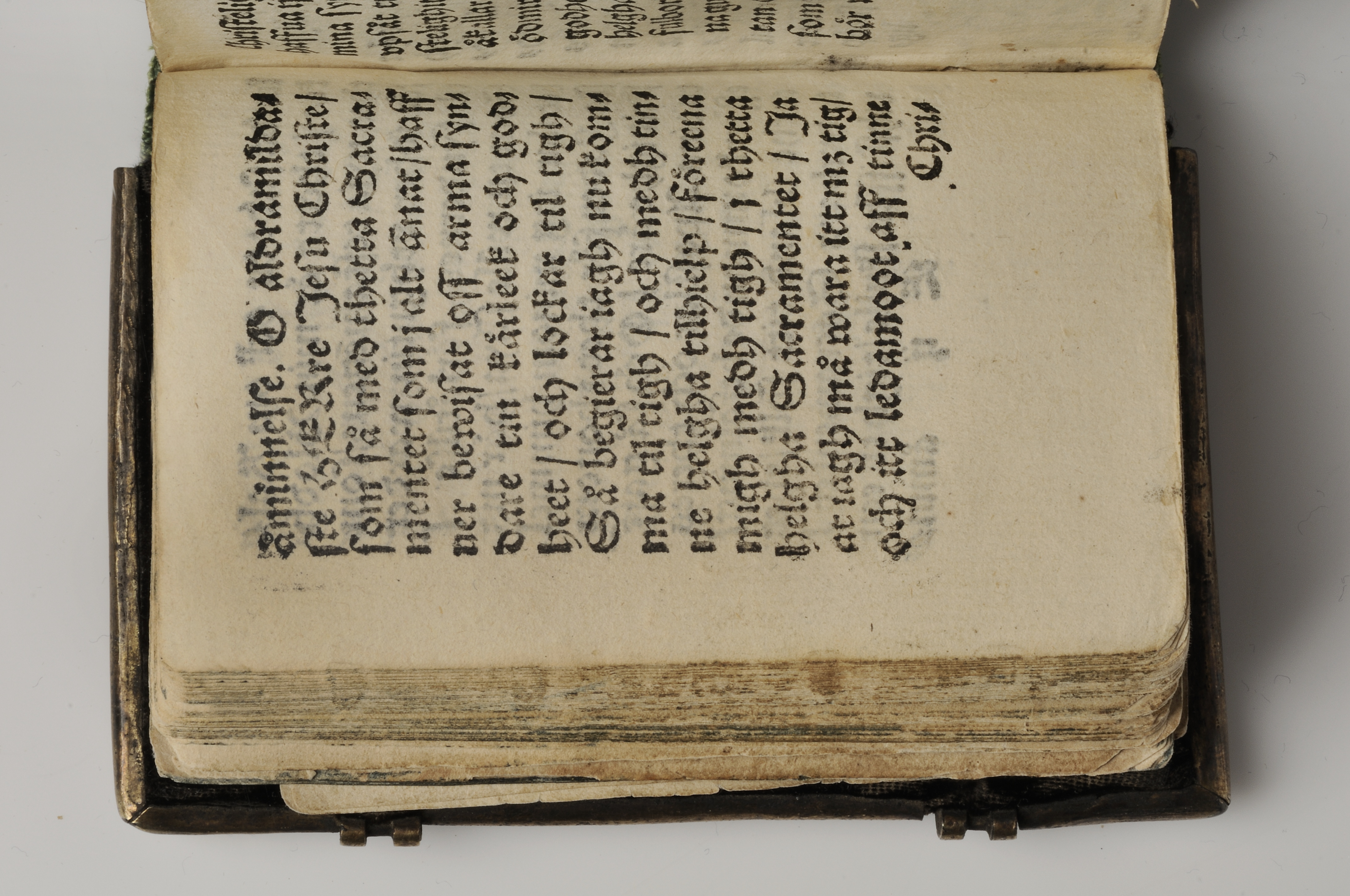 Bönbok som tillhört Malin Sture. Boken är tryckt i Stockholm av Amund Laurentzson 1559. Sigrid Leijonhufvud: Malin Stures bönbok, Fornvännen 1907.
