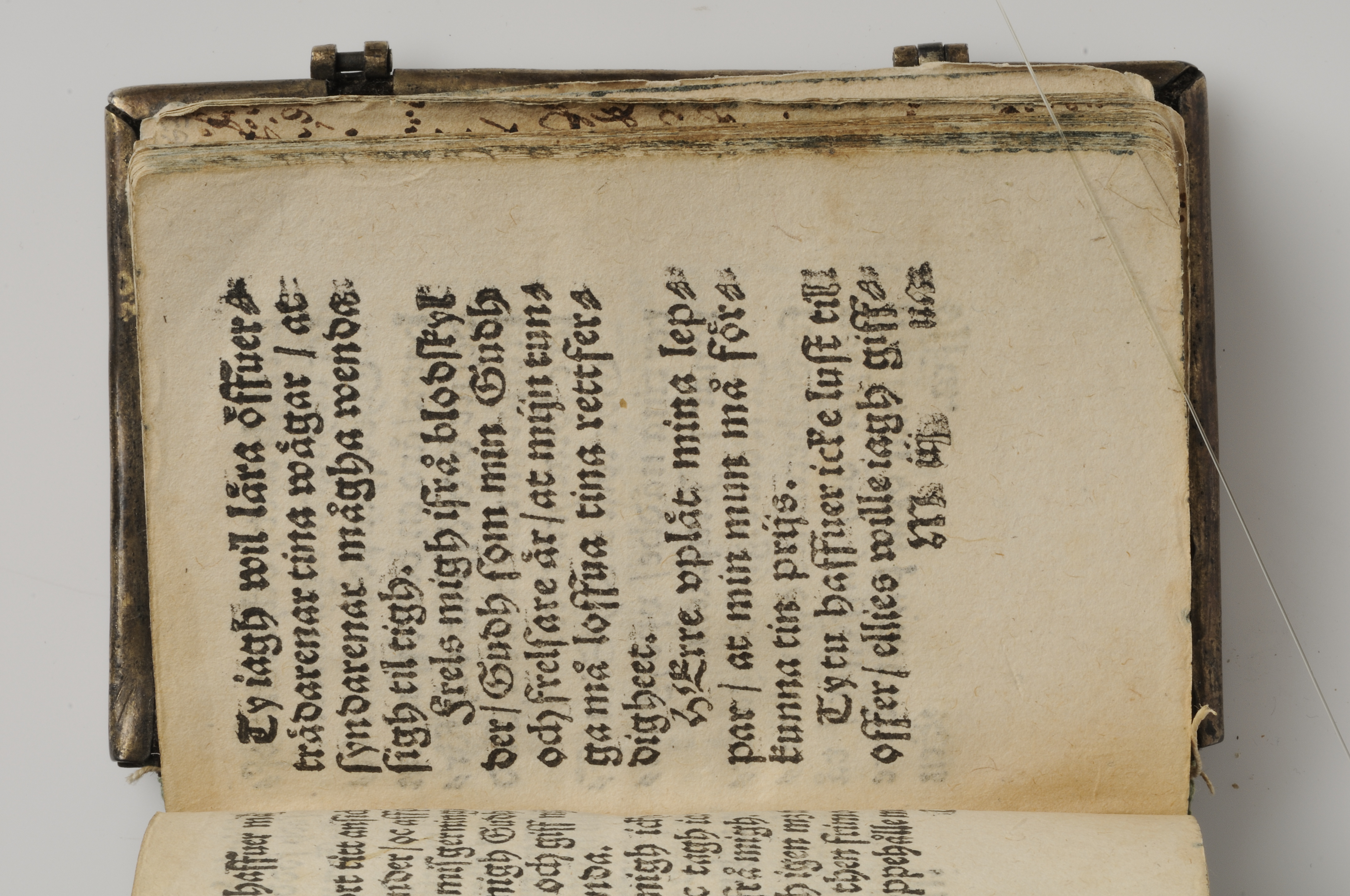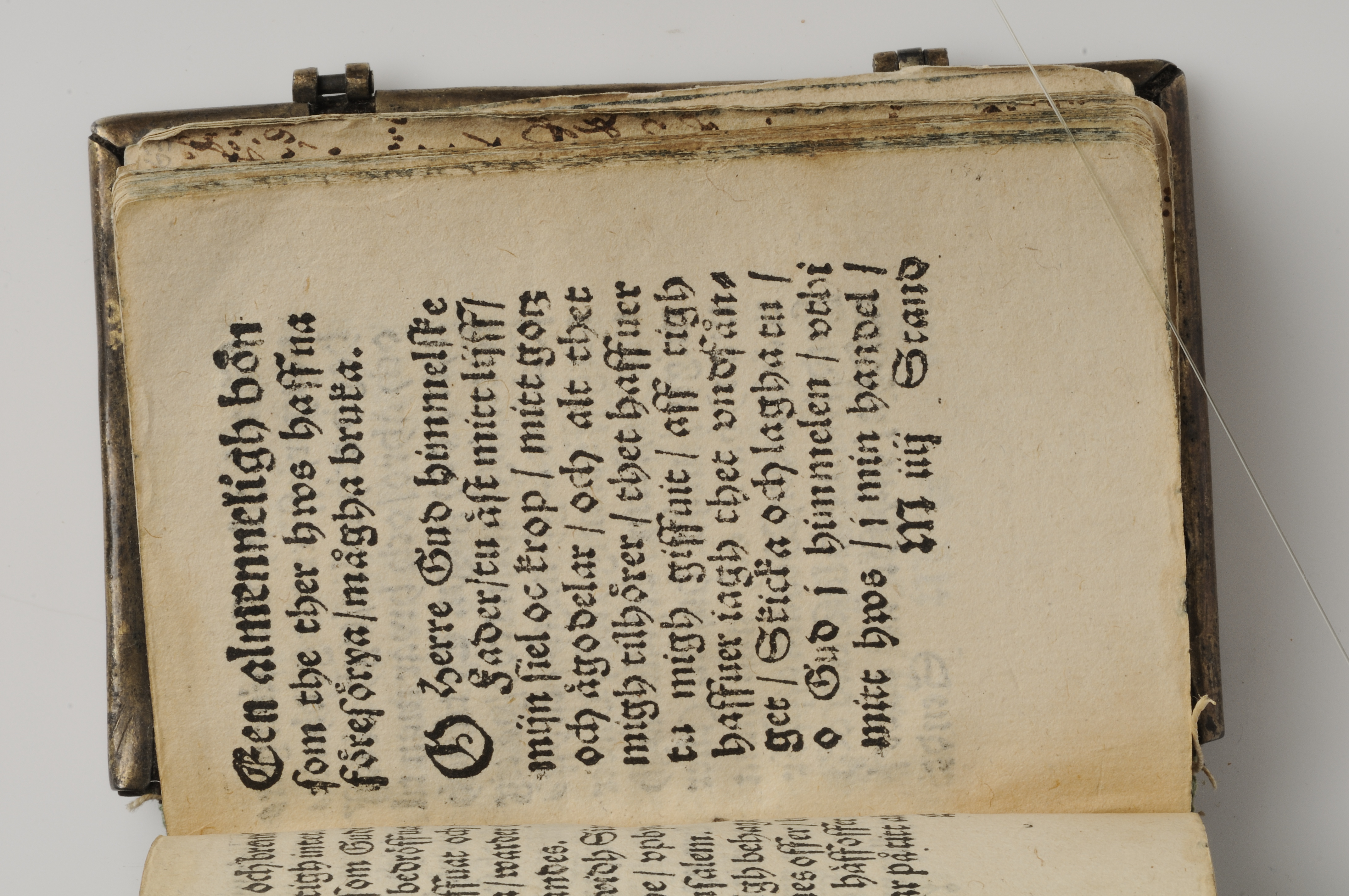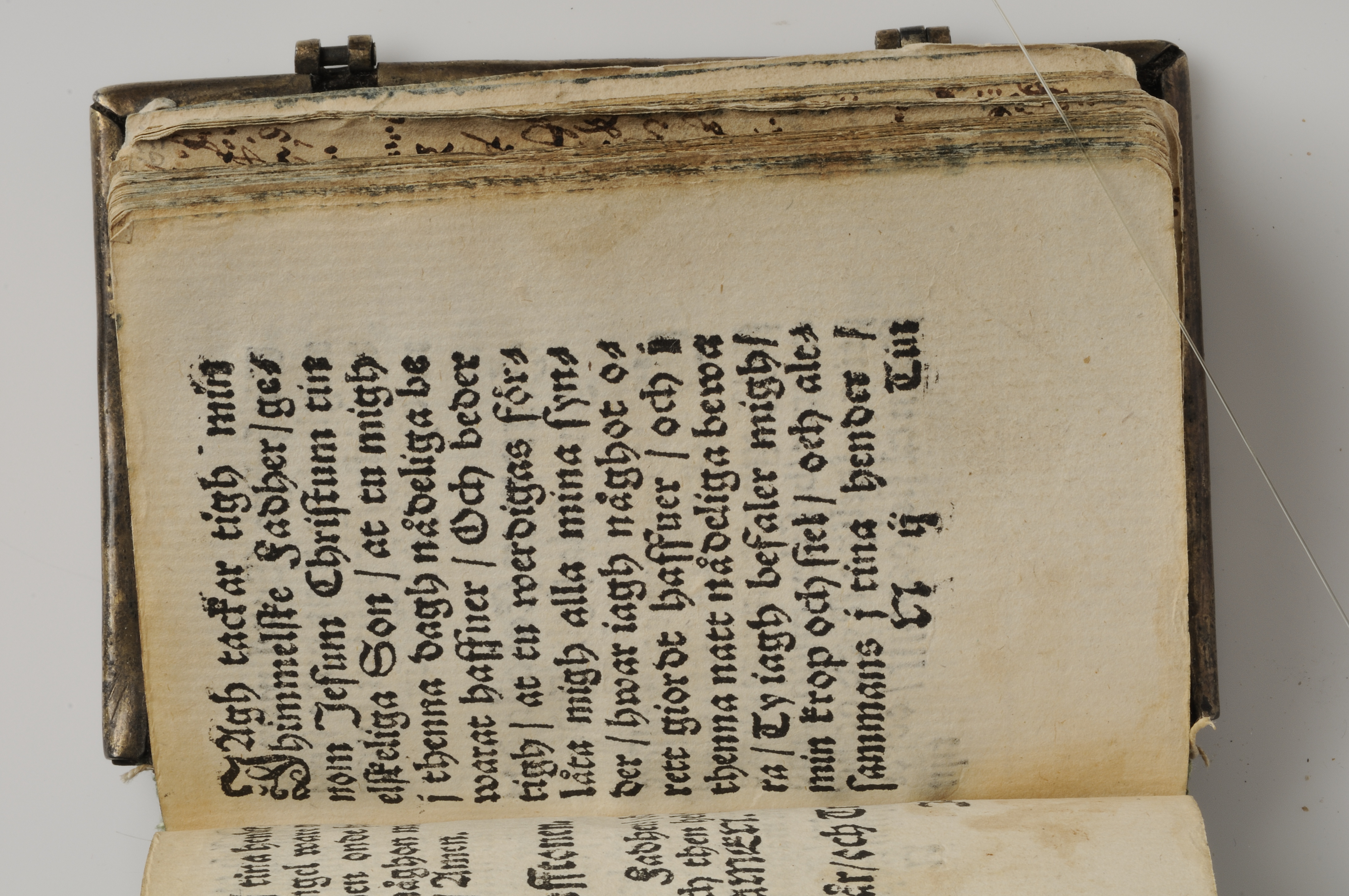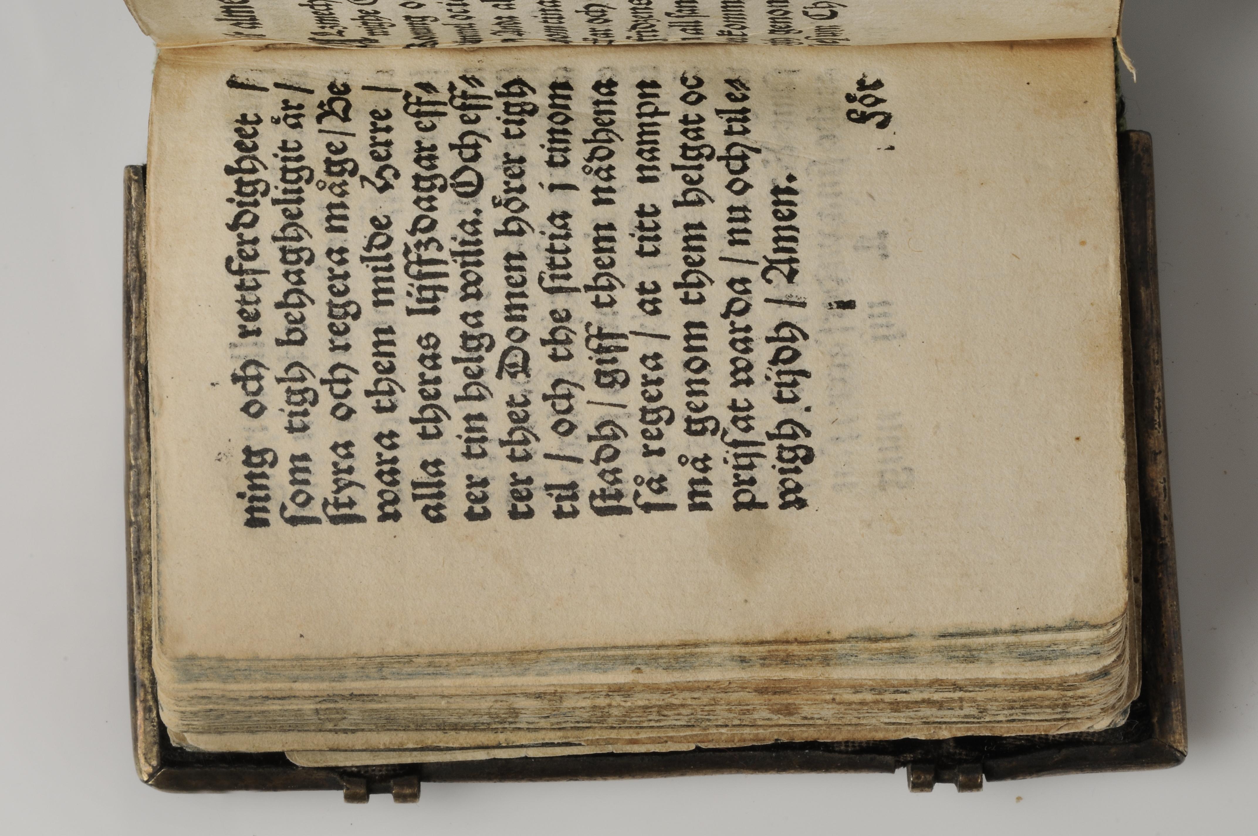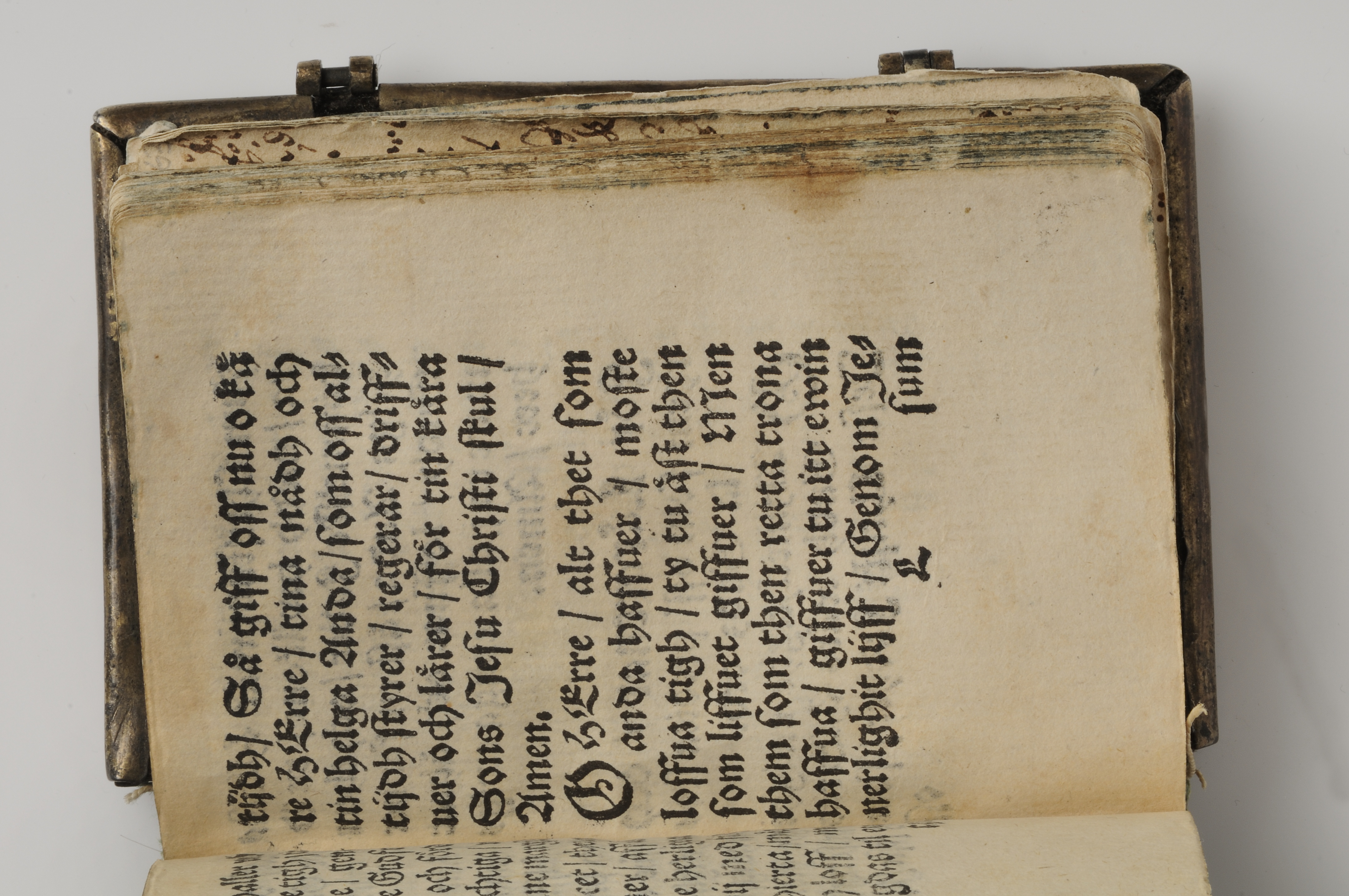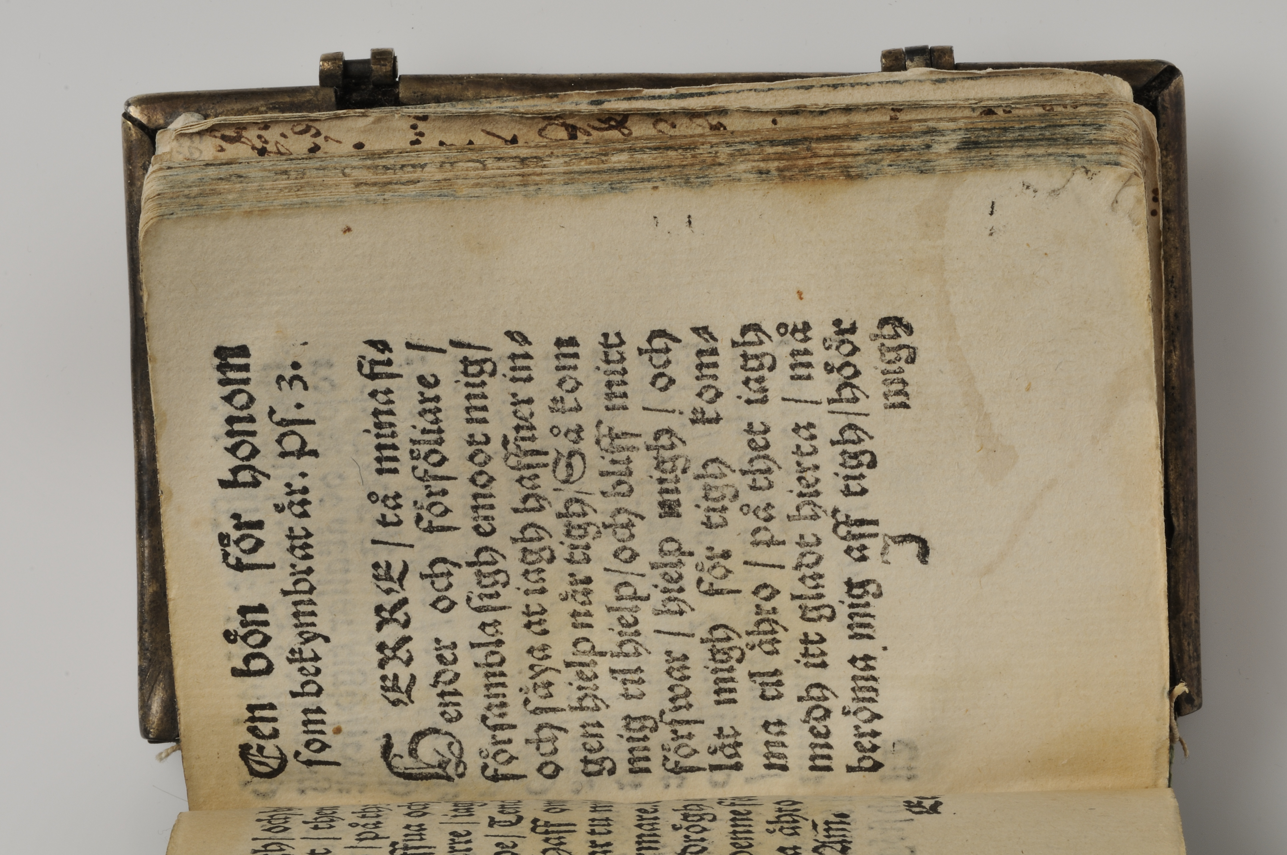 Bönbok som tillhört Malin Sture. Boken är tryckt i Stockholm av Amund Laurentzson 1559. Sigrid Leijonhufvud: Malin Stures bönbok, Fornvännen 1907.