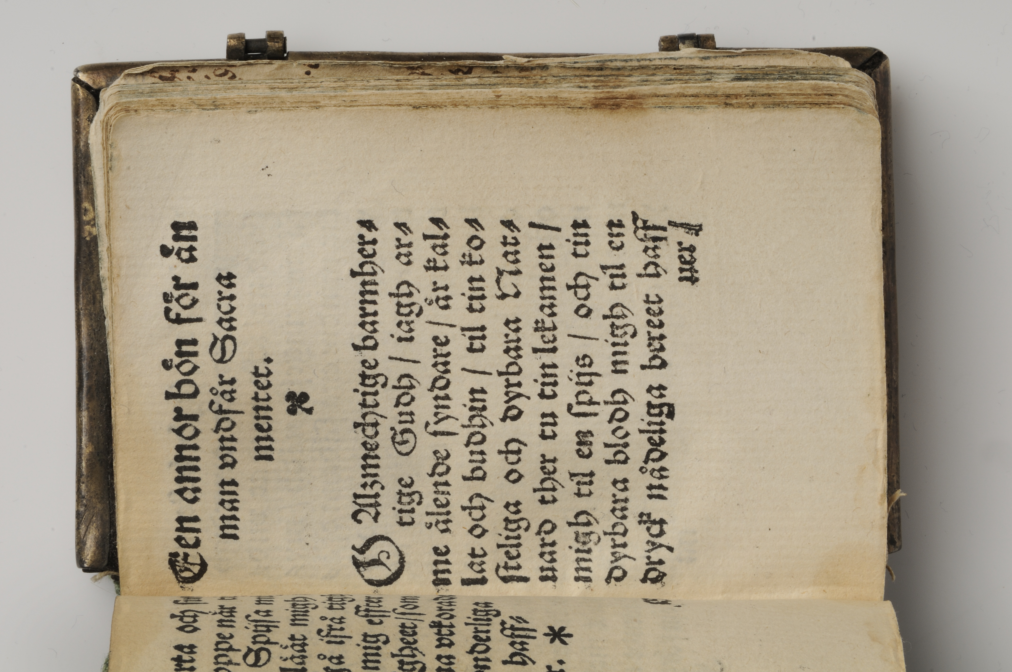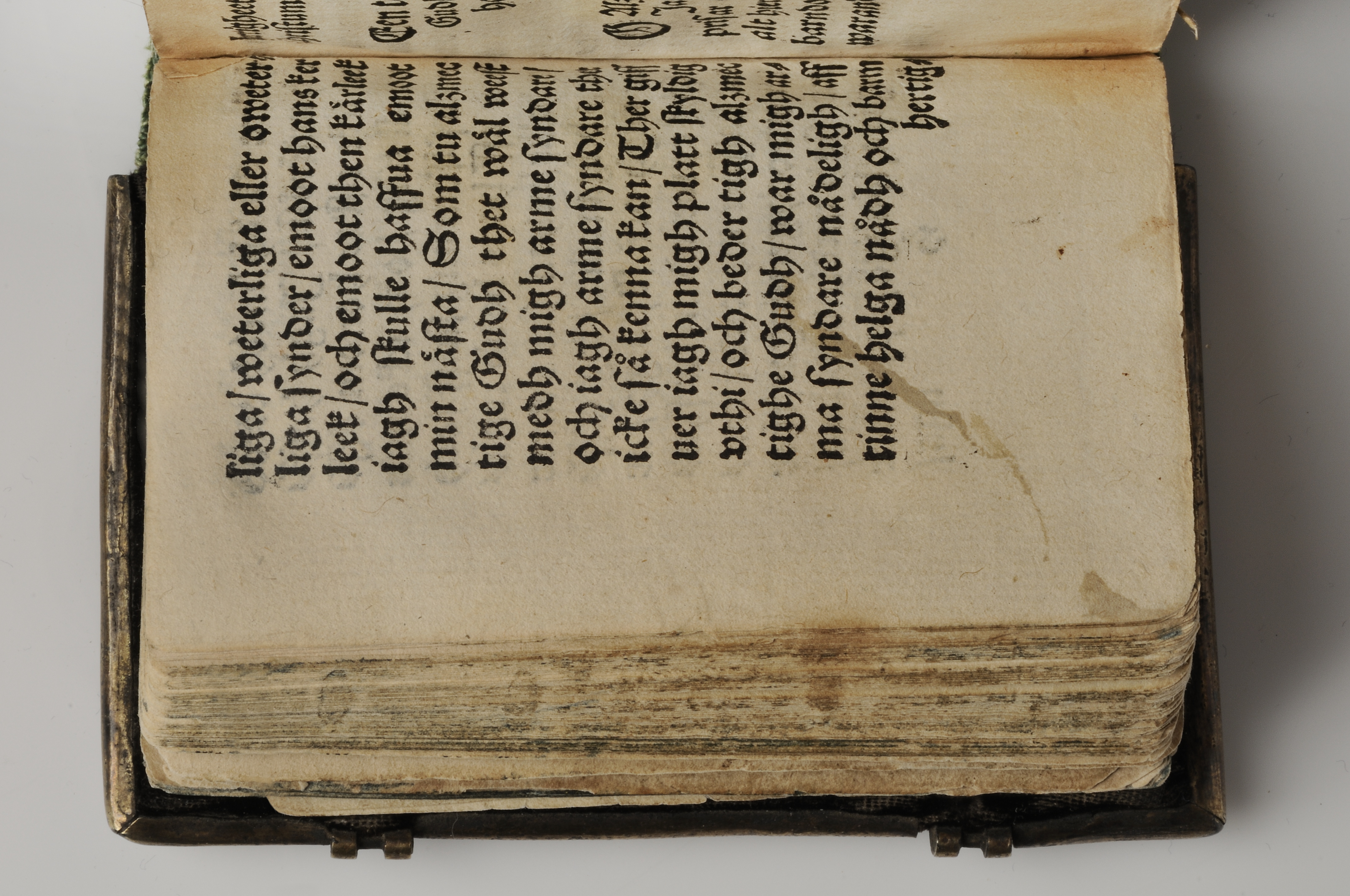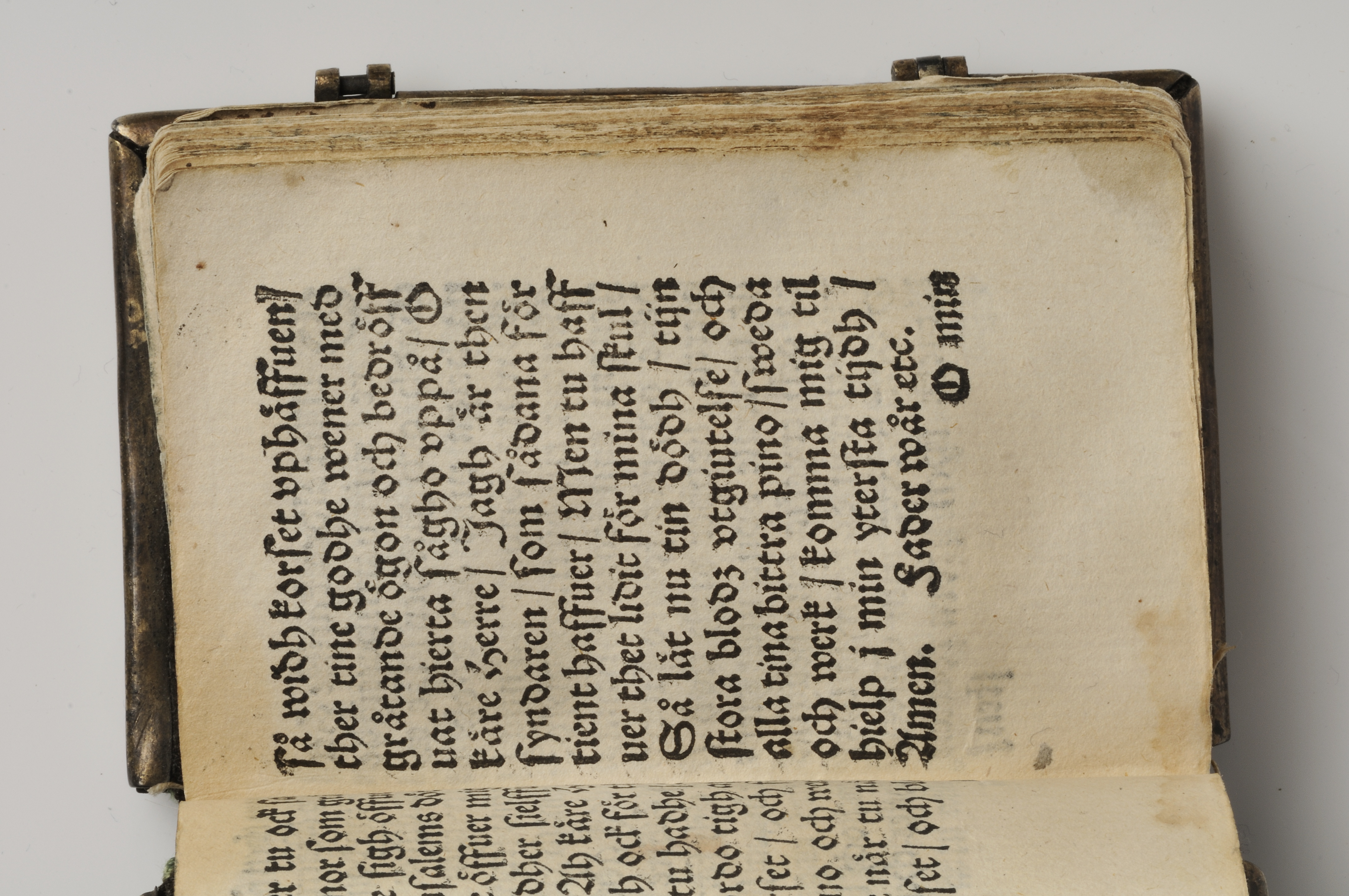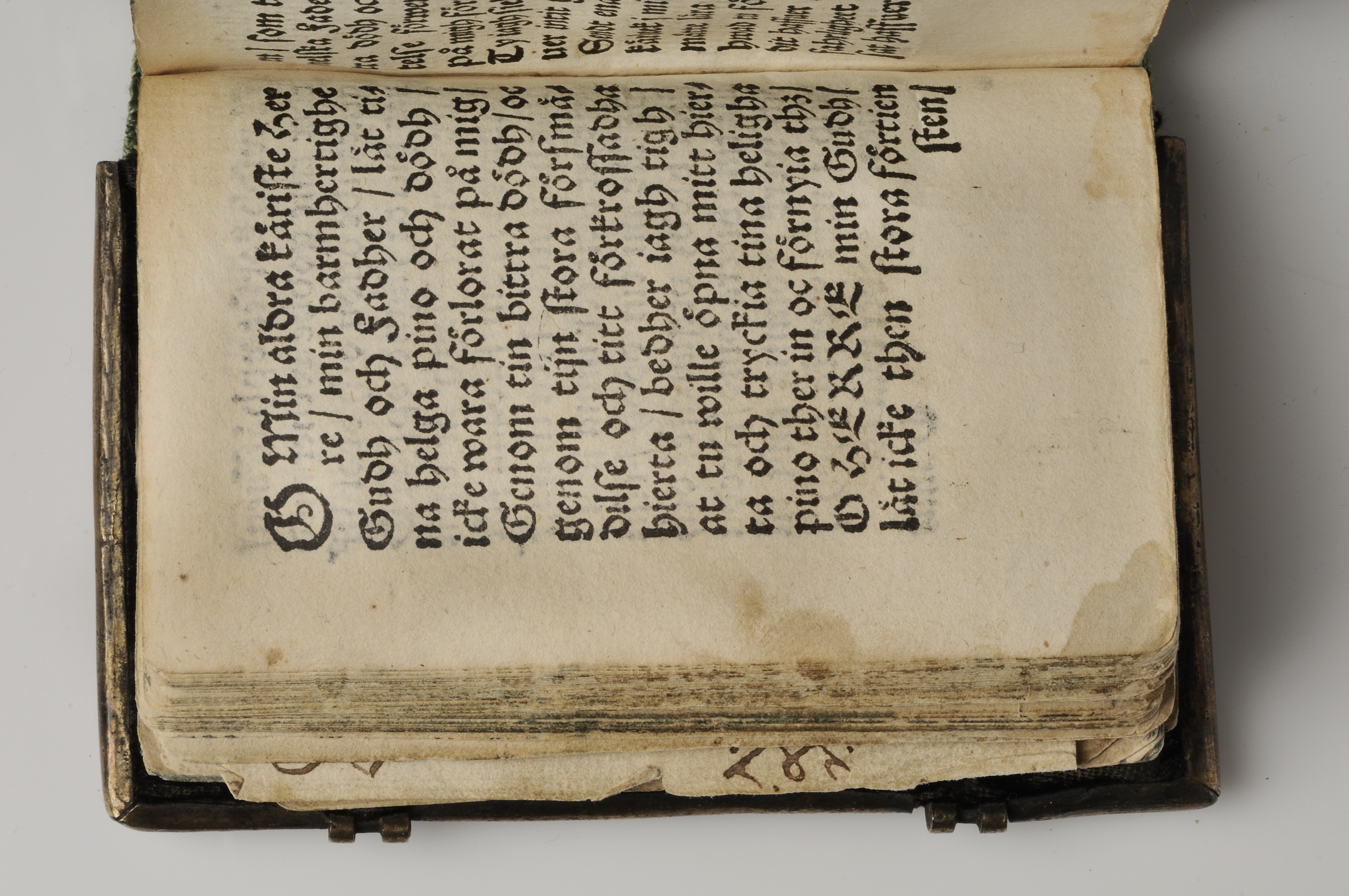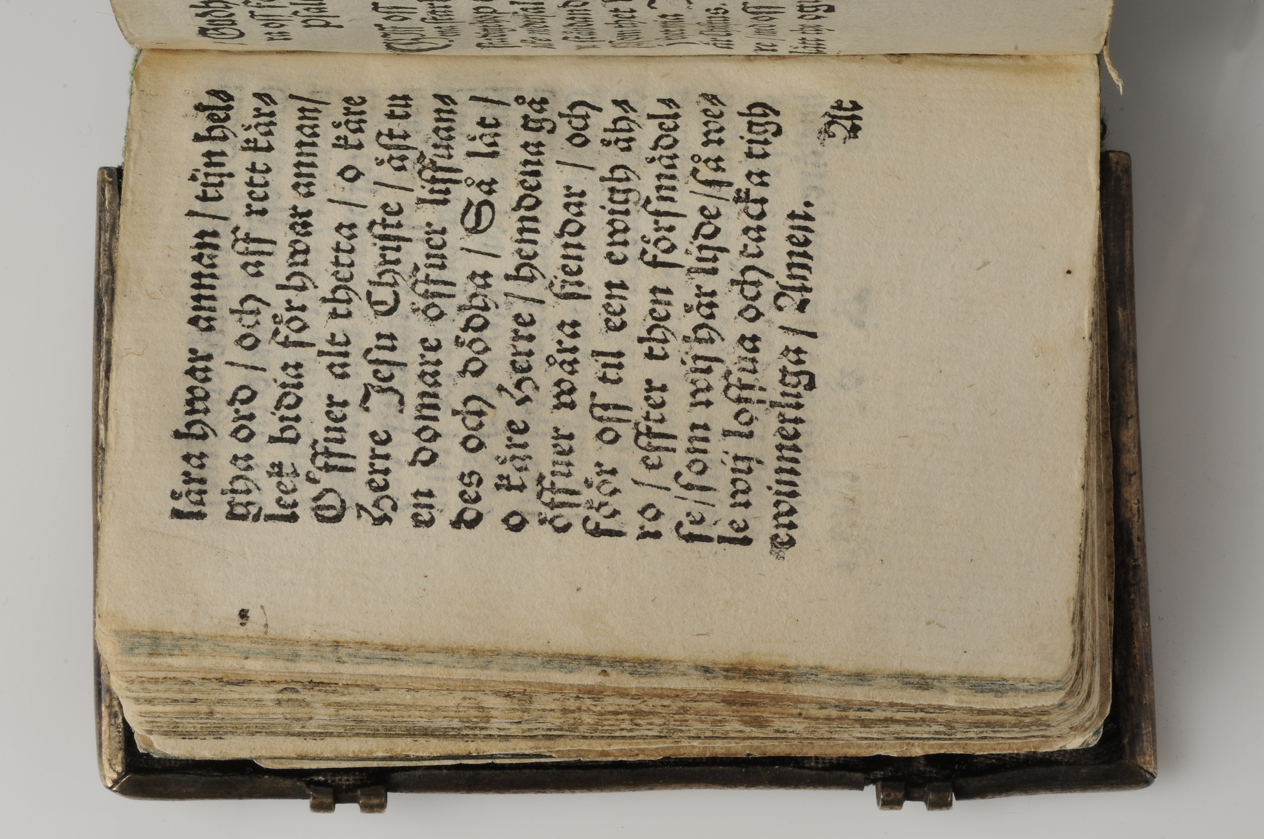 Bönbok som tillhört Malin Sture. Boken är tryckt i Stockholm av Amund Laurentzson 1559. Sigrid Leijonhufvud: Malin Stures bönbok, Fornvännen 1907.