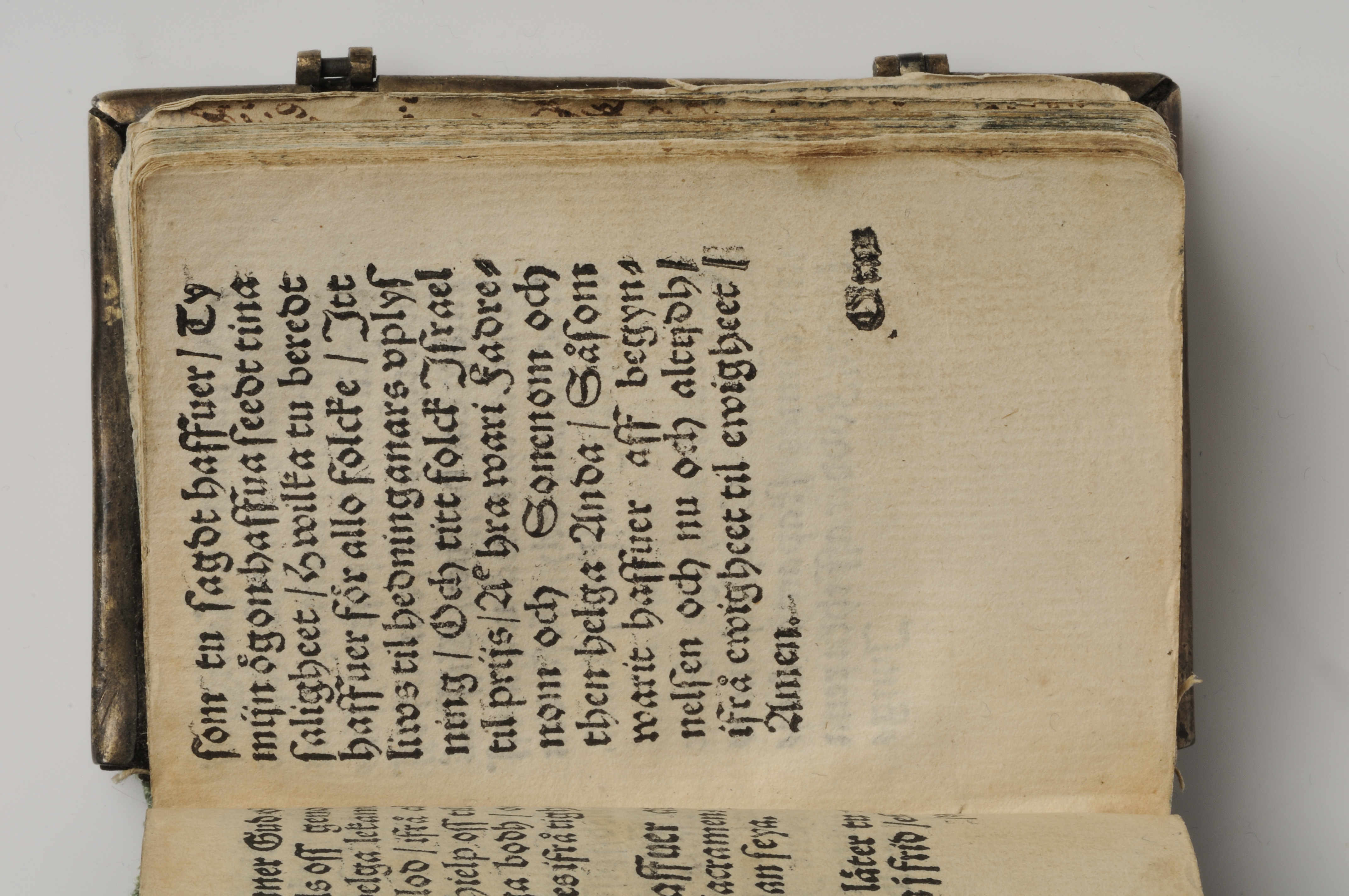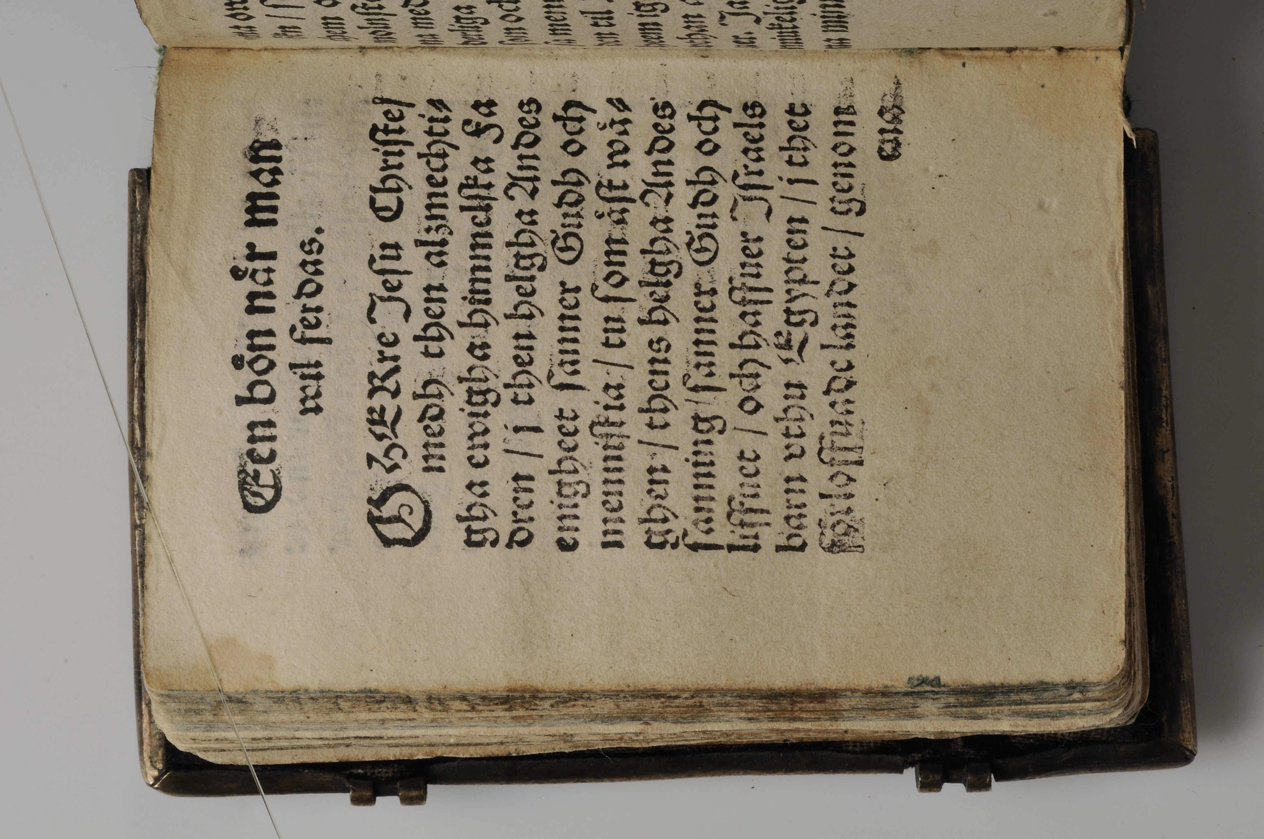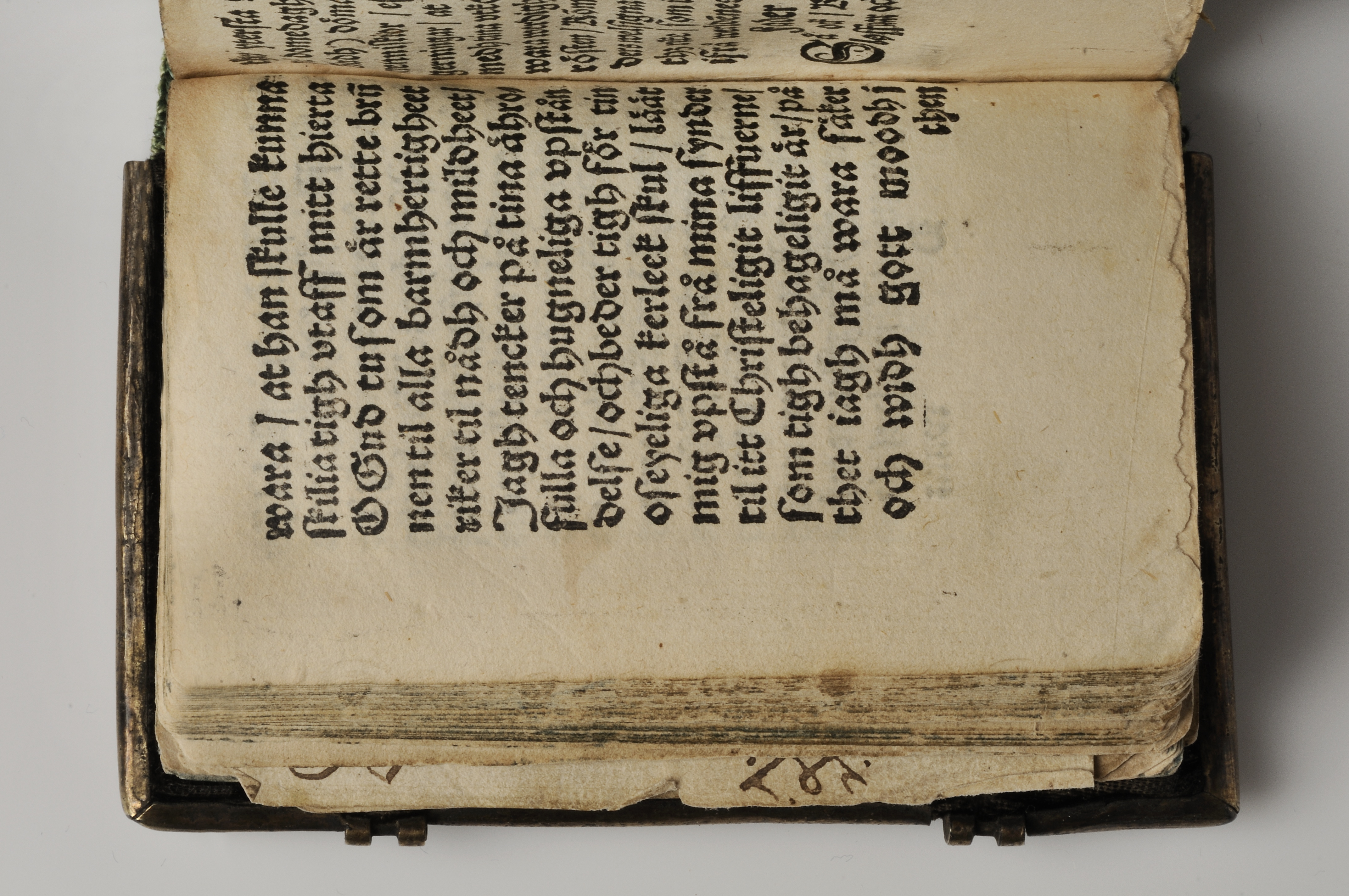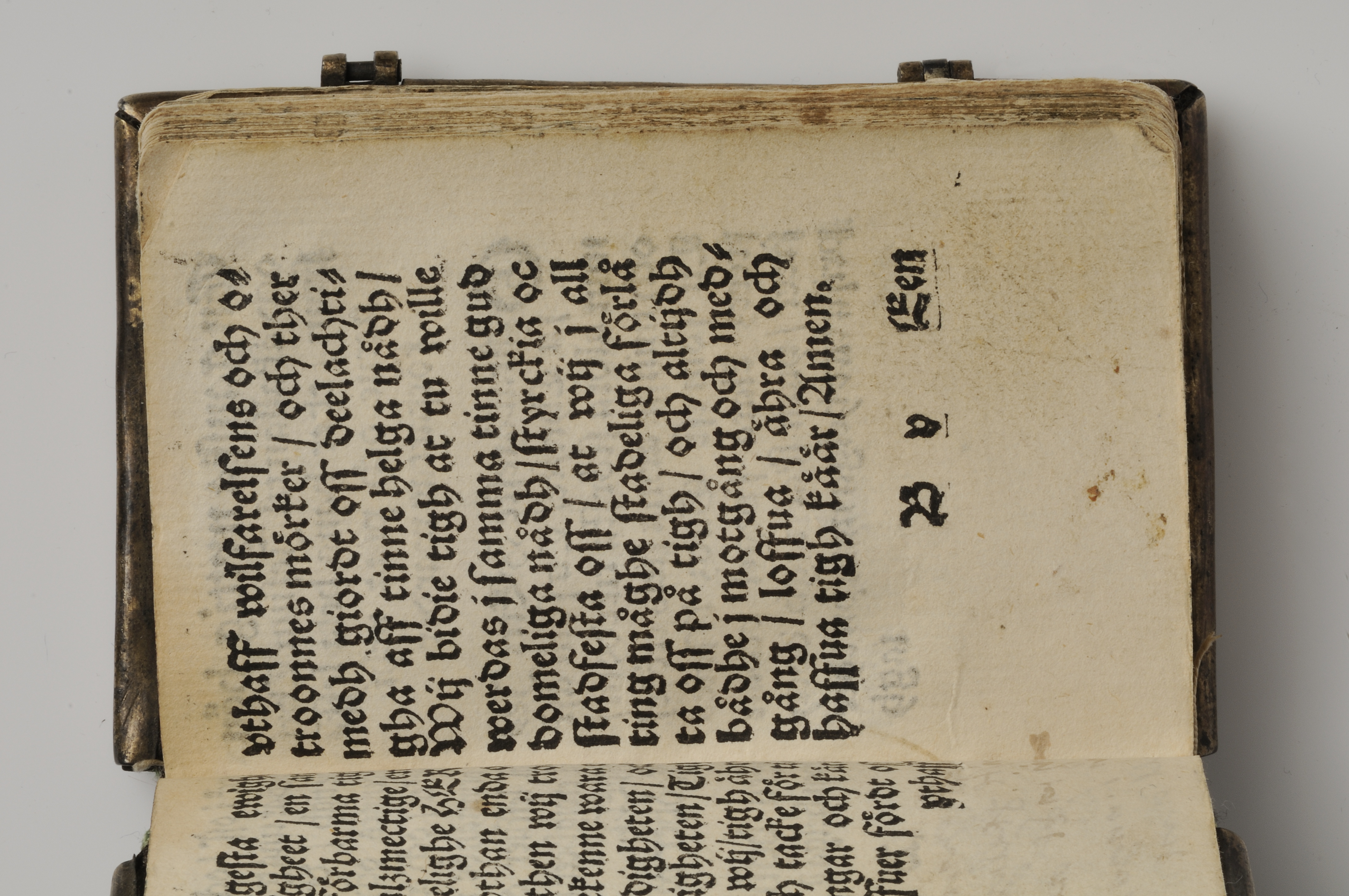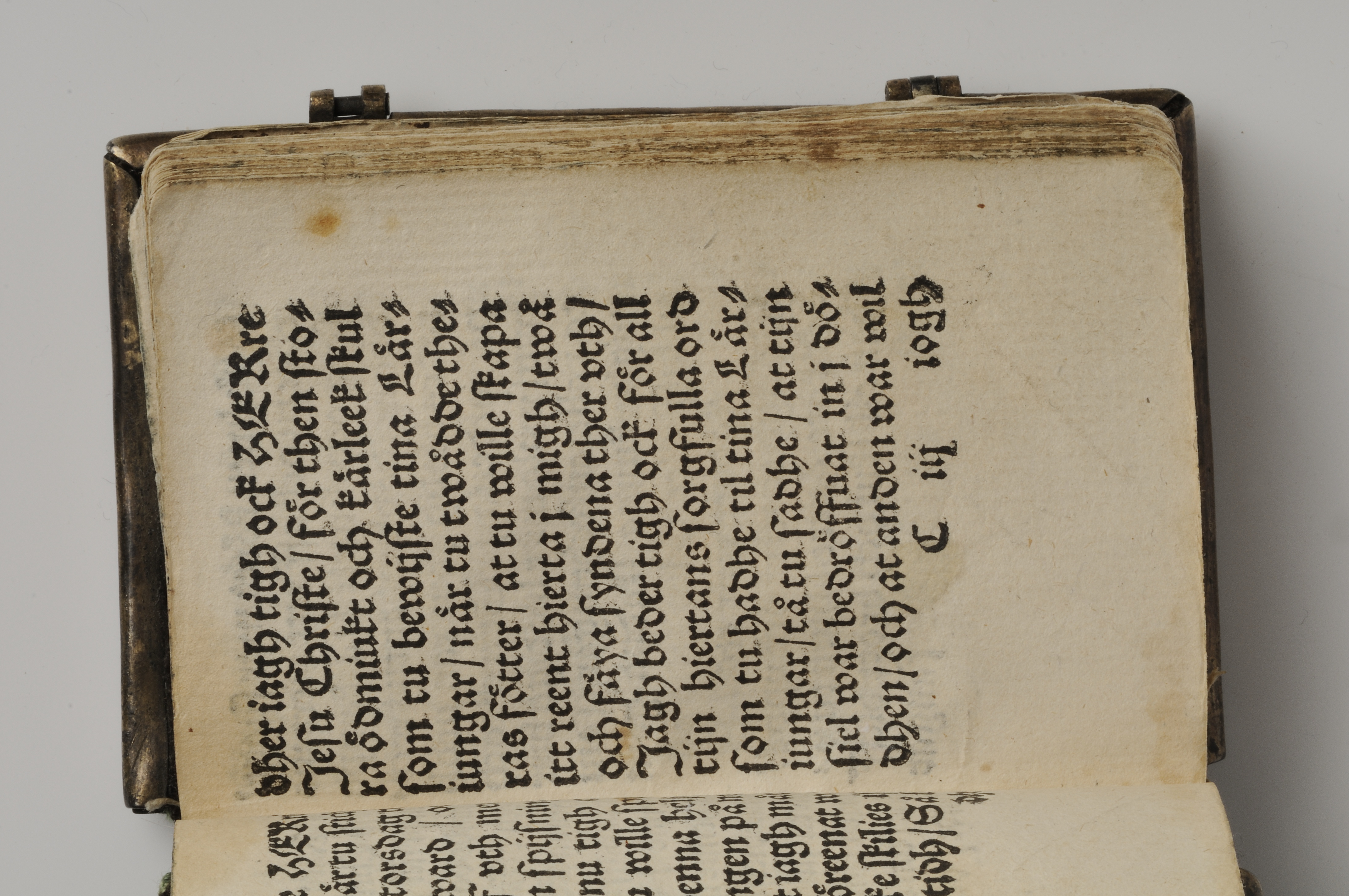 Bönbok som tillhört Malin Sture. Boken är tryckt i Stockholm av Amund Laurentzson 1559. Sigrid Leijonhufvud: Malin Stures bönbok, Fornvännen 1907.