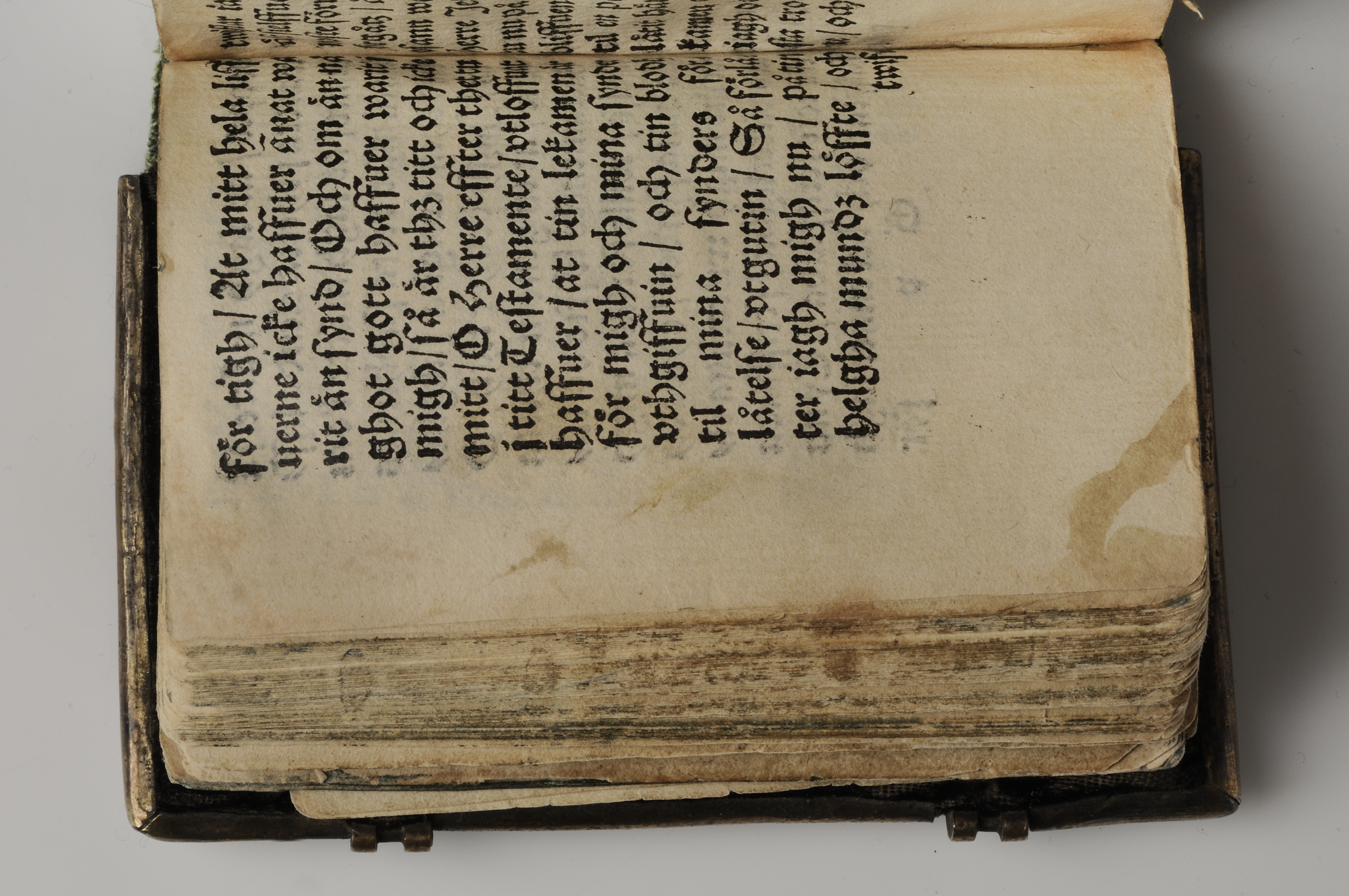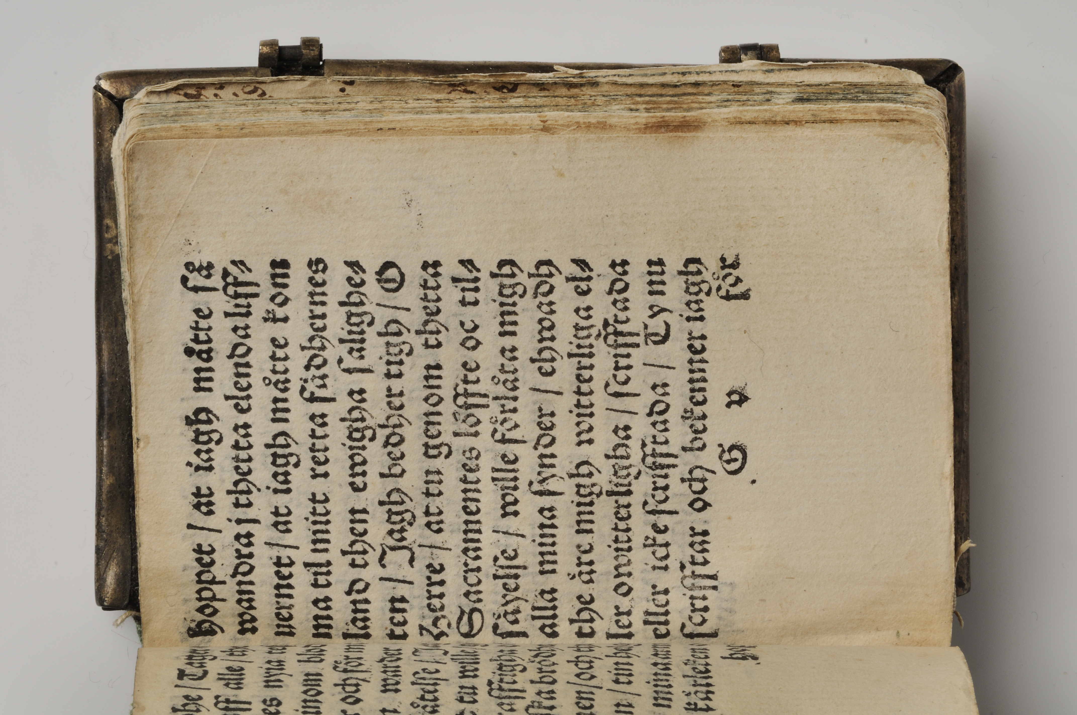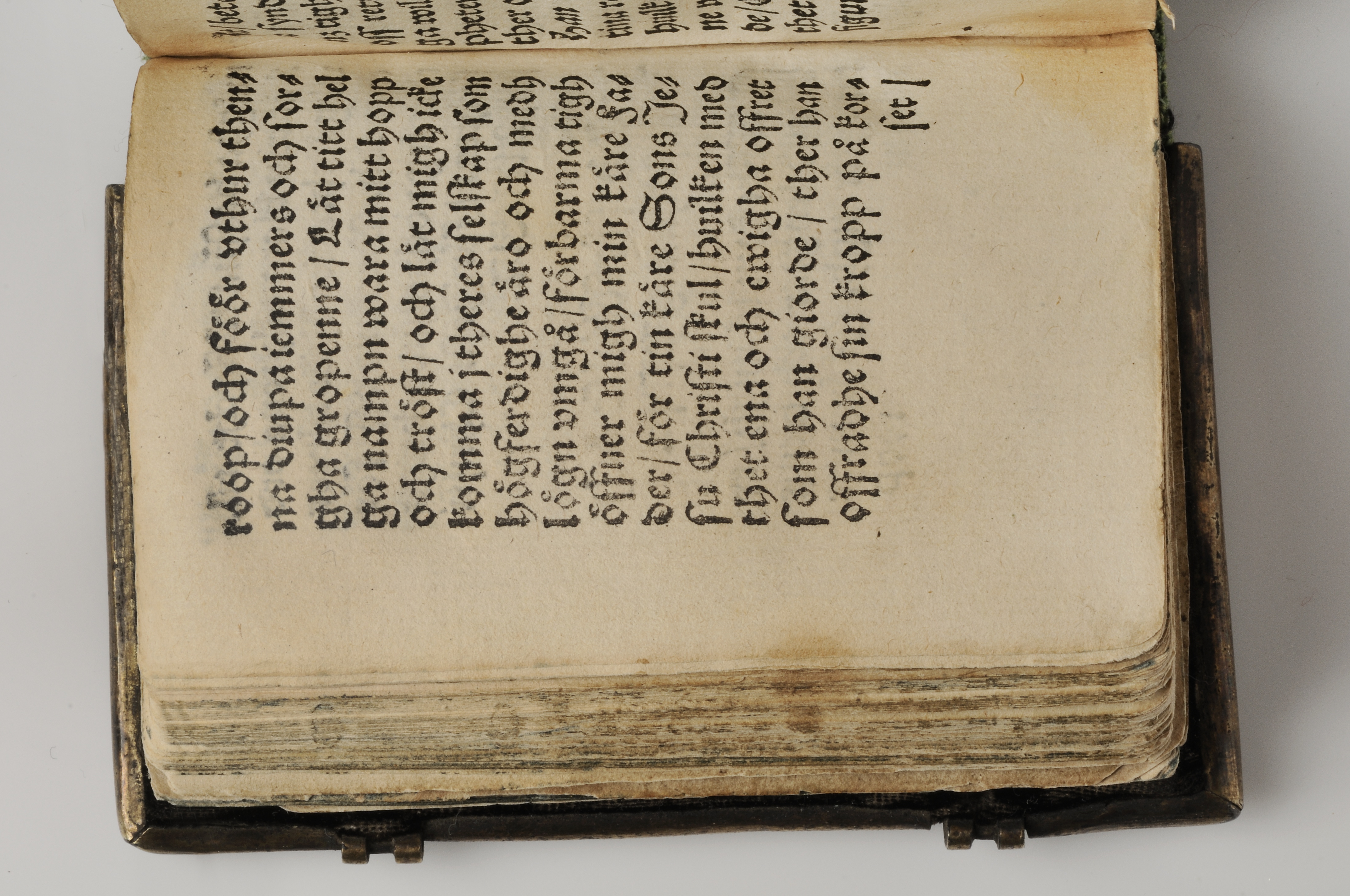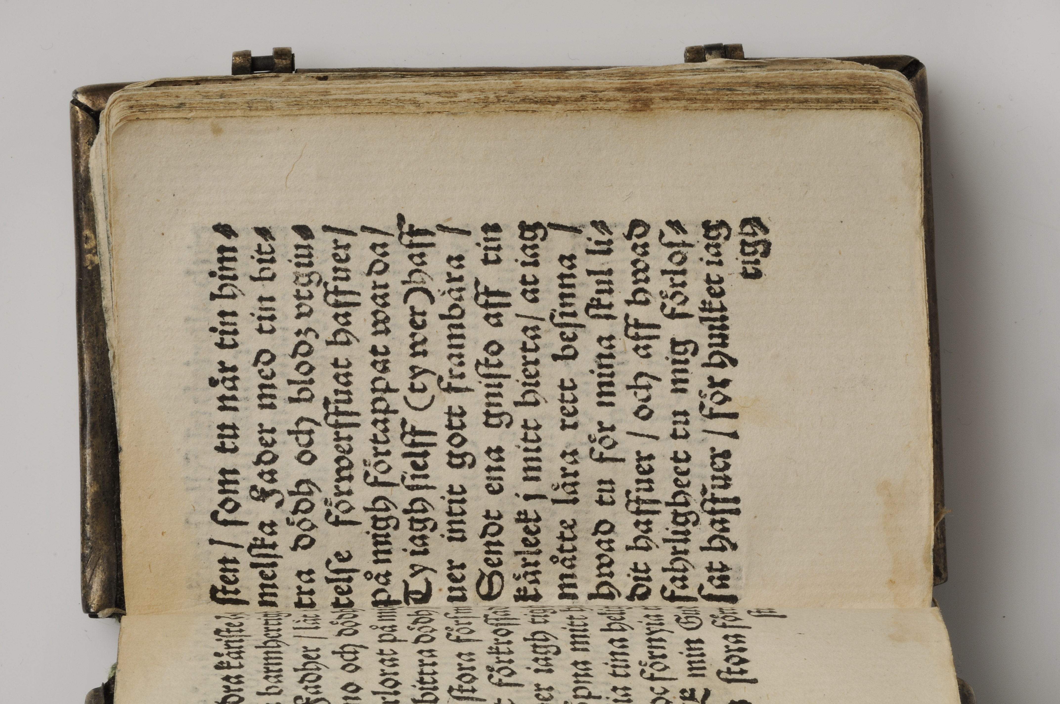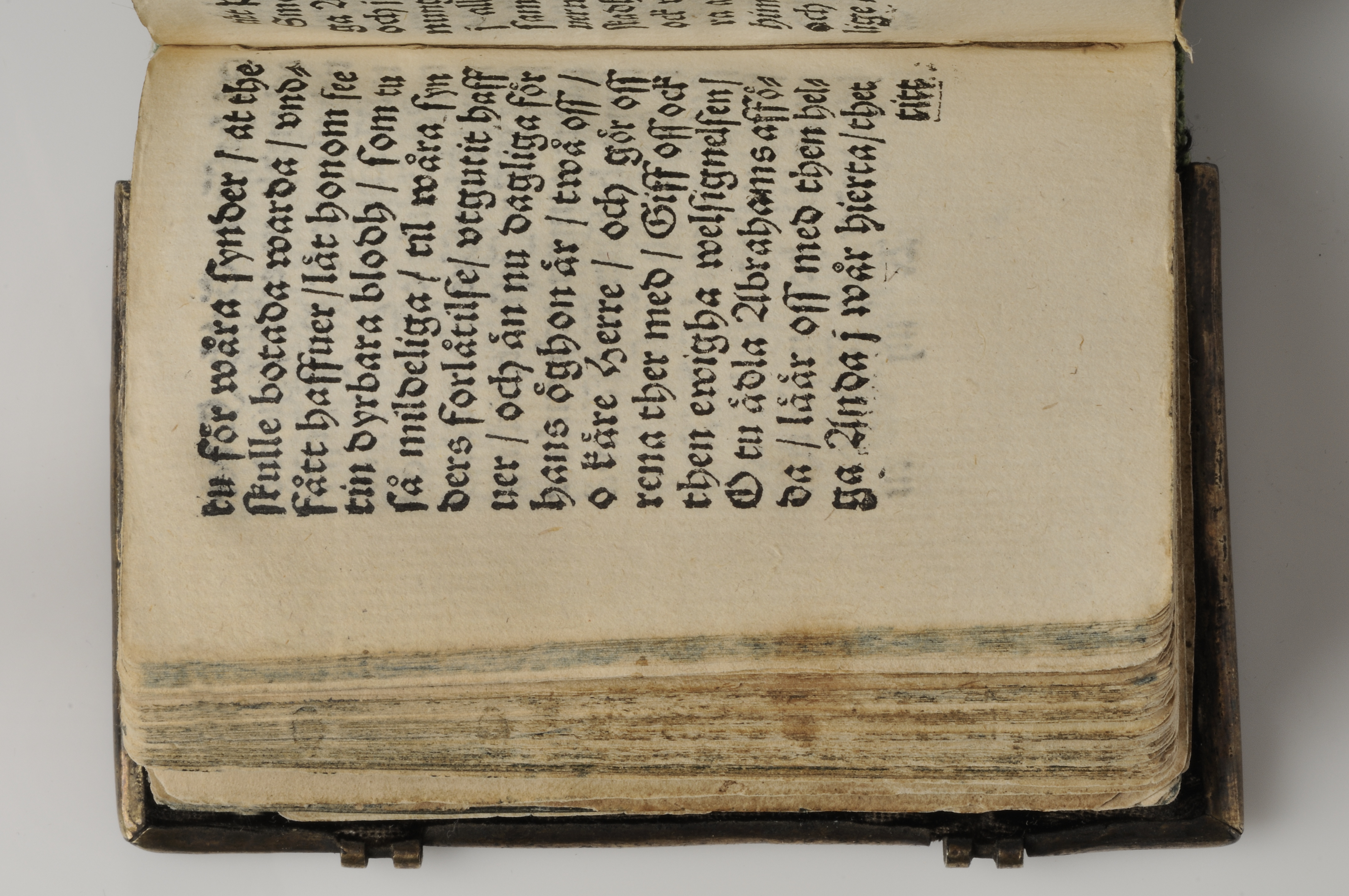 Bönbok som tillhört Malin Sture. Boken är tryckt i Stockholm av Amund Laurentzson 1559. Sigrid Leijonhufvud: Malin Stures bönbok, Fornvännen 1907.