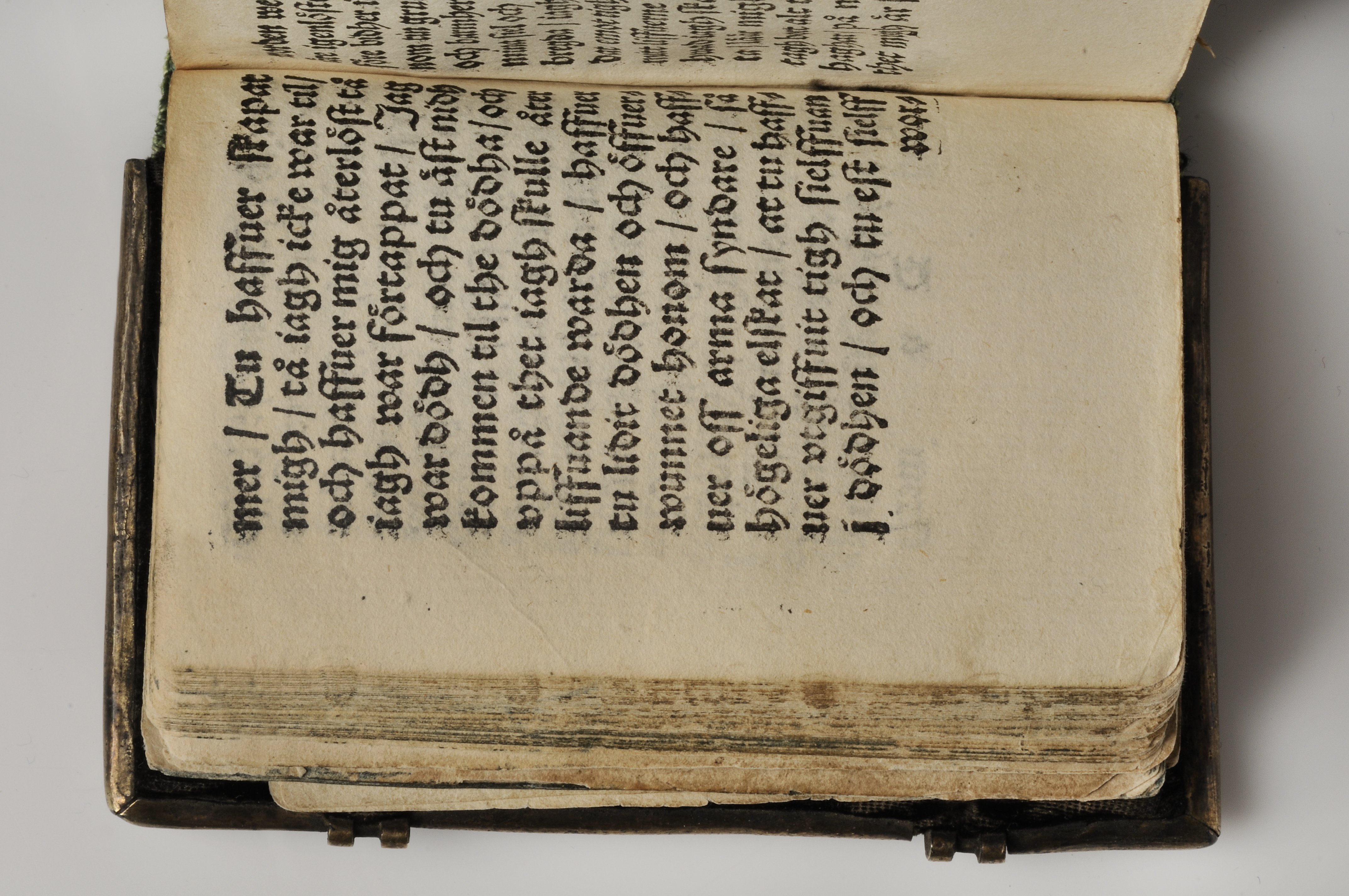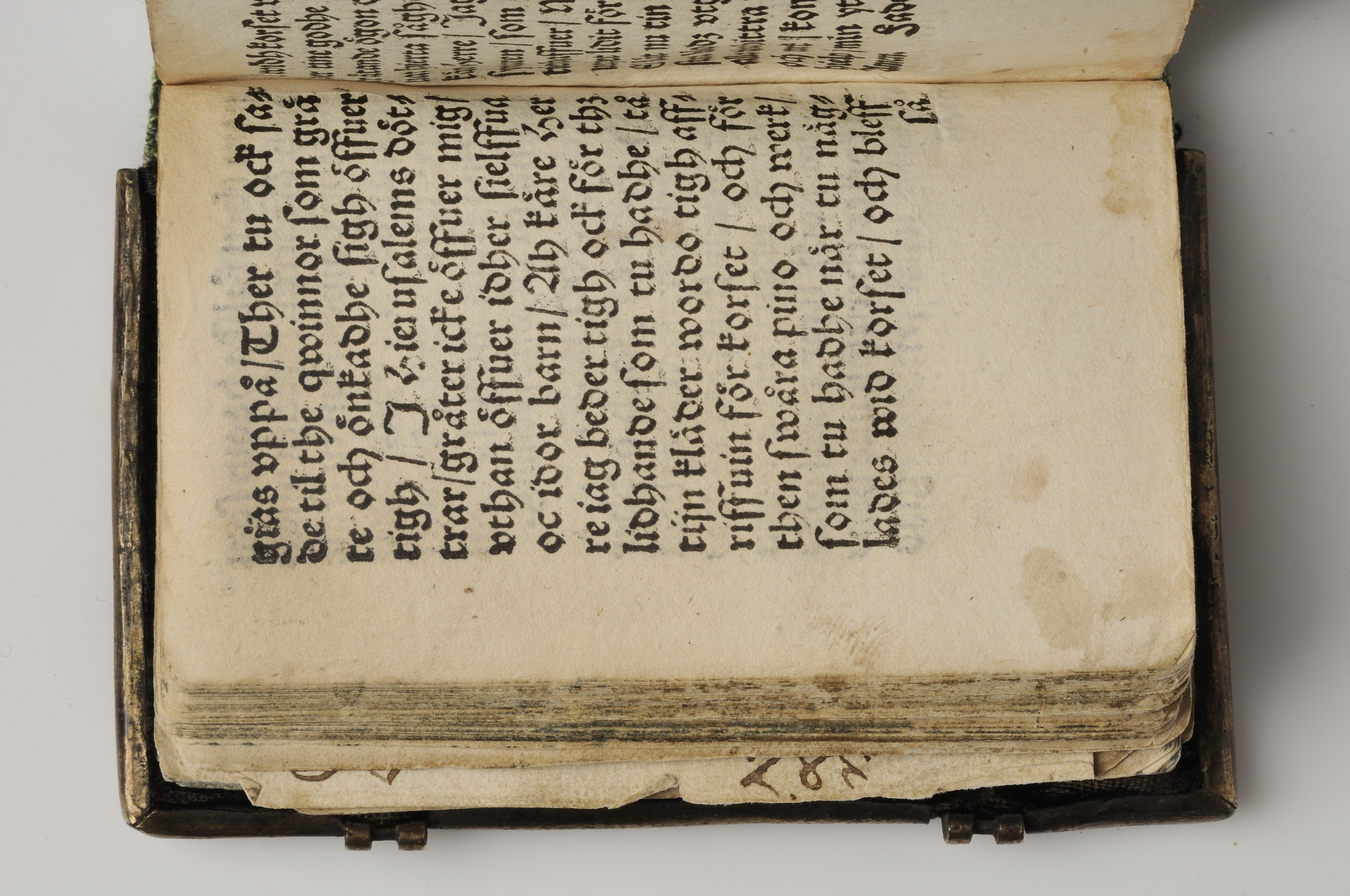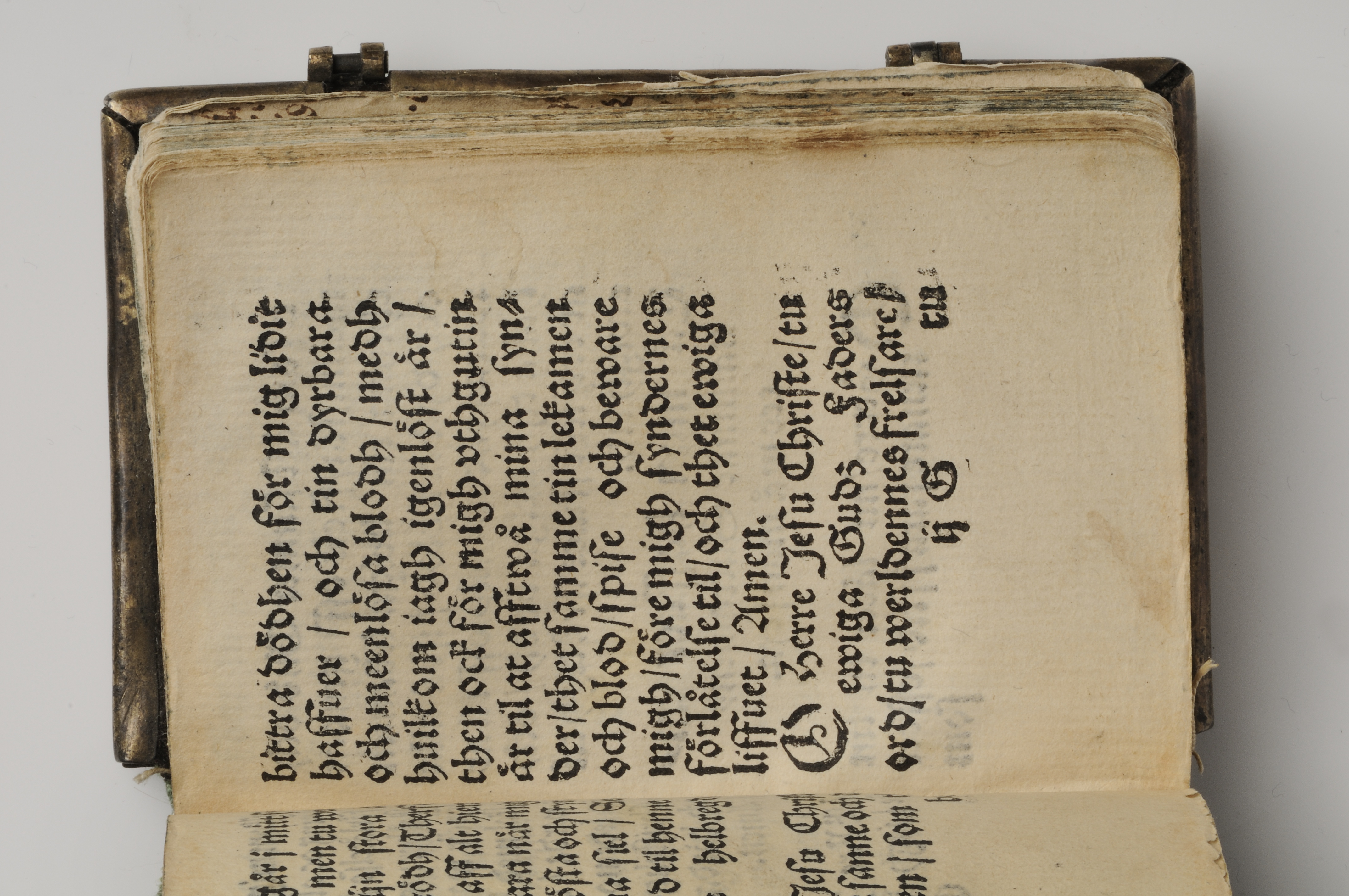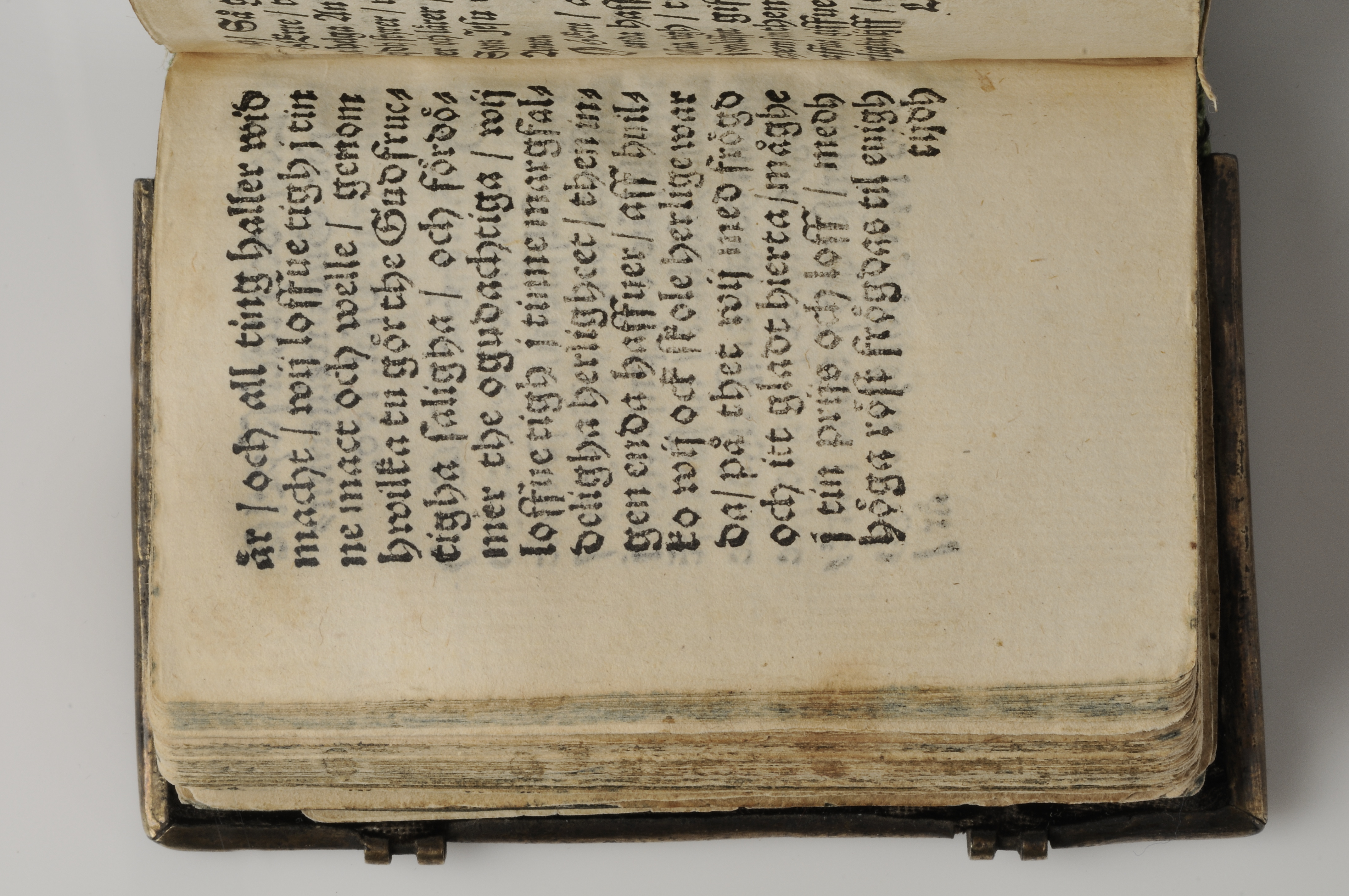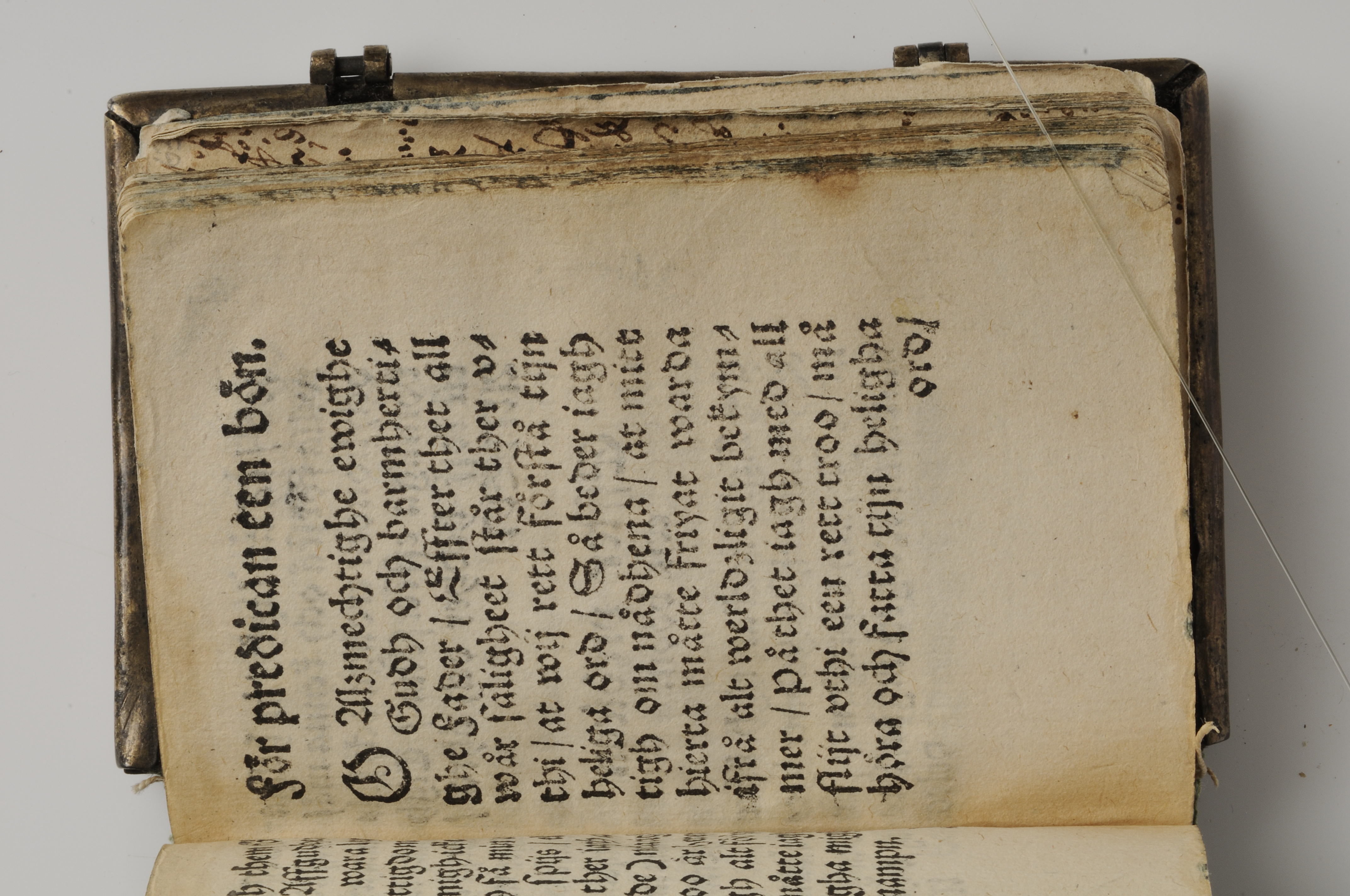 Bönbok som tillhört Malin Sture. Boken är tryckt i Stockholm av Amund Laurentzson 1559. Sigrid Leijonhufvud: Malin Stures bönbok, Fornvännen 1907.