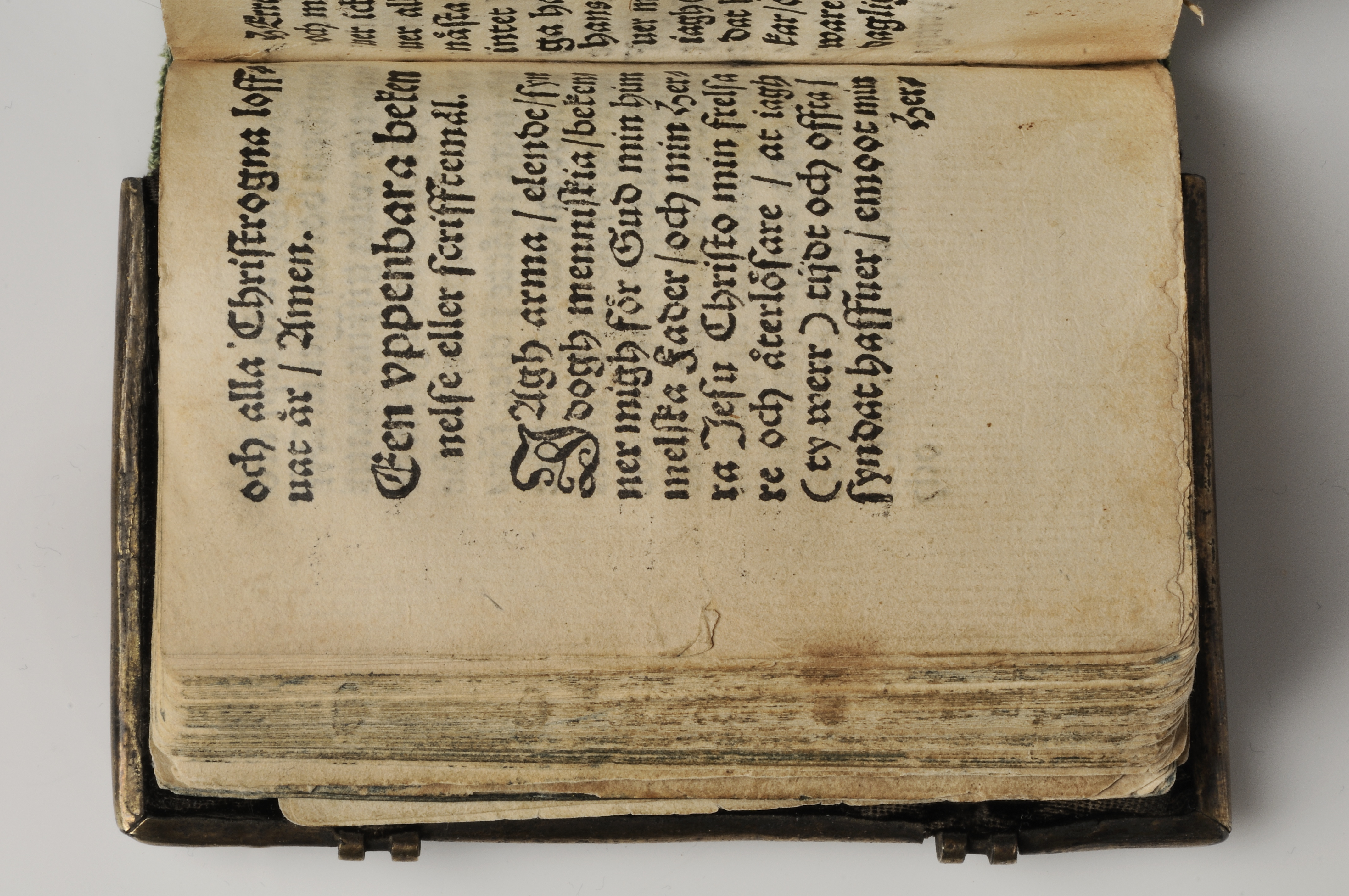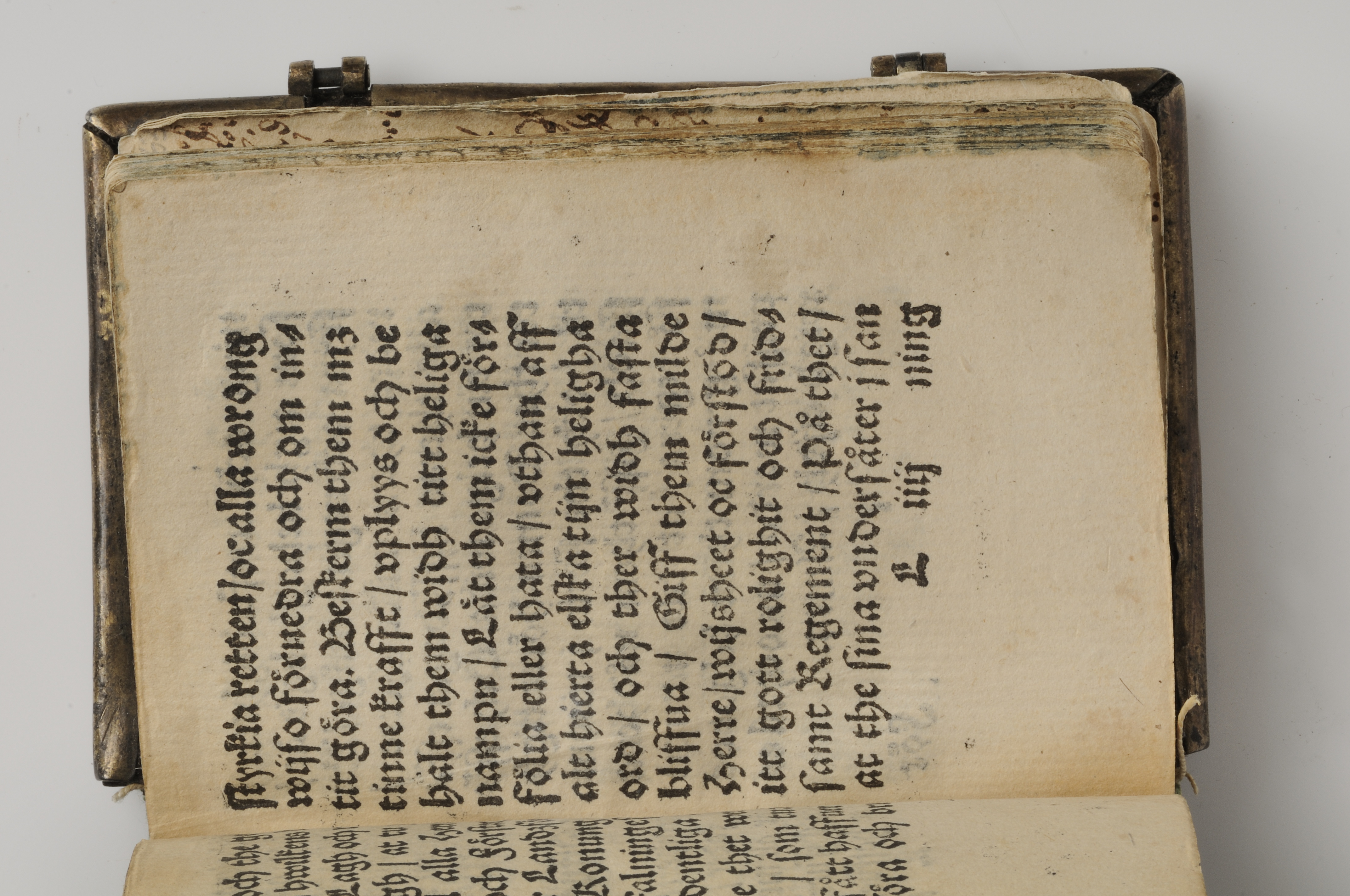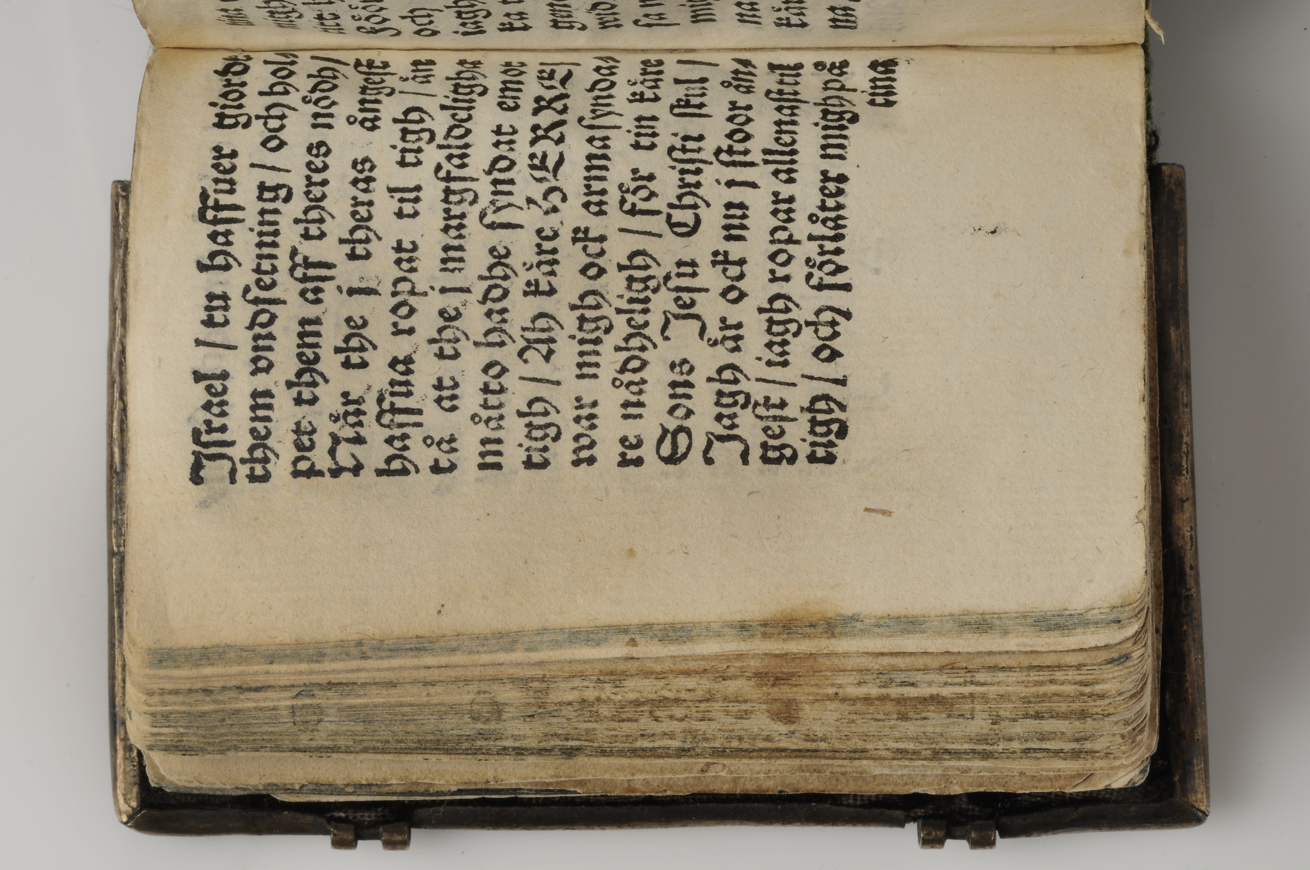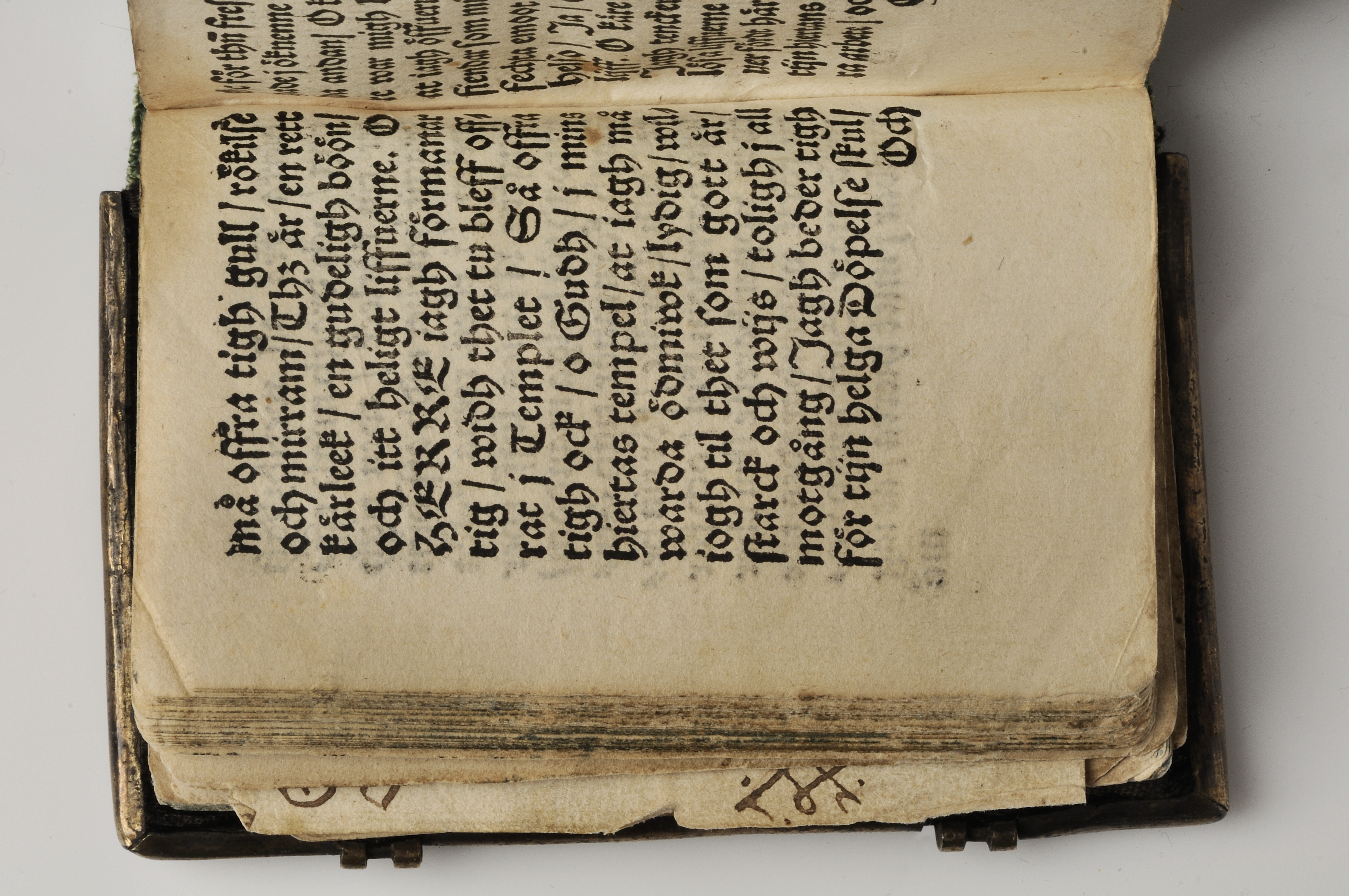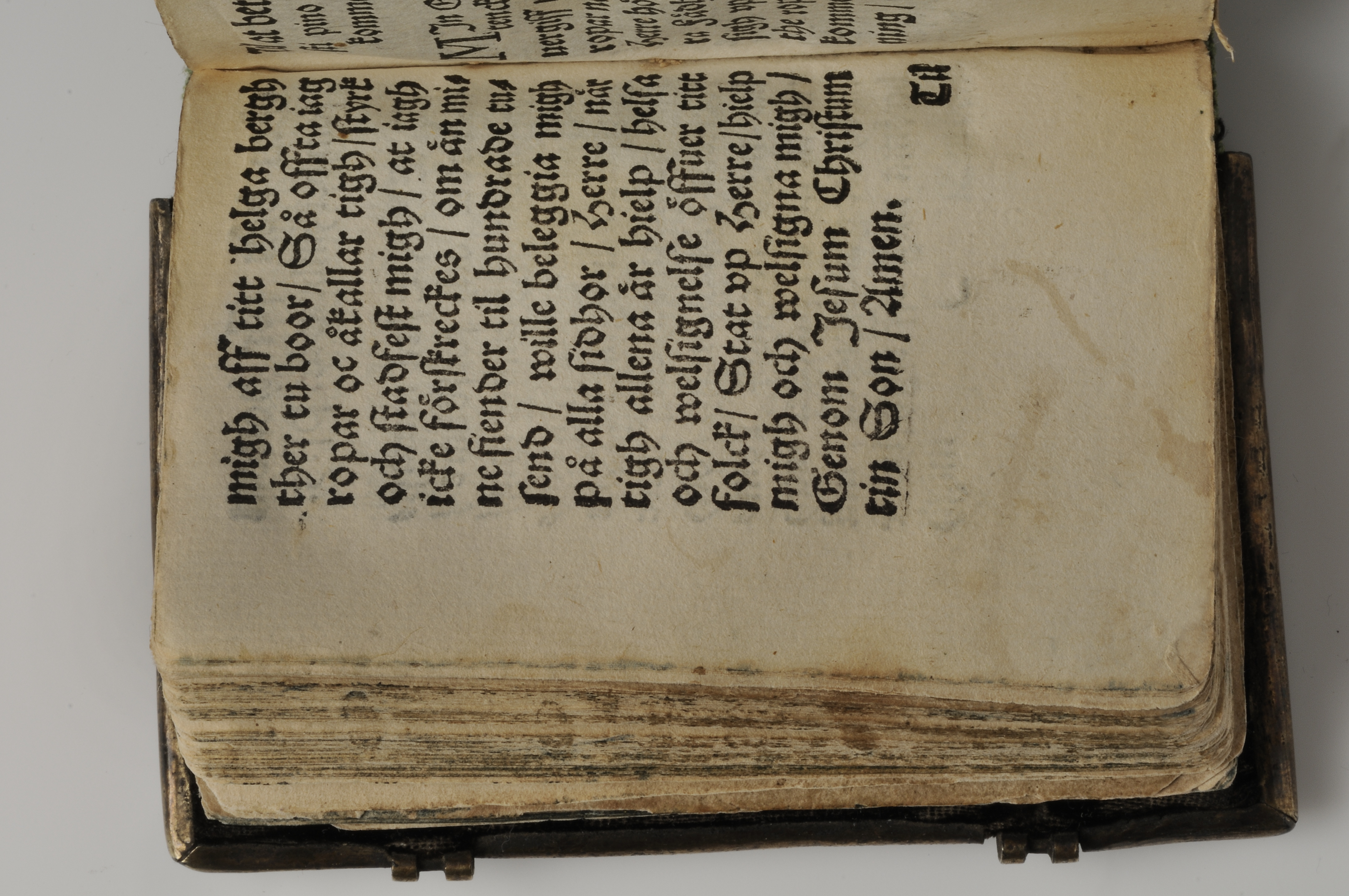 Bönbok som tillhört Malin Sture. Boken är tryckt i Stockholm av Amund Laurentzson 1559. Sigrid Leijonhufvud: Malin Stures bönbok, Fornvännen 1907.
