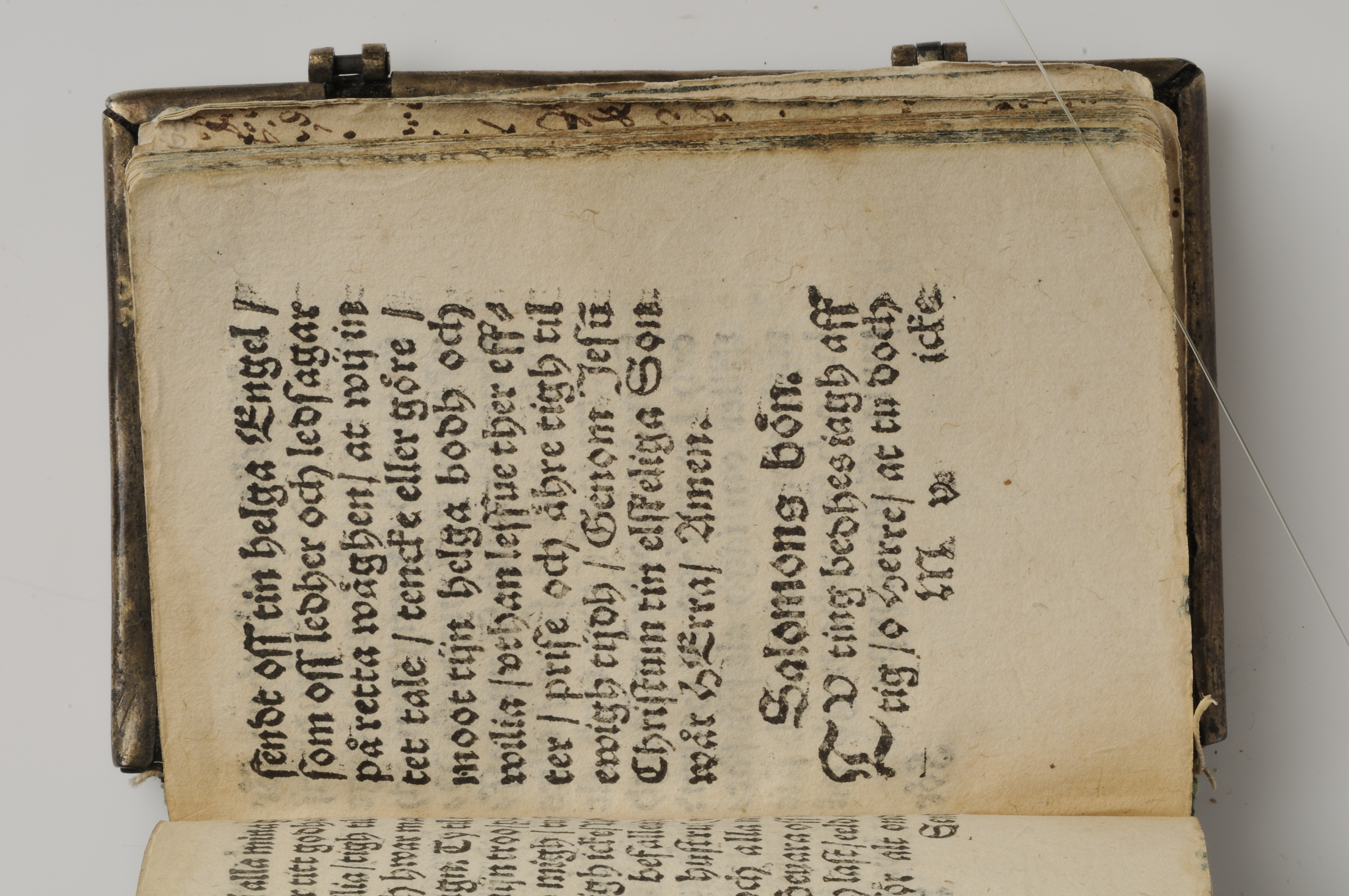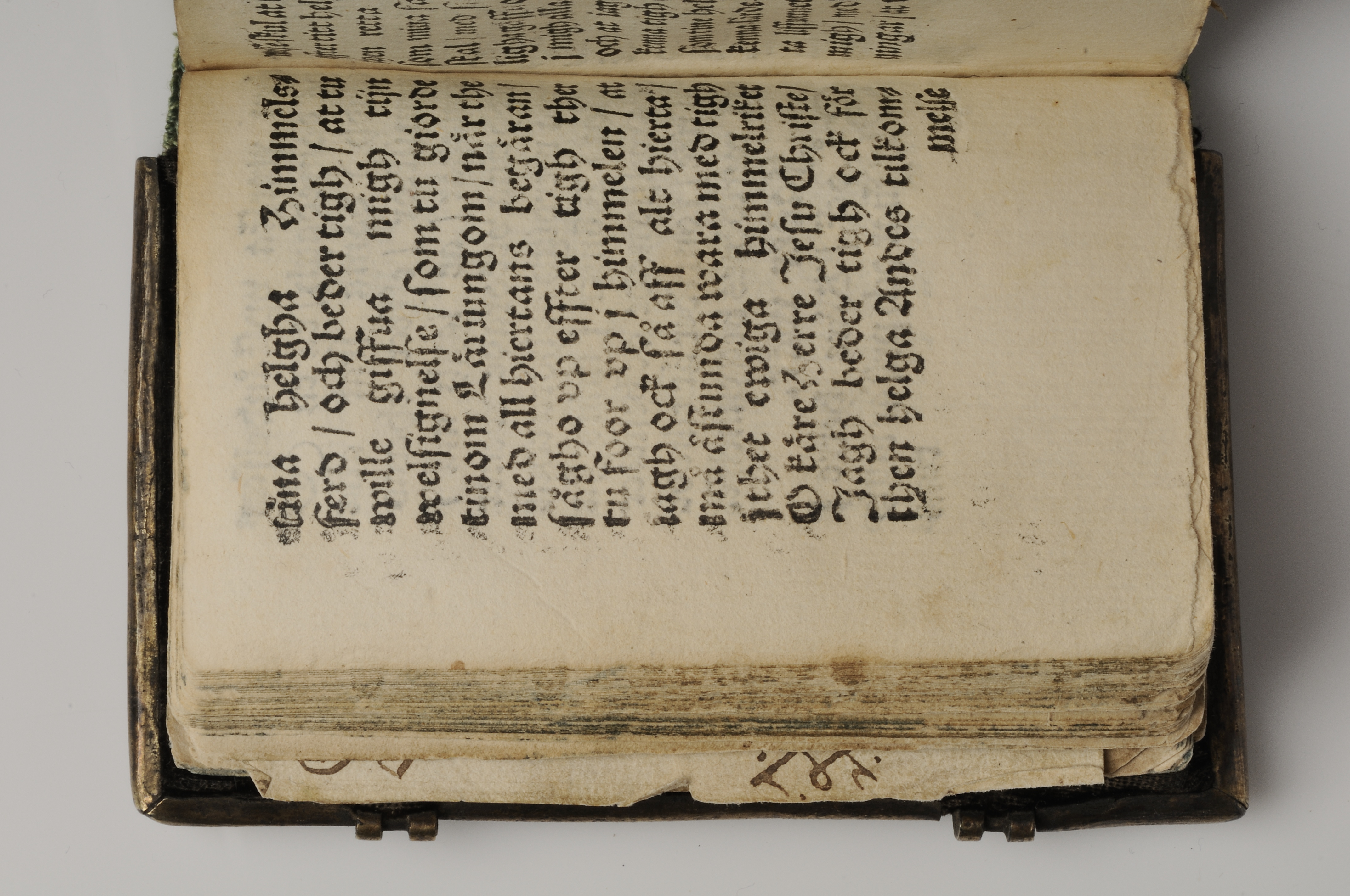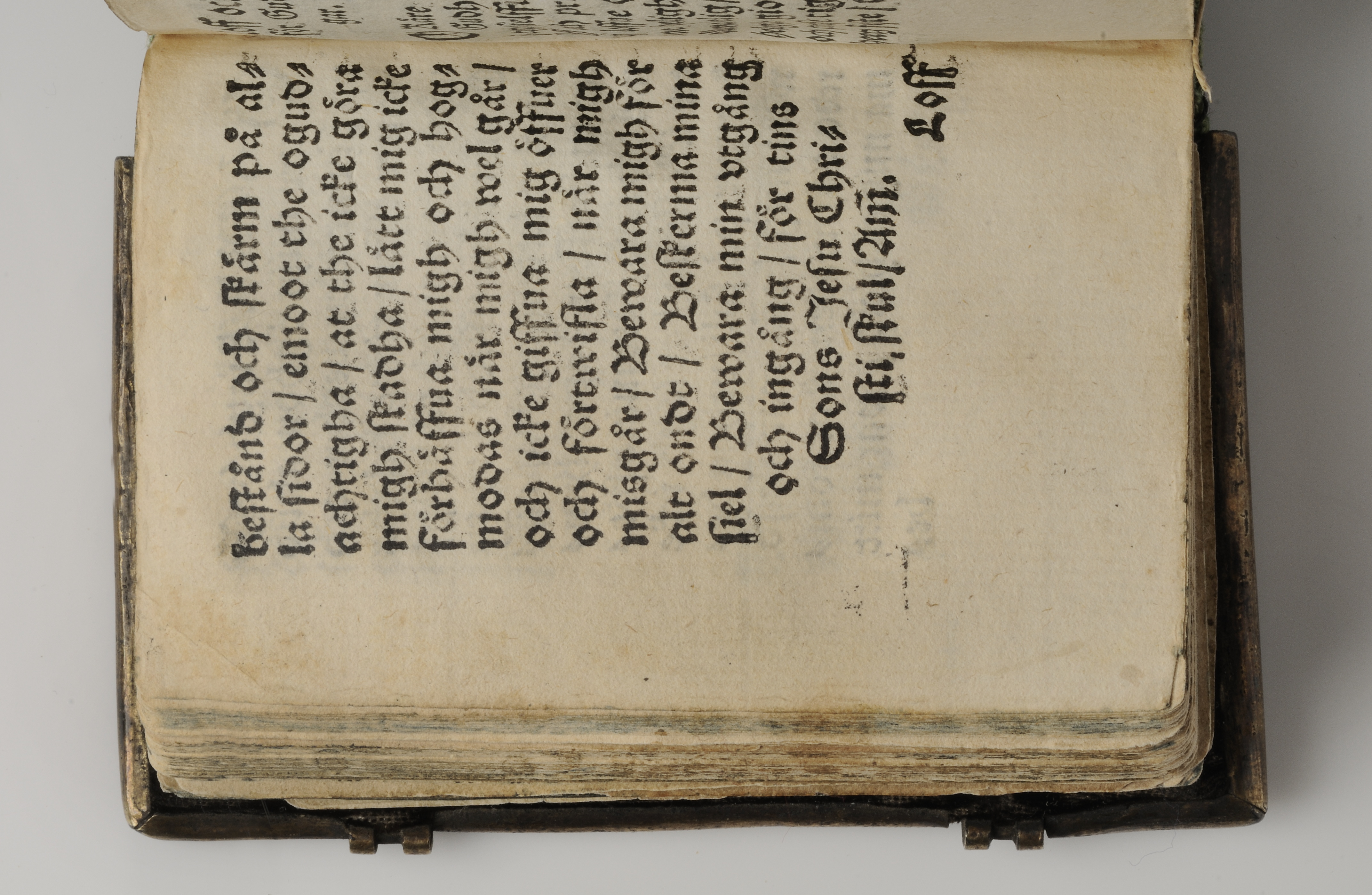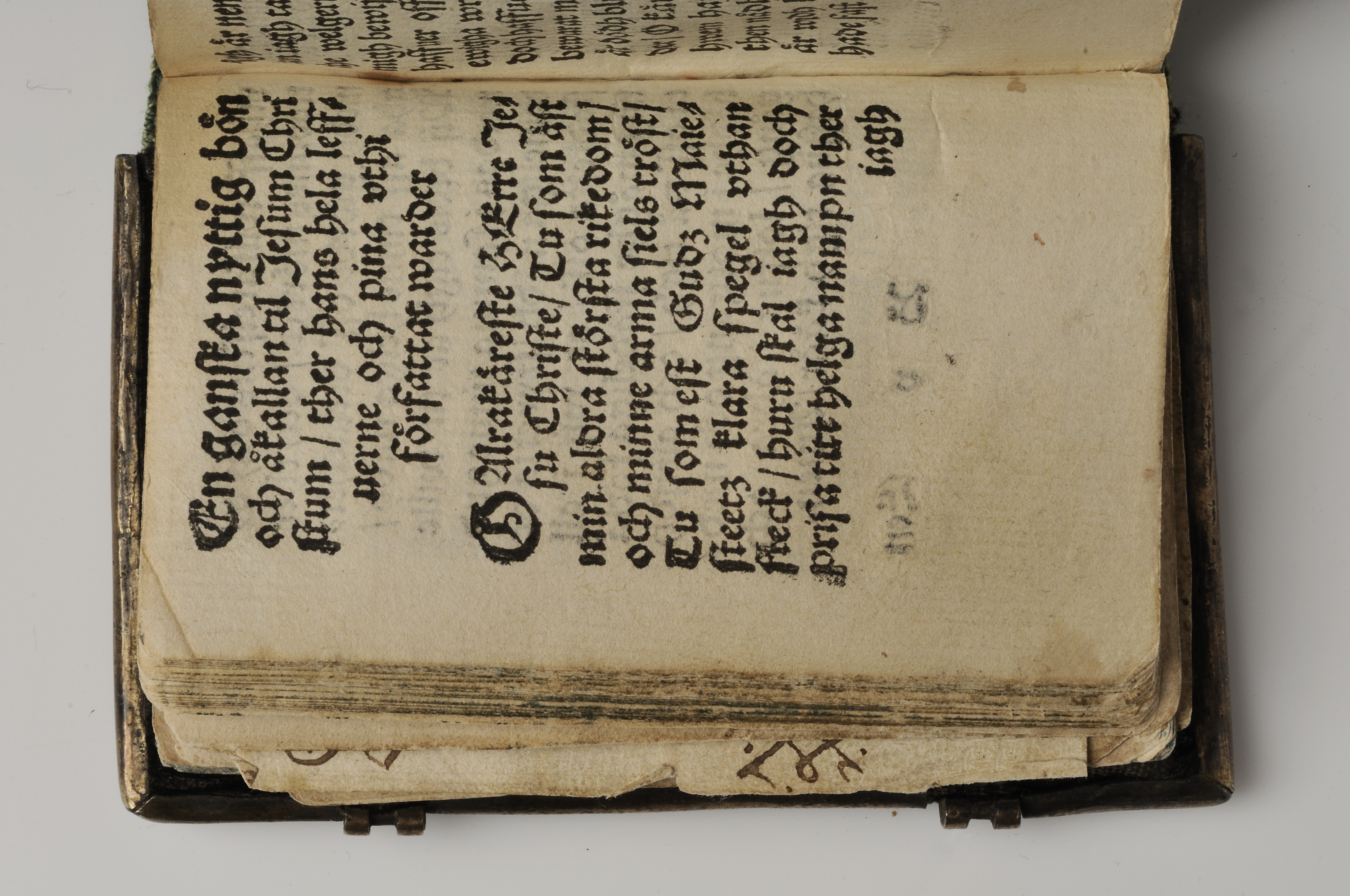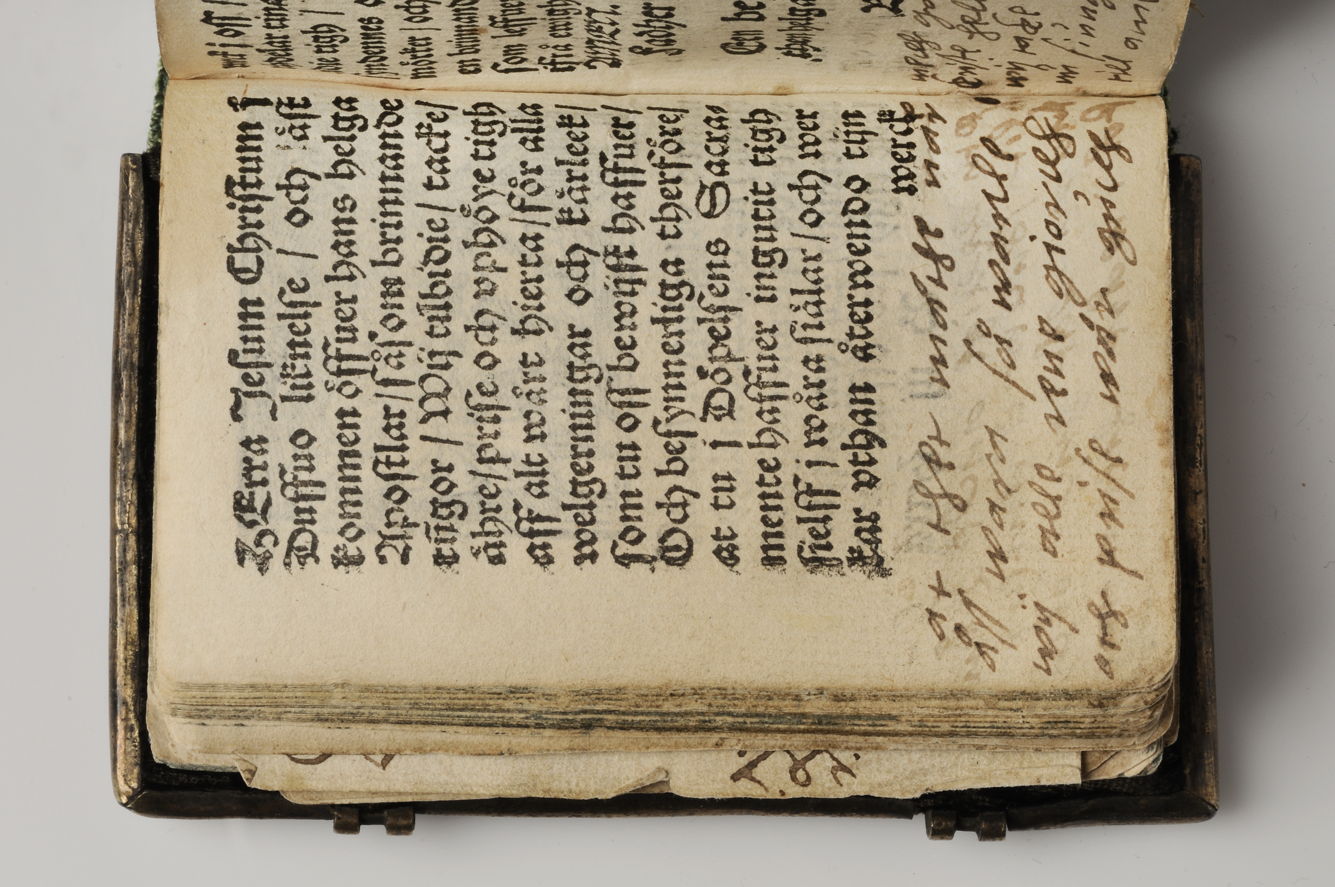 Bönbok som tillhört Malin Sture. Boken är tryckt i Stockholm av Amund Laurentzson 1559. Sigrid Leijonhufvud: Malin Stures bönbok, Fornvännen 1907.