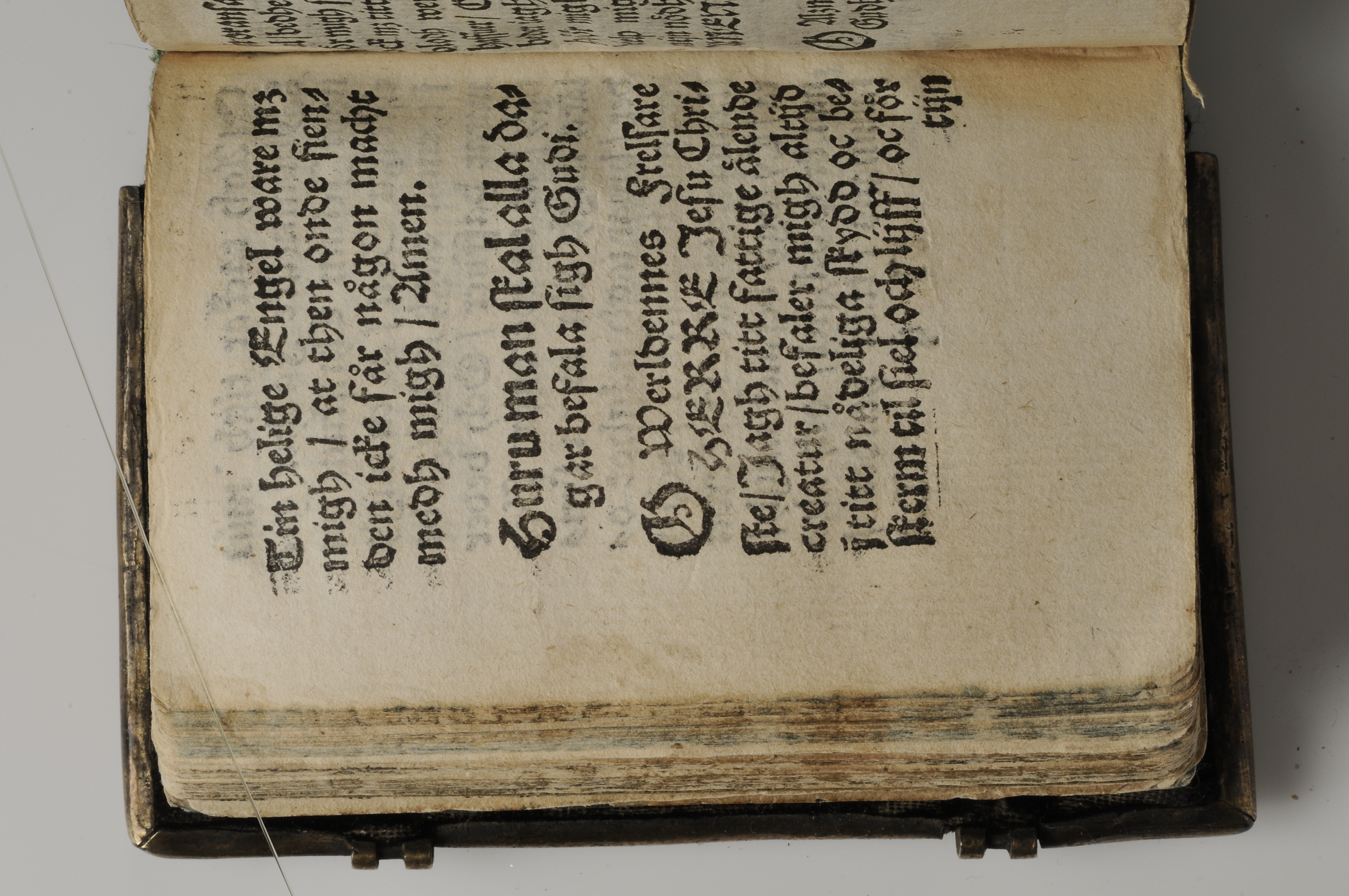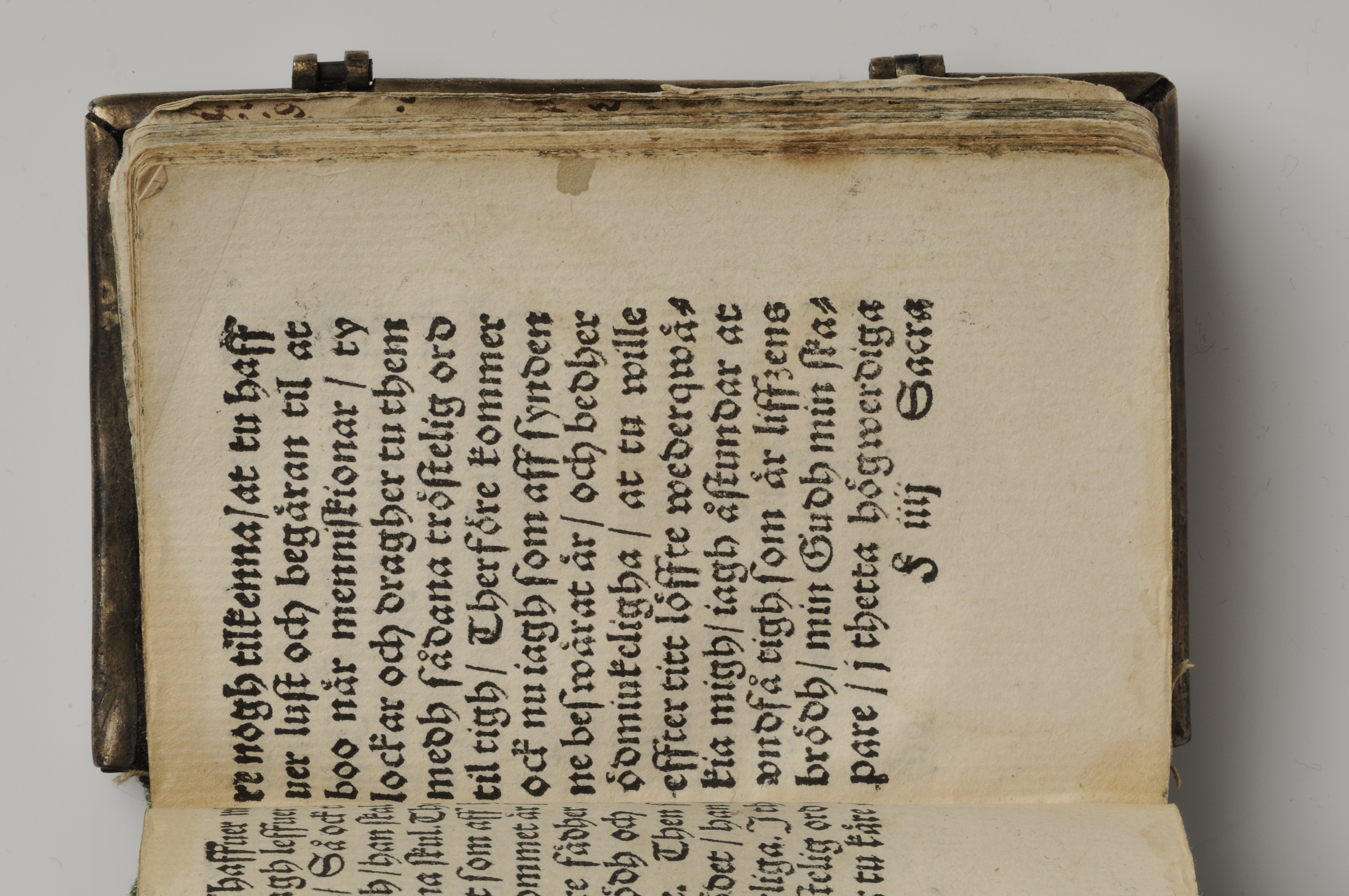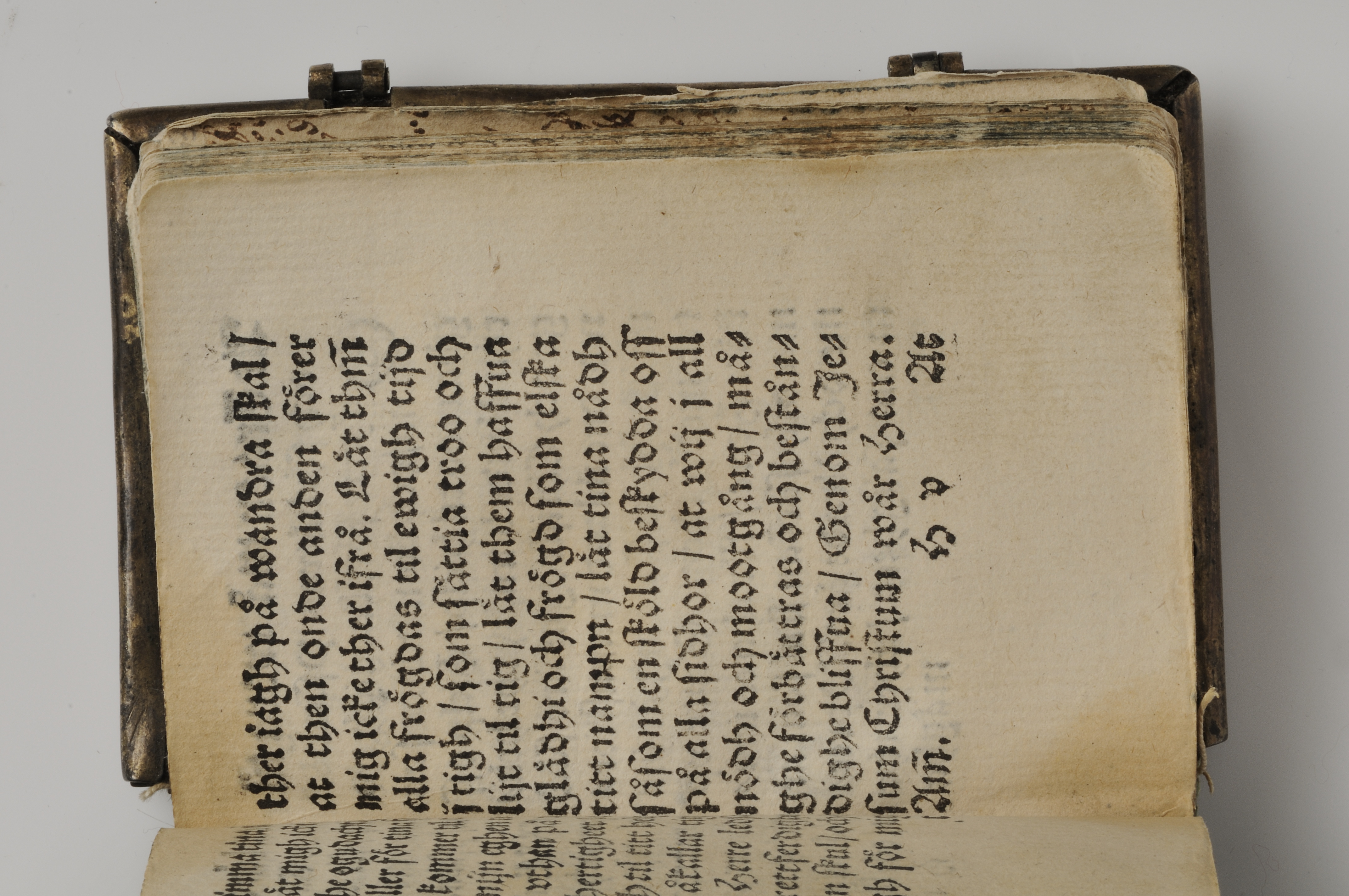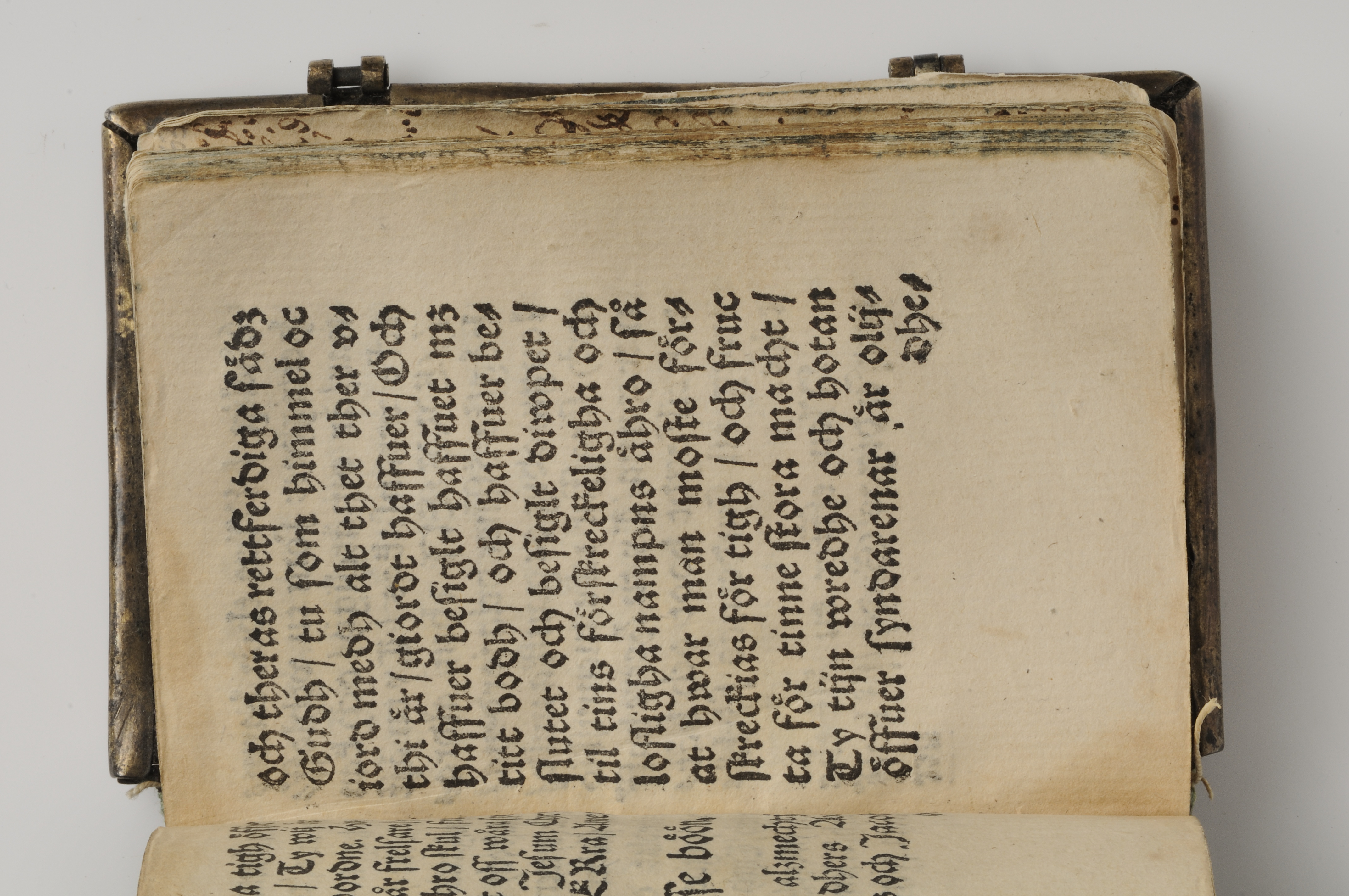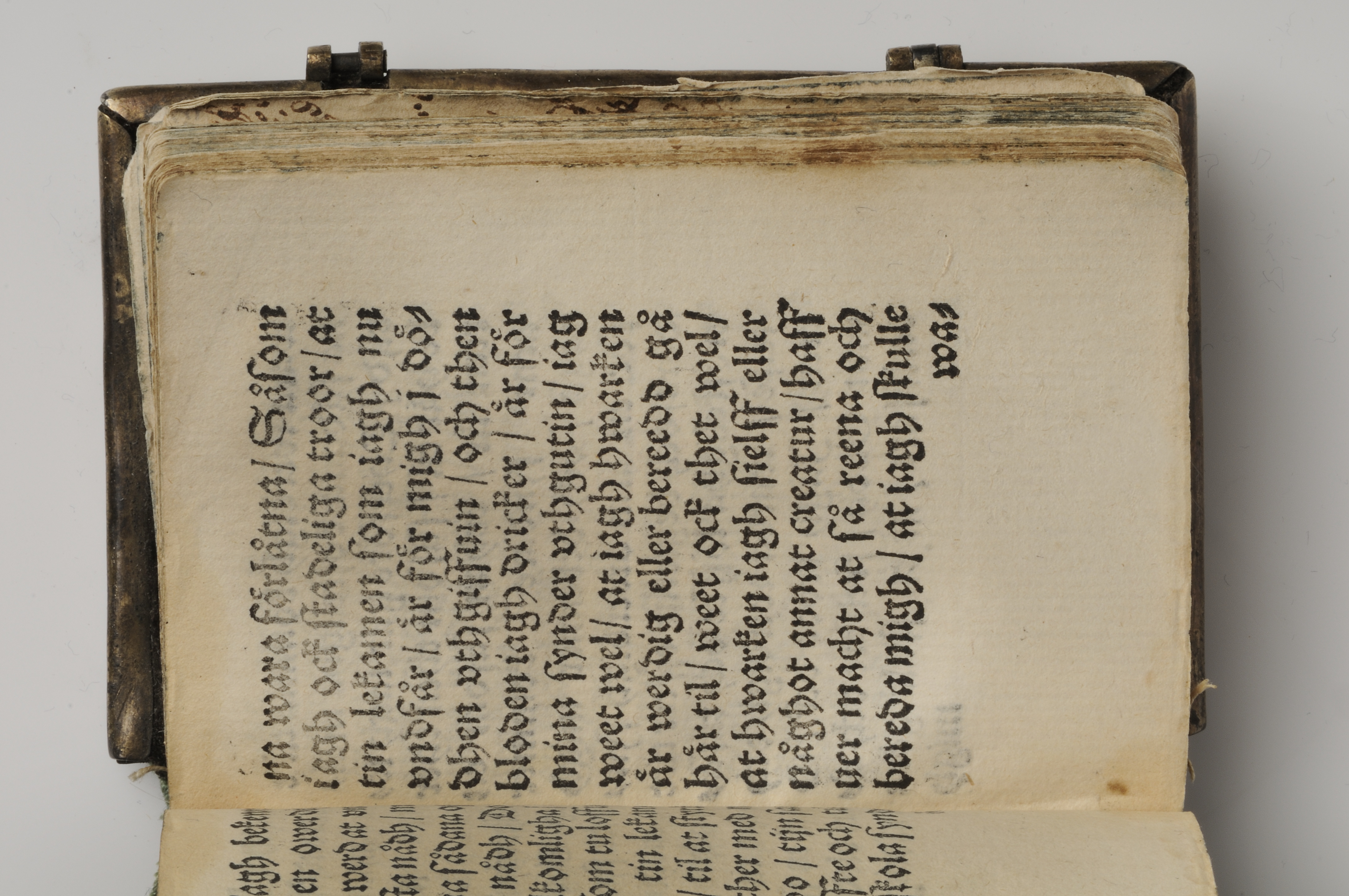 Bönbok som tillhört Malin Sture. Boken är tryckt i Stockholm av Amund Laurentzson 1559. Sigrid Leijonhufvud: Malin Stures bönbok, Fornvännen 1907.