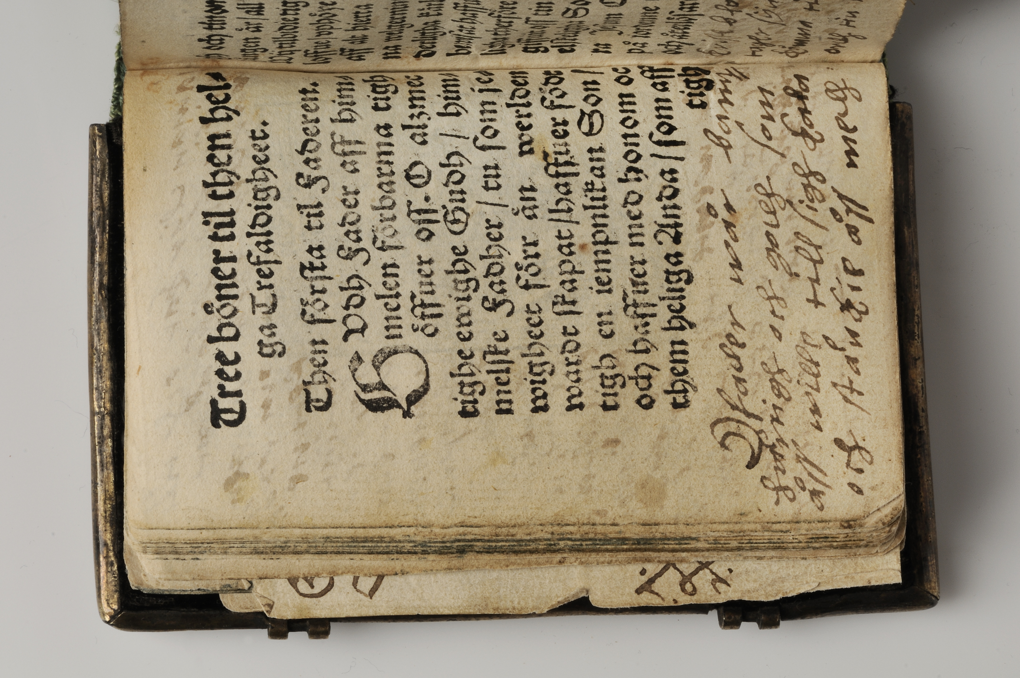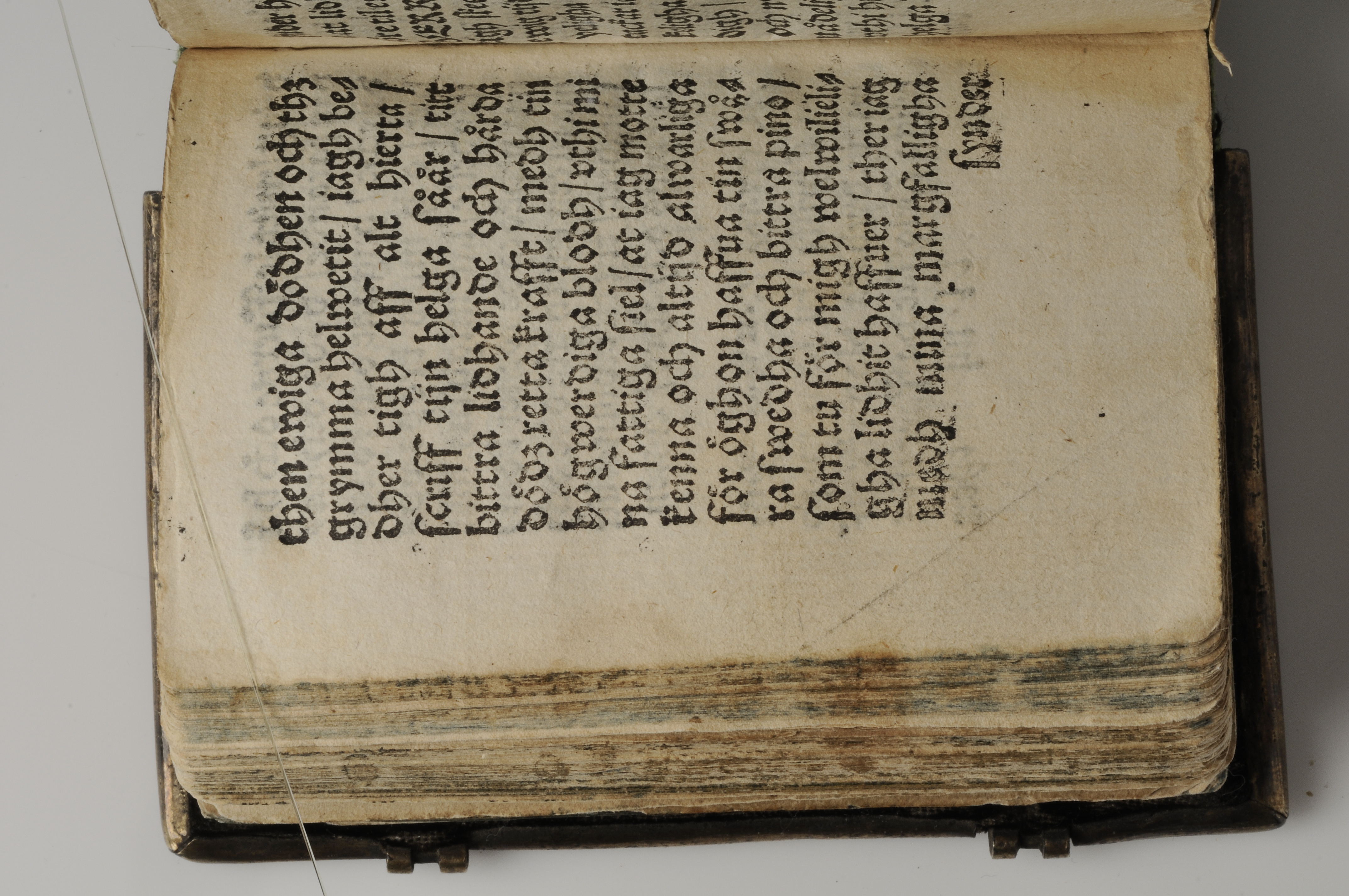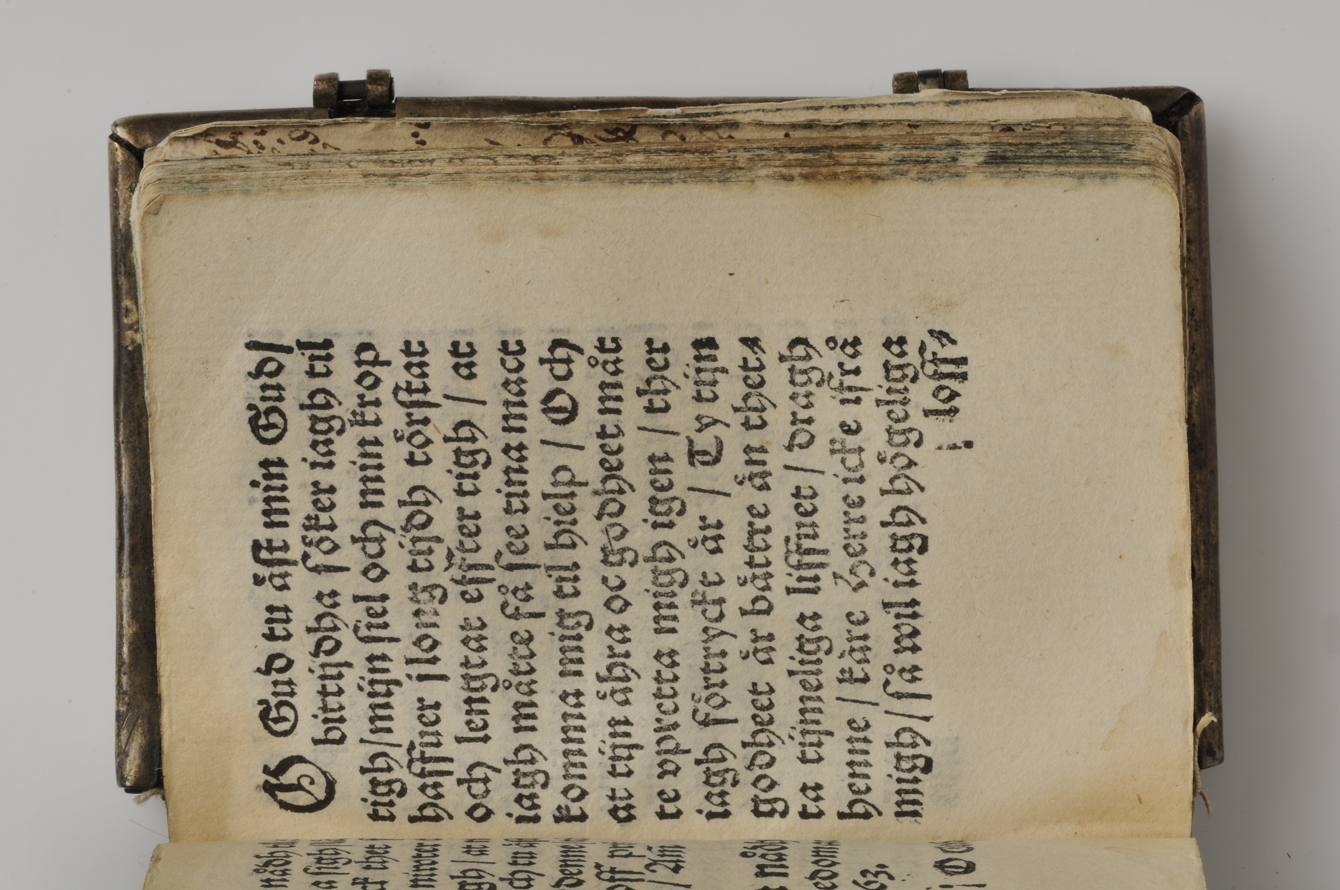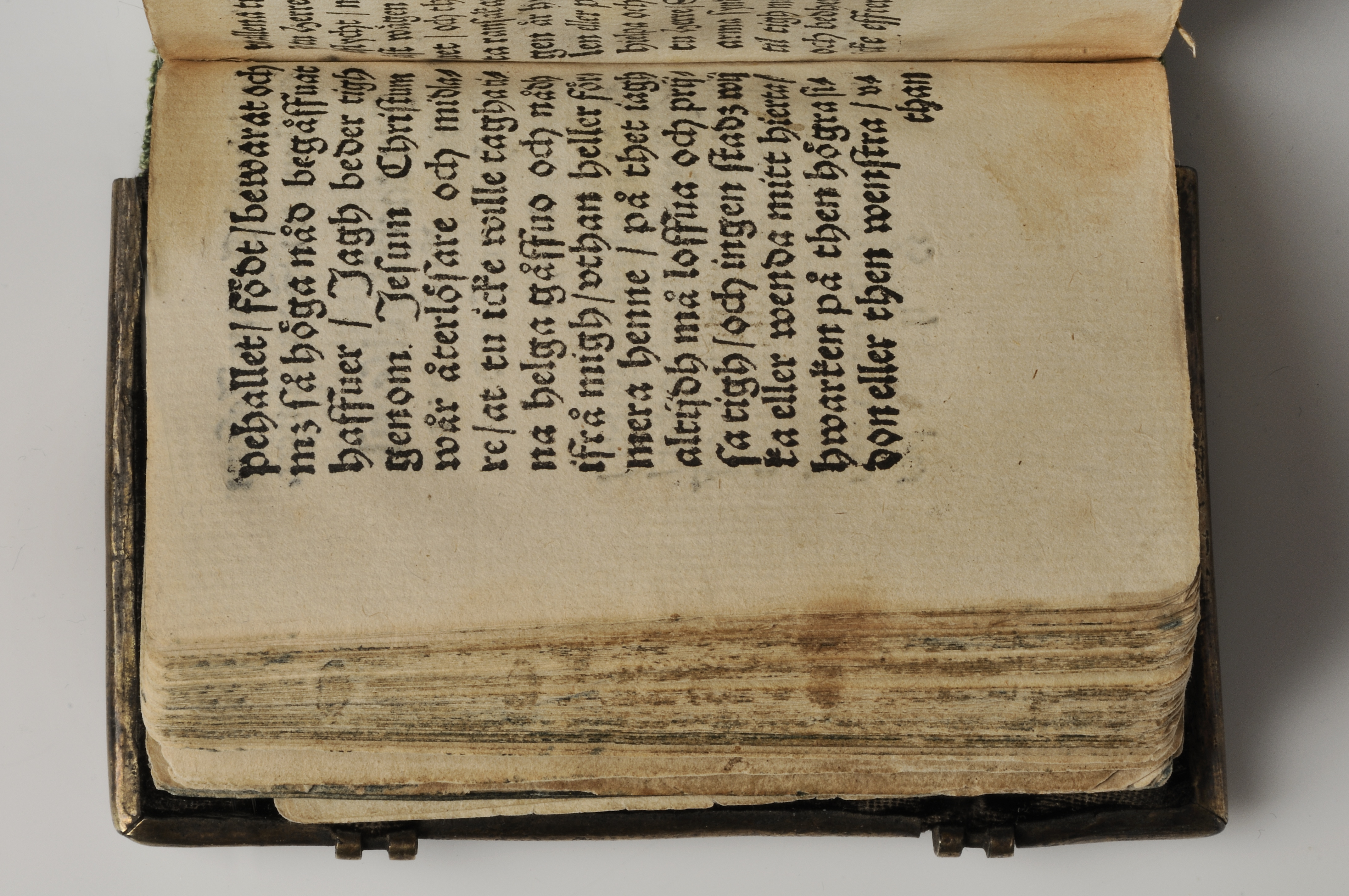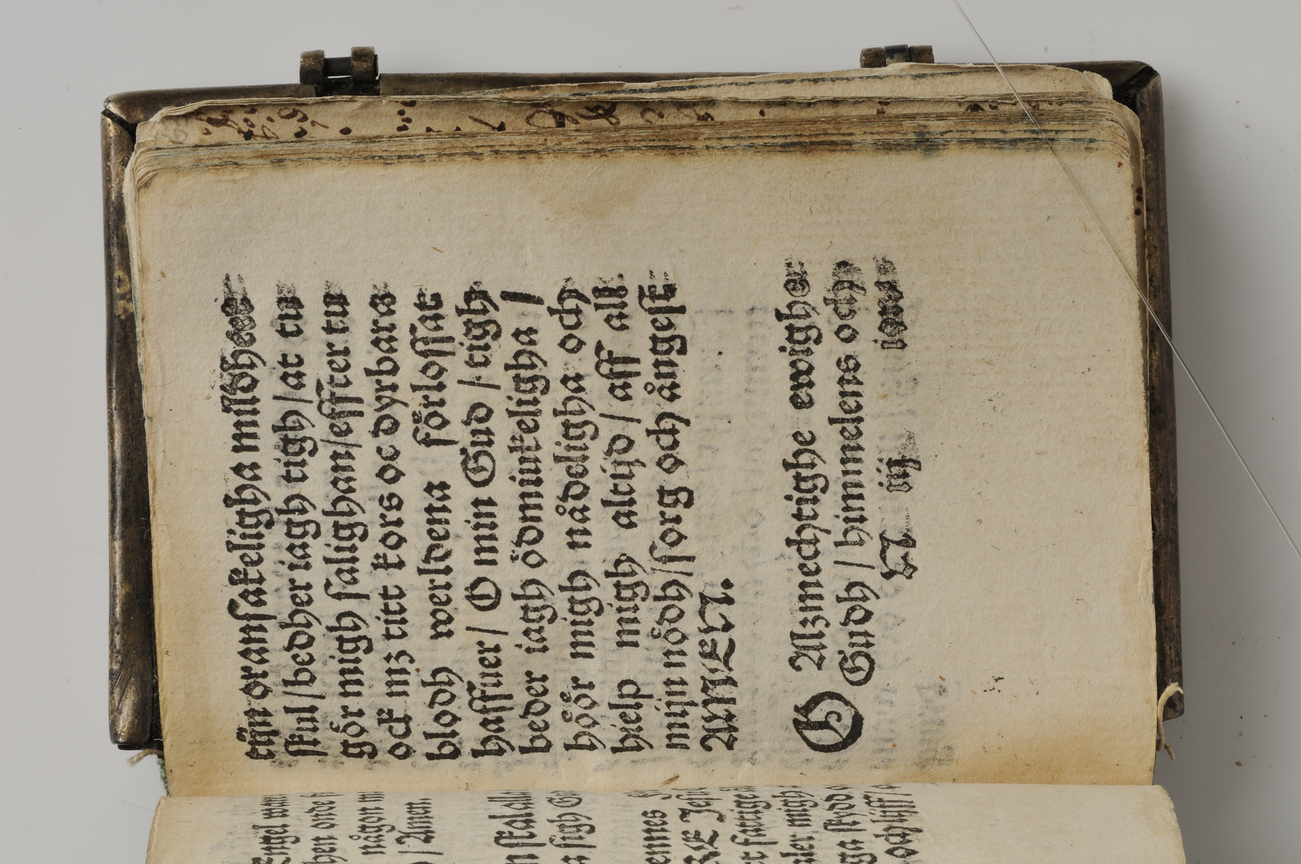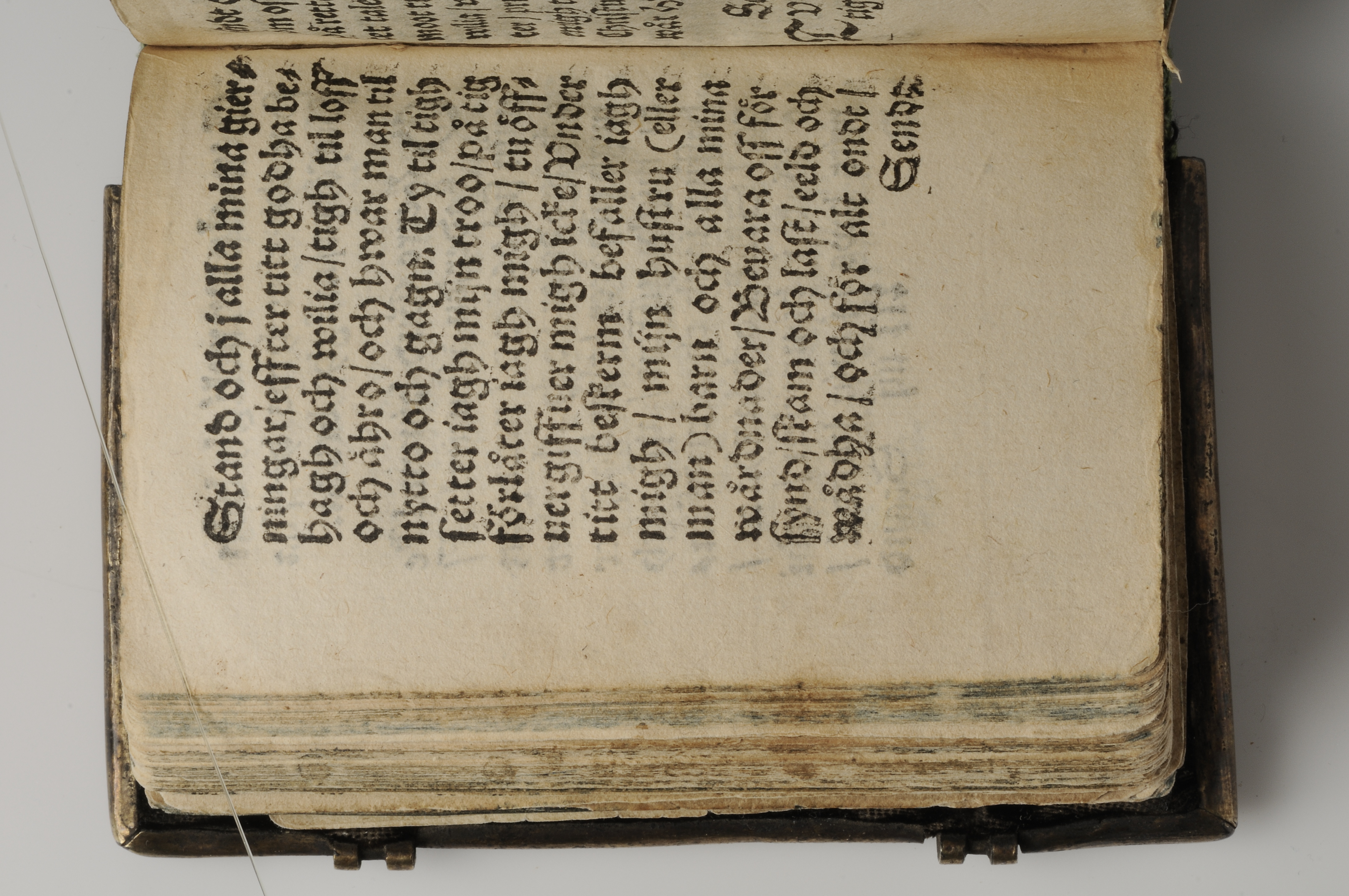 Bönbok som tillhört Malin Sture. Boken är tryckt i Stockholm av Amund Laurentzson 1559. Sigrid Leijonhufvud: Malin Stures bönbok, Fornvännen 1907.