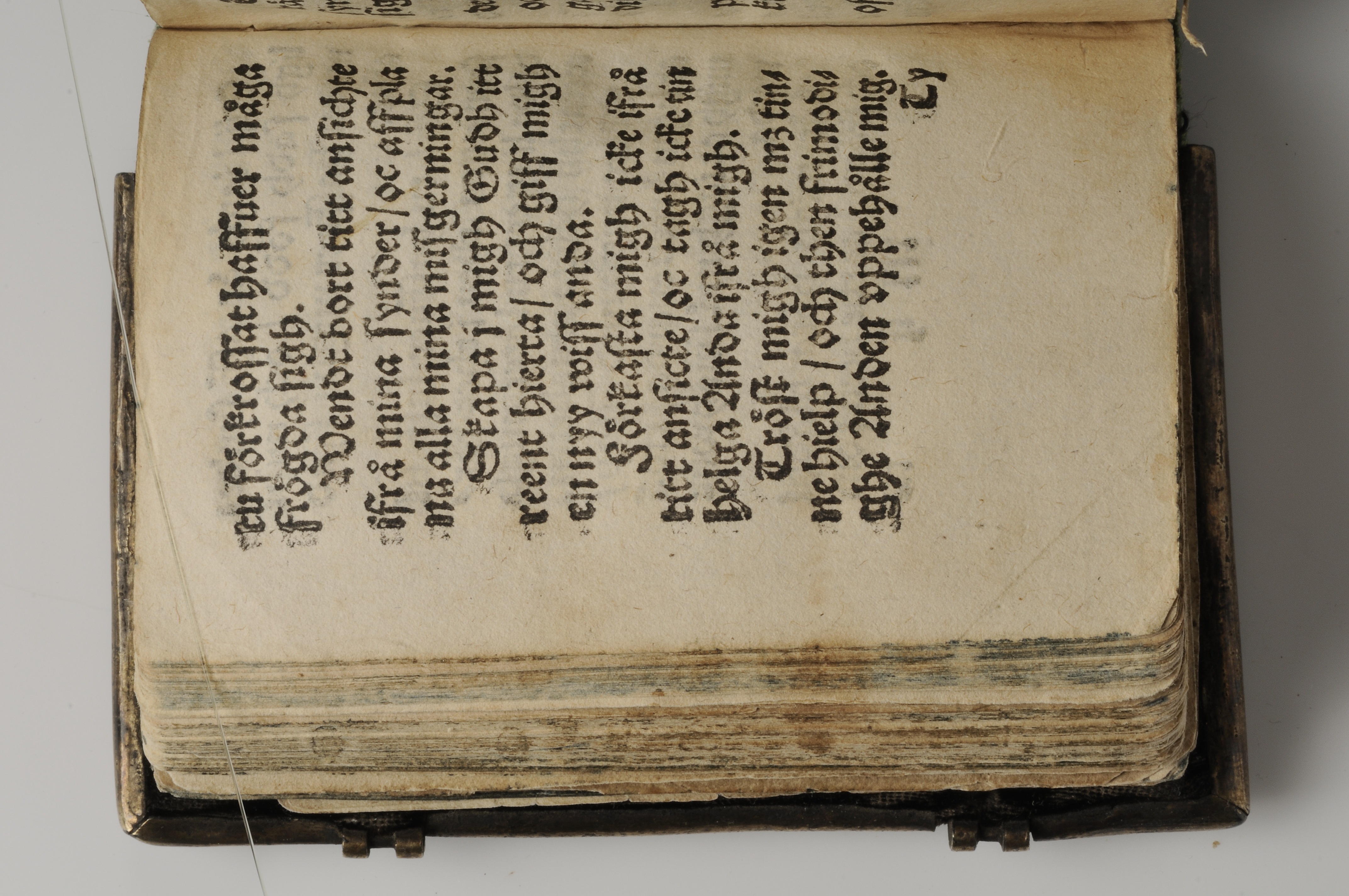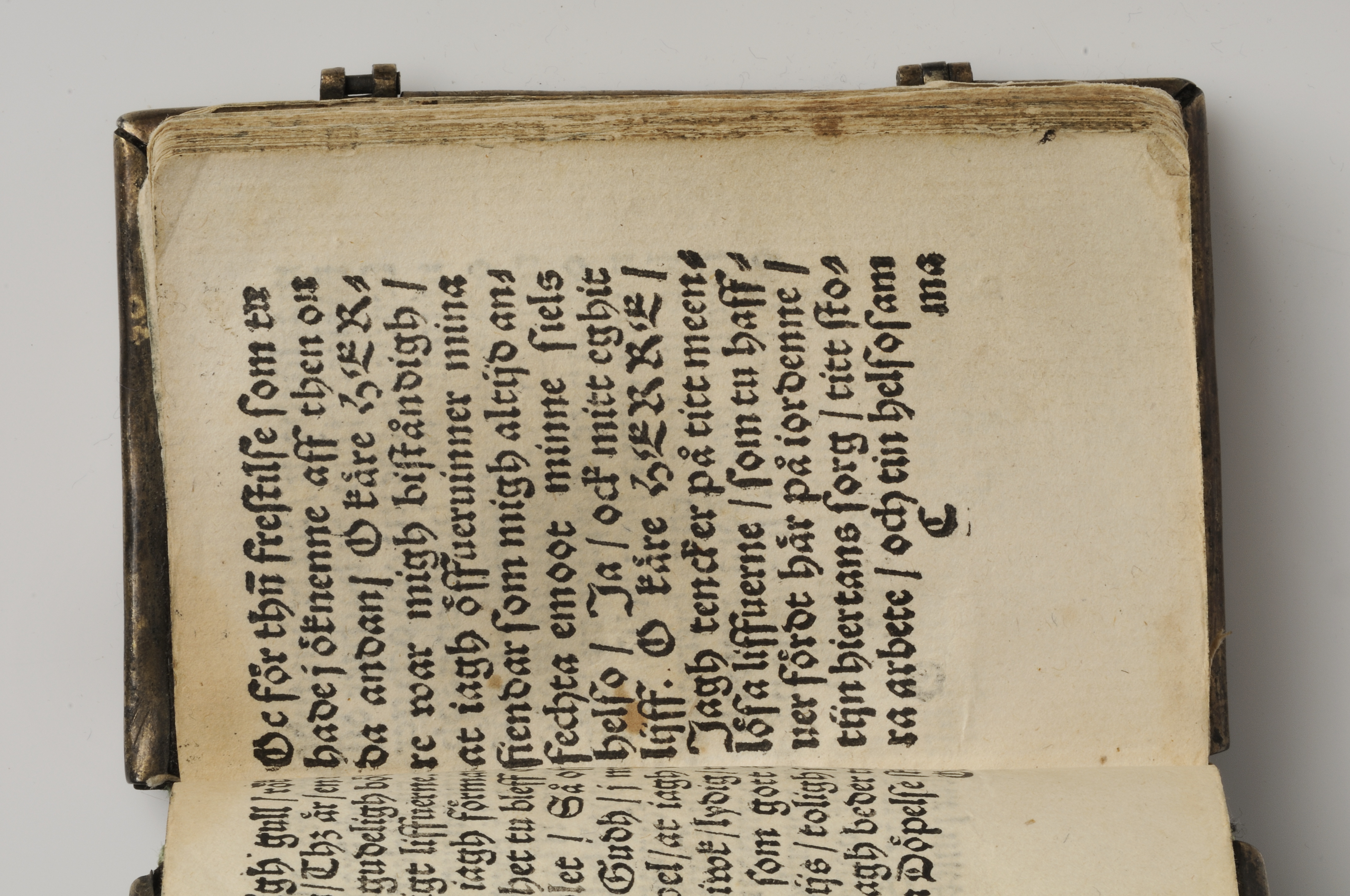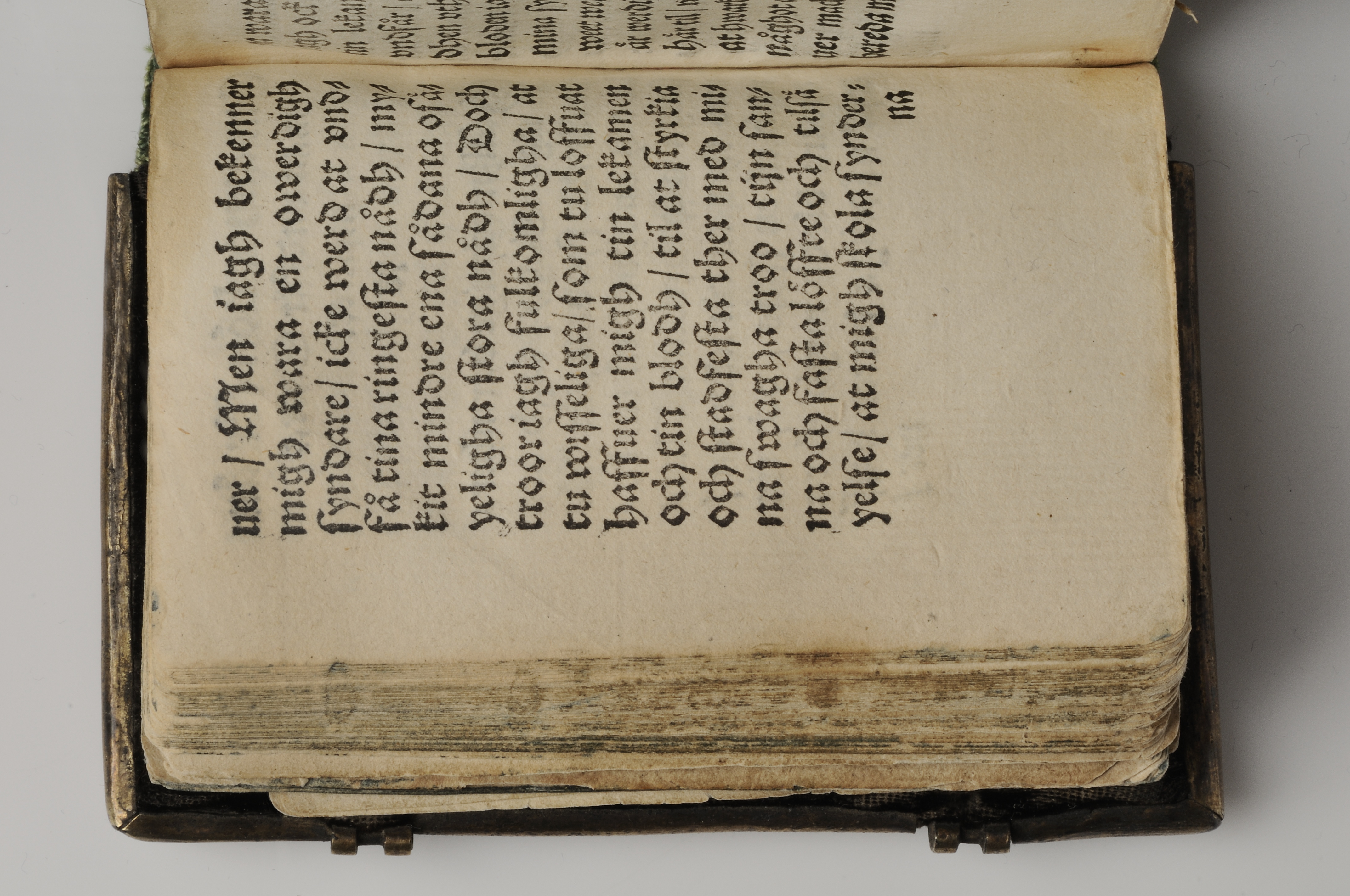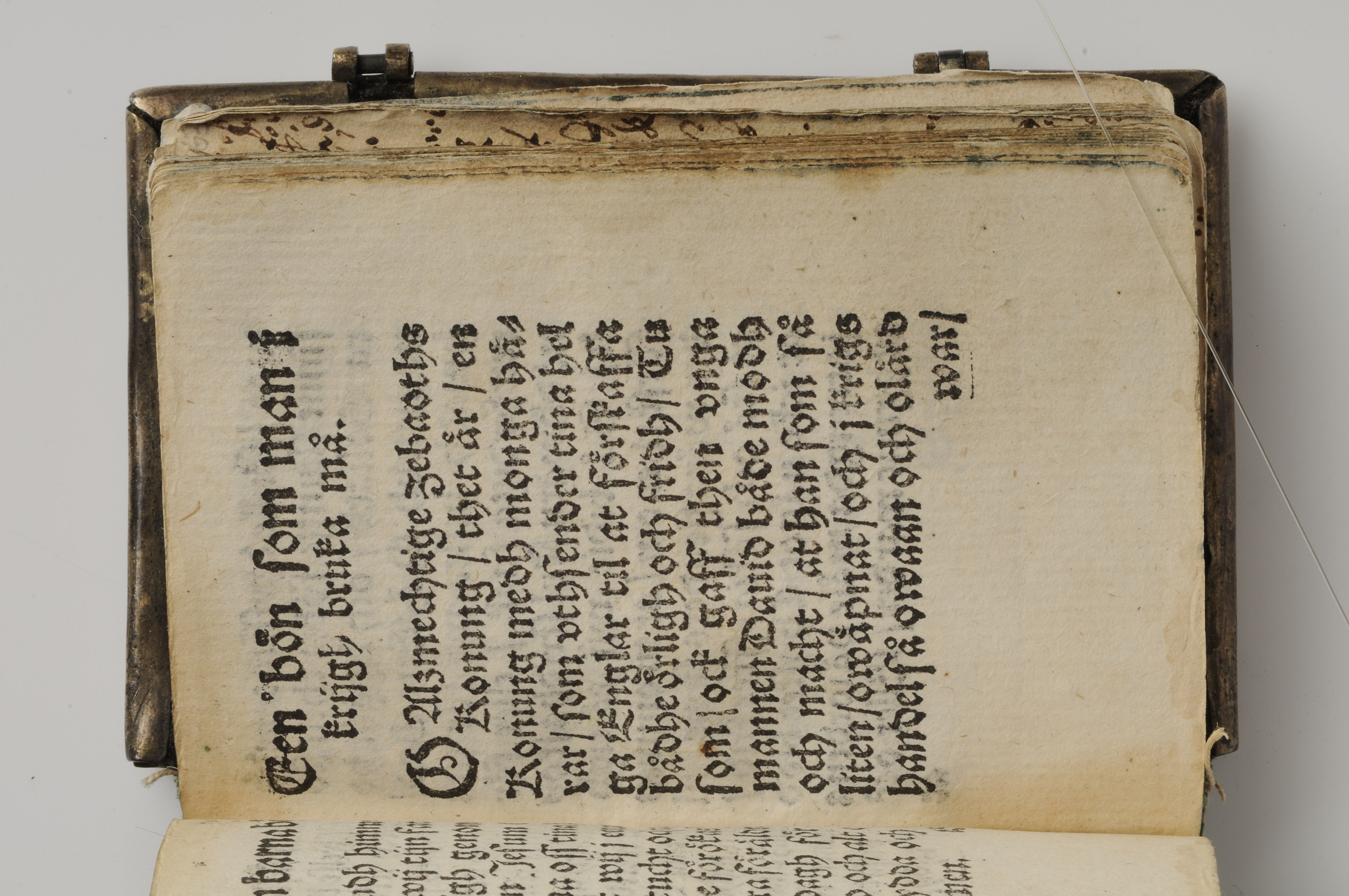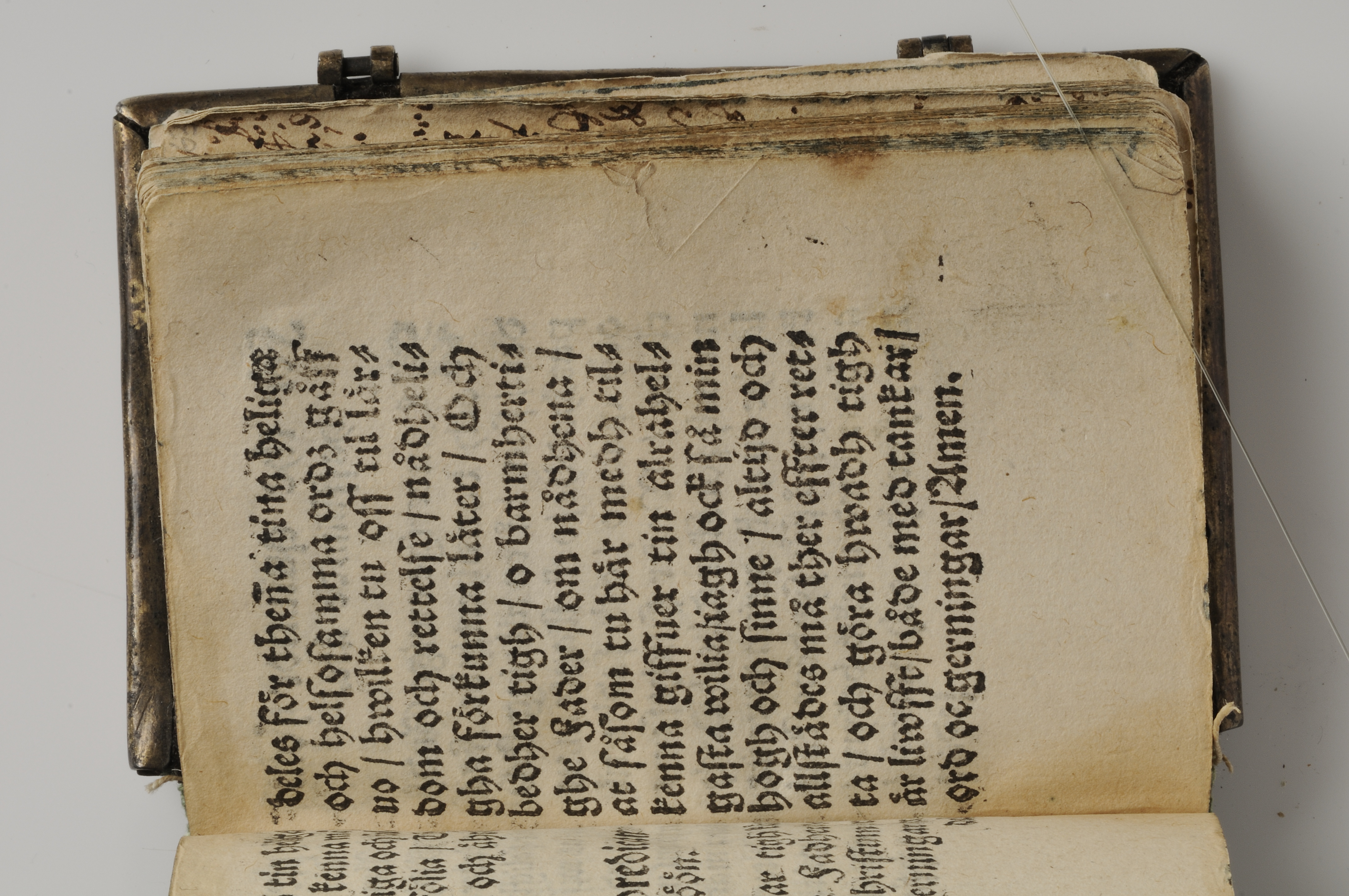 Bönbok som tillhört Malin Sture. Boken är tryckt i Stockholm av Amund Laurentzson 1559. Sigrid Leijonhufvud: Malin Stures bönbok, Fornvännen 1907.