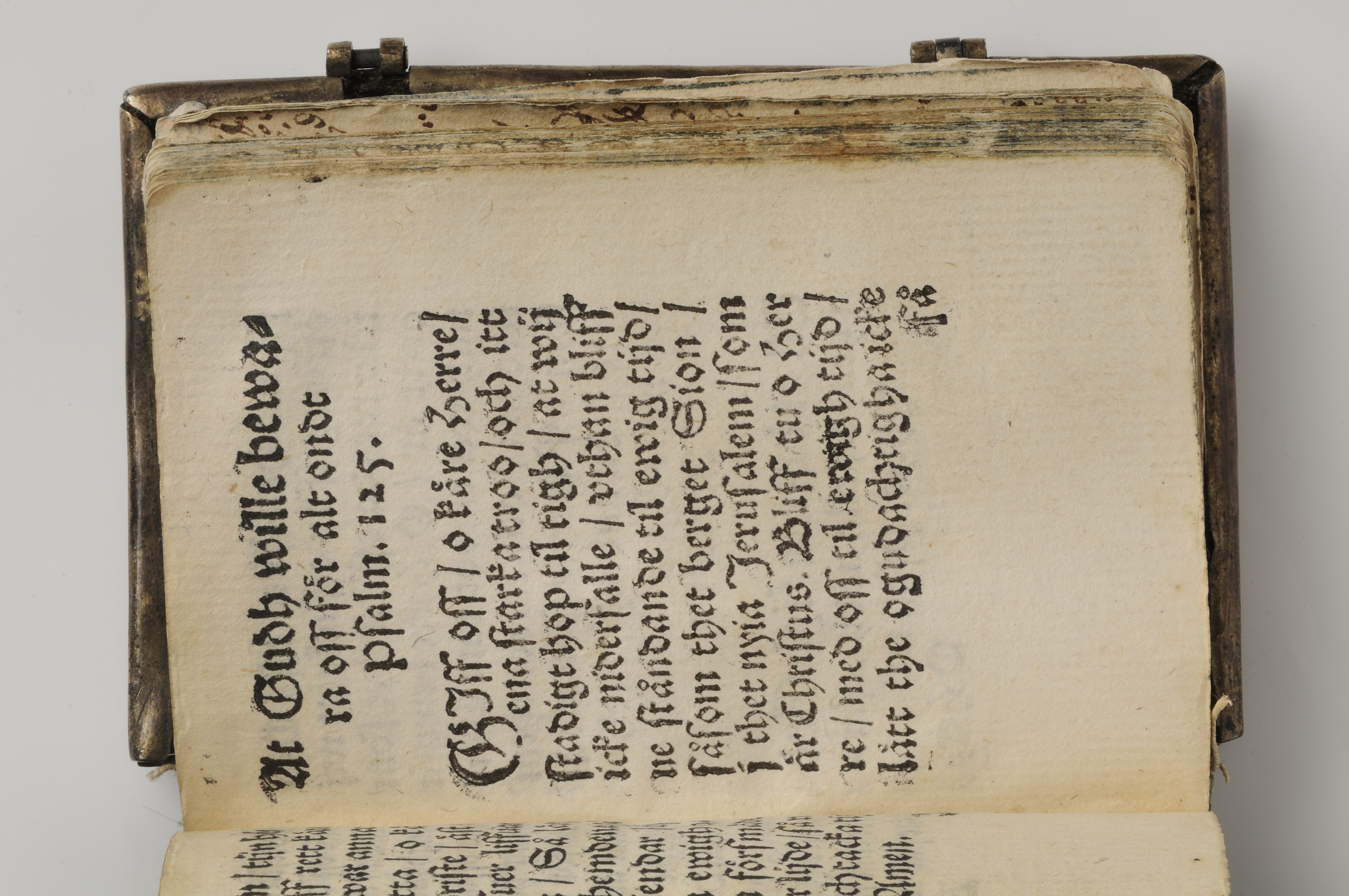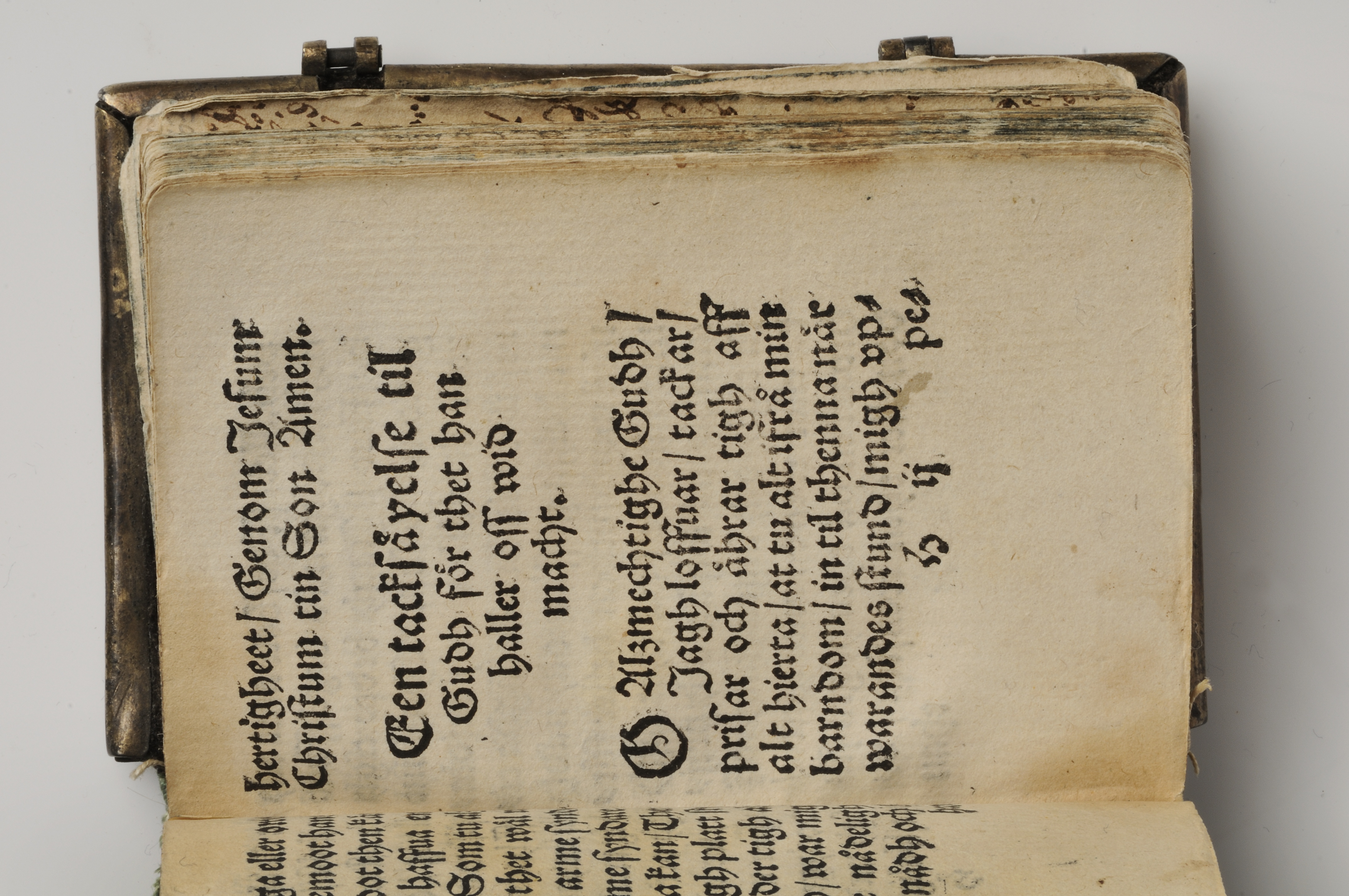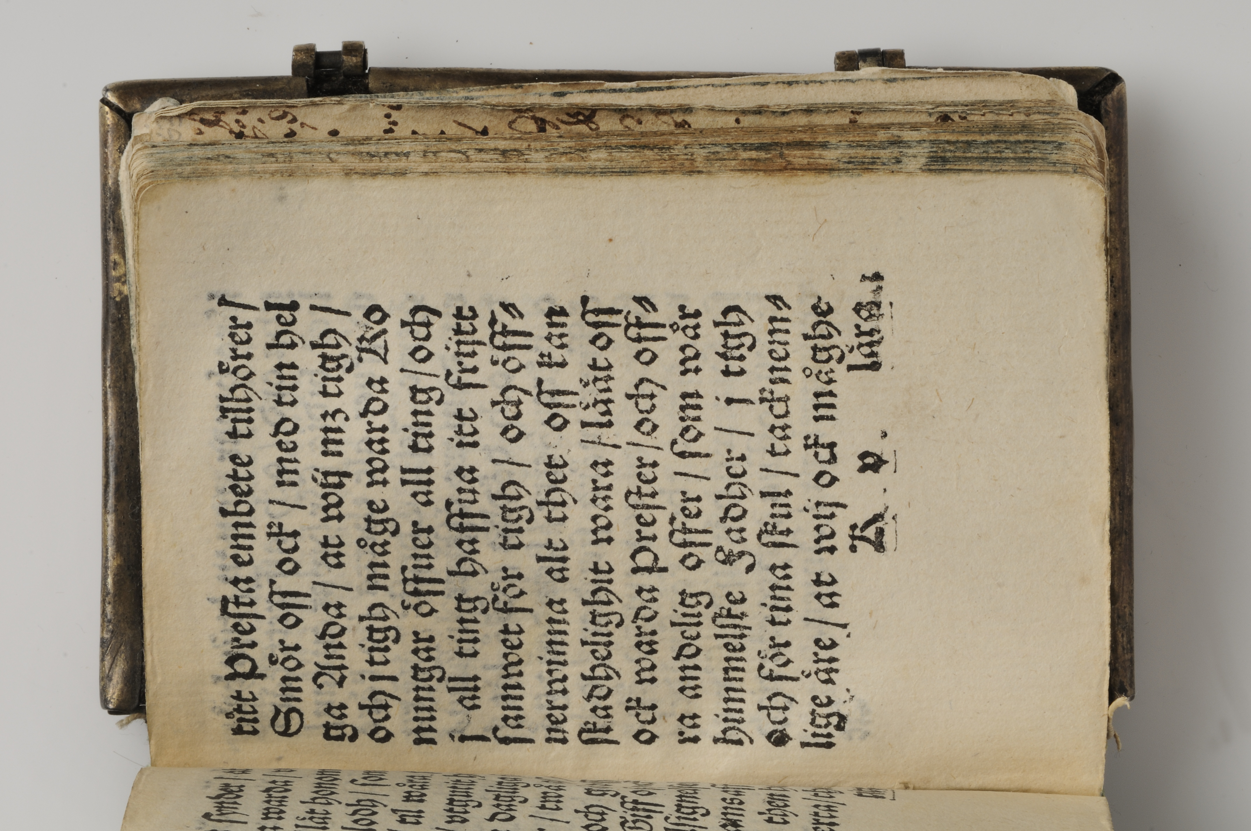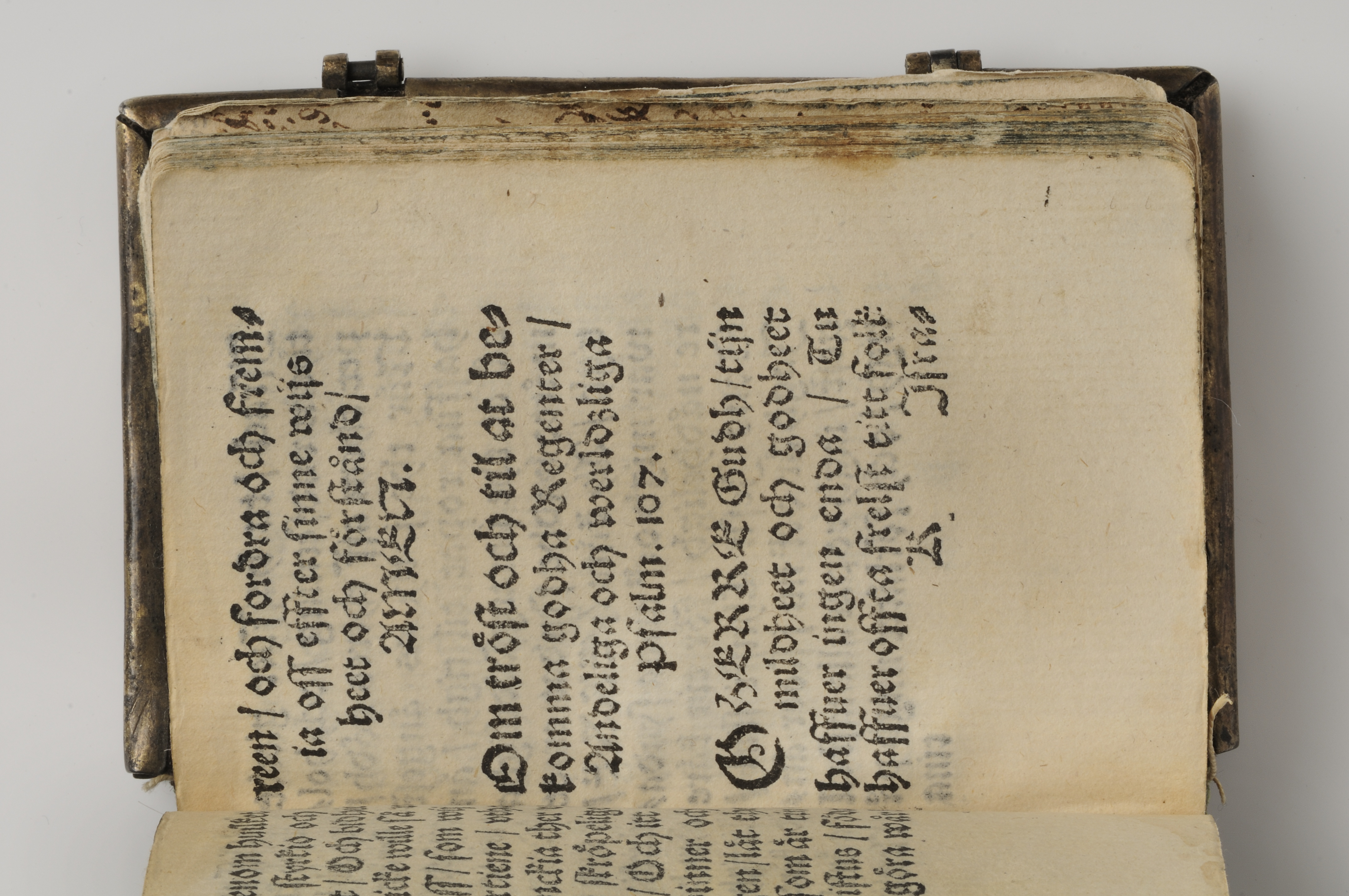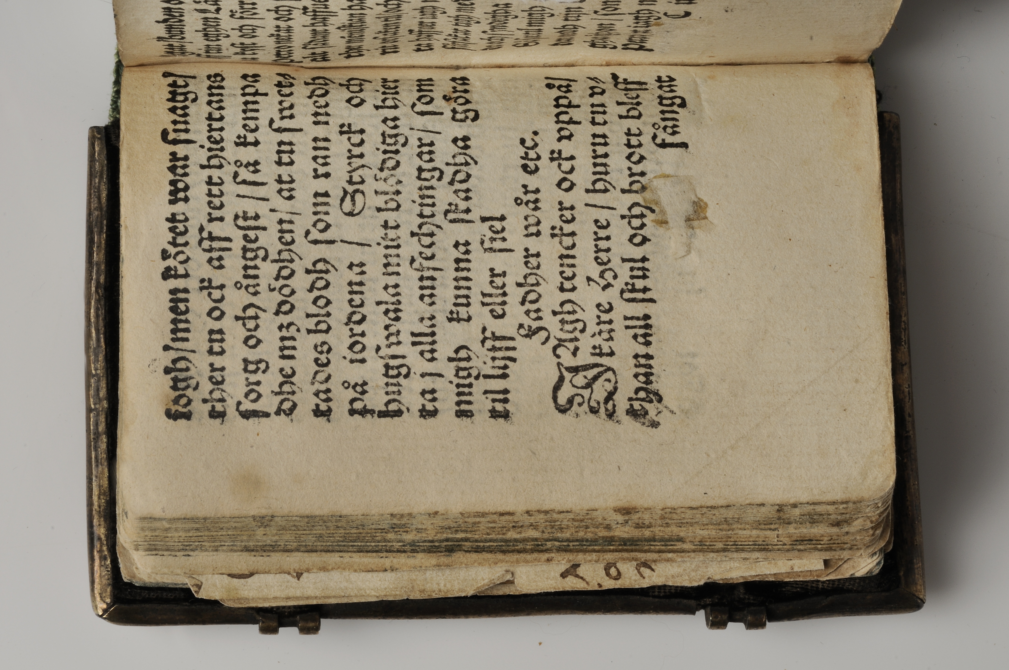 Bönbok som tillhört Malin Sture. Boken är tryckt i Stockholm av Amund Laurentzson 1559. Sigrid Leijonhufvud: Malin Stures bönbok, Fornvännen 1907.
