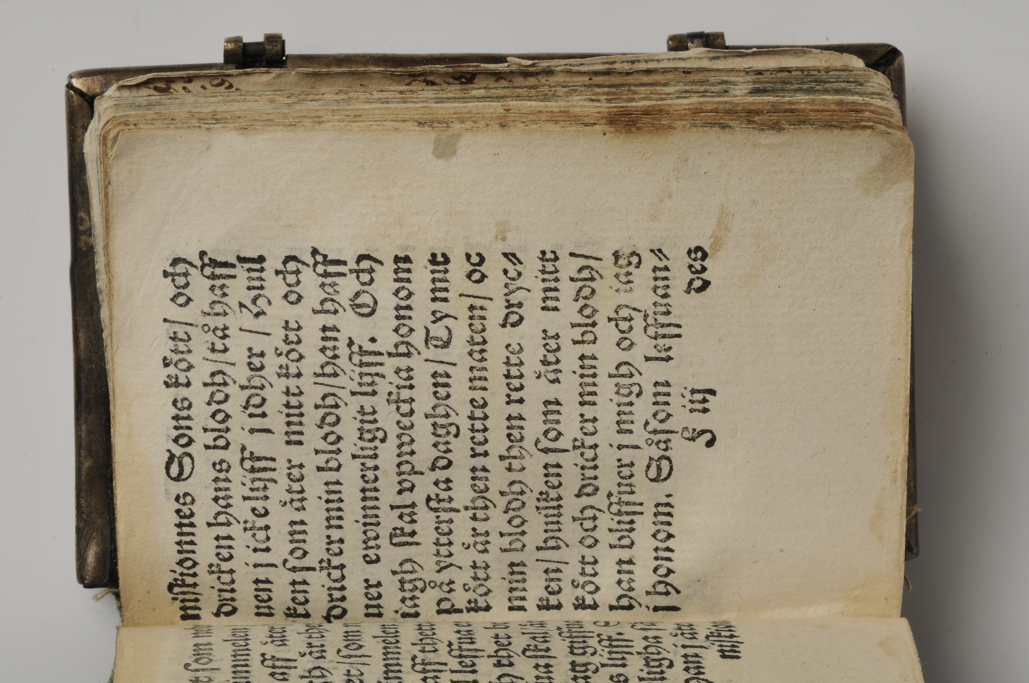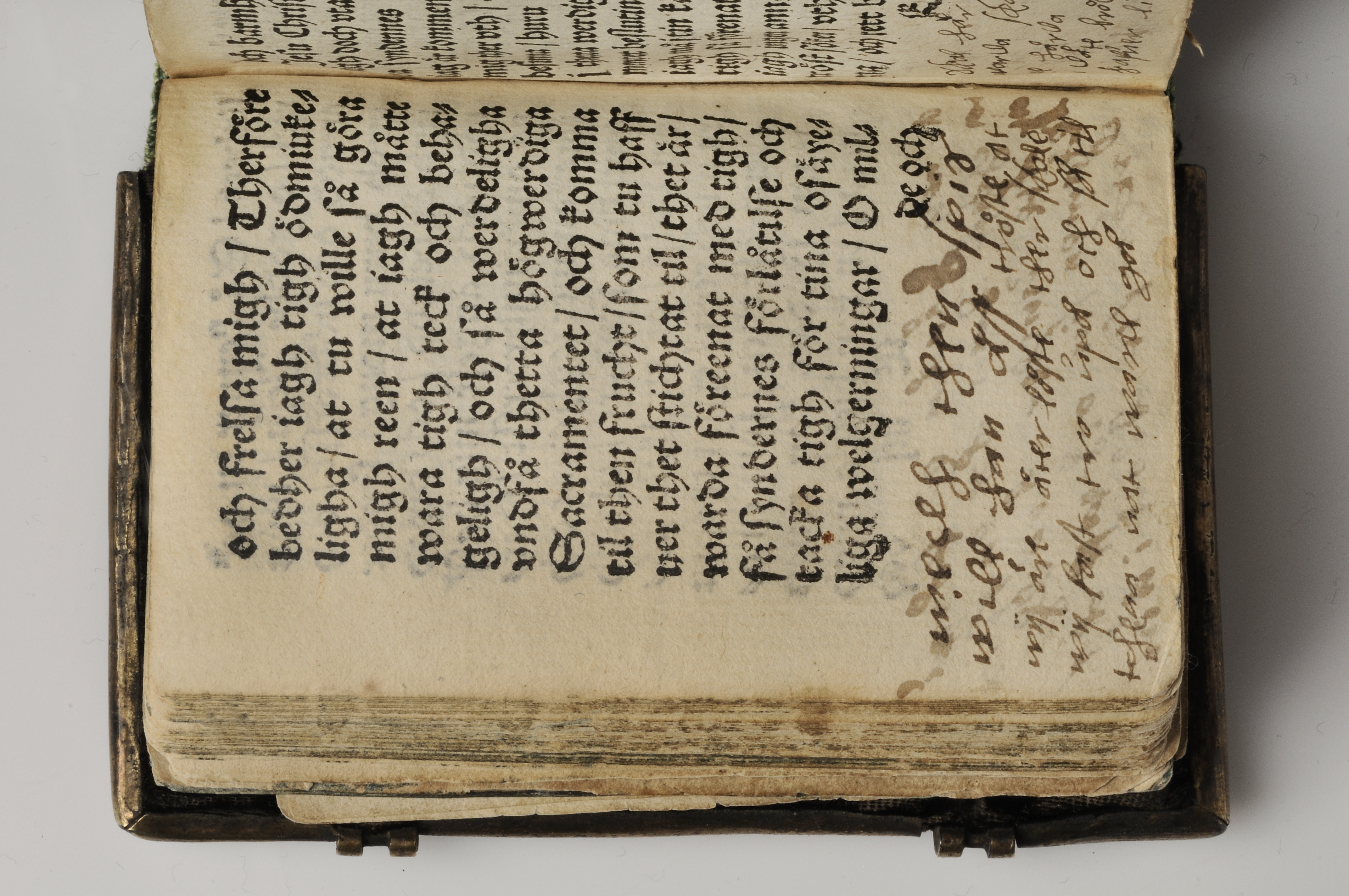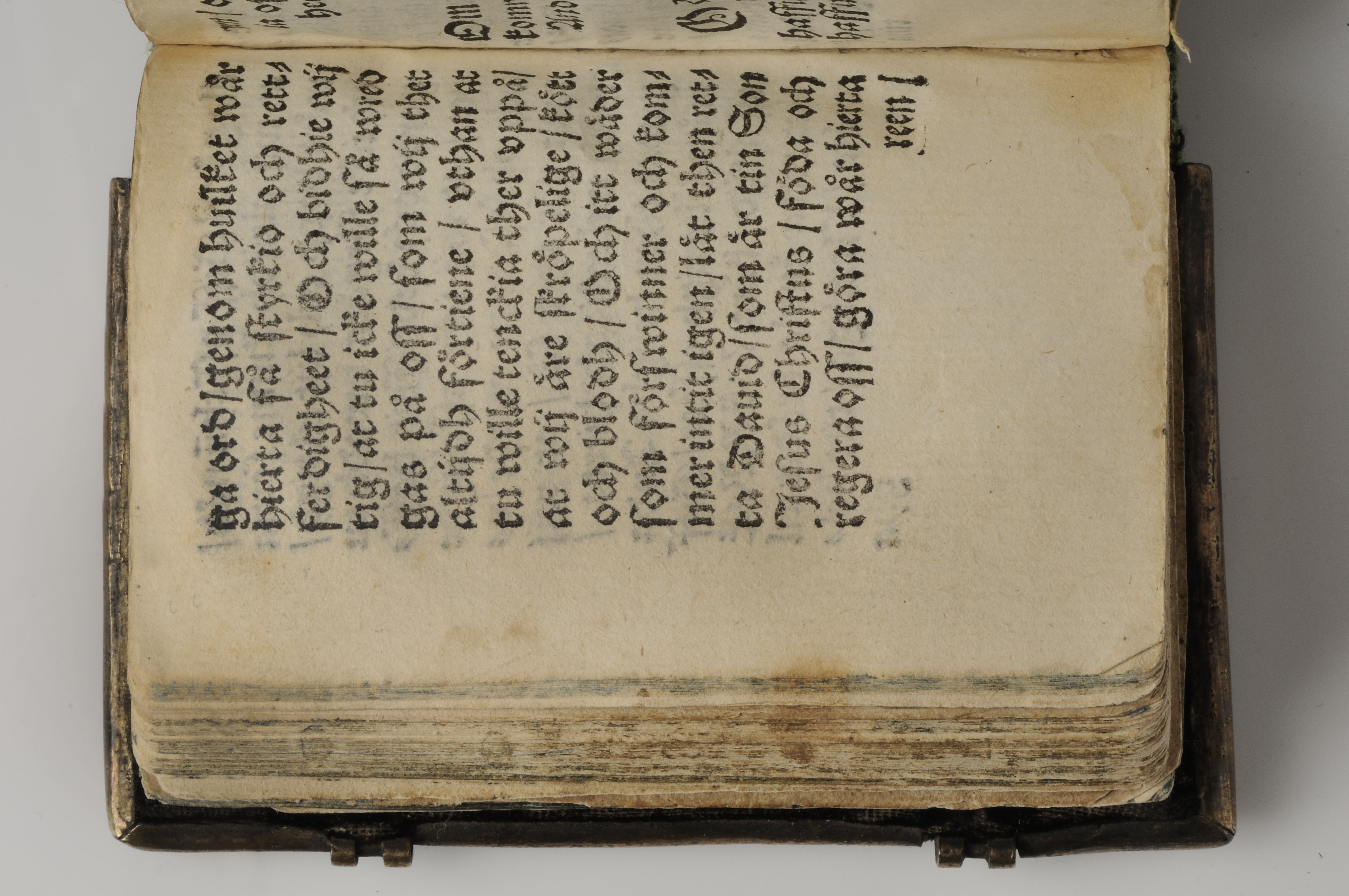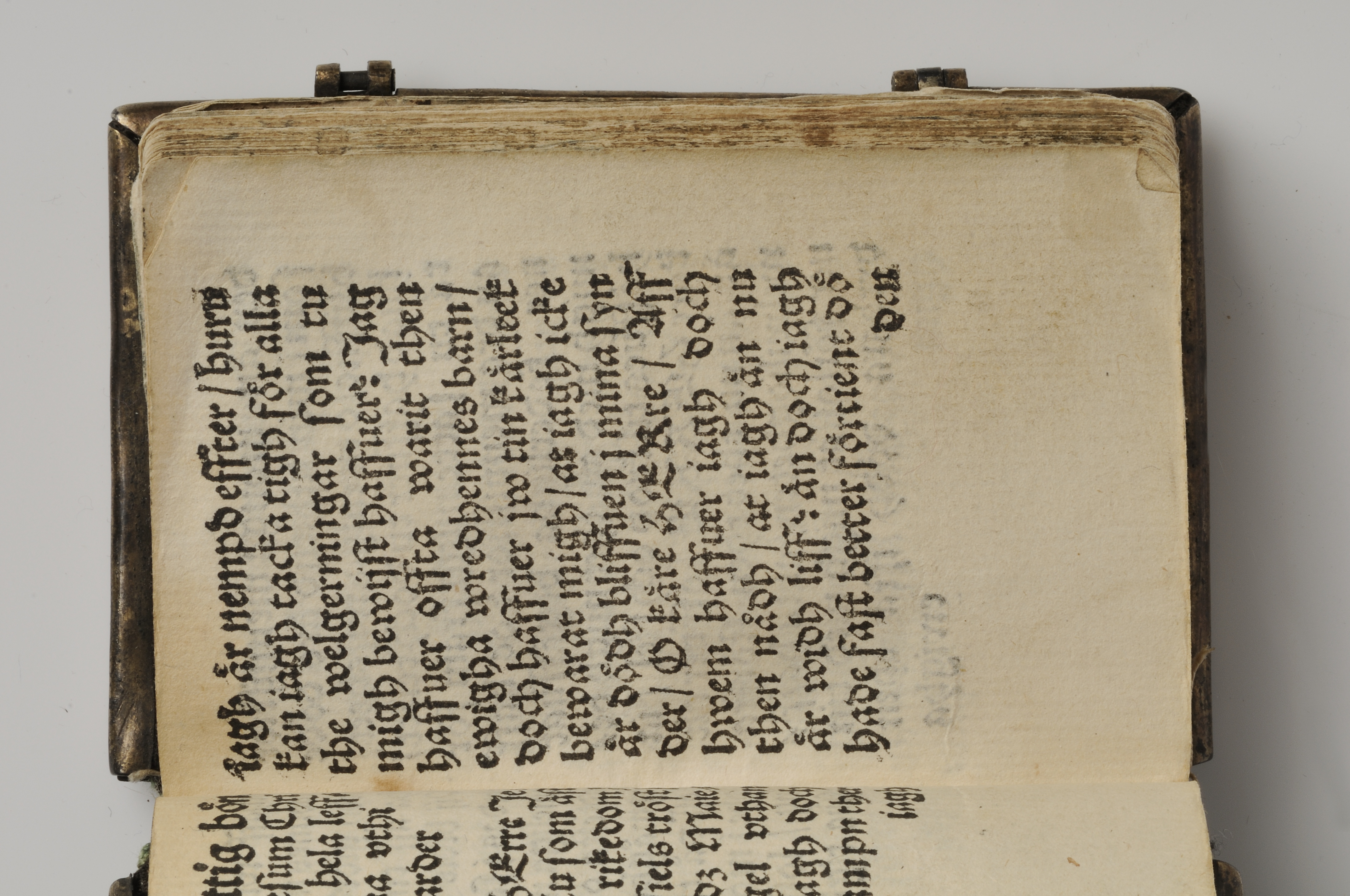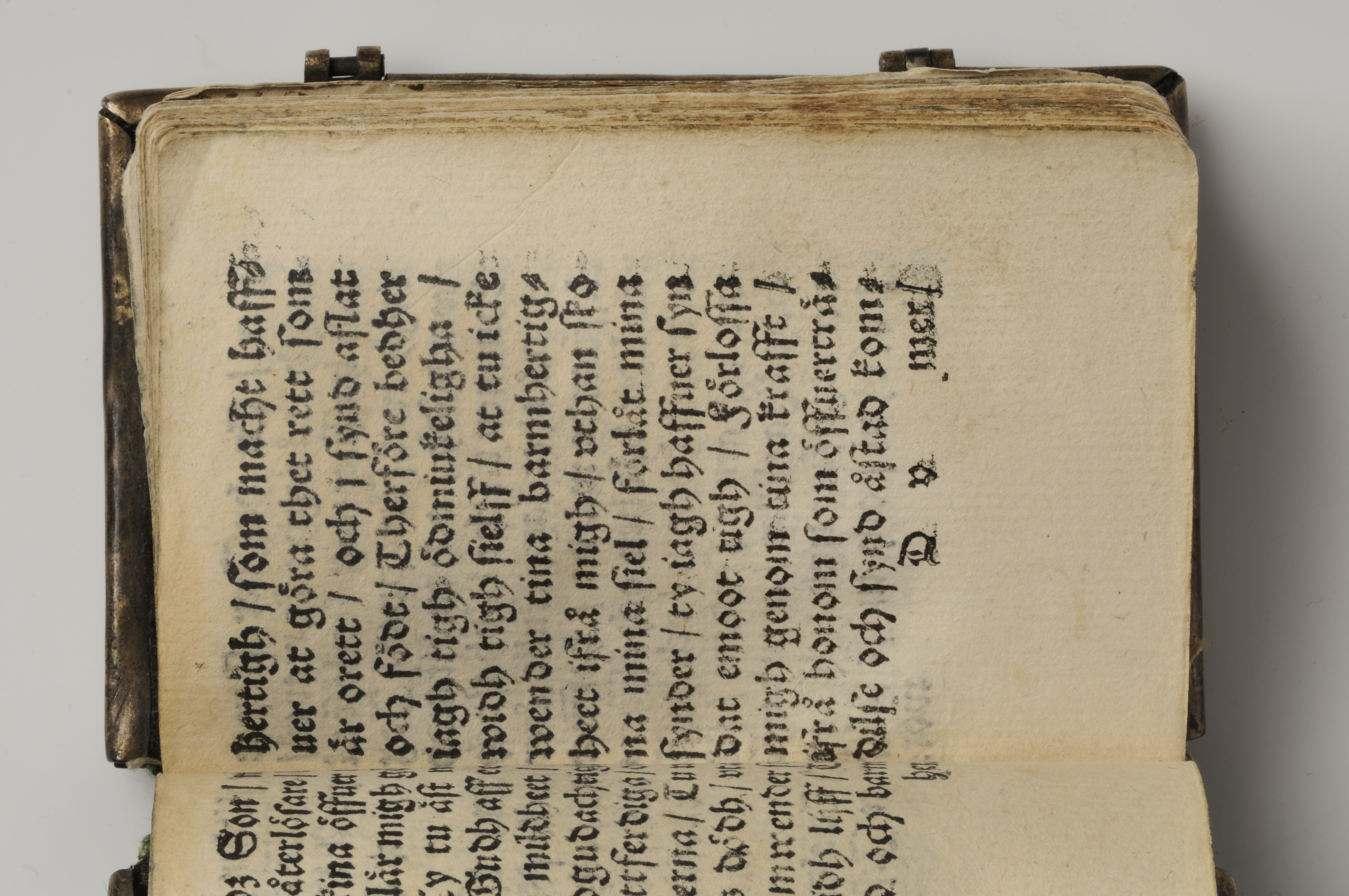 Bönbok som tillhört Malin Sture. Boken är tryckt i Stockholm av Amund Laurentzson 1559. Sigrid Leijonhufvud: Malin Stures bönbok, Fornvännen 1907.