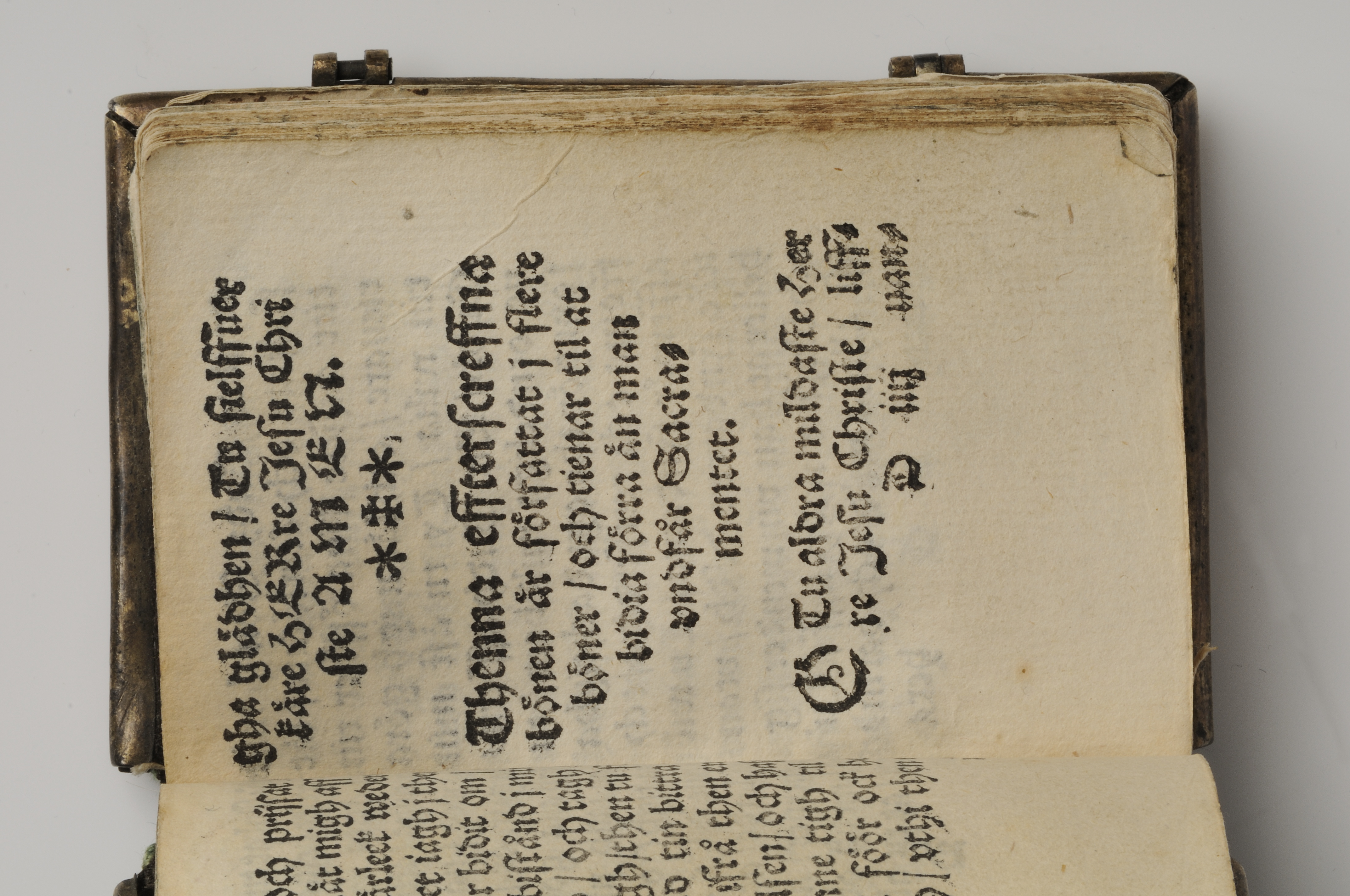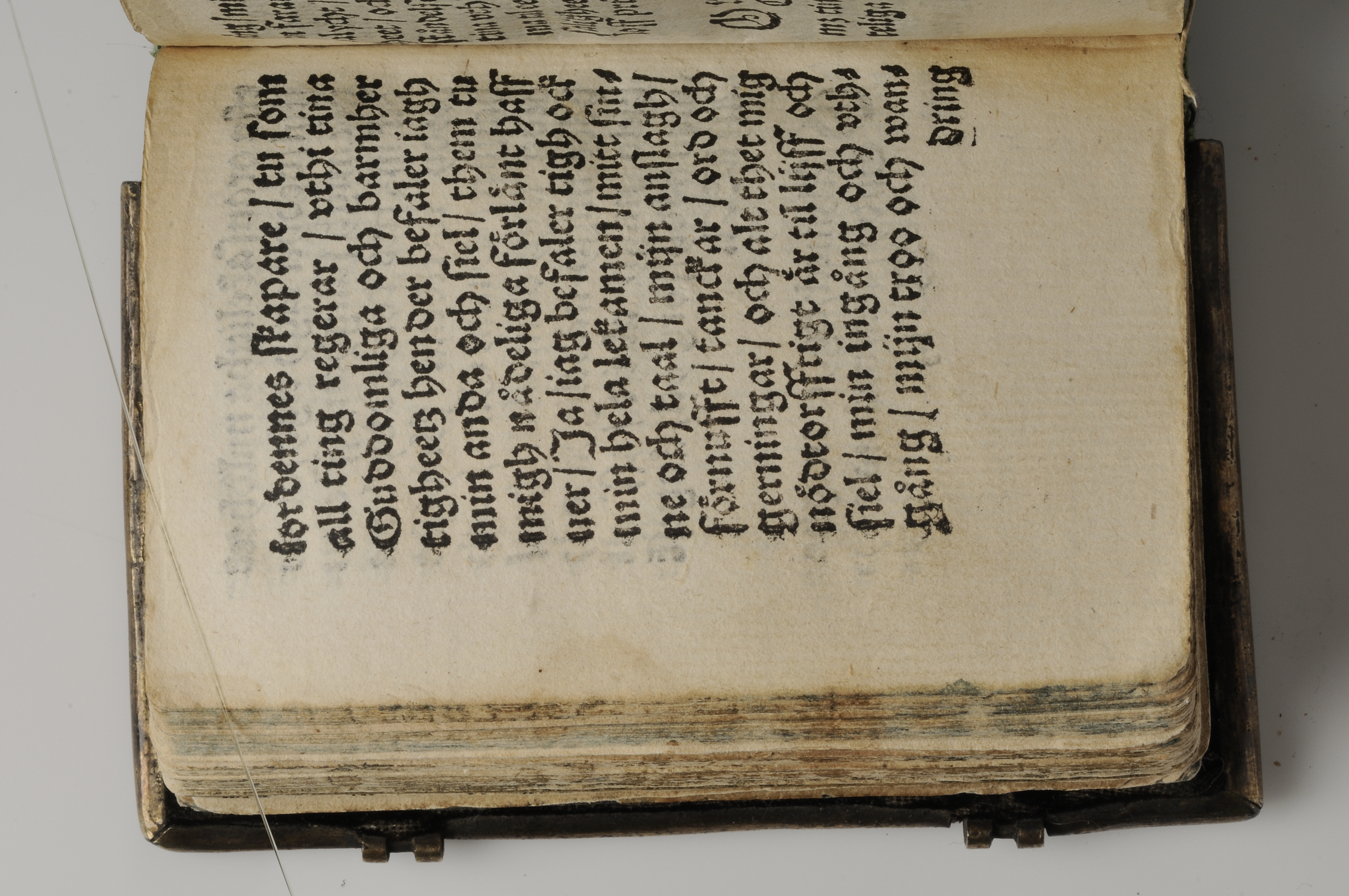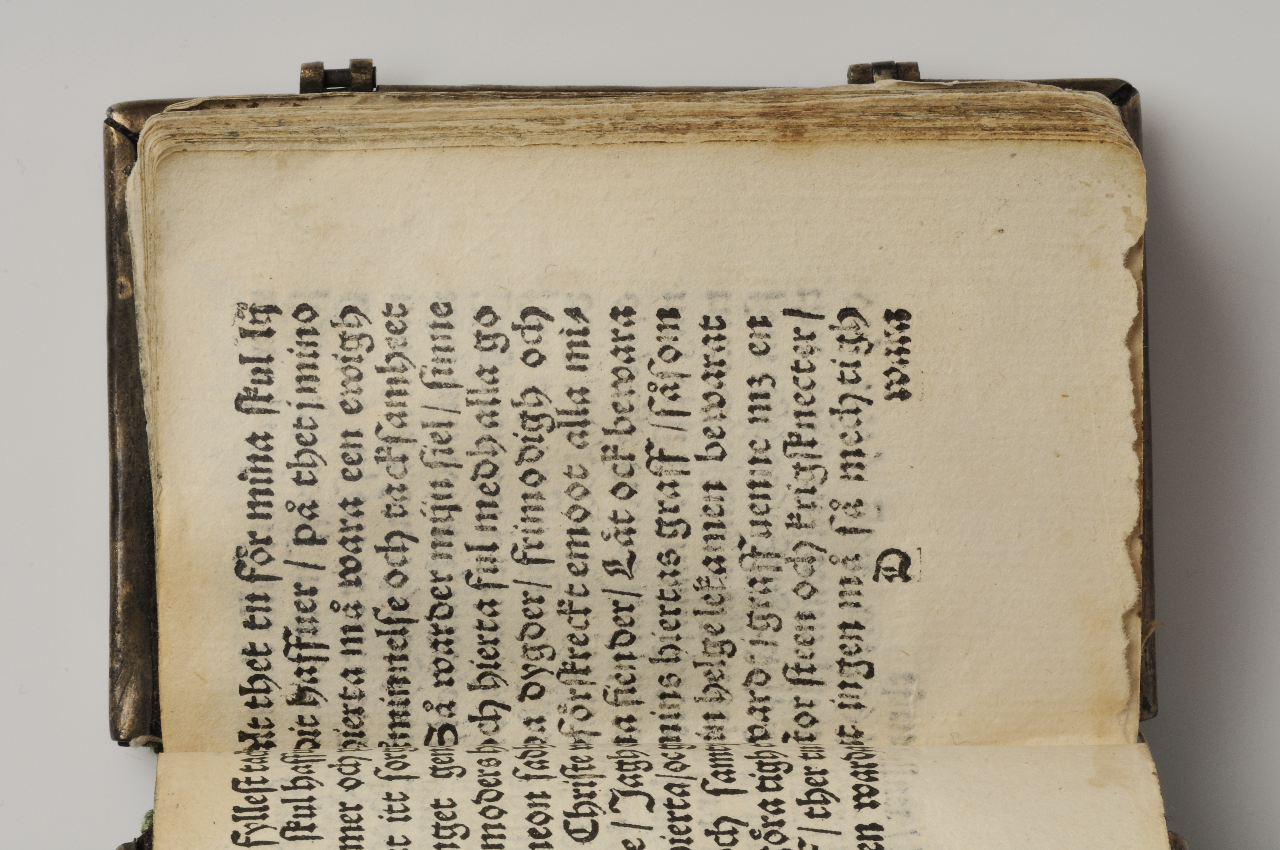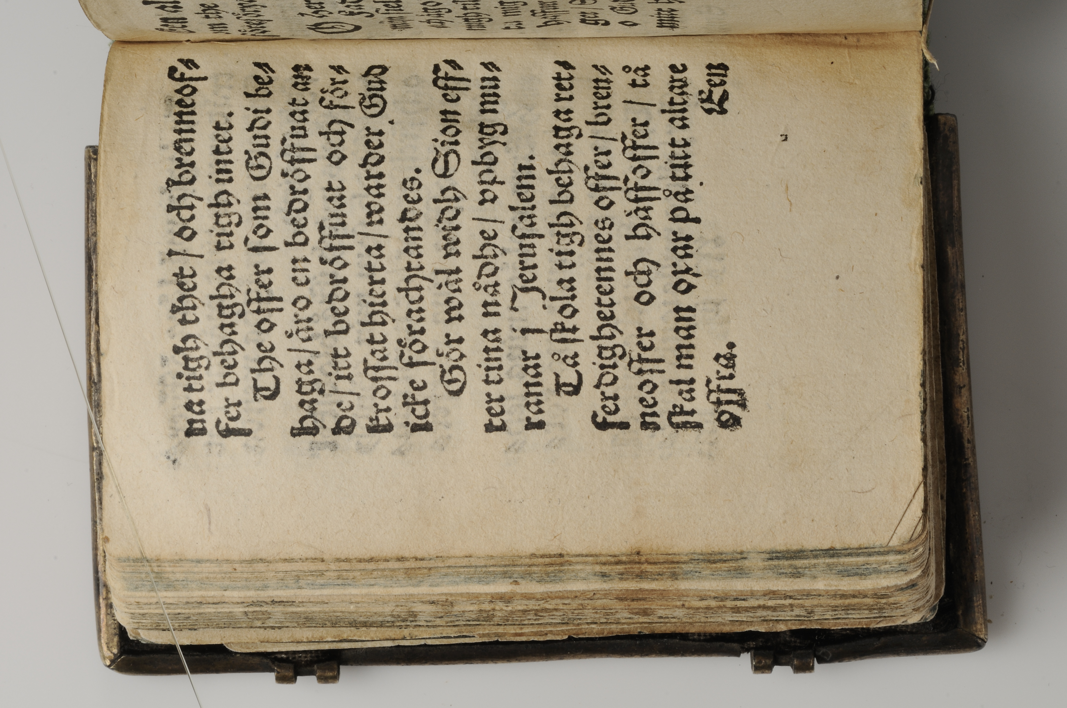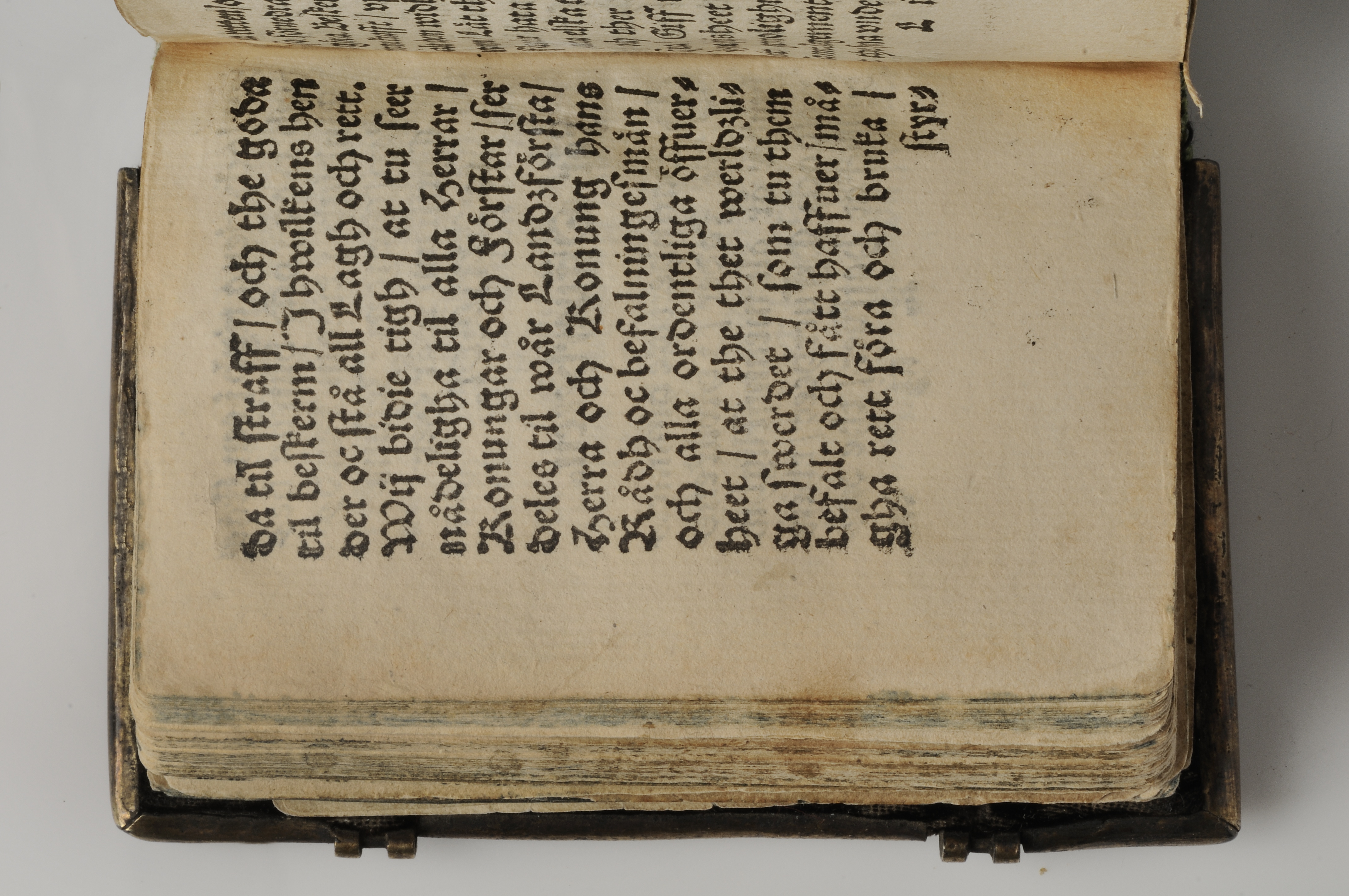 Bönbok som tillhört Malin Sture. Boken är tryckt i Stockholm av Amund Laurentzson 1559. Sigrid Leijonhufvud: Malin Stures bönbok, Fornvännen 1907.