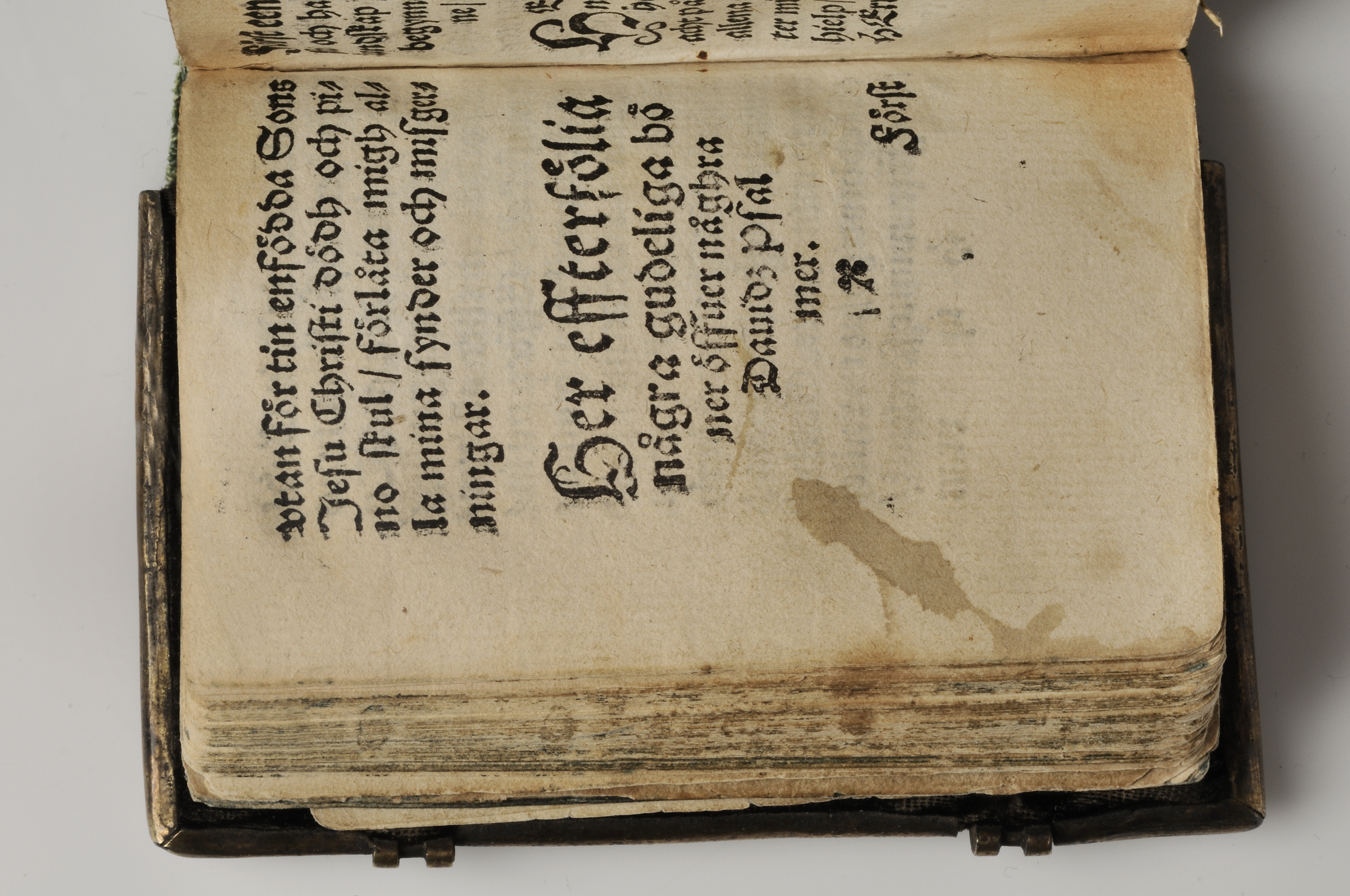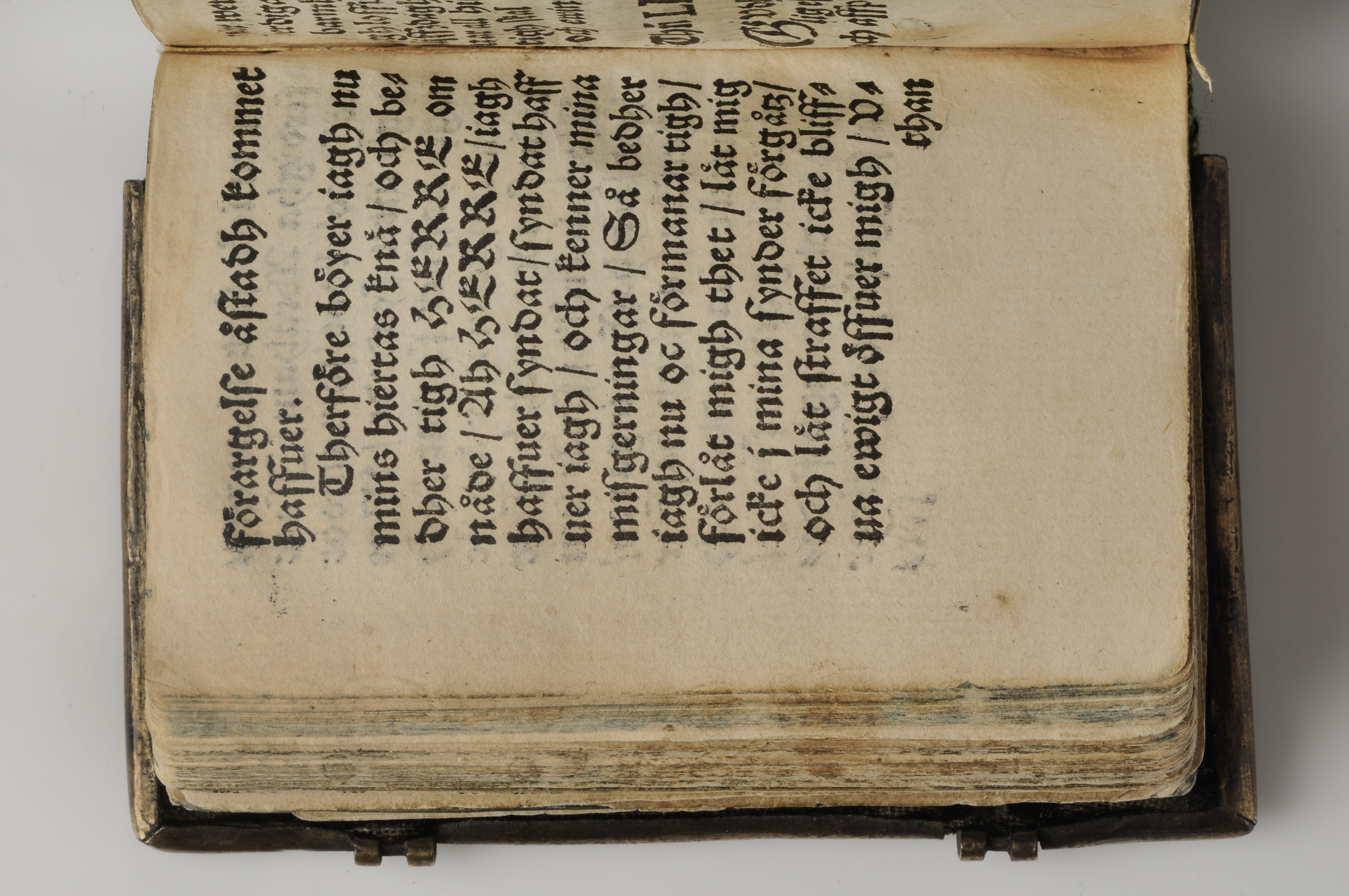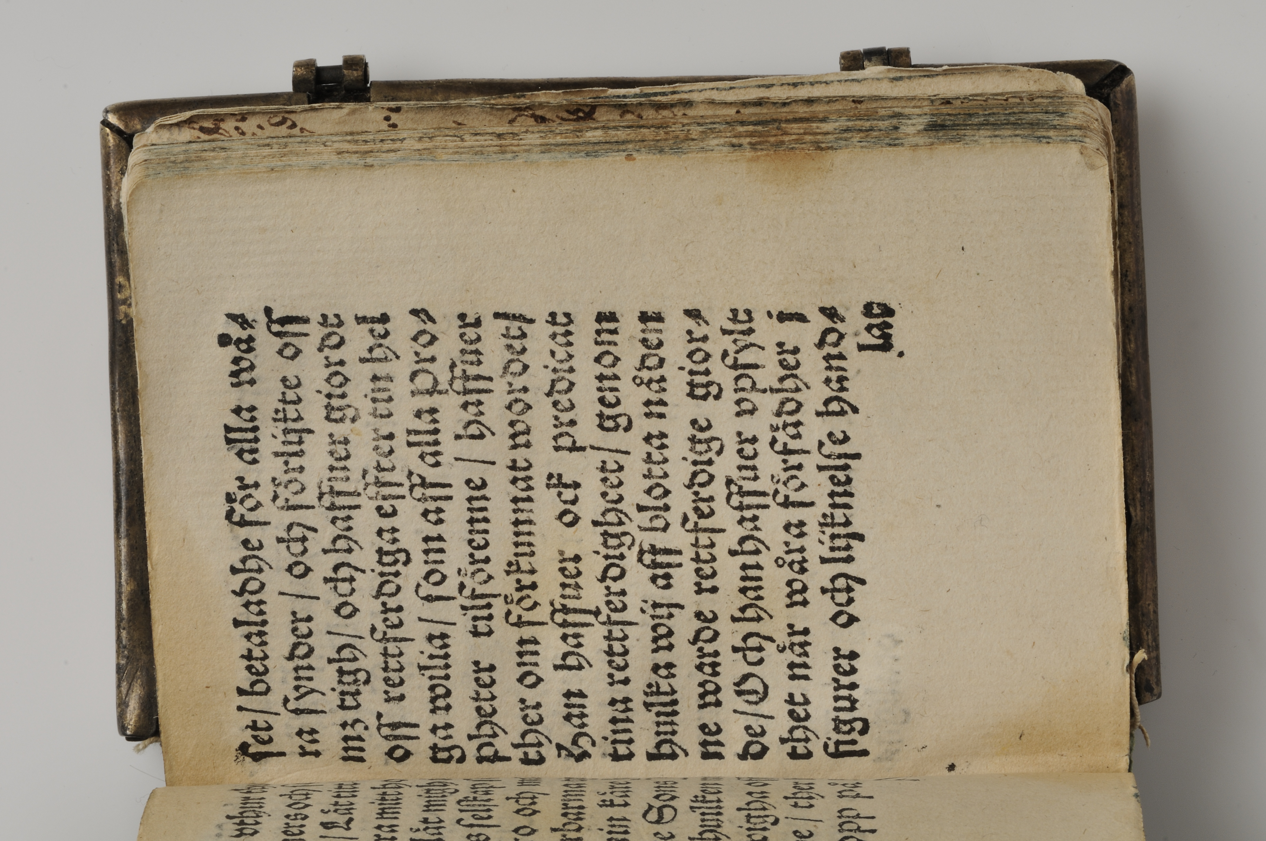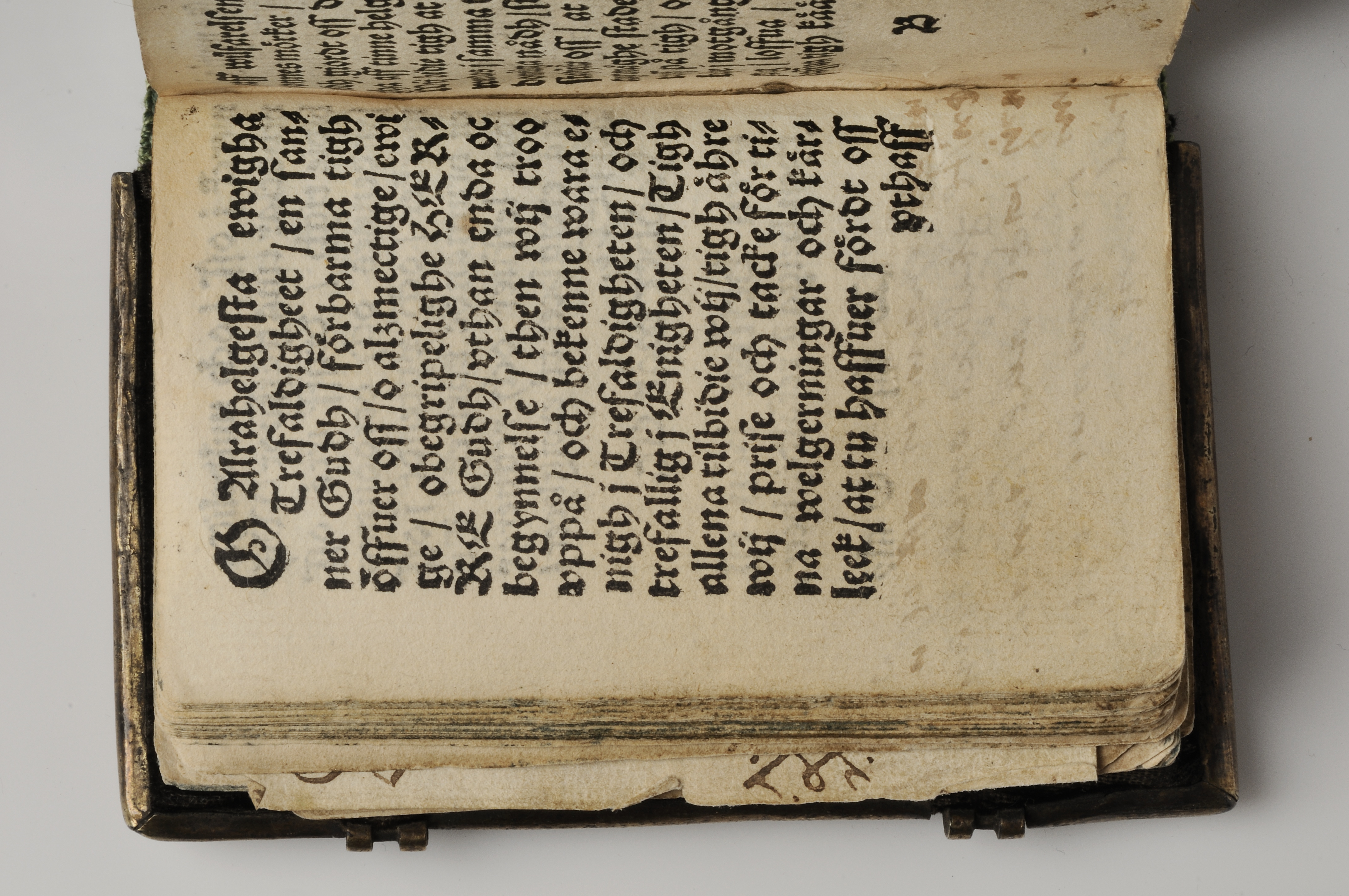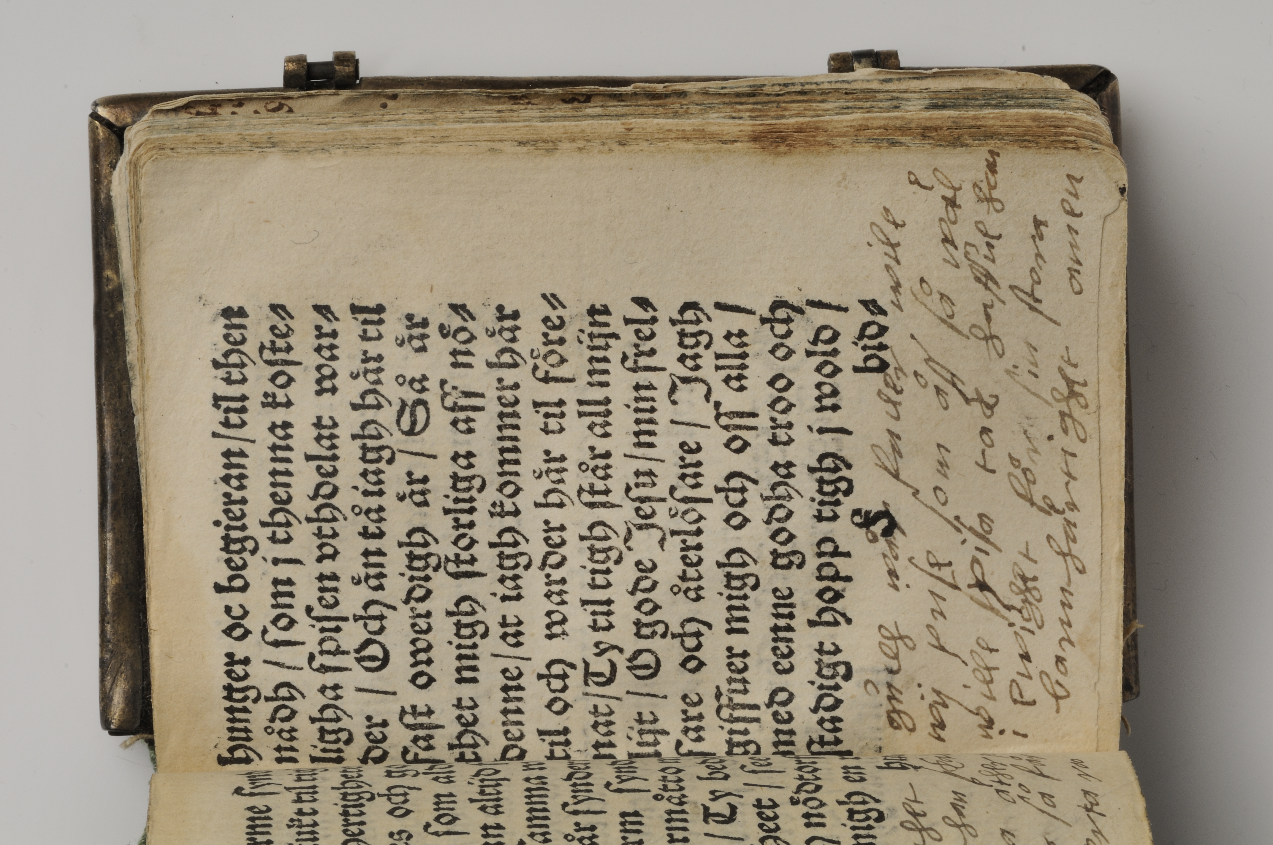 Bönbok som tillhört Malin Sture. Boken är tryckt i Stockholm av Amund Laurentzson 1559. Sigrid Leijonhufvud: Malin Stures bönbok, Fornvännen 1907.