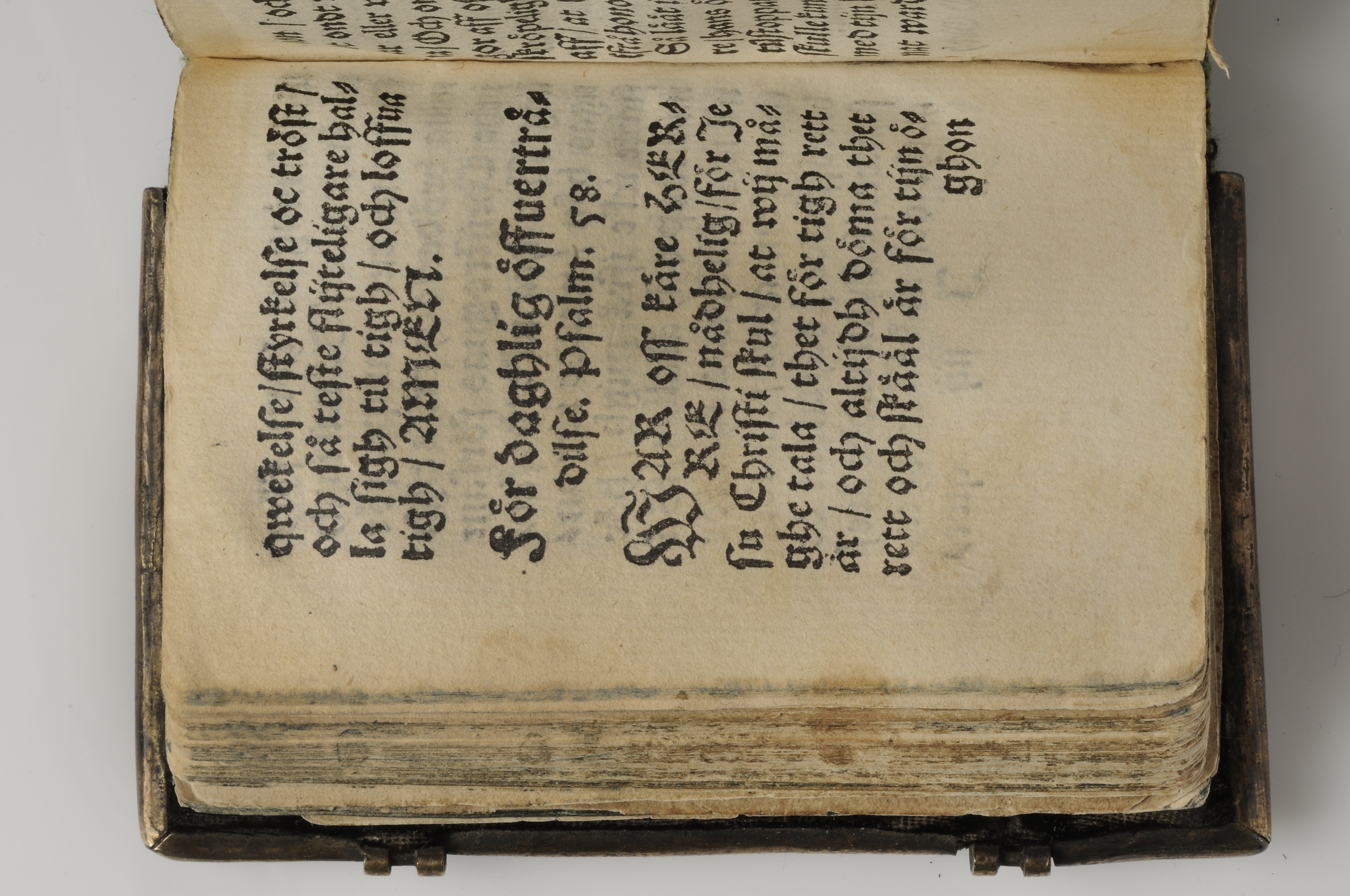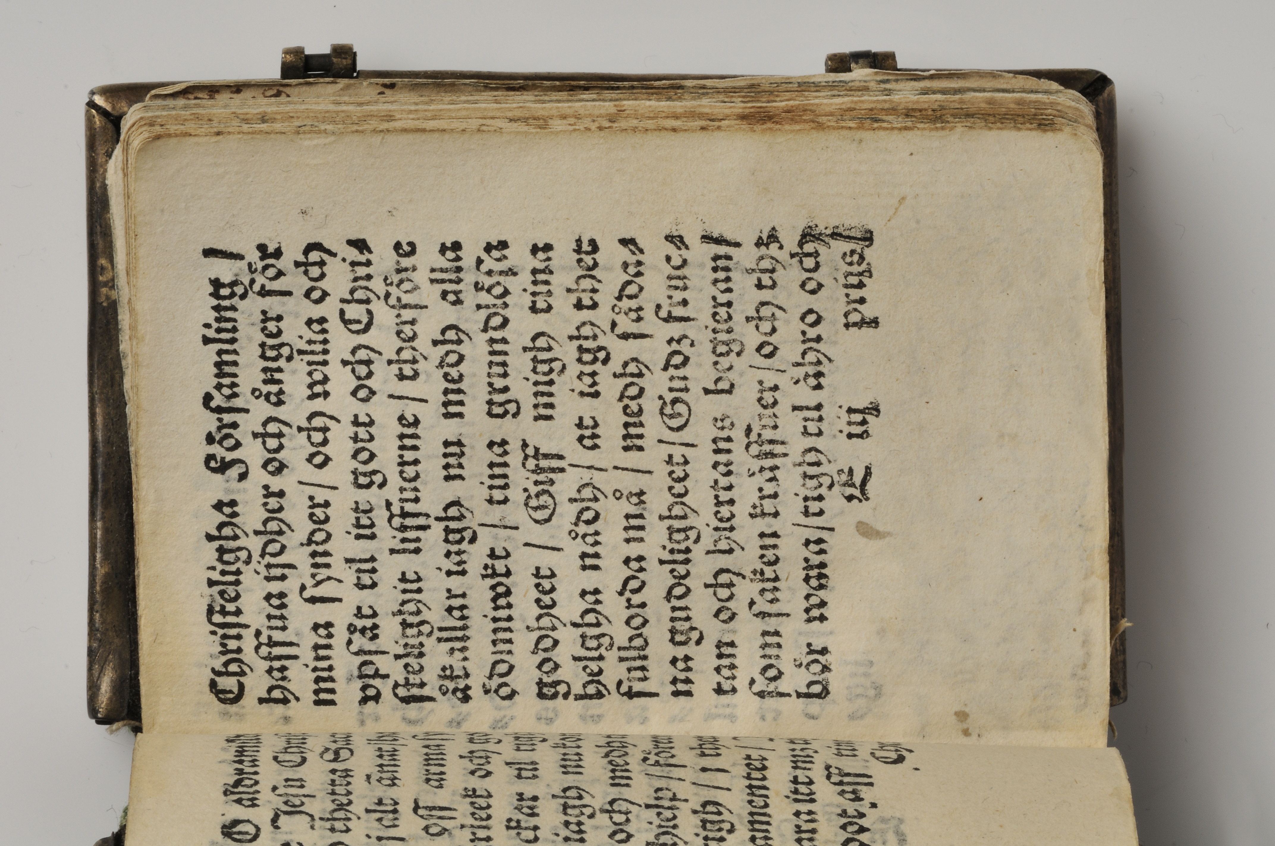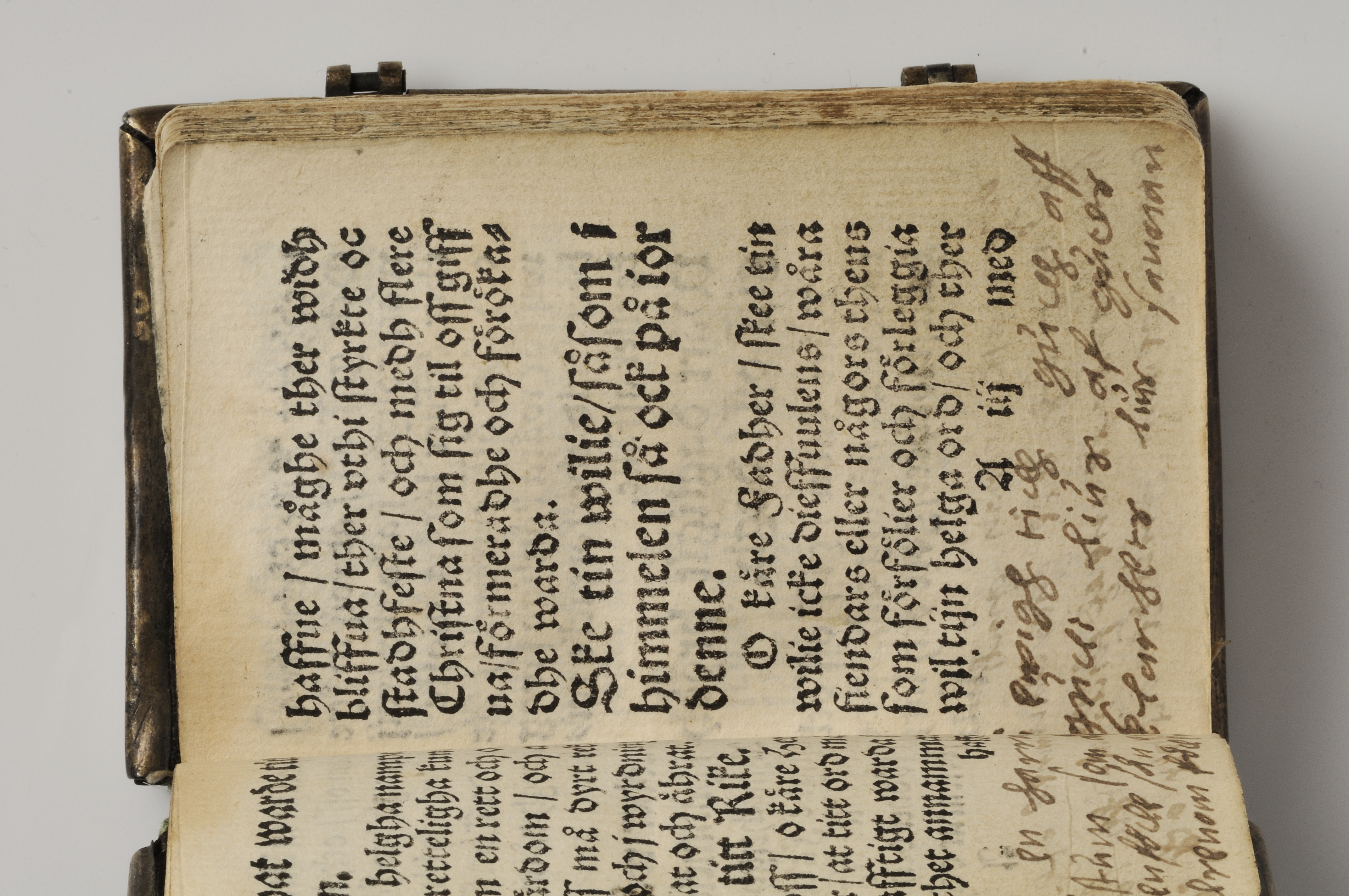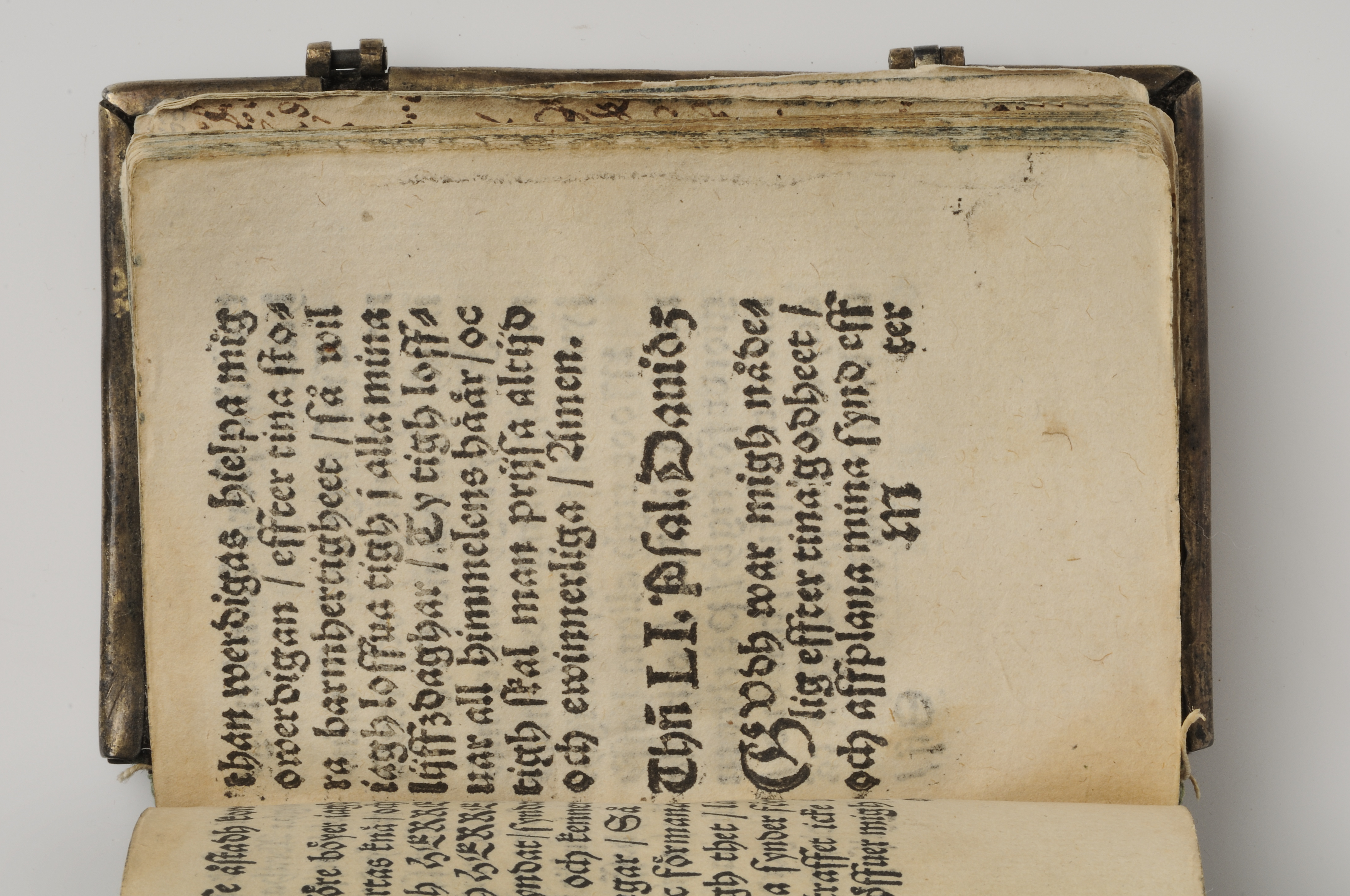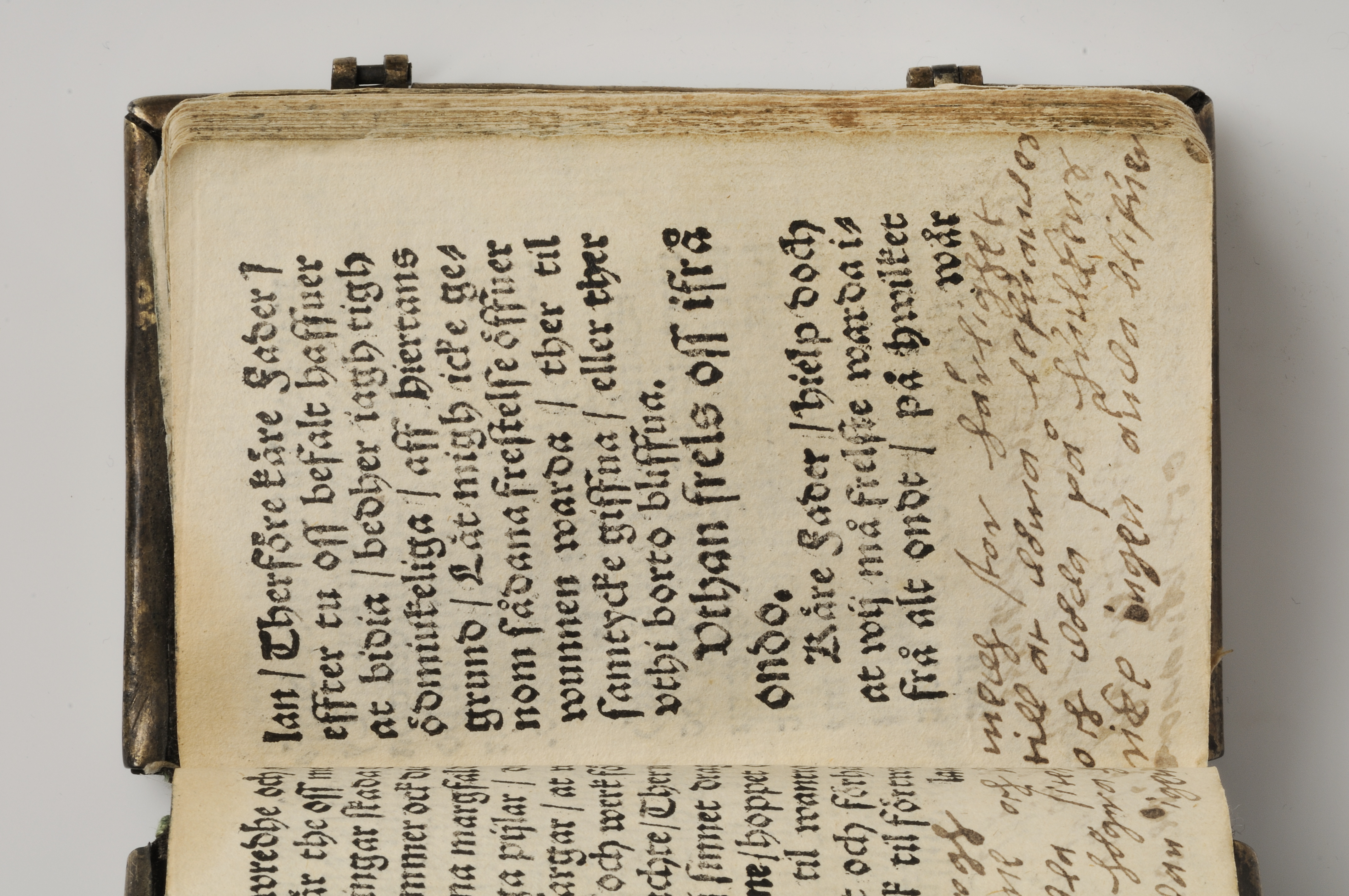 Bönbok som tillhört Malin Sture. Boken är tryckt i Stockholm av Amund Laurentzson 1559. Sigrid Leijonhufvud: Malin Stures bönbok, Fornvännen 1907.