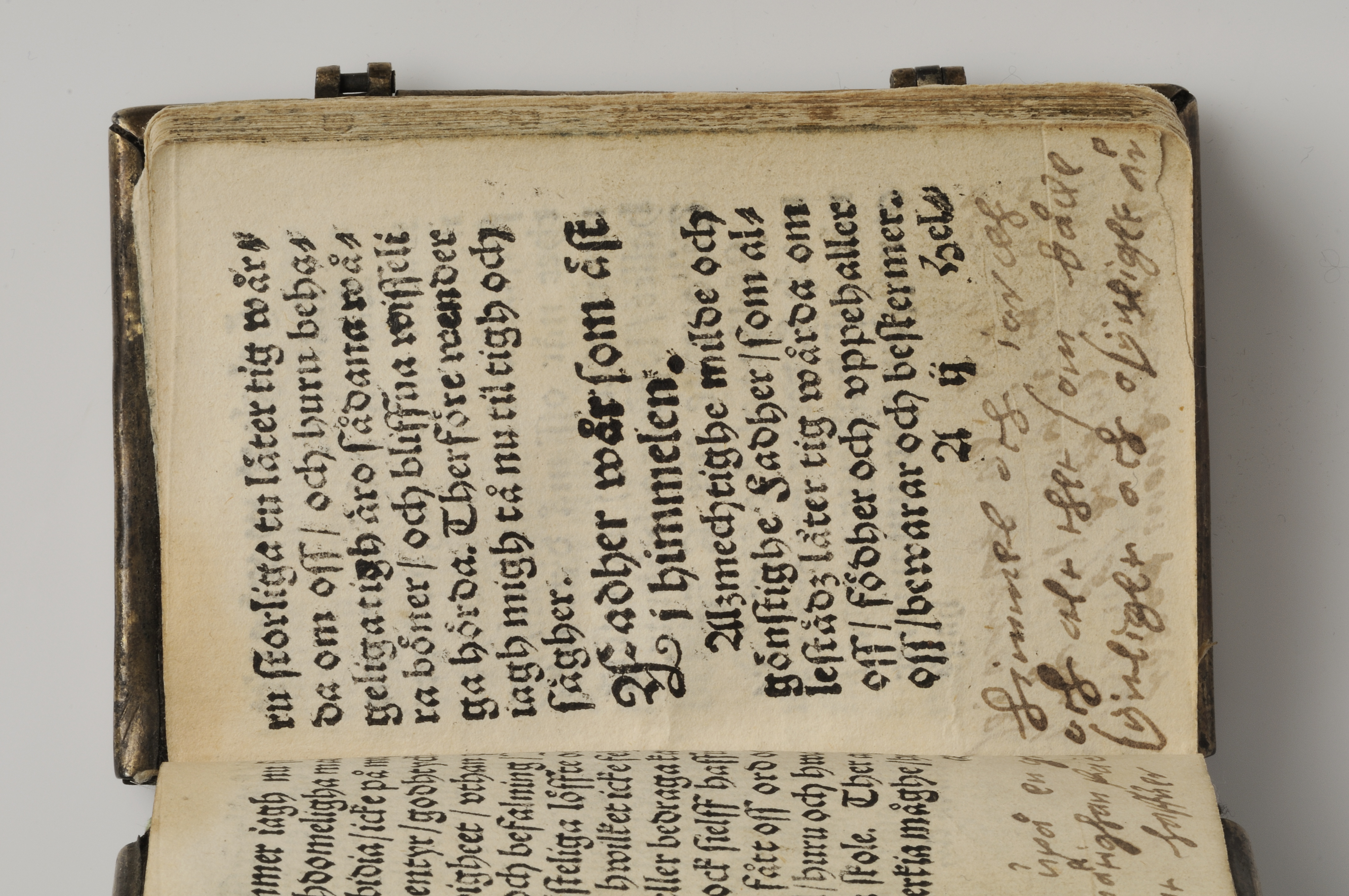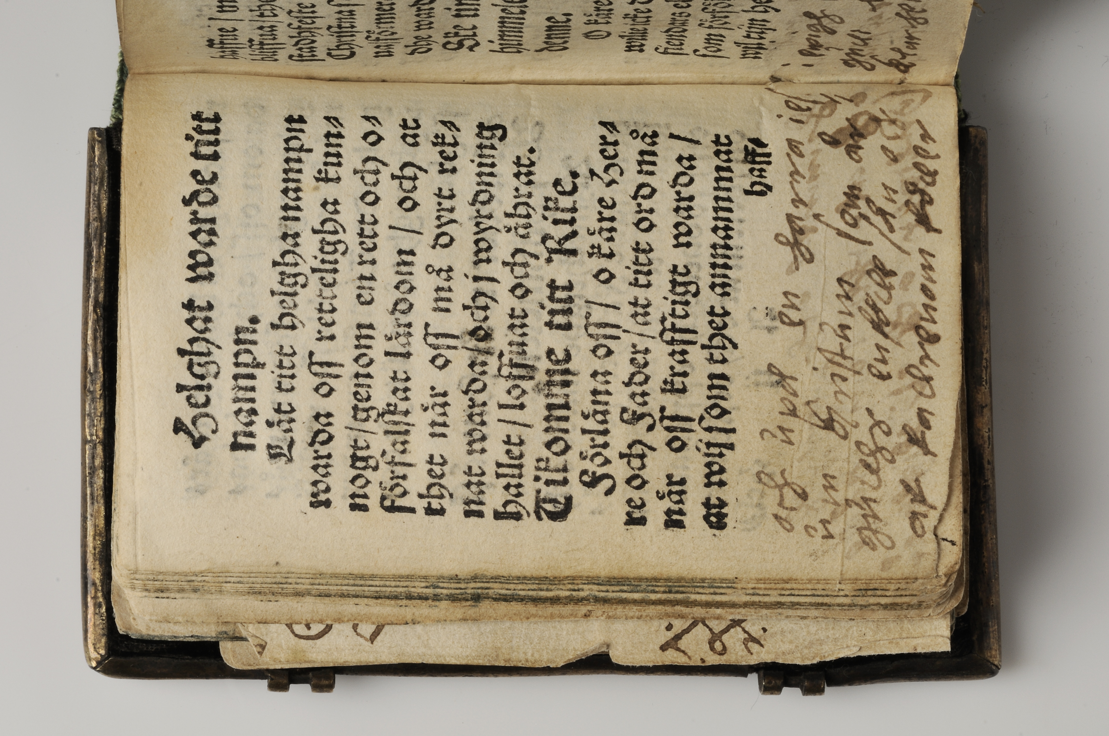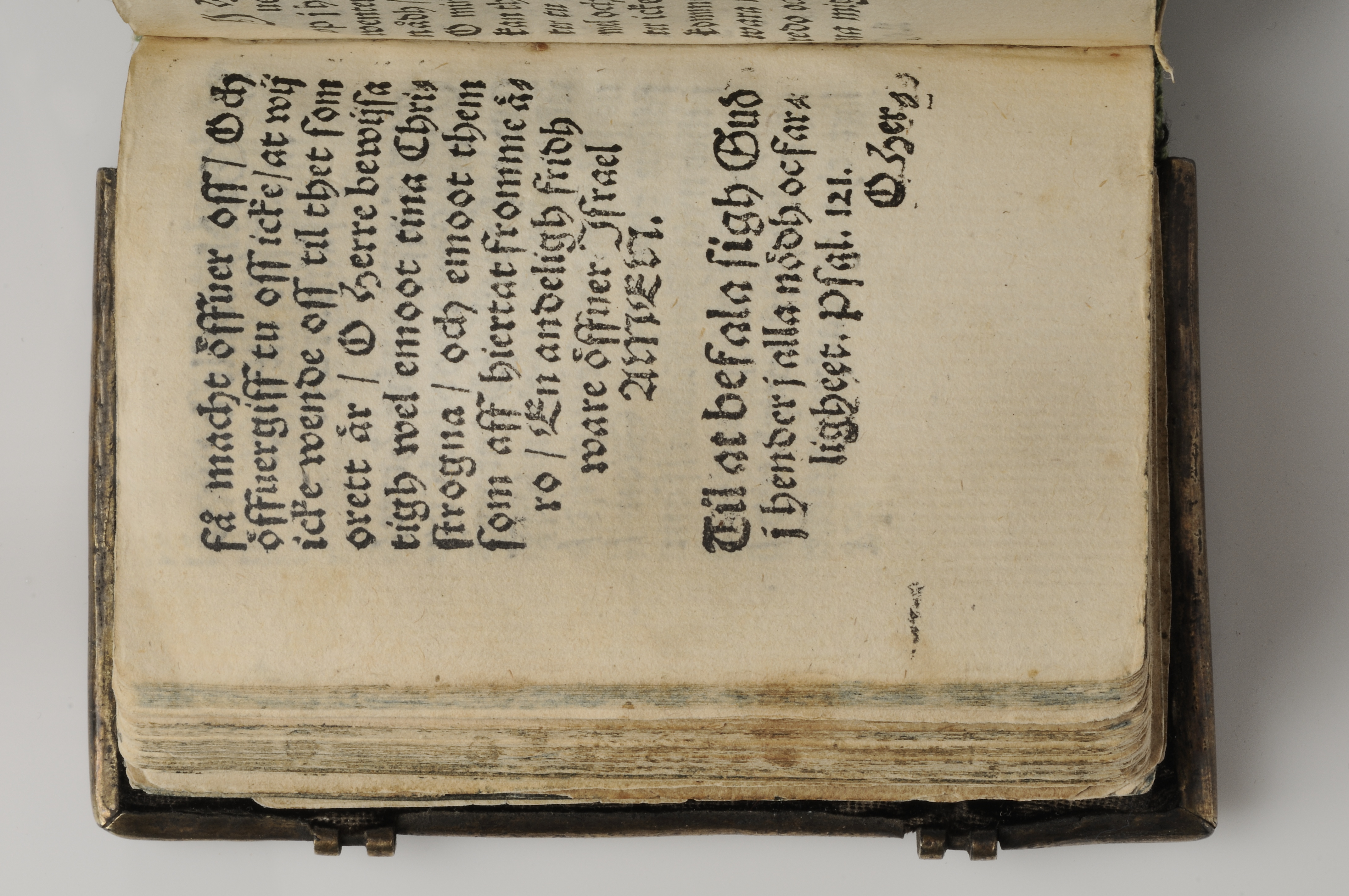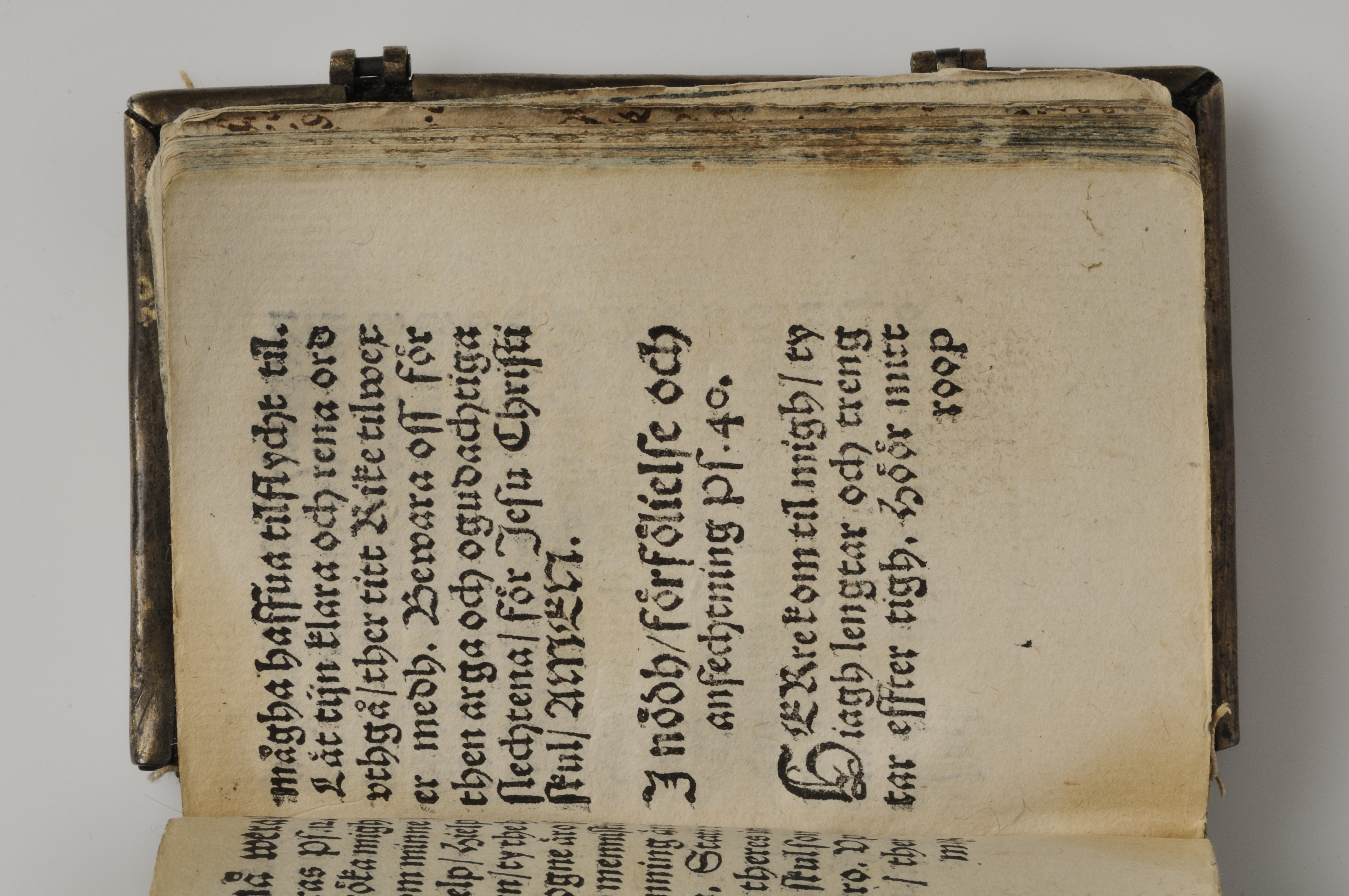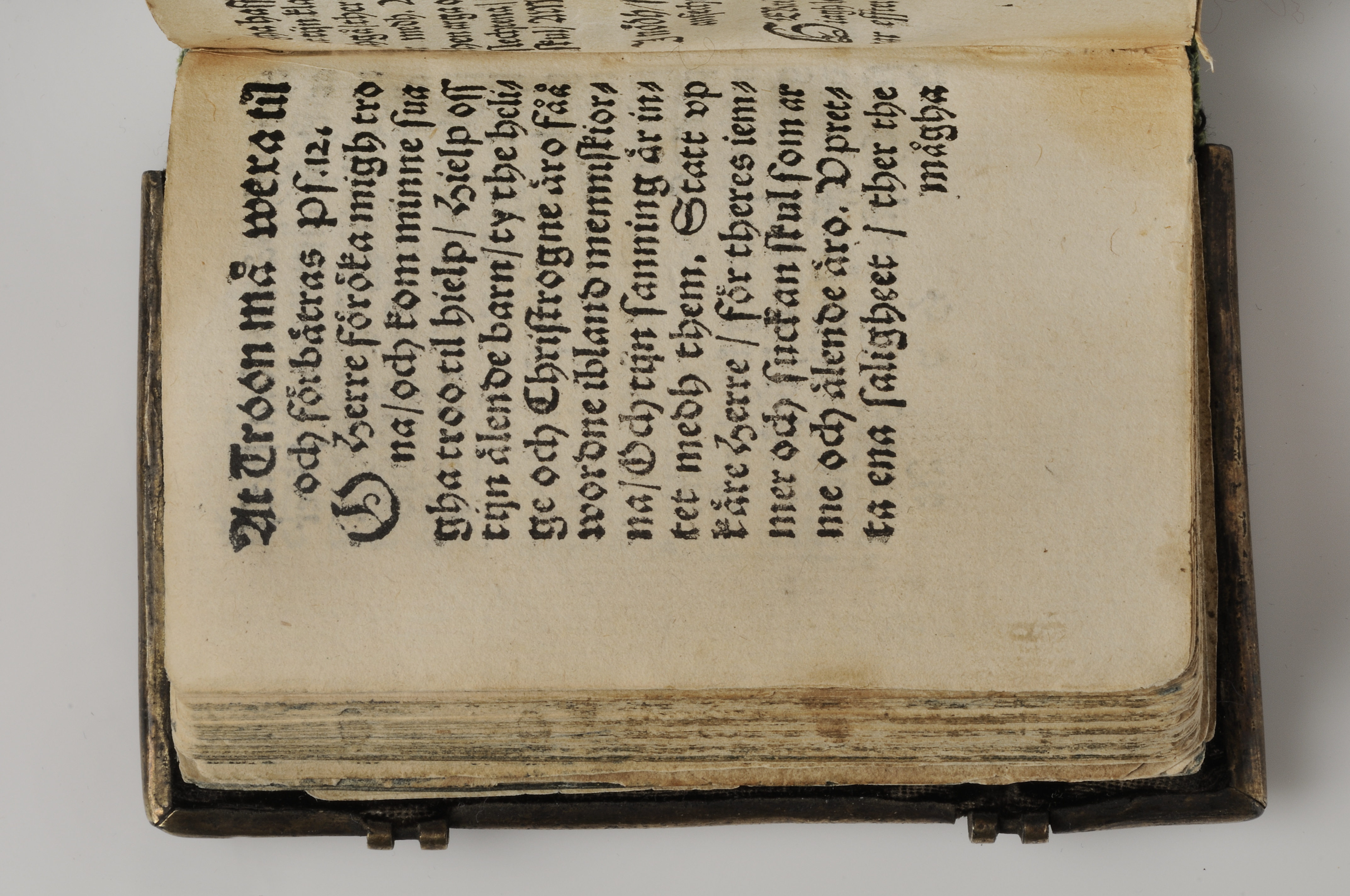 Bönbok som tillhört Malin Sture. Boken är tryckt i Stockholm av Amund Laurentzson 1559. Sigrid Leijonhufvud: Malin Stures bönbok, Fornvännen 1907.