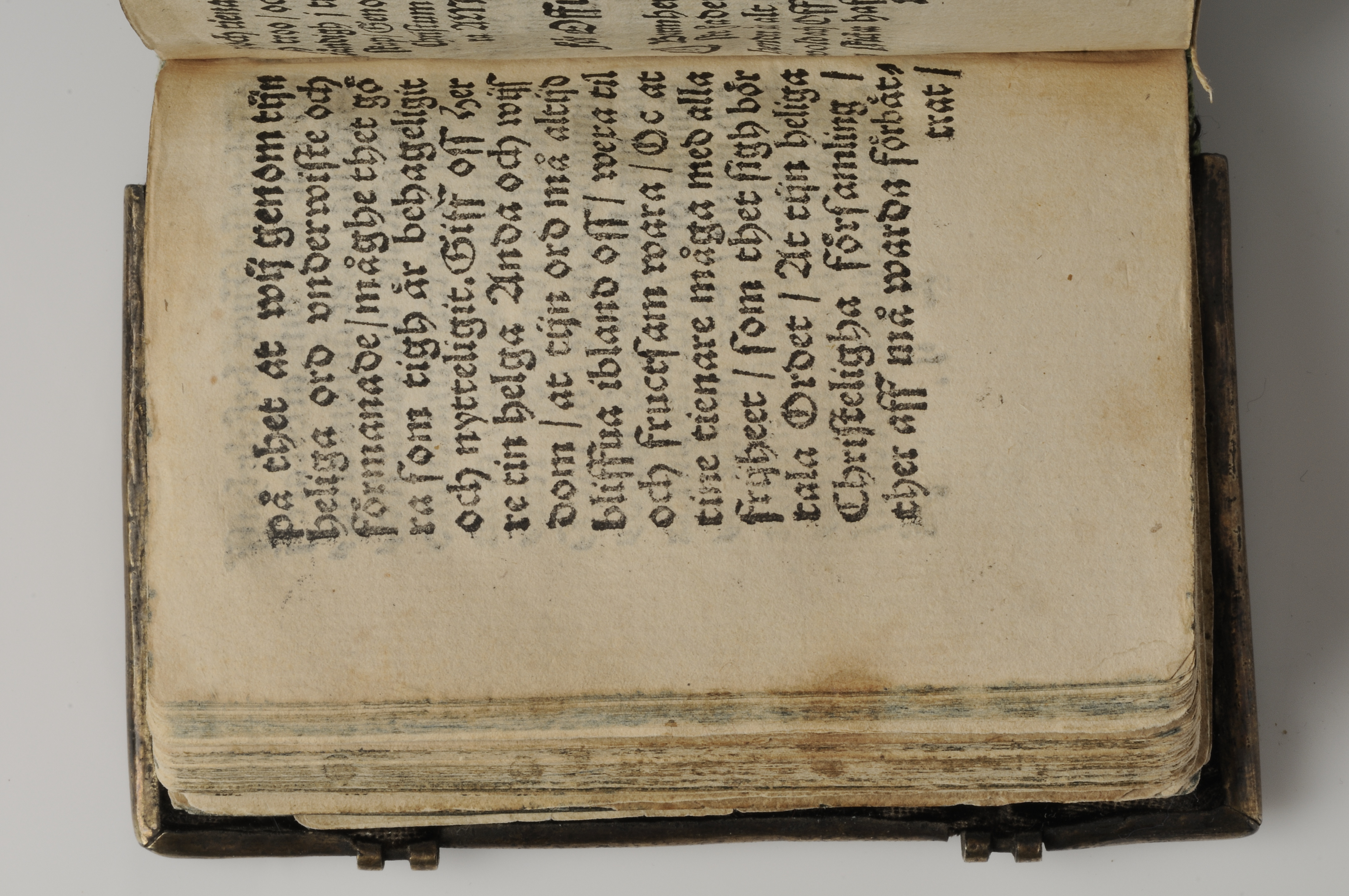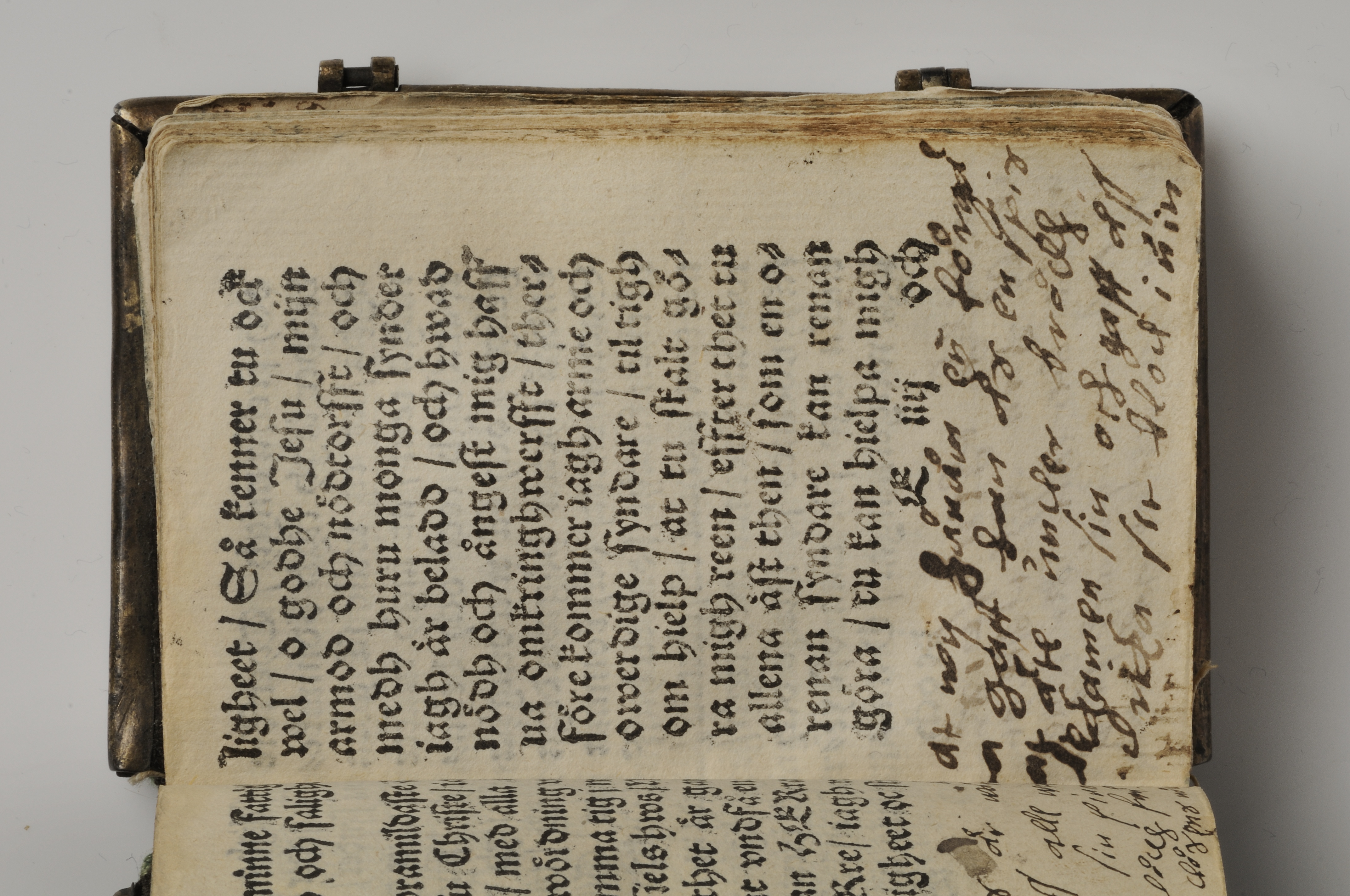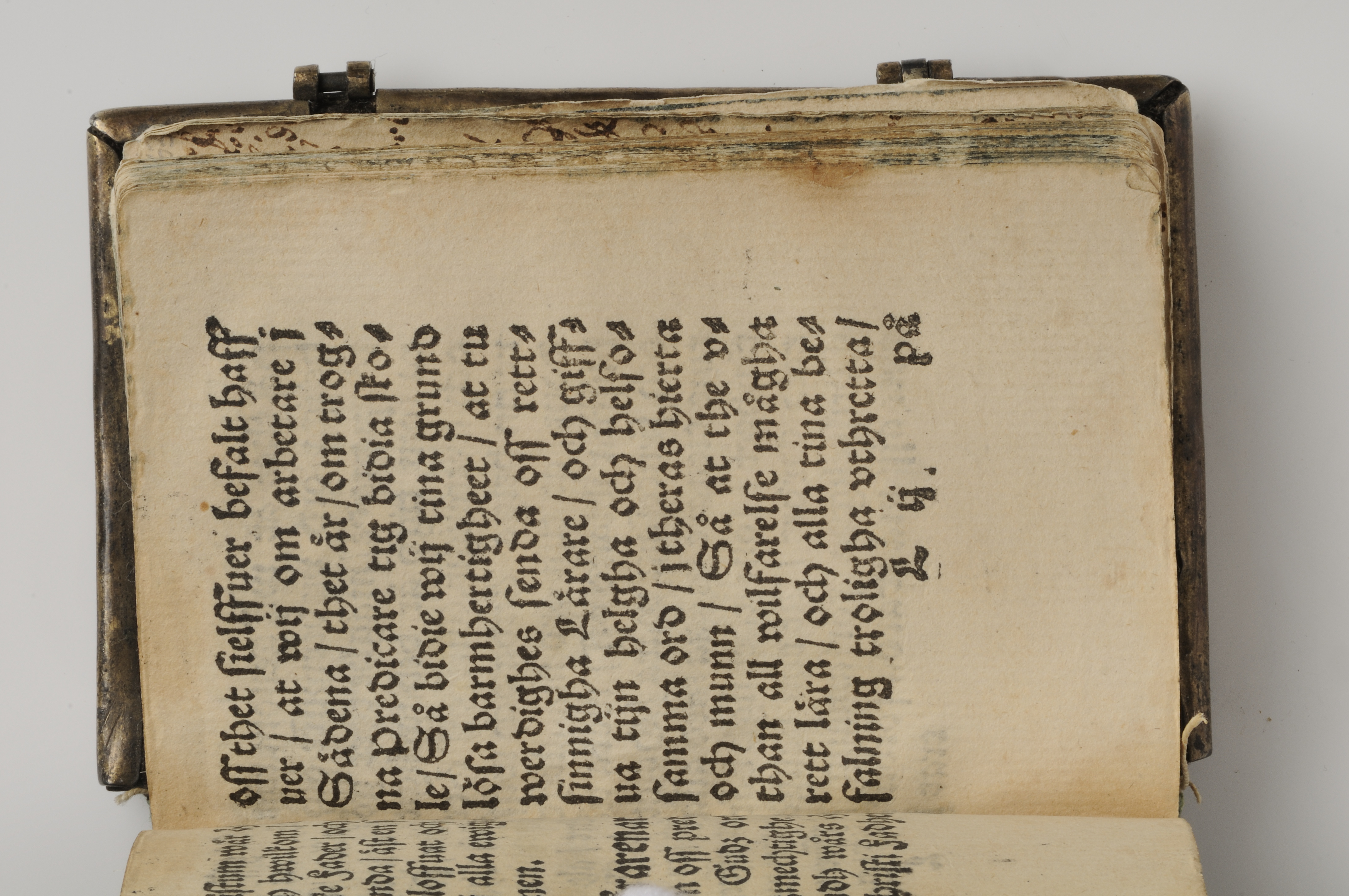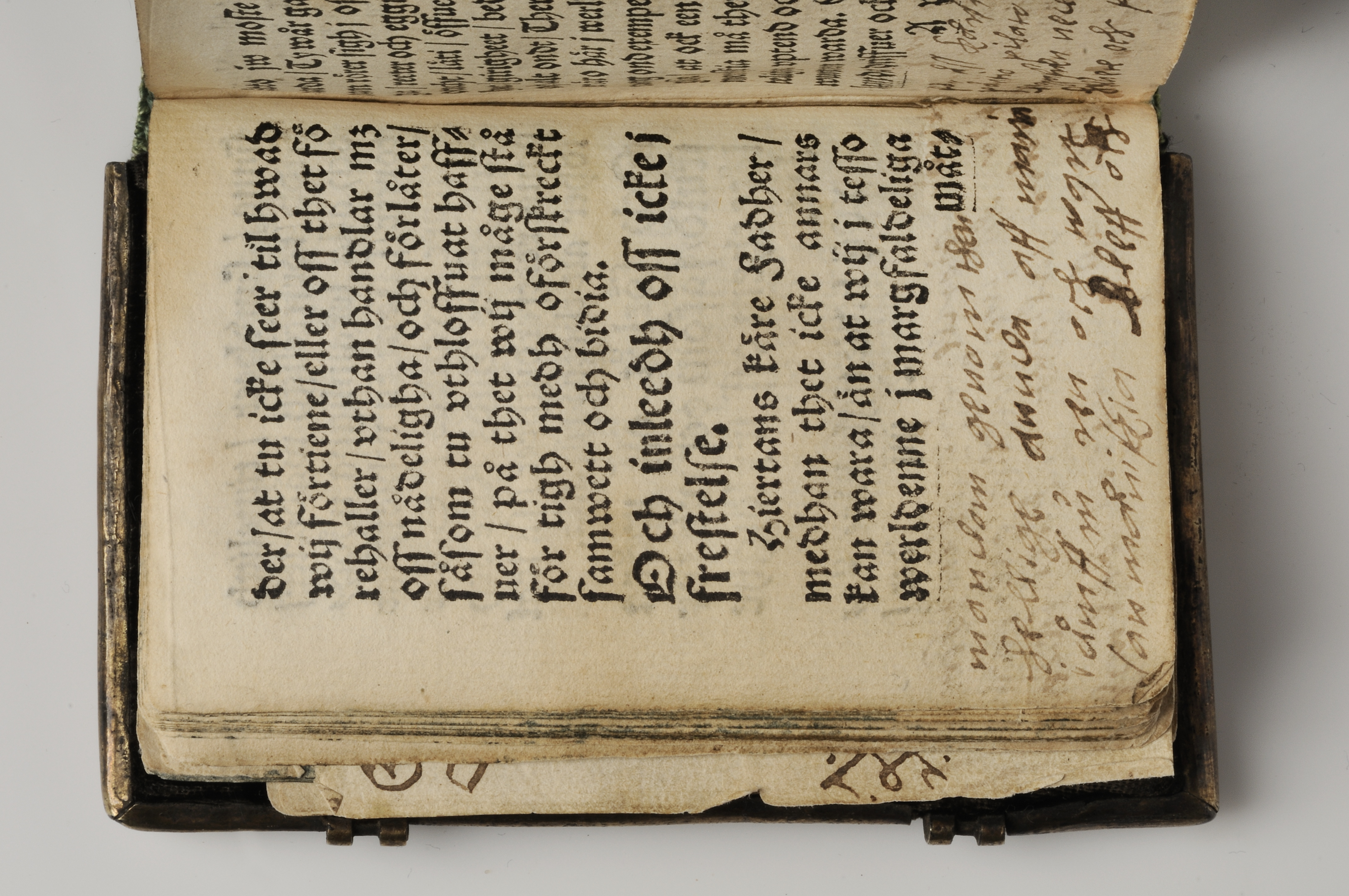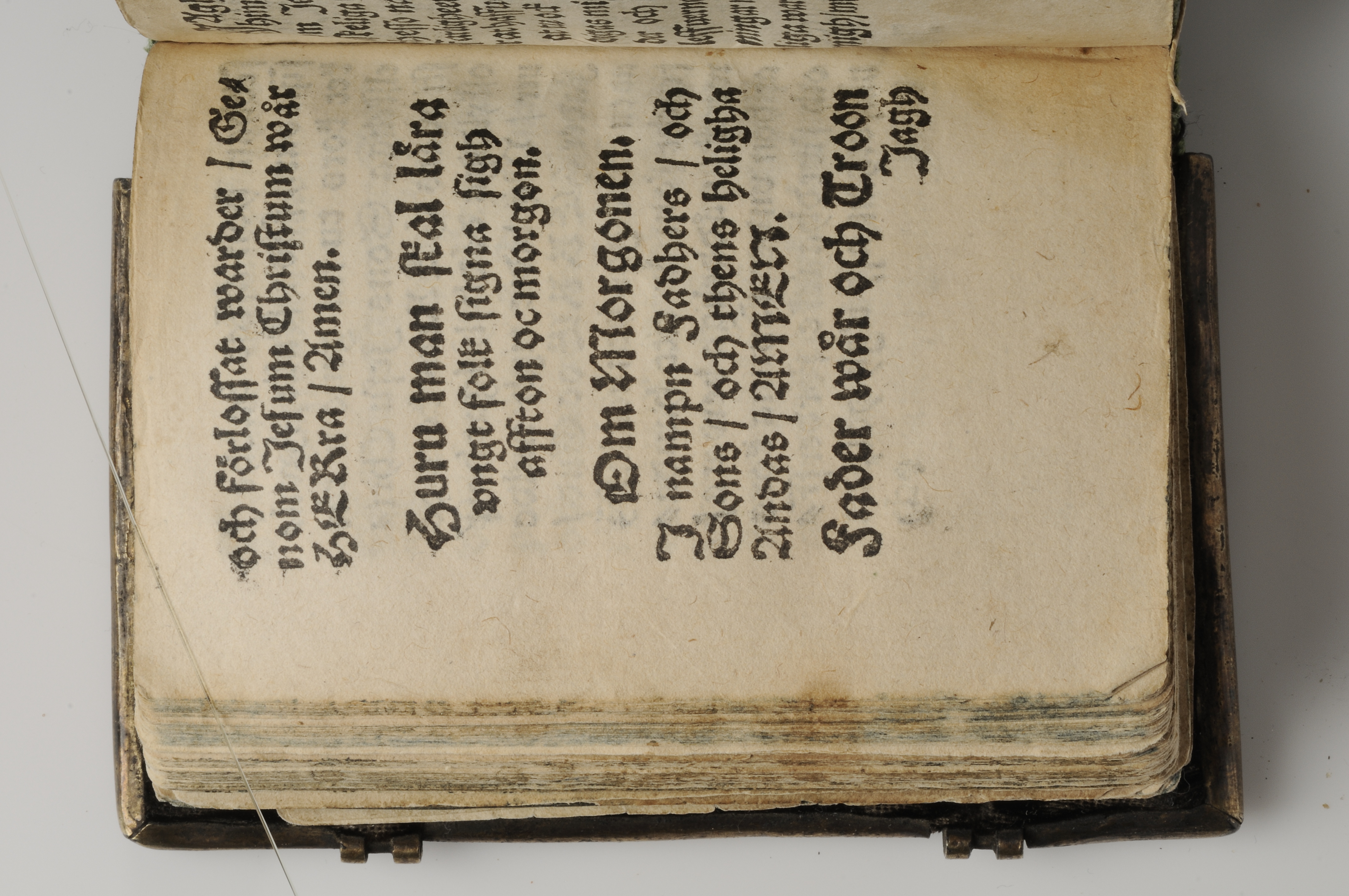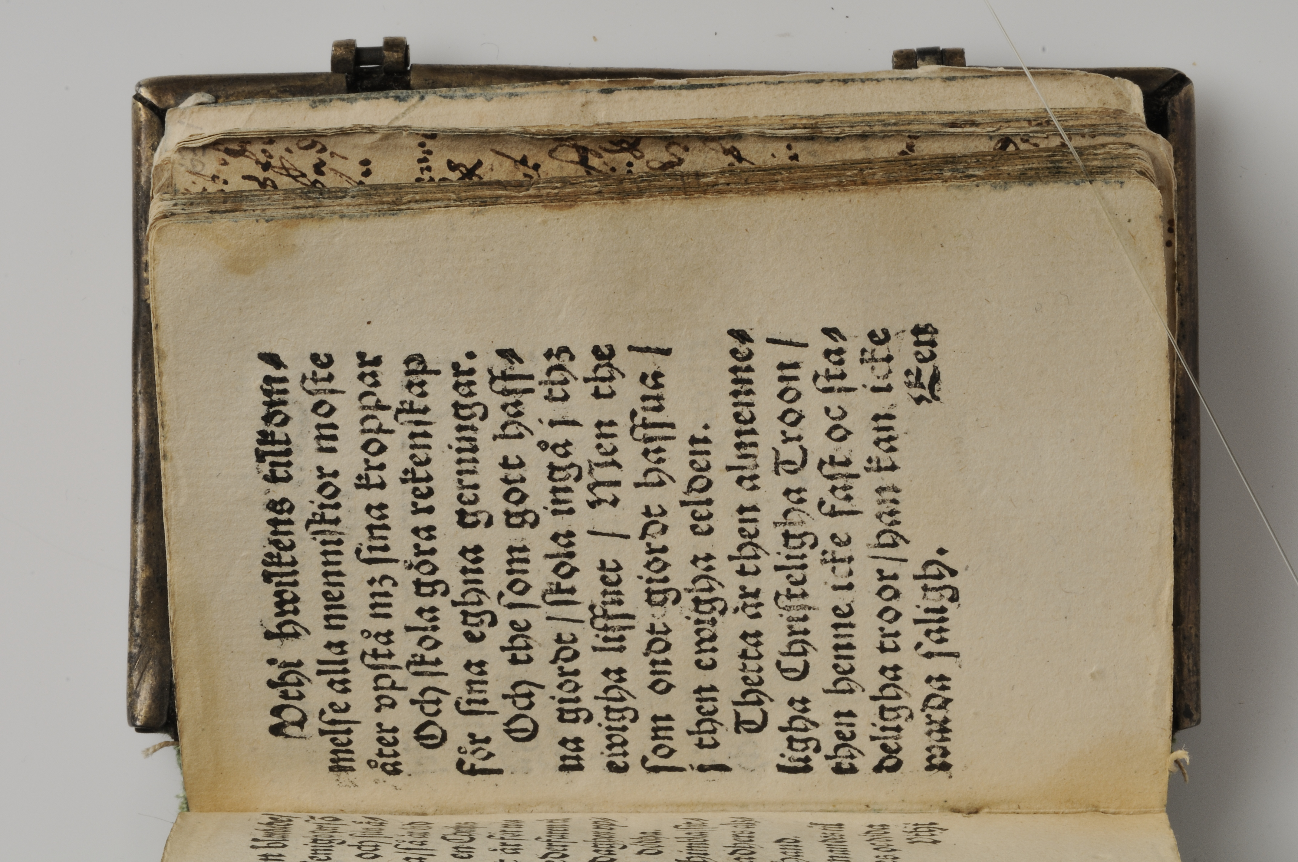 Bönbok som tillhört Malin Sture. Boken är tryckt i Stockholm av Amund Laurentzson 1559. Sigrid Leijonhufvud: Malin Stures bönbok, Fornvännen 1907.