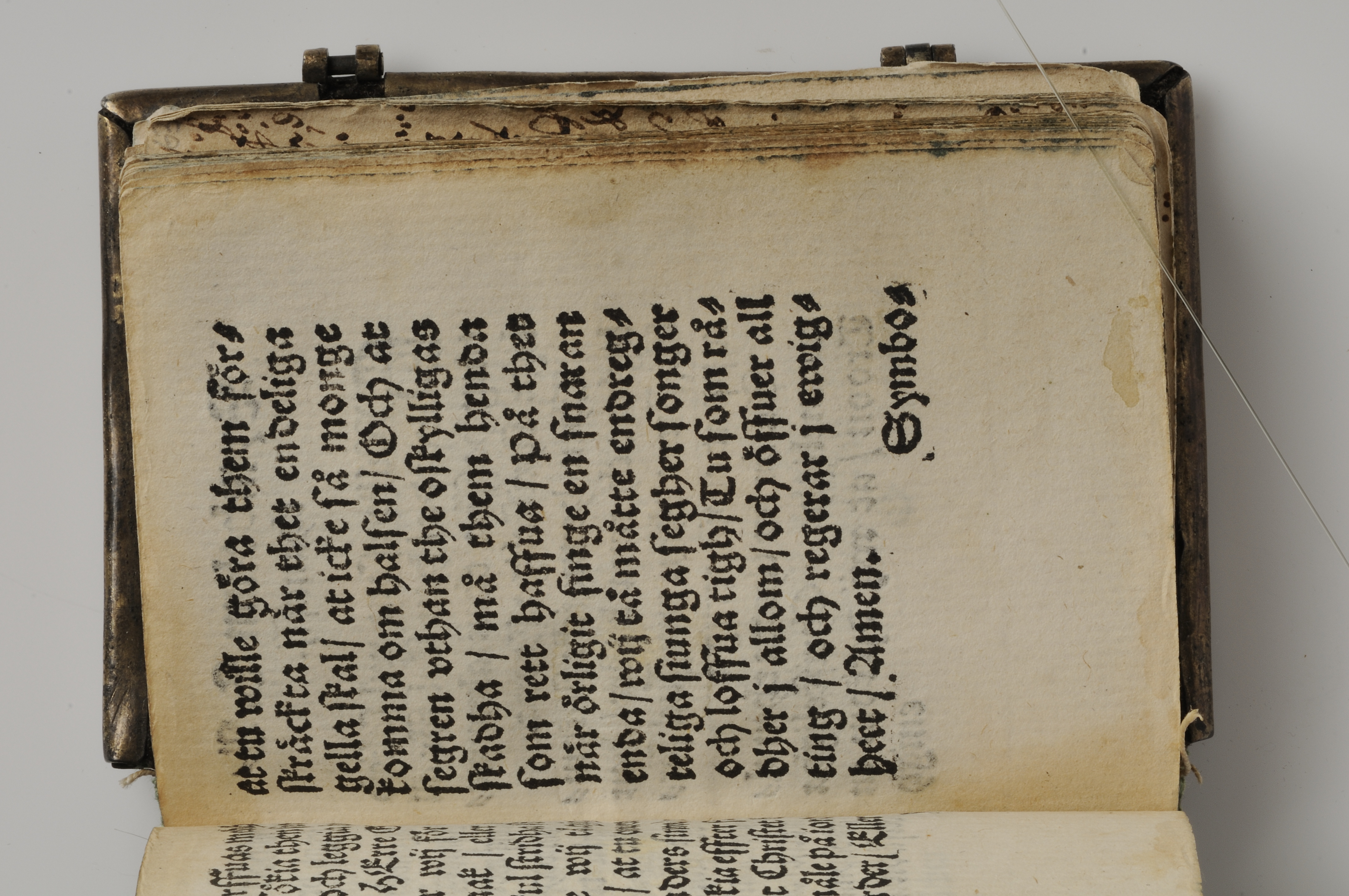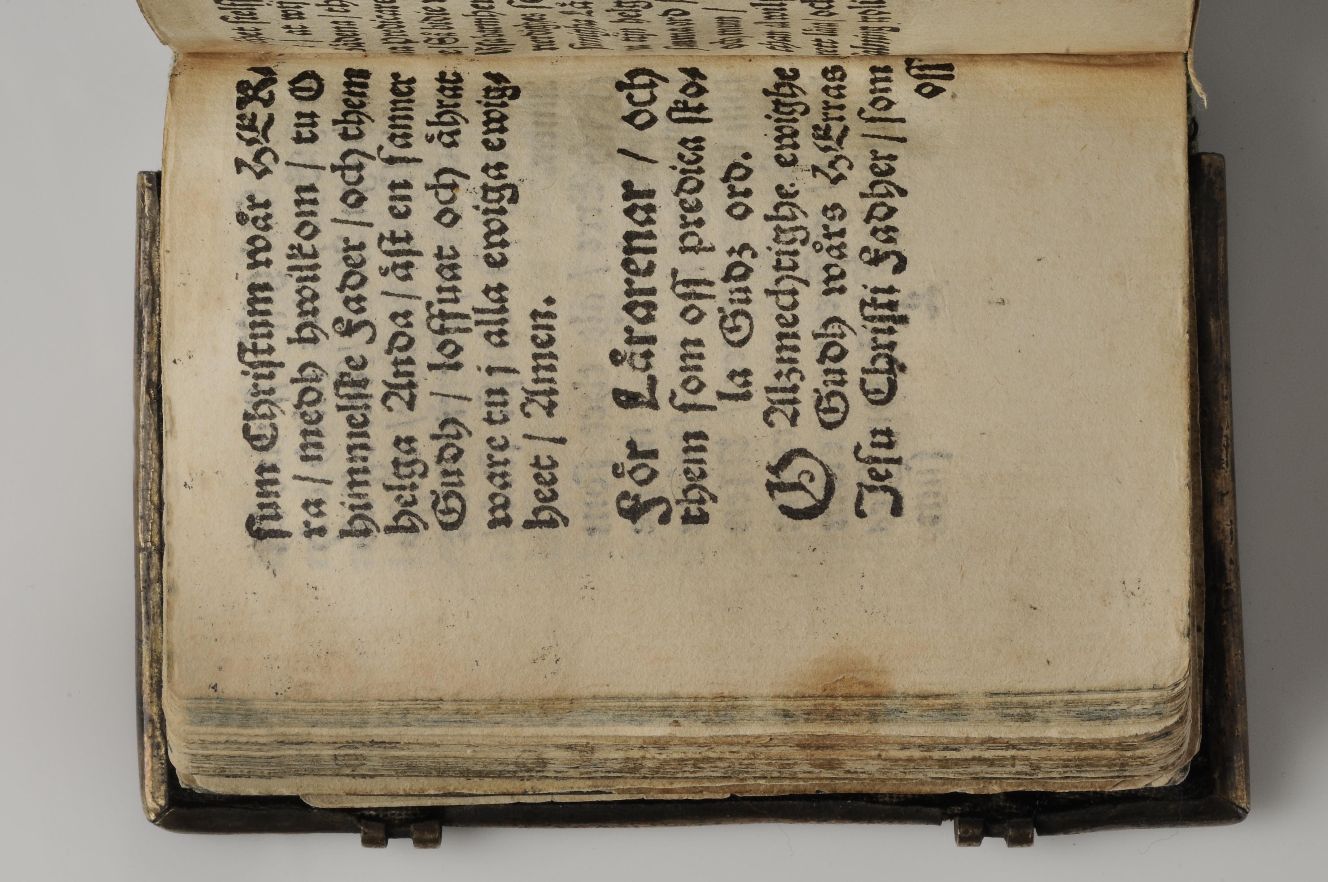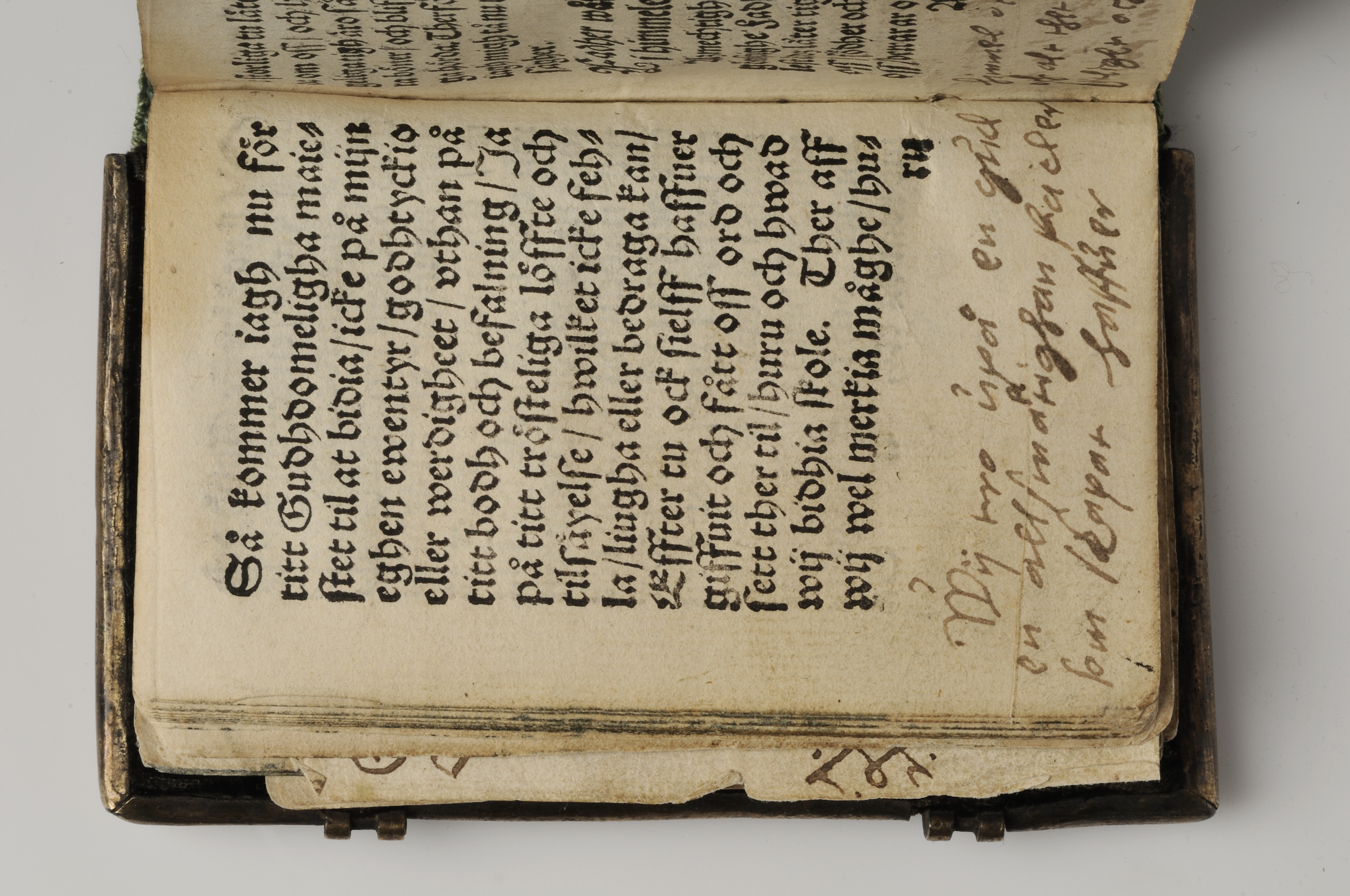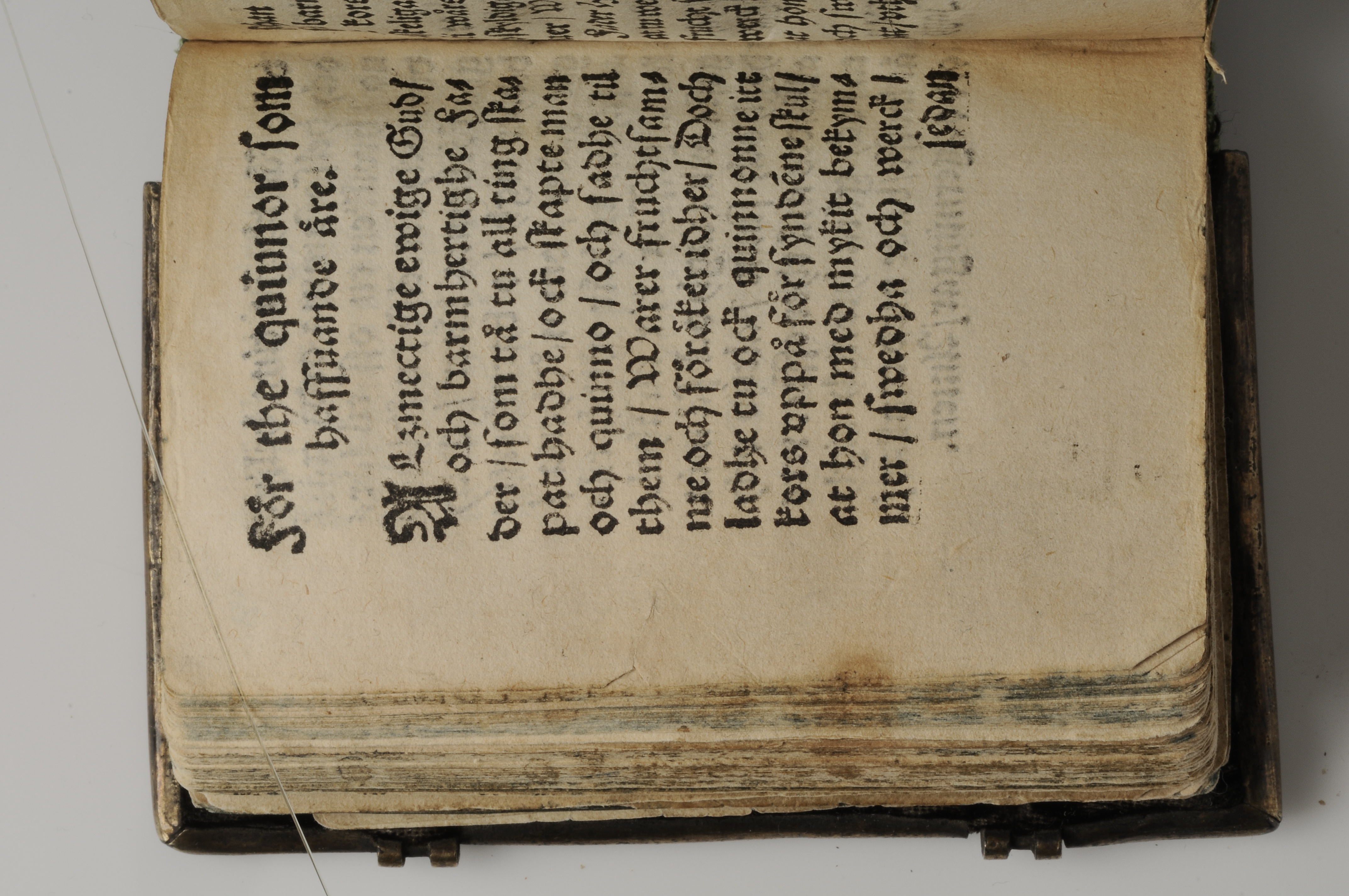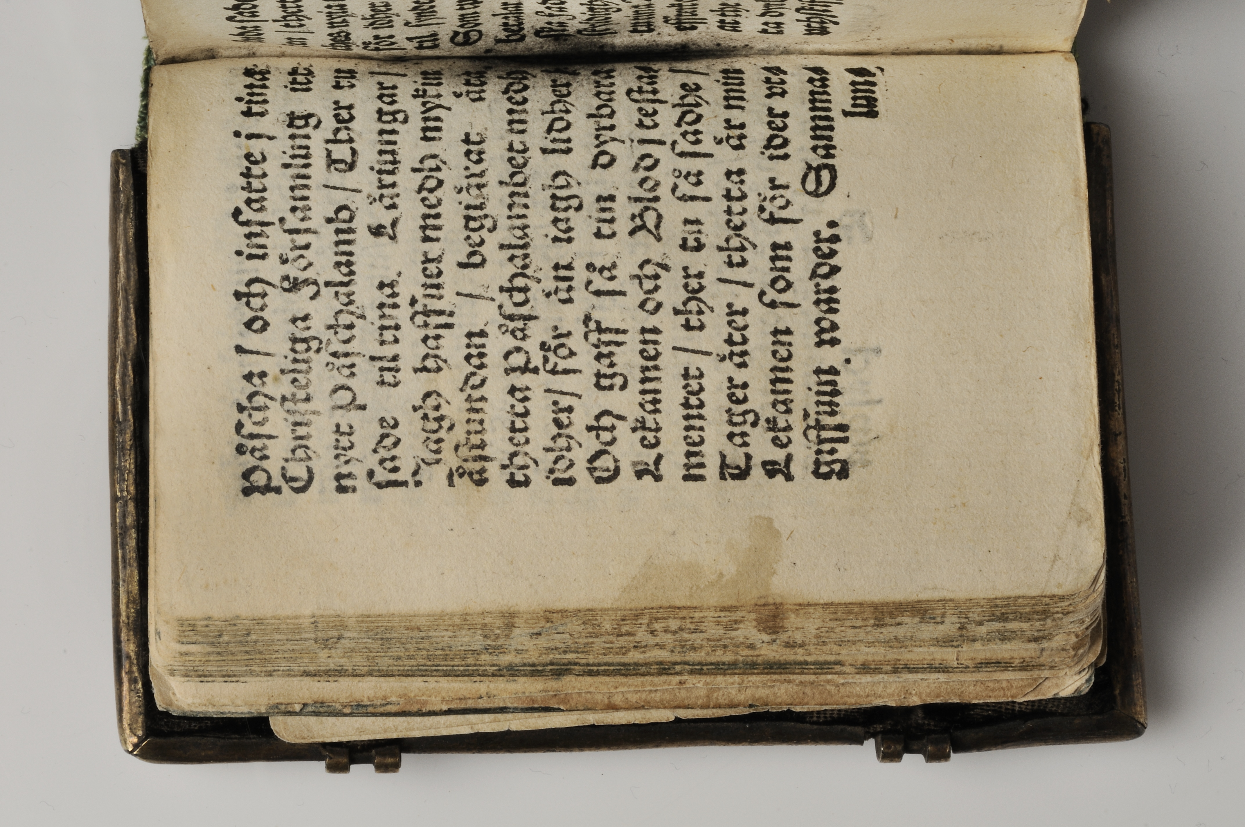 Bönbok som tillhört Malin Sture. Boken är tryckt i Stockholm av Amund Laurentzson 1559. Sigrid Leijonhufvud: Malin Stures bönbok, Fornvännen 1907.