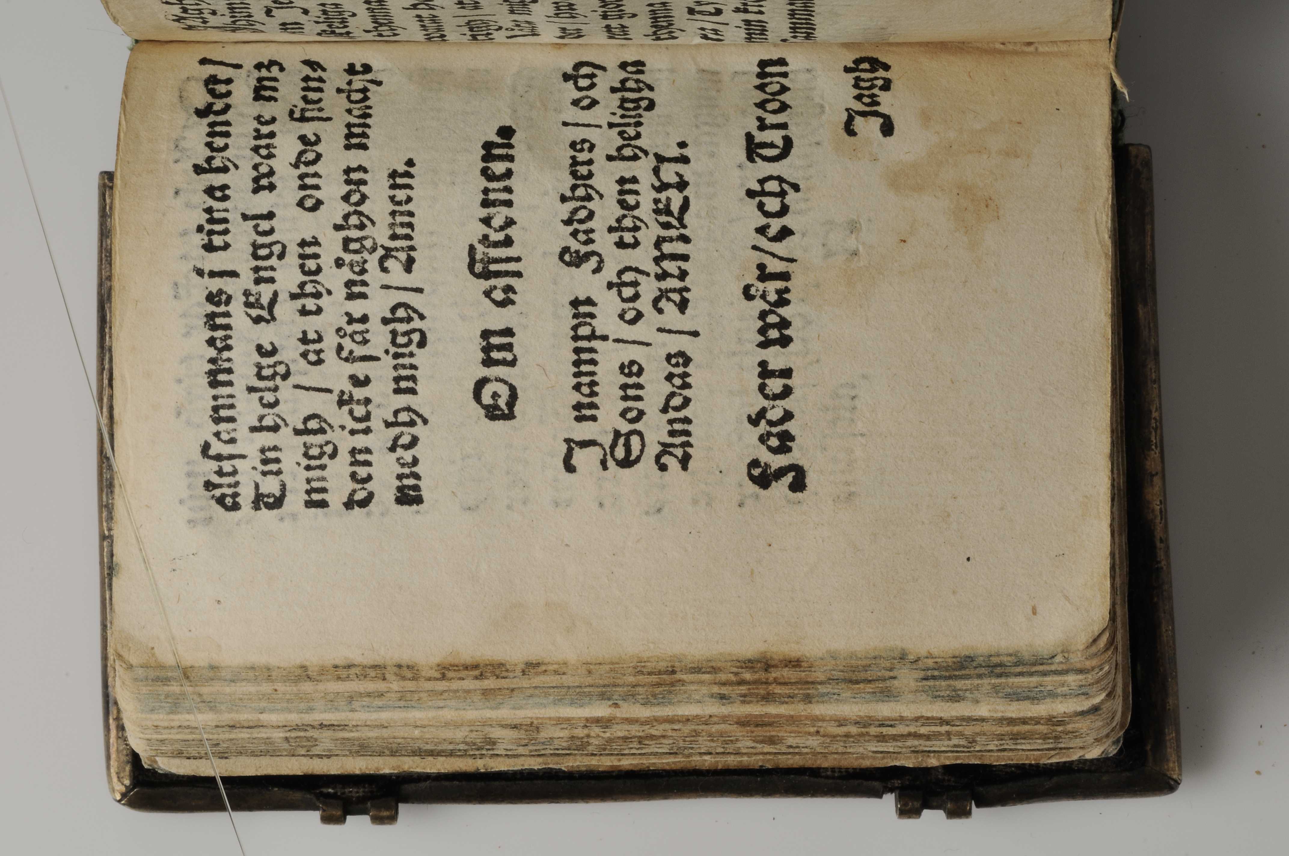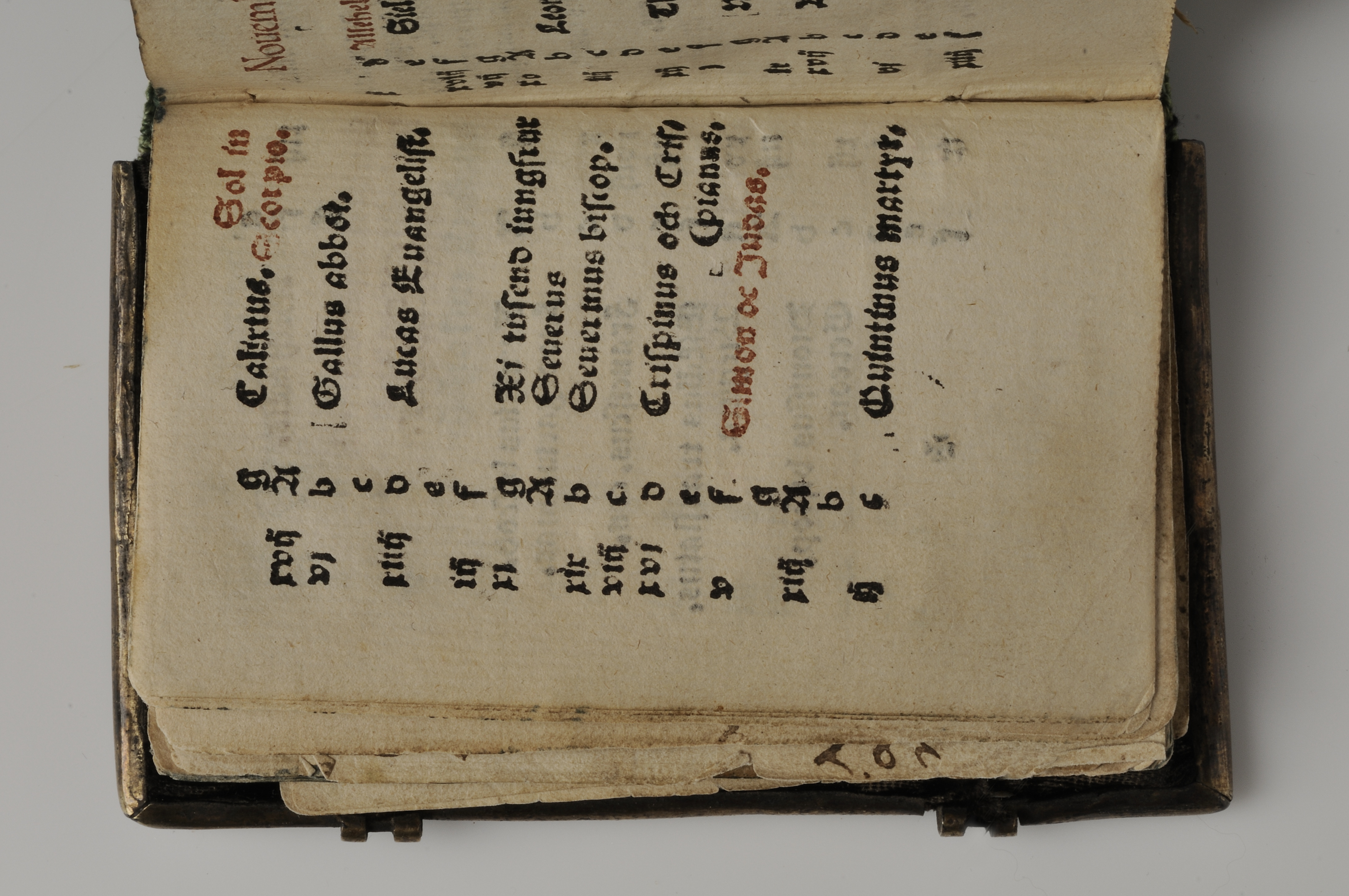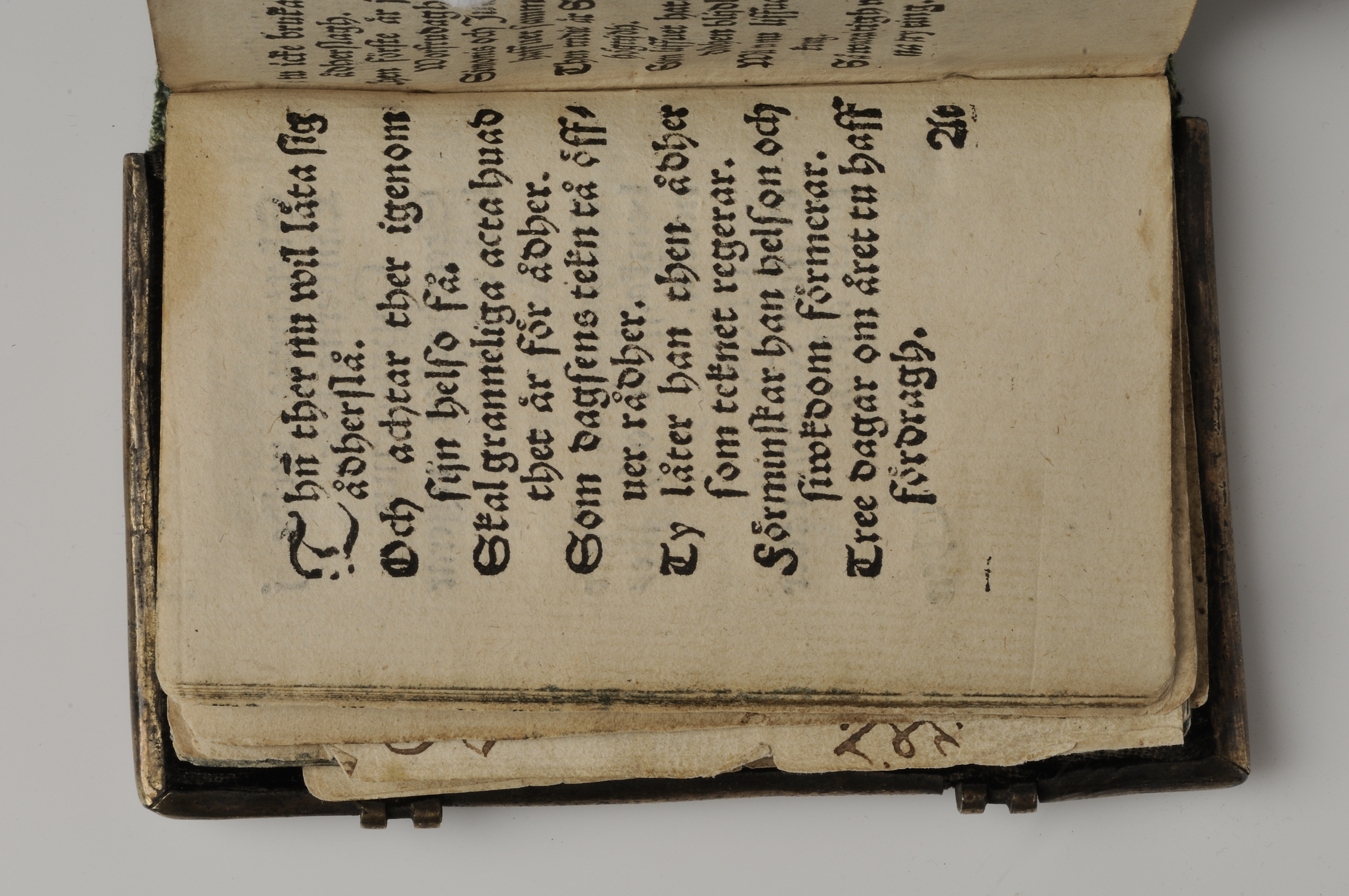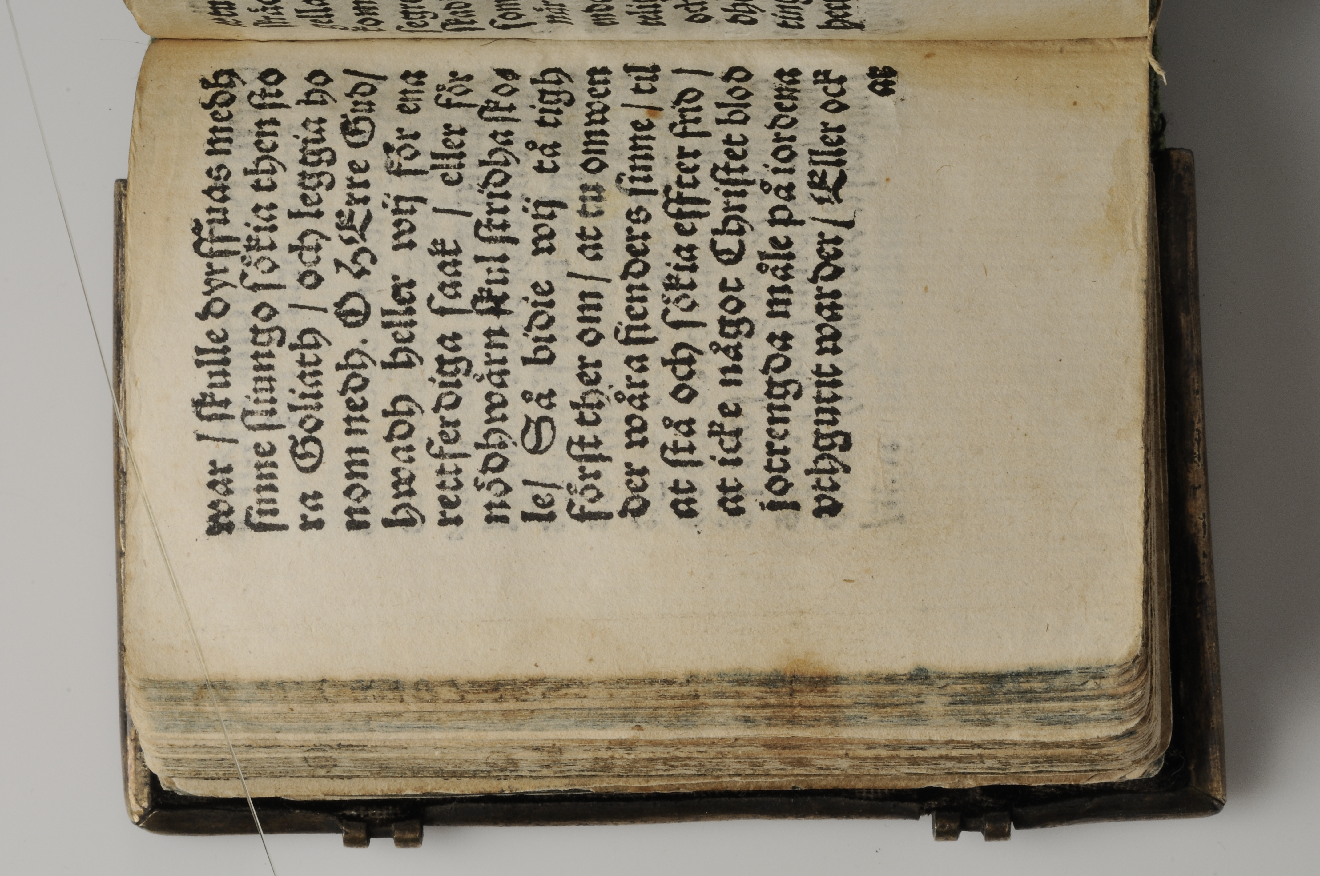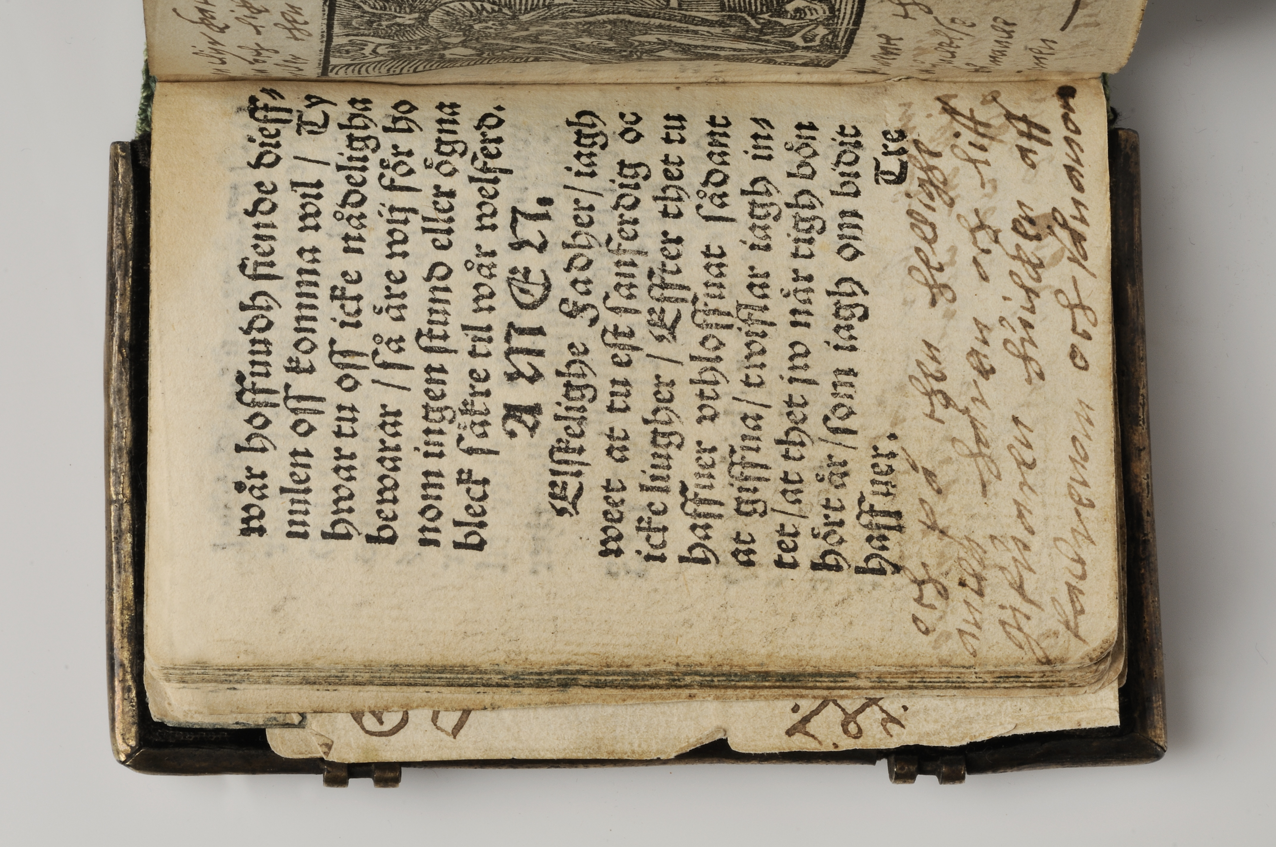 Bönbok som tillhört Malin Sture. Boken är tryckt i Stockholm av Amund Laurentzson 1559. Sigrid Leijonhufvud: Malin Stures bönbok, Fornvännen 1907.