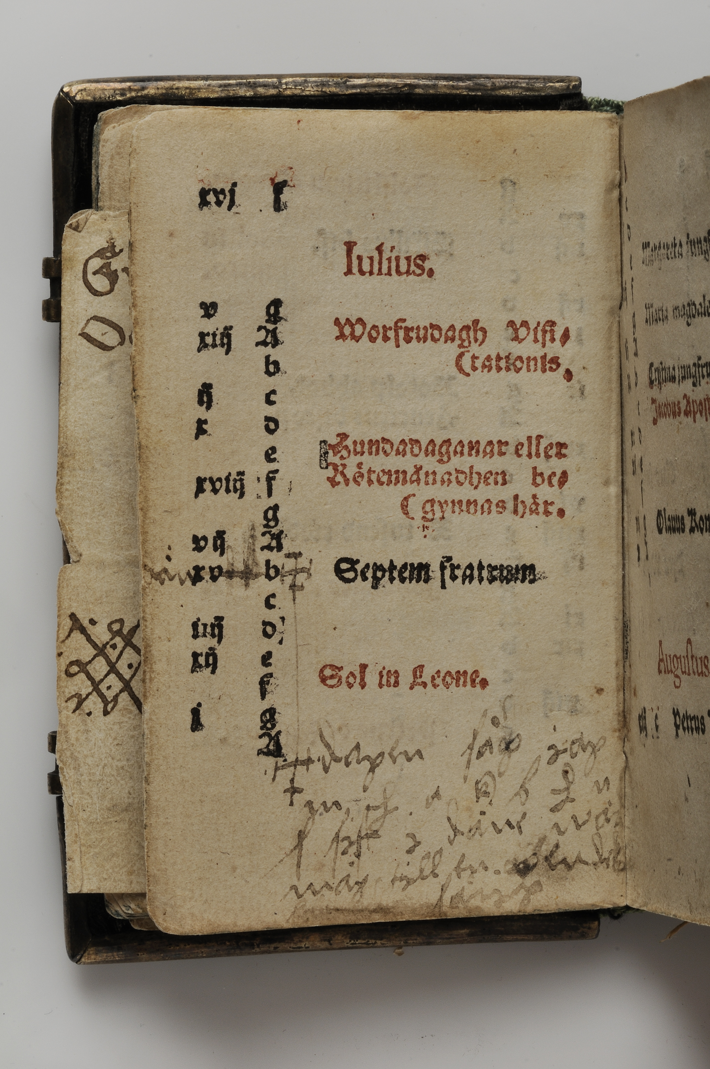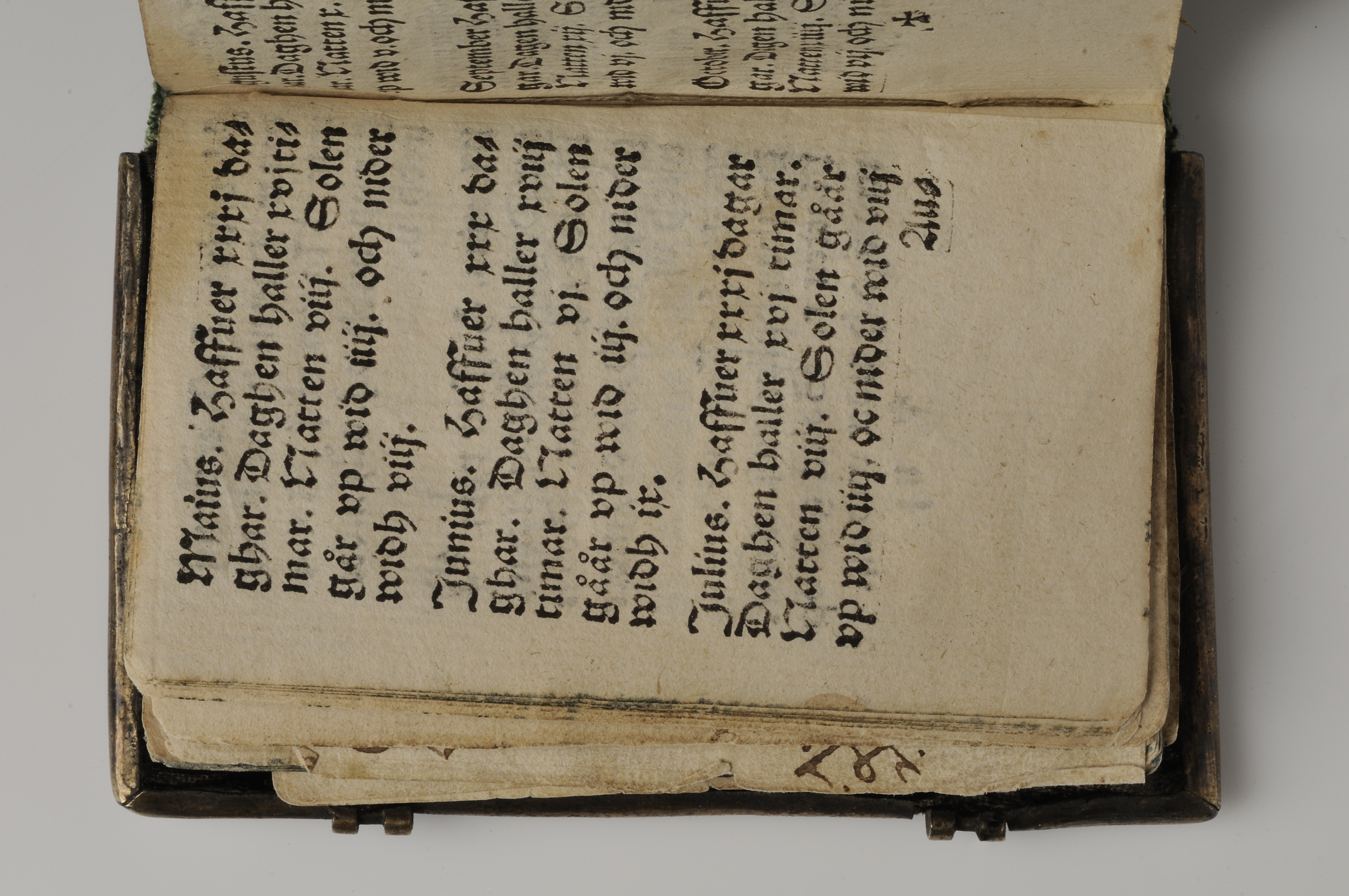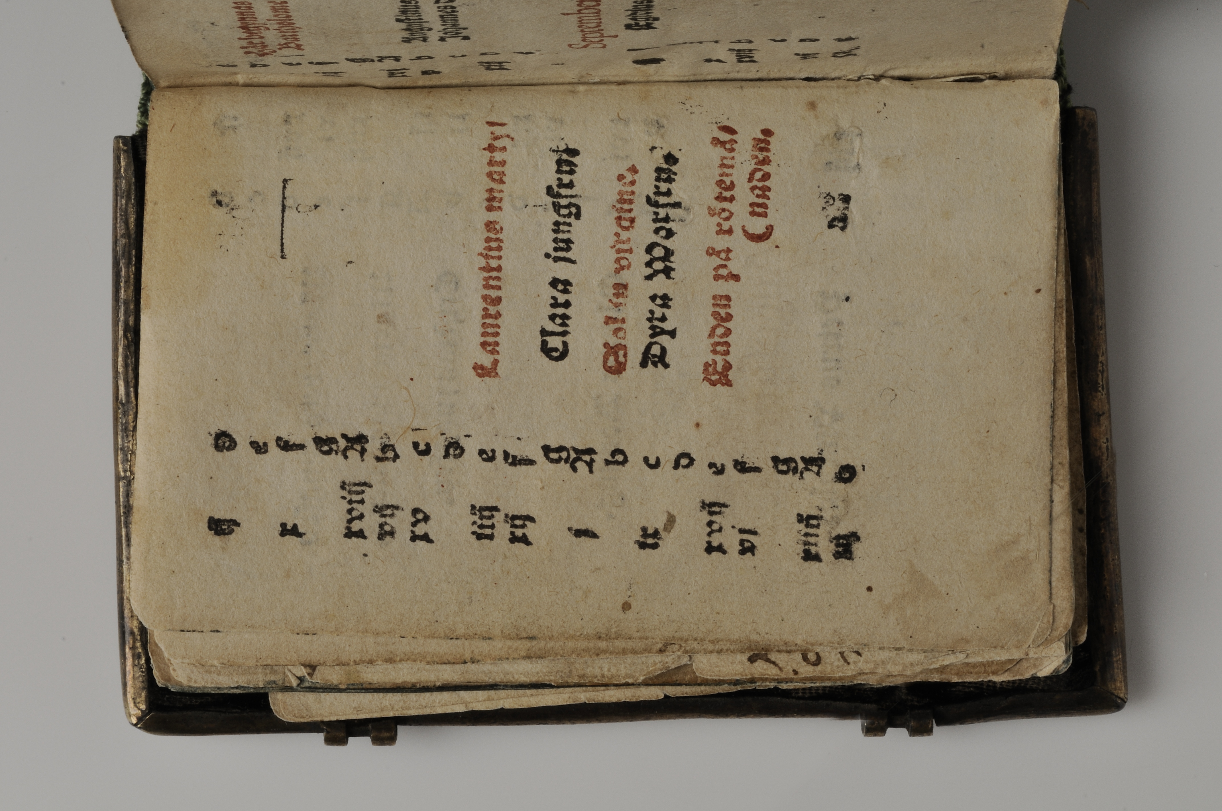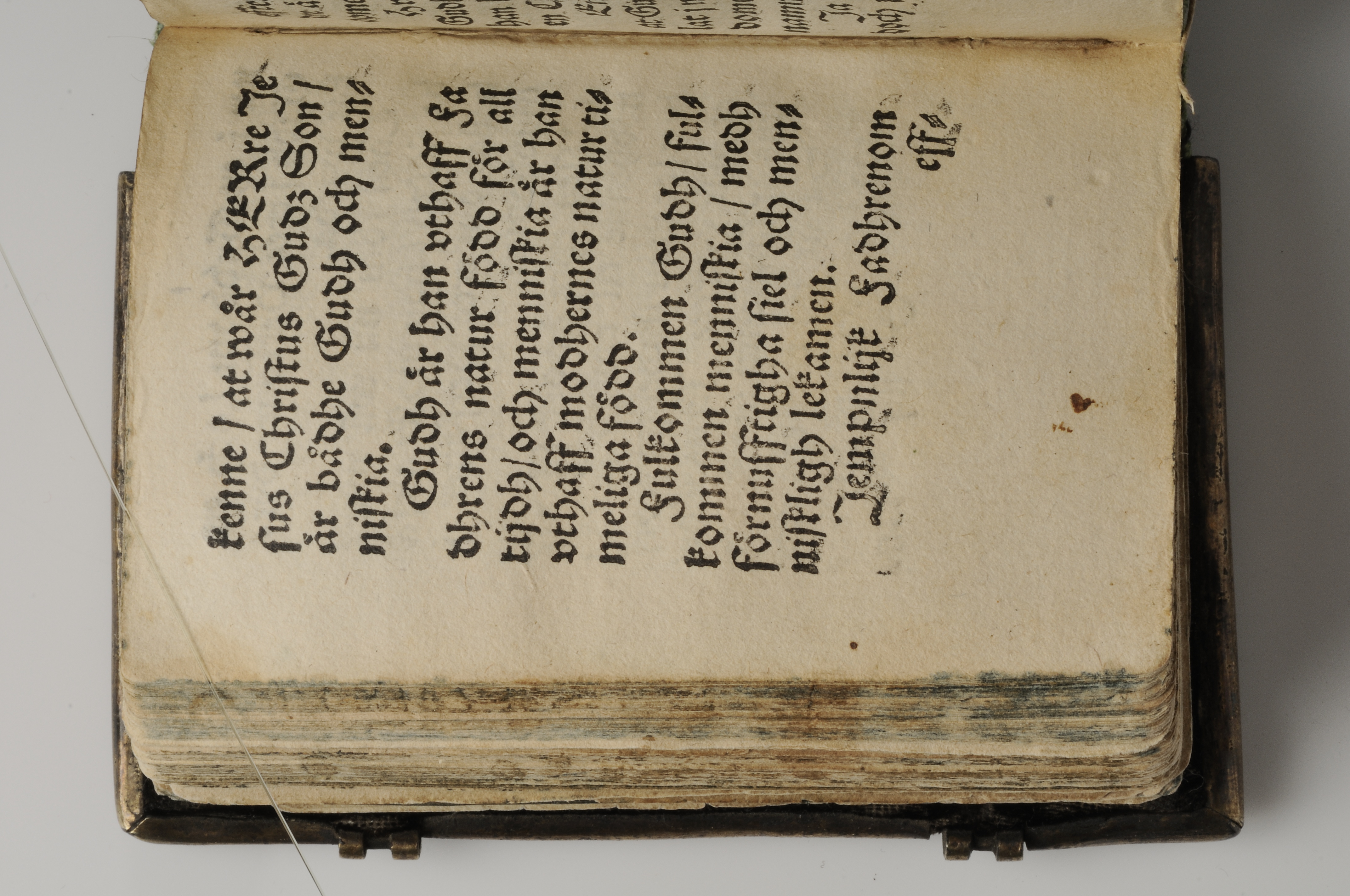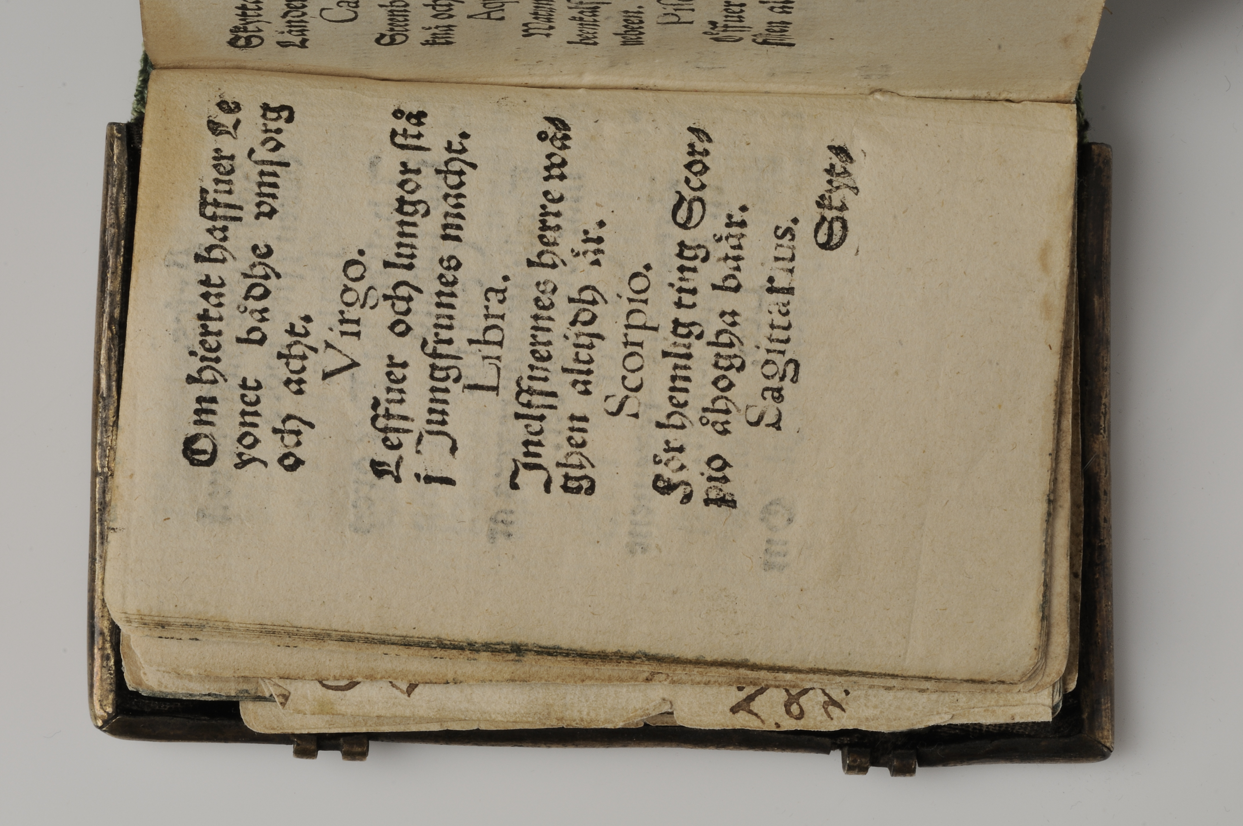 Bönbok som tillhört Malin Sture. Boken är tryckt i Stockholm av Amund Laurentzson 1559. Sigrid Leijonhufvud: Malin Stures bönbok, Fornvännen 1907.