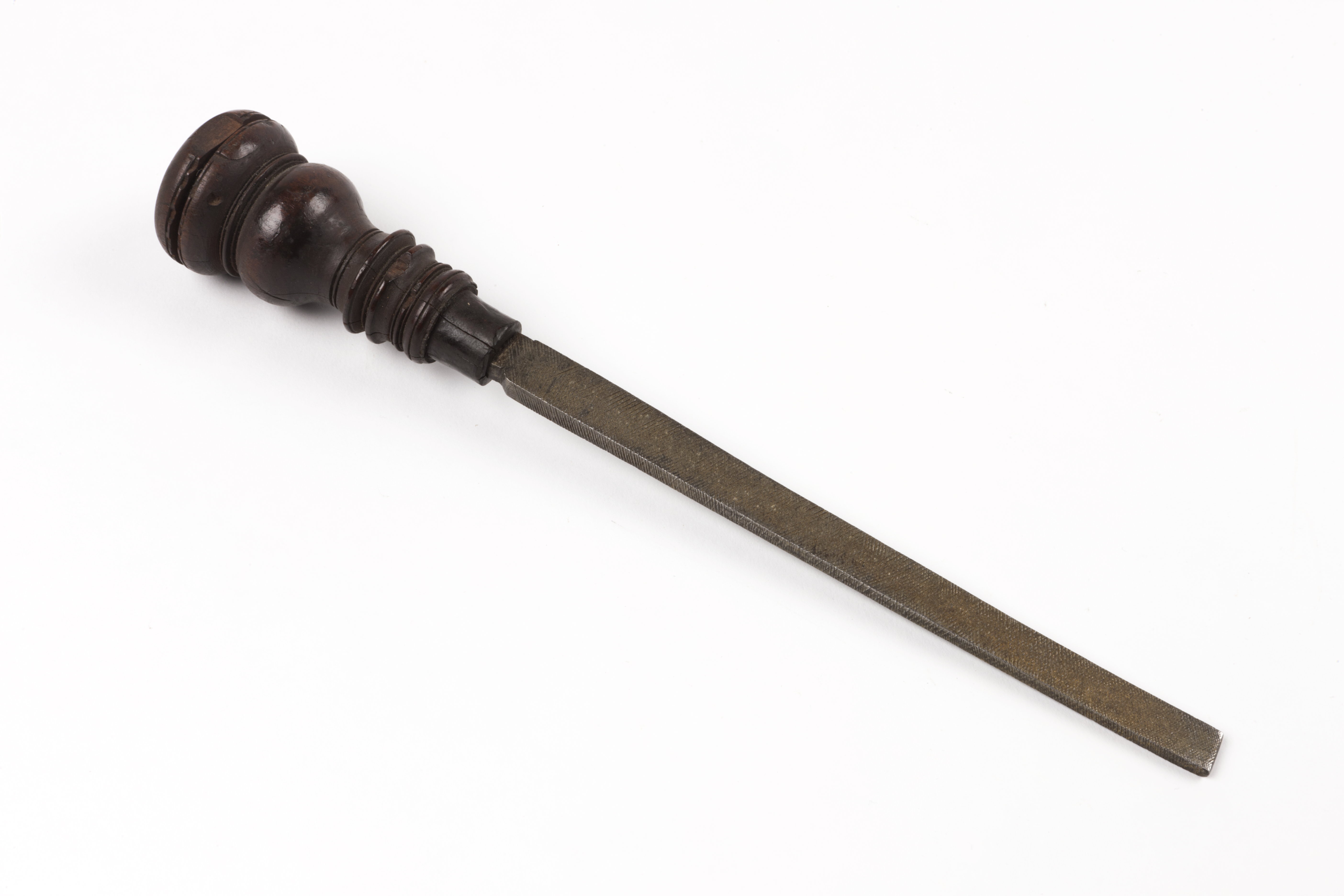 Svarvat skaft av lövträ.