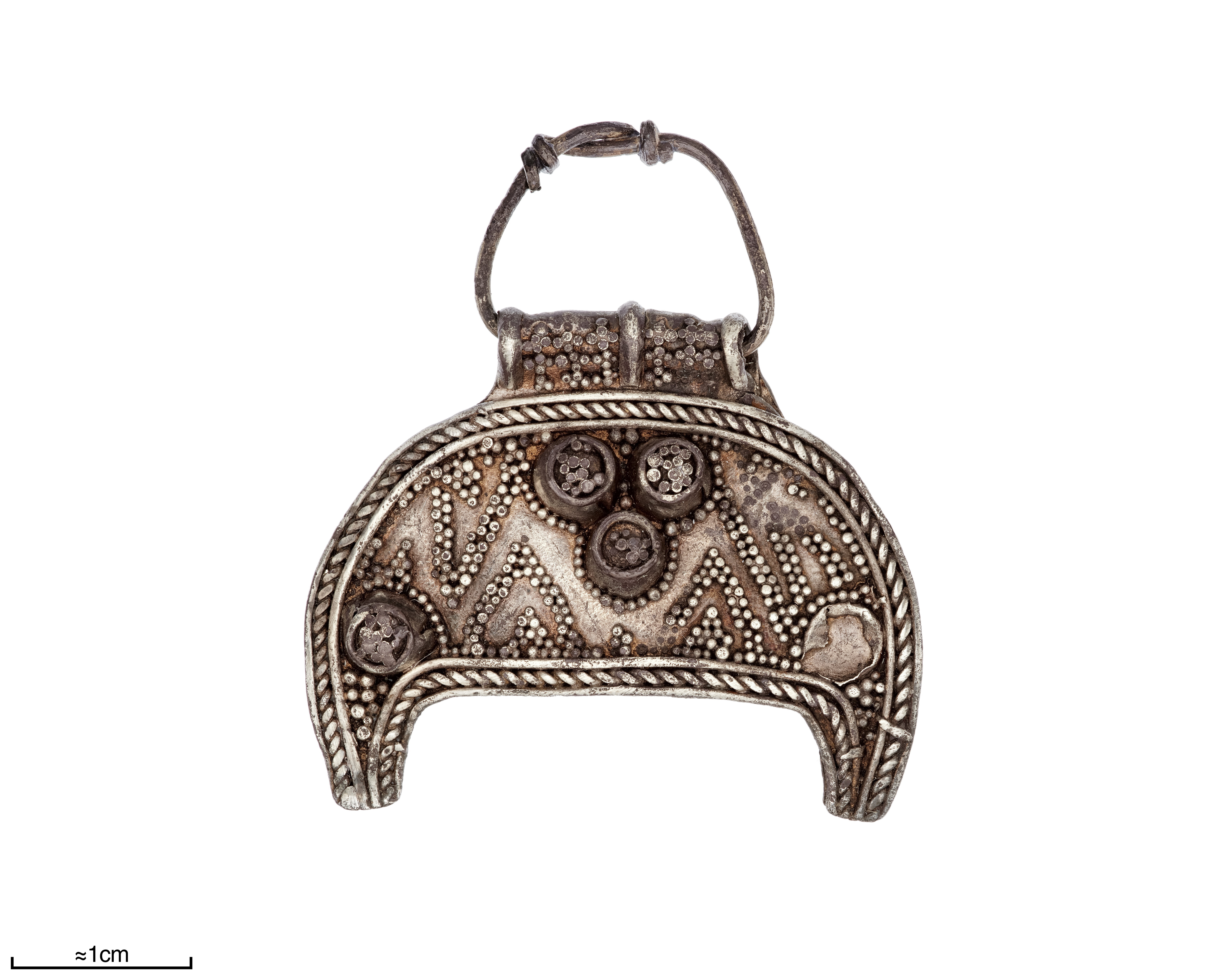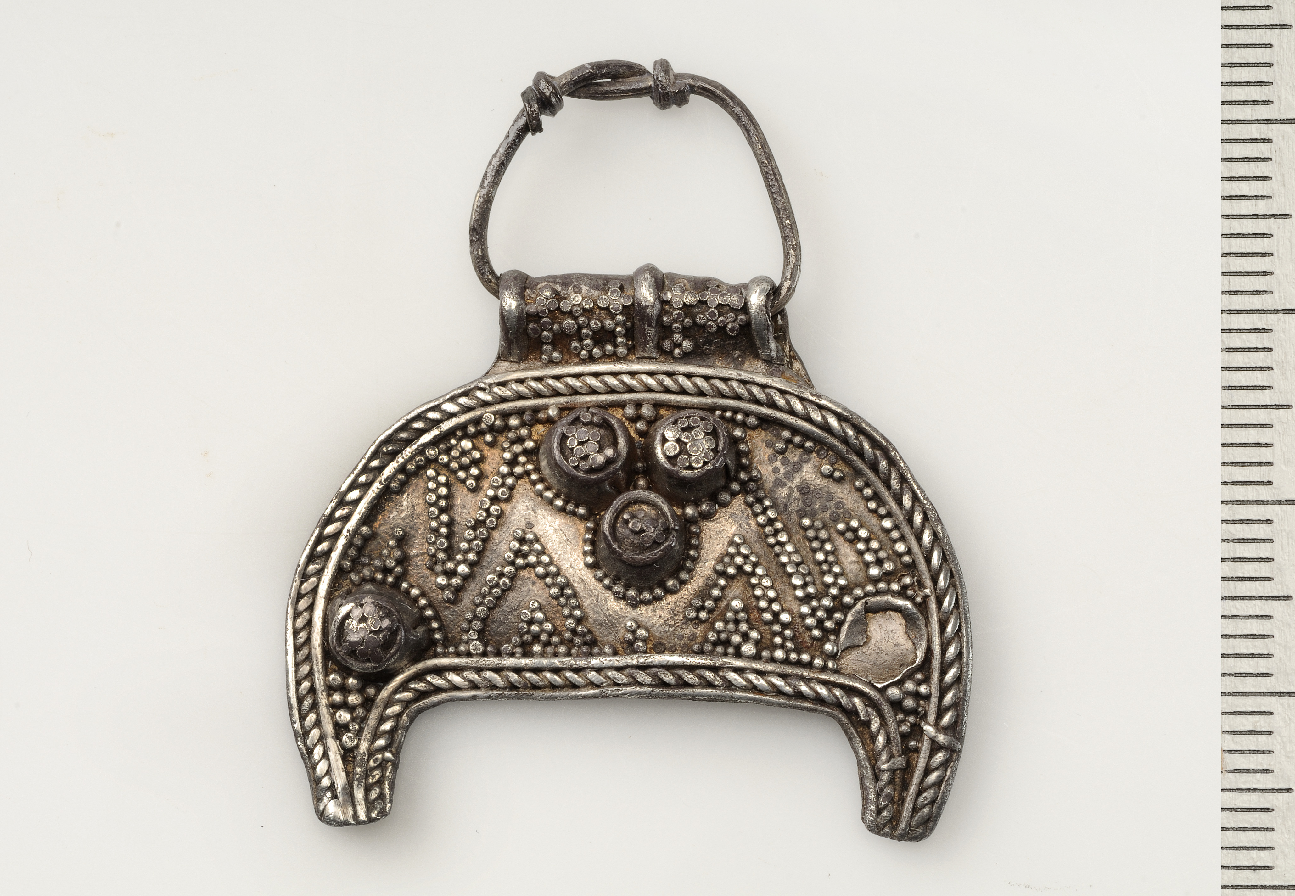 Lunulahänge av silver med filigran.