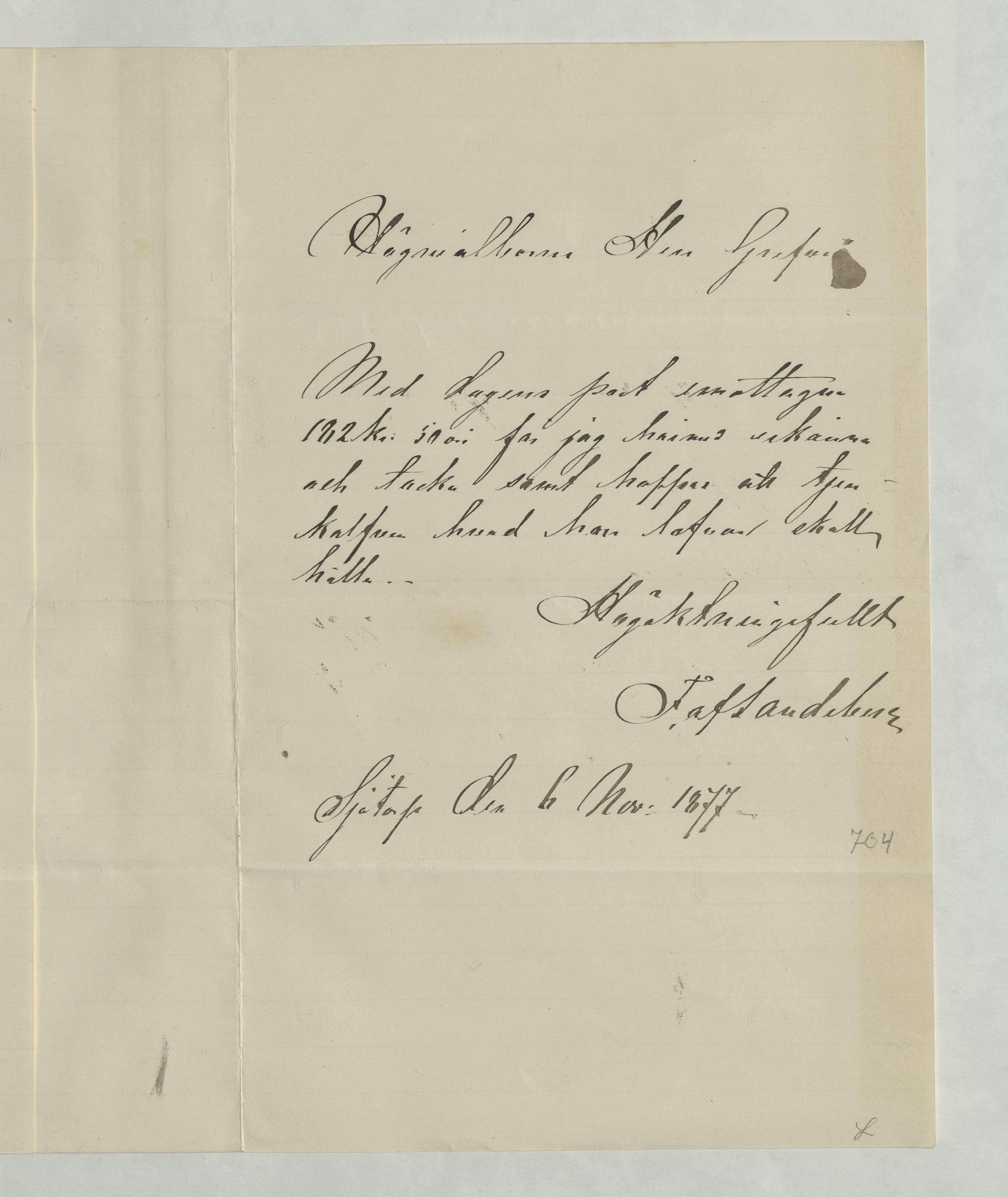 Kvitto från F. af Sandeberg, Sjötorp för "tjurkalf". Sjötorp november 1877.
