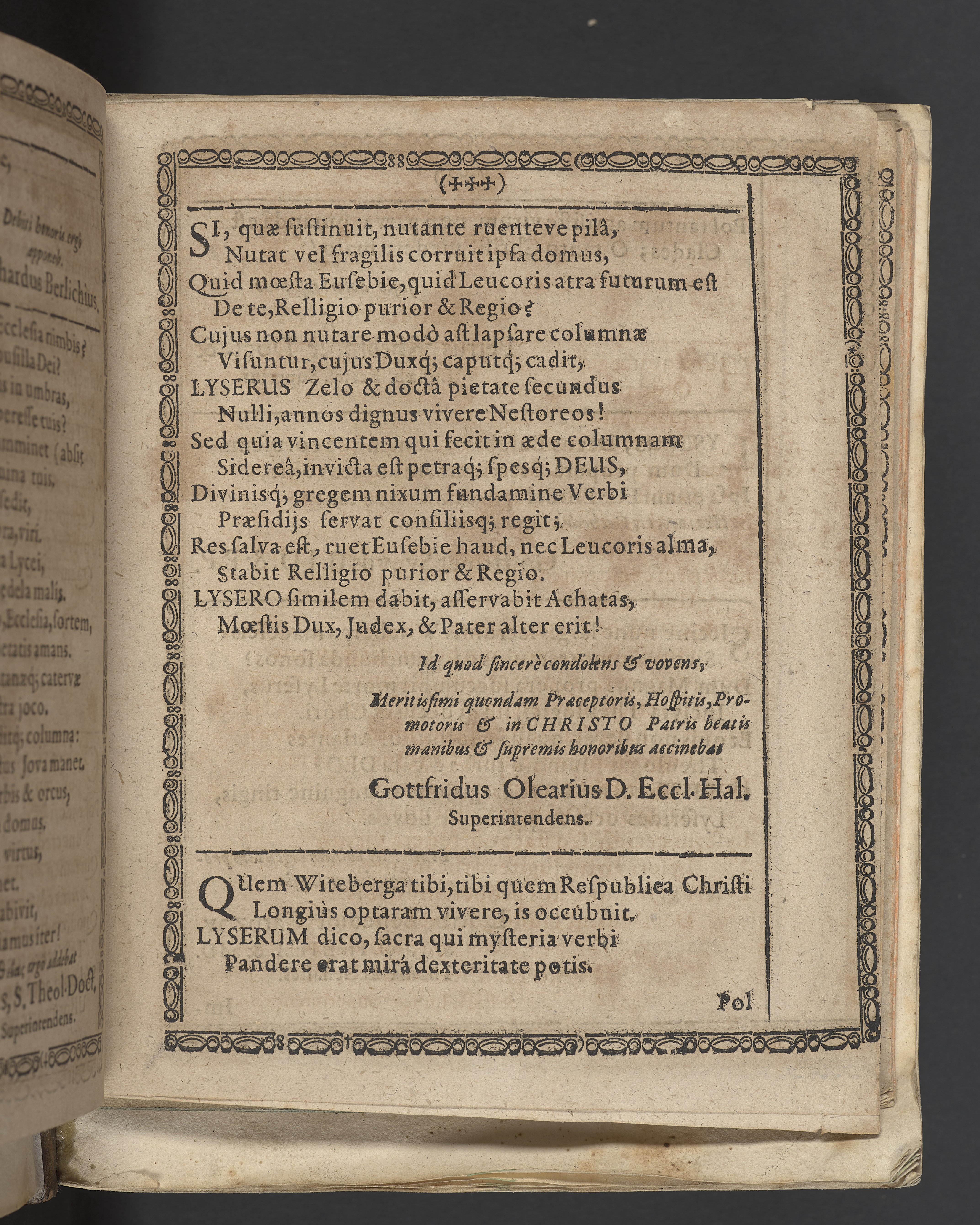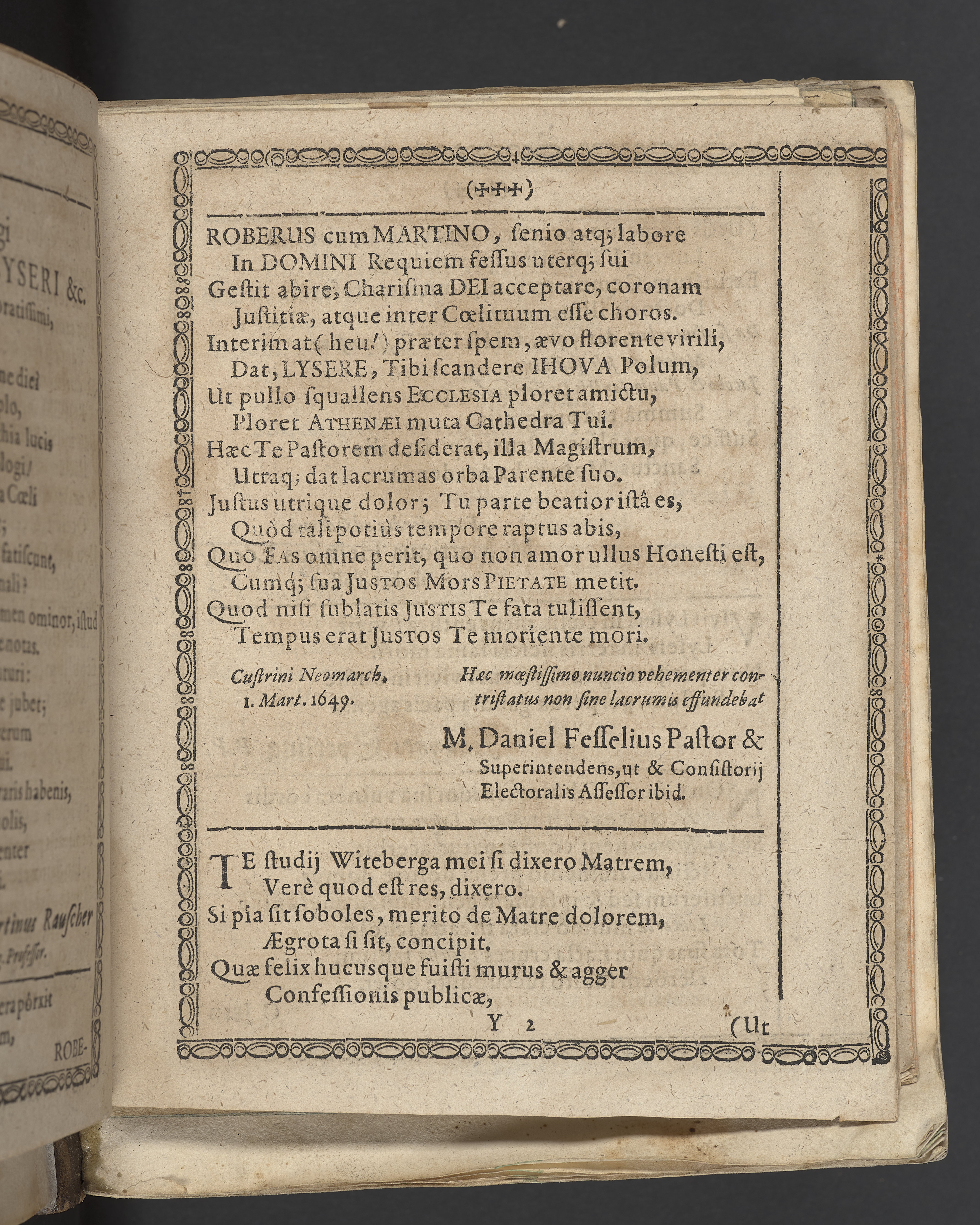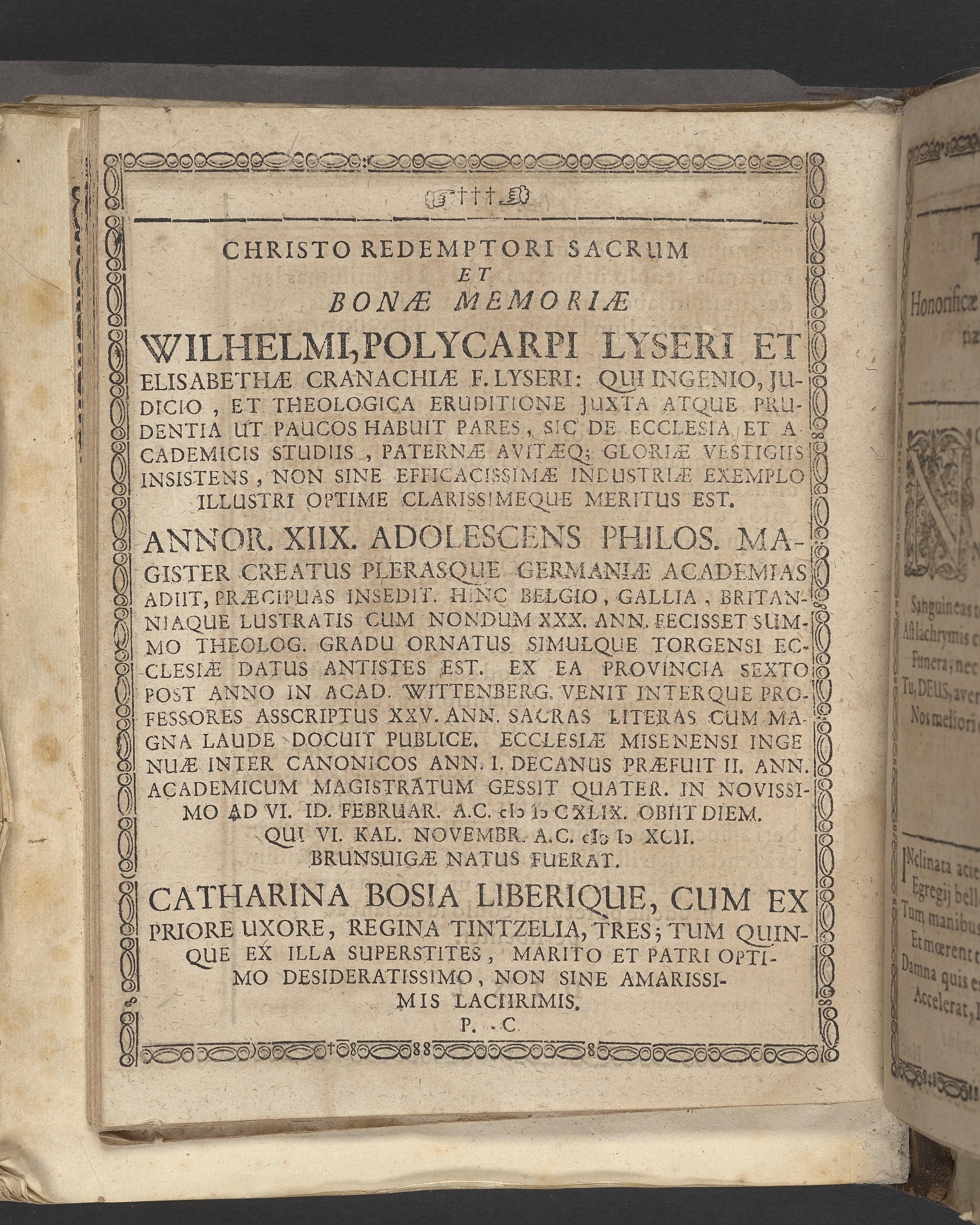 Christus nostrum fac totum, Christus vnser Leben ... in einem Leich-Sermon zur Zeit ehrlicher Leichbestattung und Beysetzung des ... Herren VVilhelmi Lyseri ... der Universität Wittenberg rectoris magnifici ... In Wittenberg, den 15. Februarij dieses 1649. Jahres angestellet ... ausgeführet von M. Conrado Barthels ... vnd auff Anhalten in Druck verfertiget.