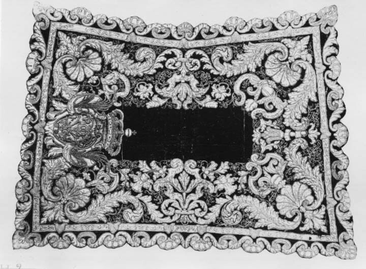 Ett av sex schabrak med drottning Ulrika Eleonoras namnchiffer, ur hennes hemgift.