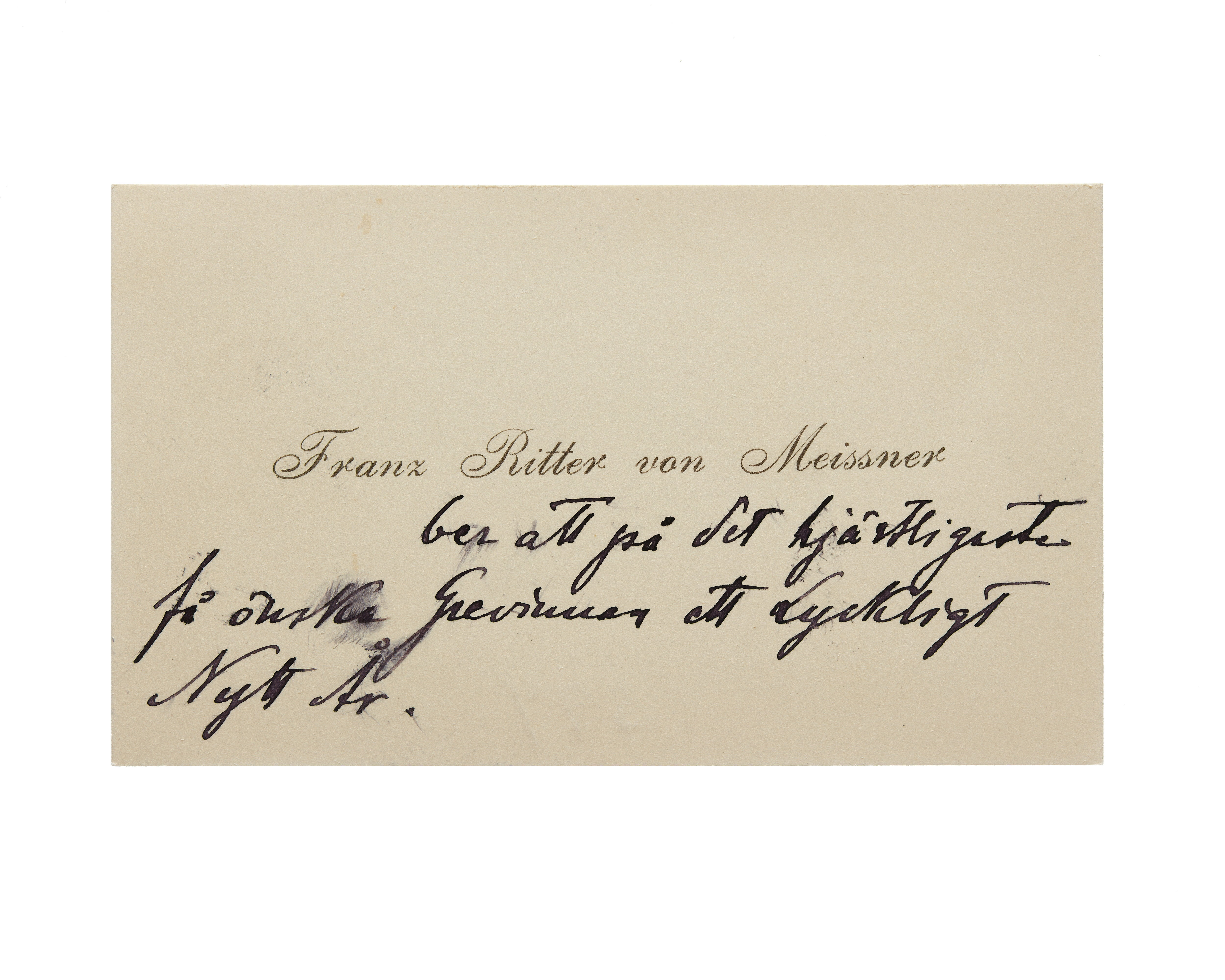 Ett visitkort från Franz Ritter von Meissner, daterat 1927. Handskrift "...".