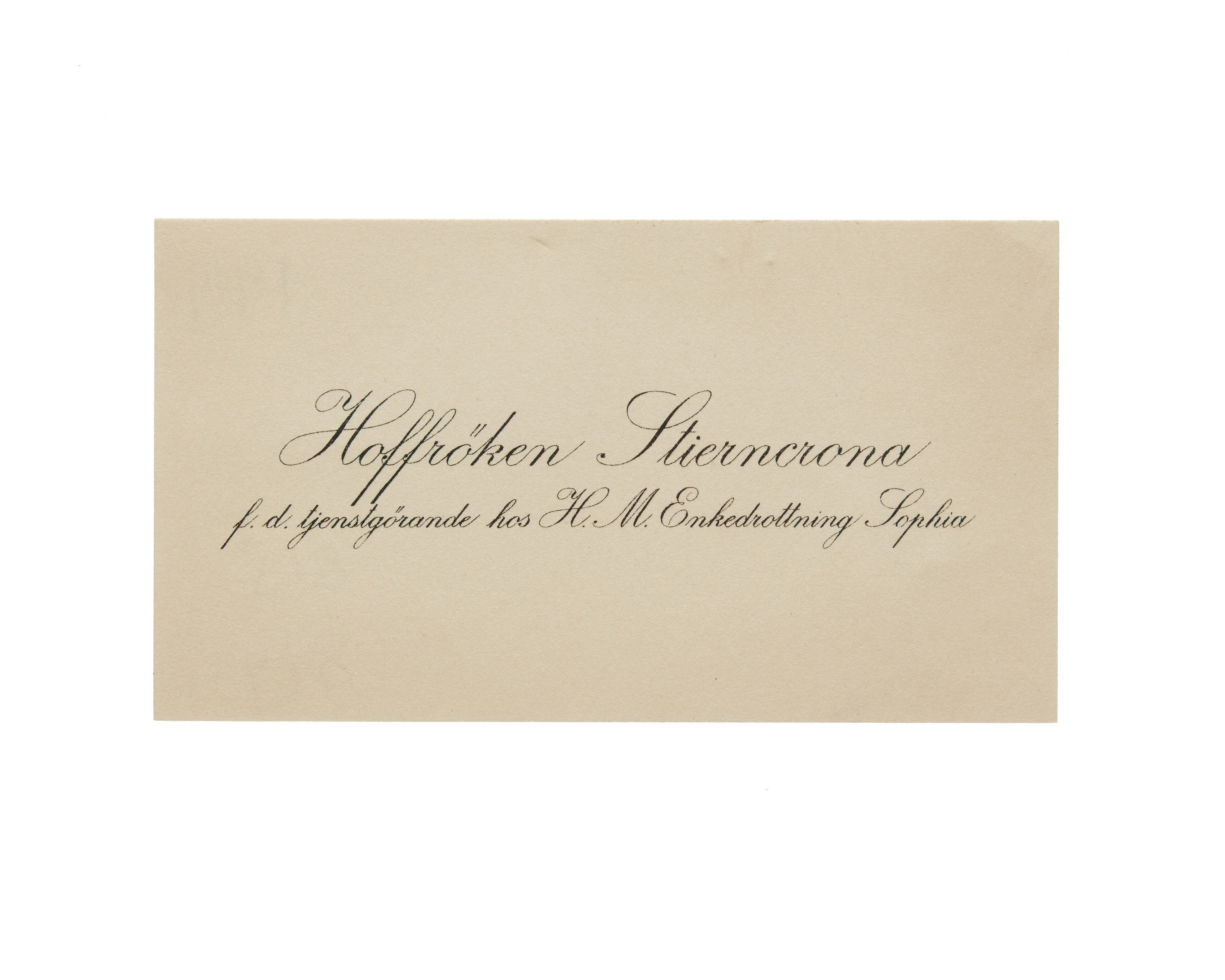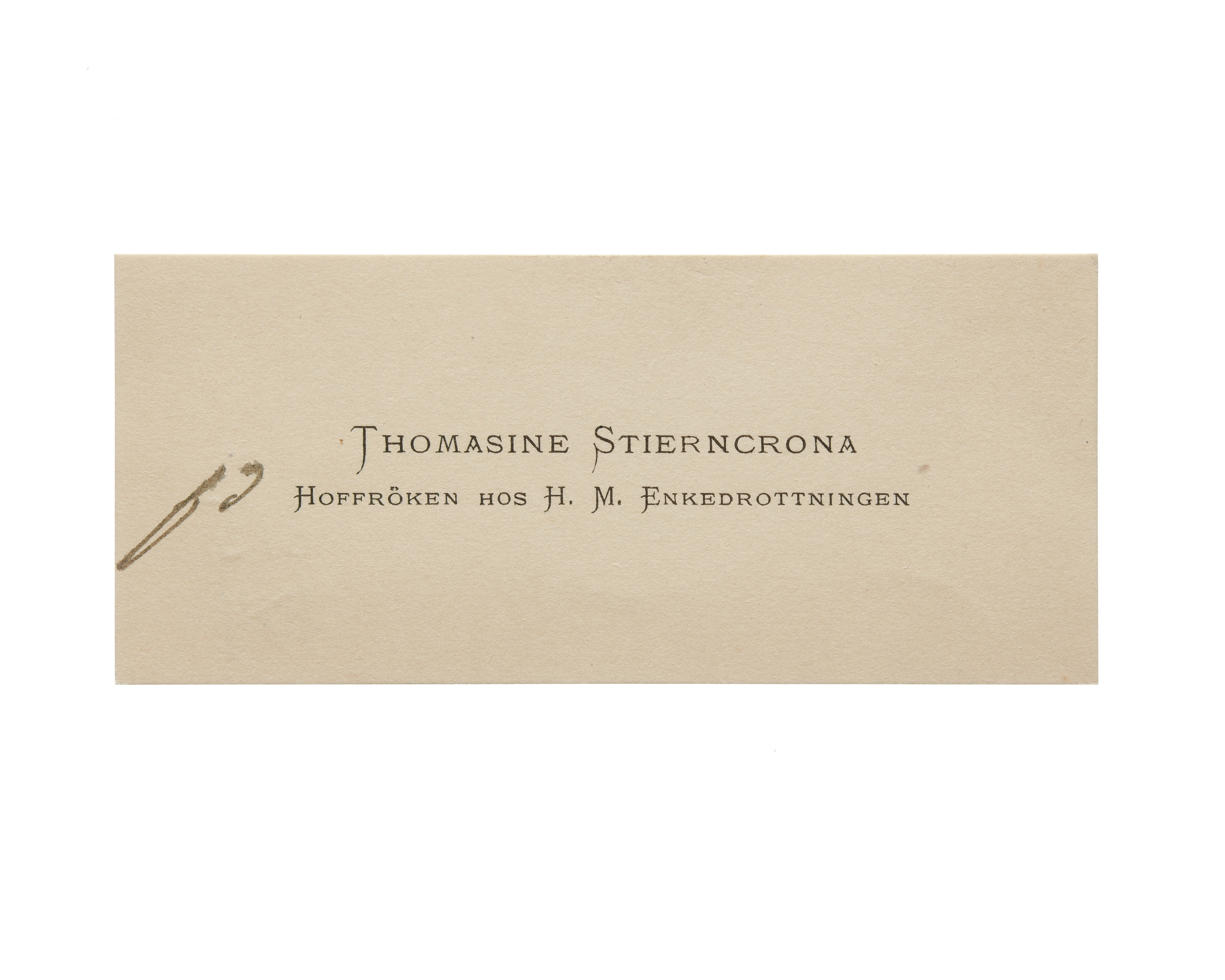 Visitkort från Thomasine Stierncrona, Hovfröken hos H. M. Enkedrottningen