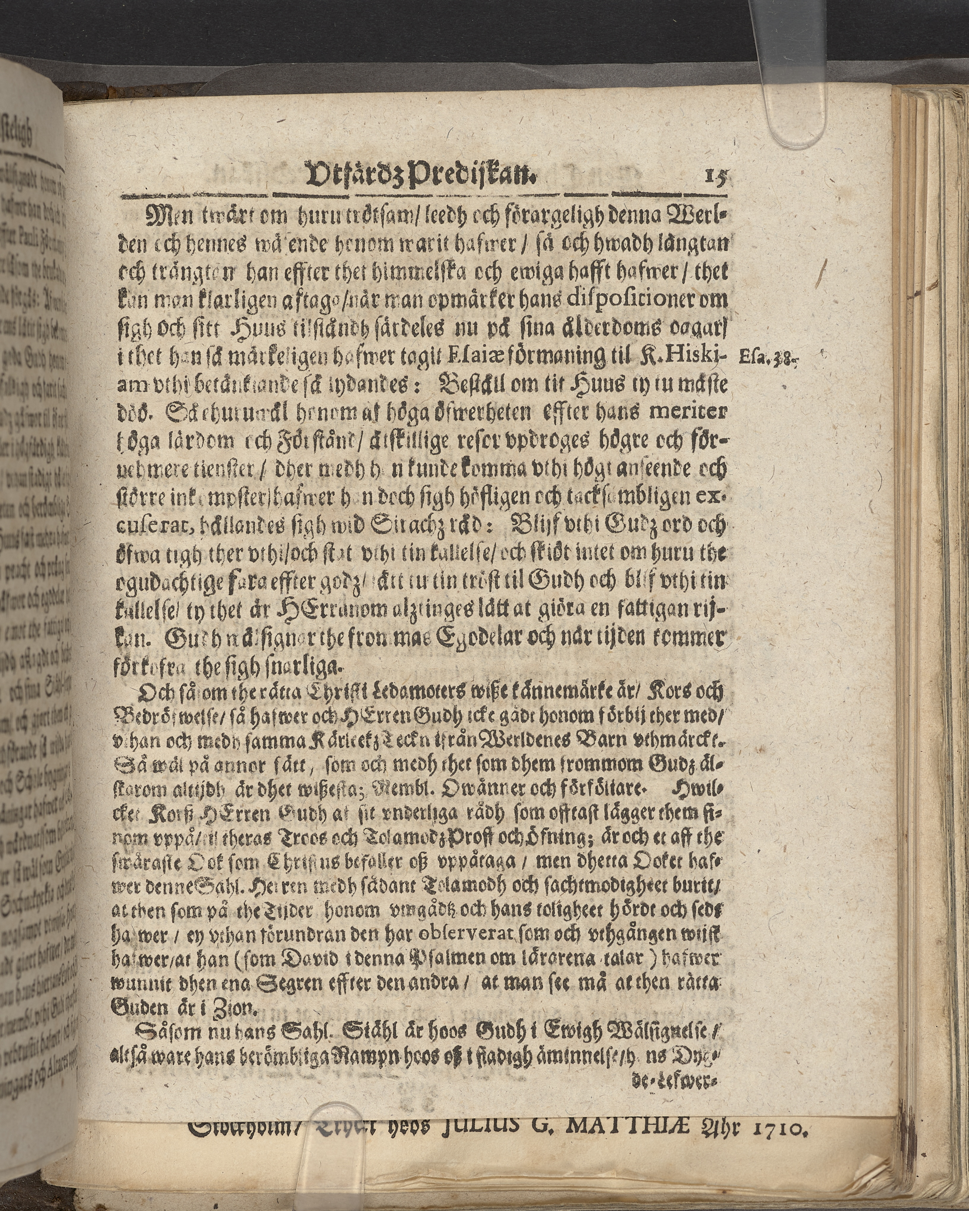 Utfärdz predijkan öfwer ... Erich Erlandson, wälbestälte häradzhöfdinge och landzdomare öfwer Wästerdahlerne ... i Avvestafors kyrckia på Christi himmelsfärdz dagh. Åhr 1679. den 29. maij, hållen af Jacobo Moklinio, P. B.
